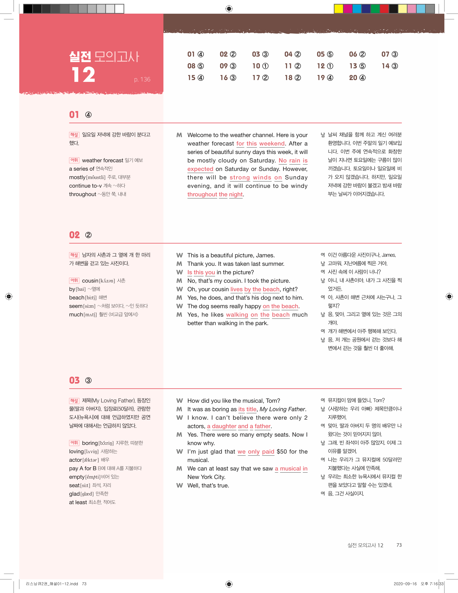 ✅ 세듀 리스닝큐2 중학영어듣기 모의고사 24회 답지 PDF 다운로드