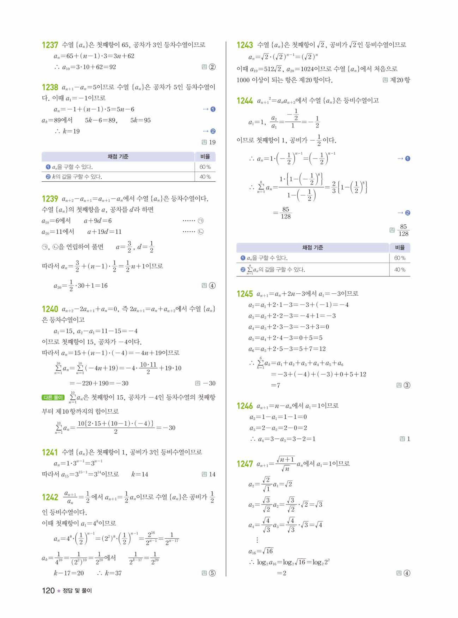 📢 라이트쎈 대수 답지 정답 해설 풀이 빠른답지 PDF 다운로드