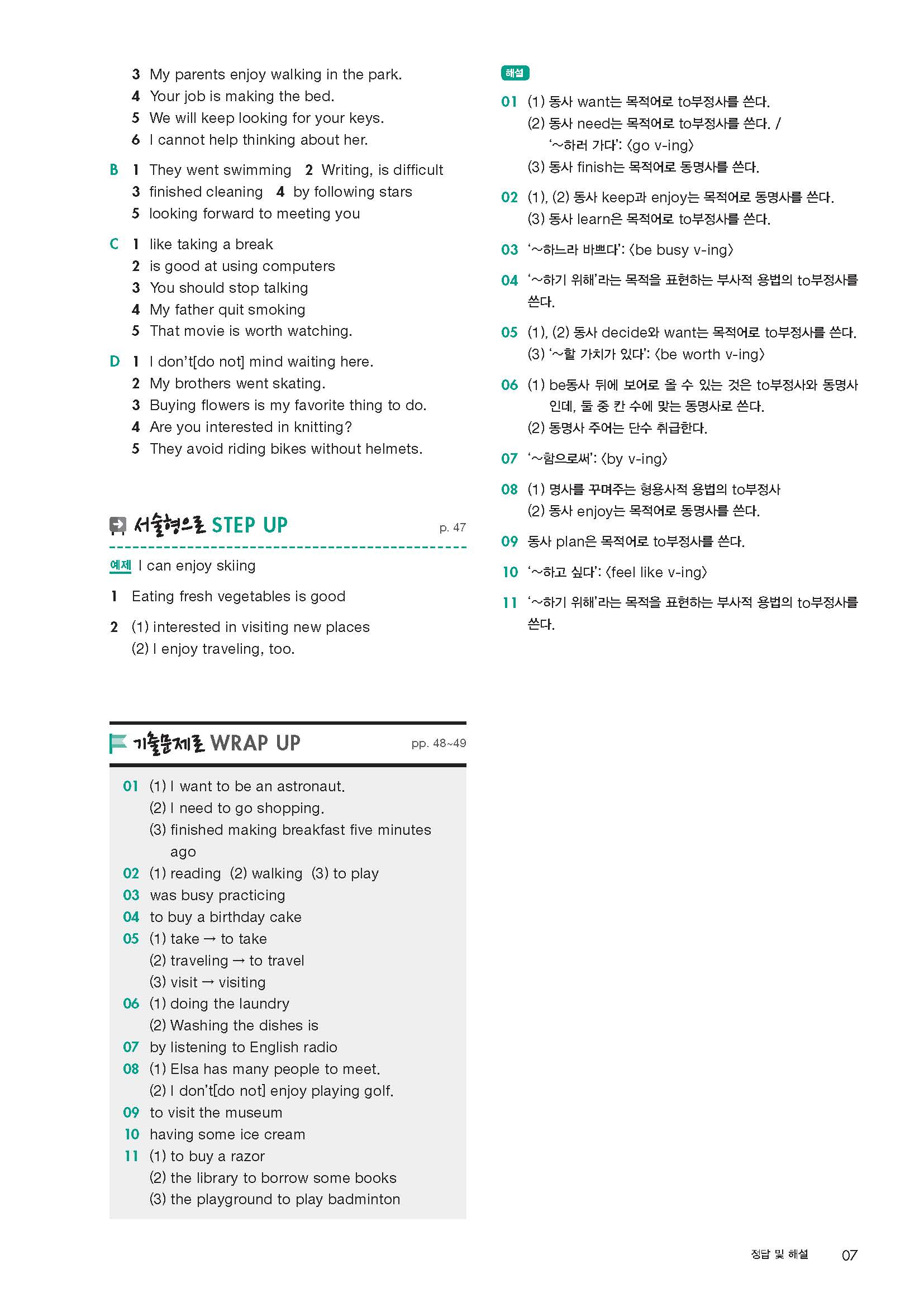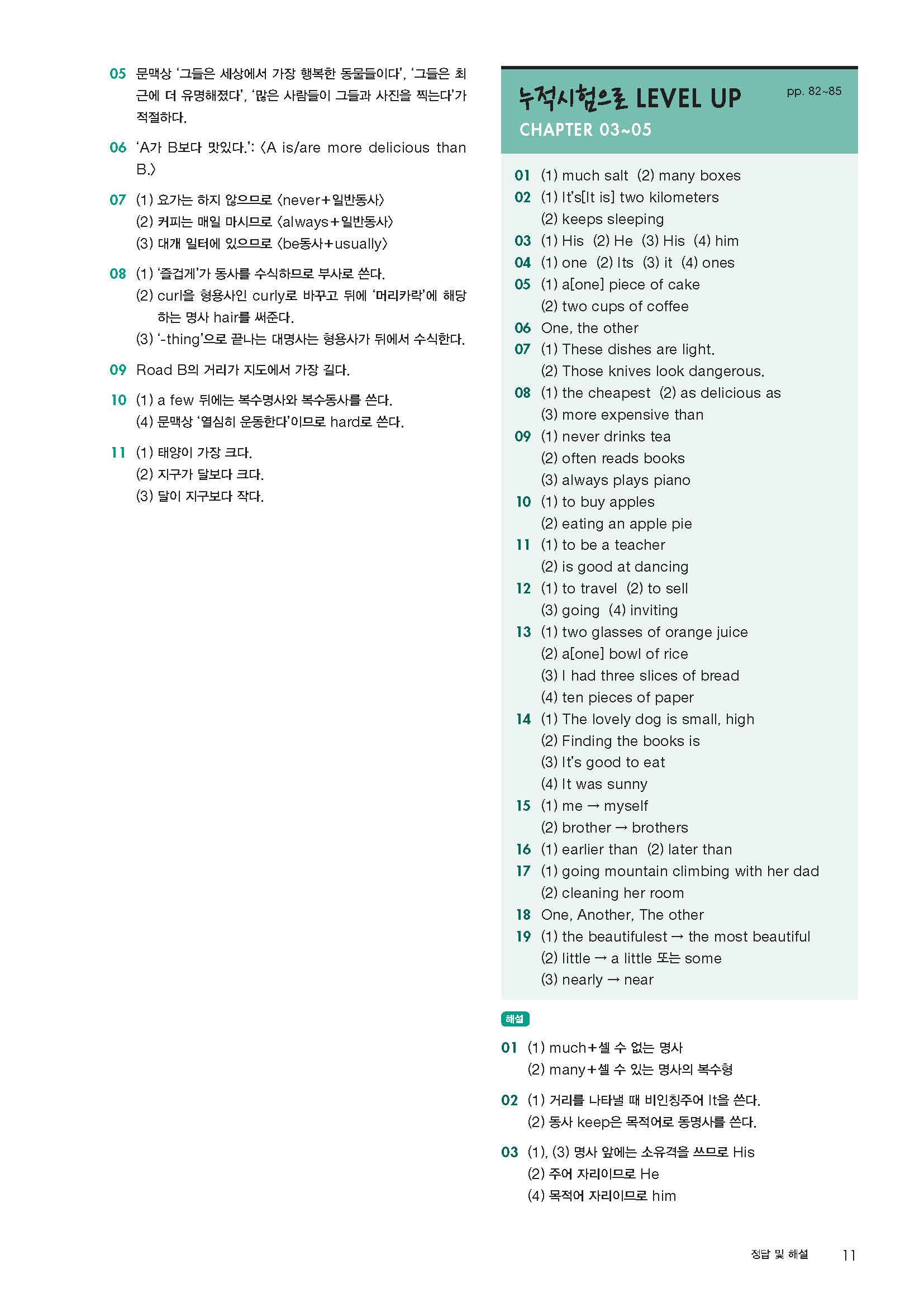 쓰기로 마스터하는 중학서술형 레벨1 사진답지 빠른답지 모바일최적화