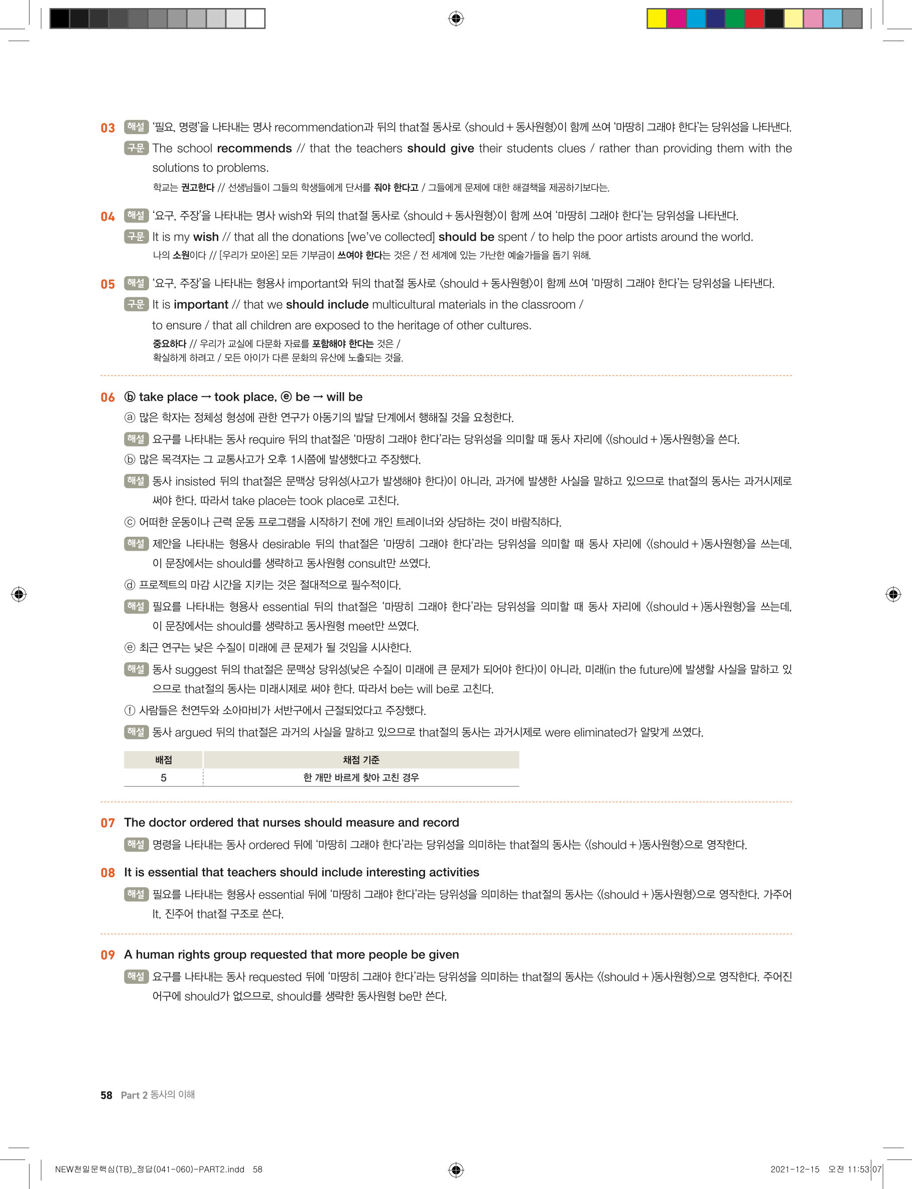 📢 최신개정 쎄듀 천일문 핵심 트레이닝북 답지 정답 해설 PDF 다운로드