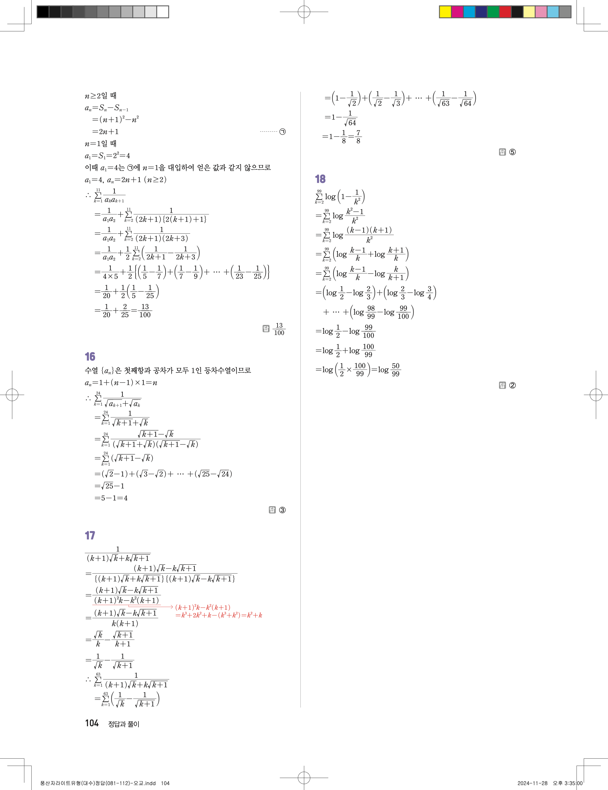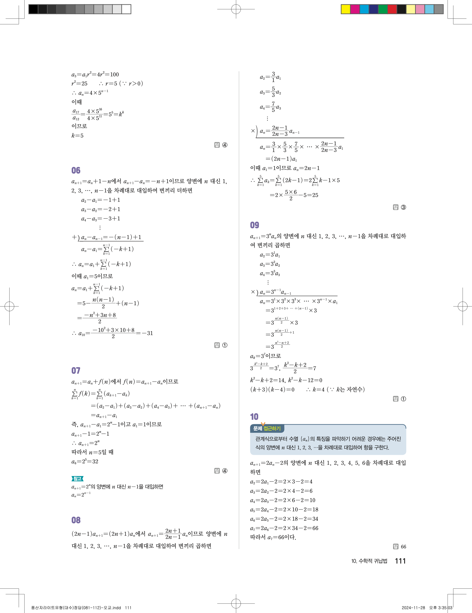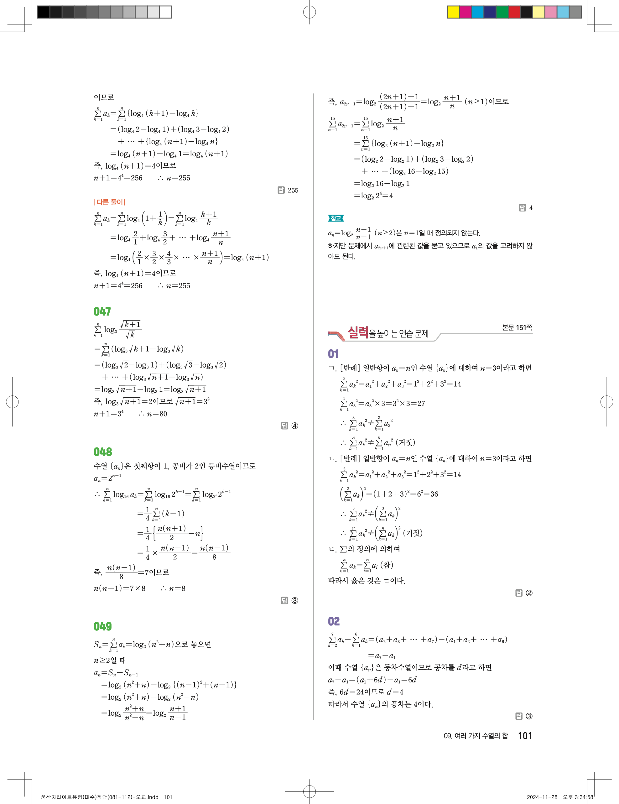 📢 최신개정 풍산자 라이트 유형 대수 답지 정답 해설 PDF 다운로드