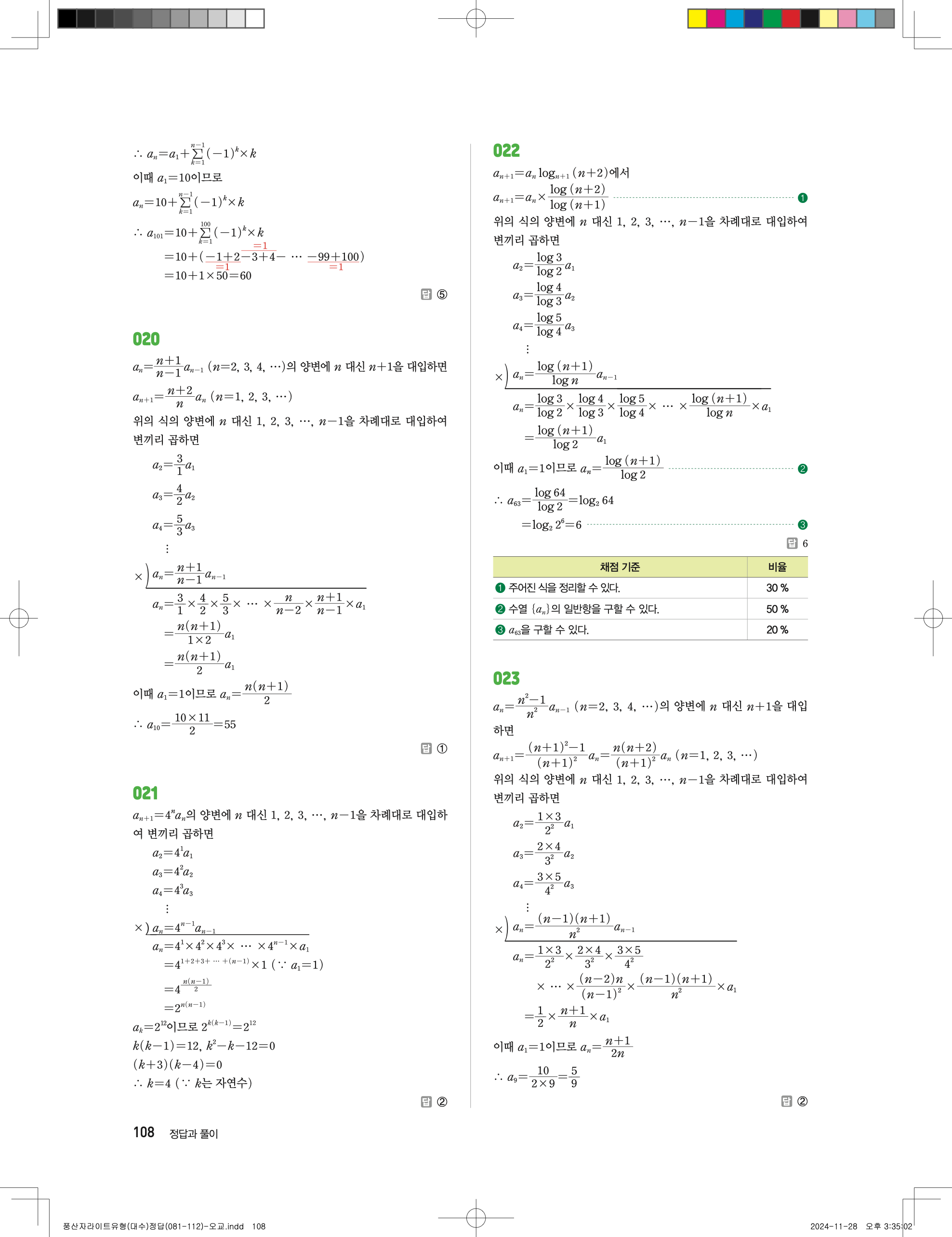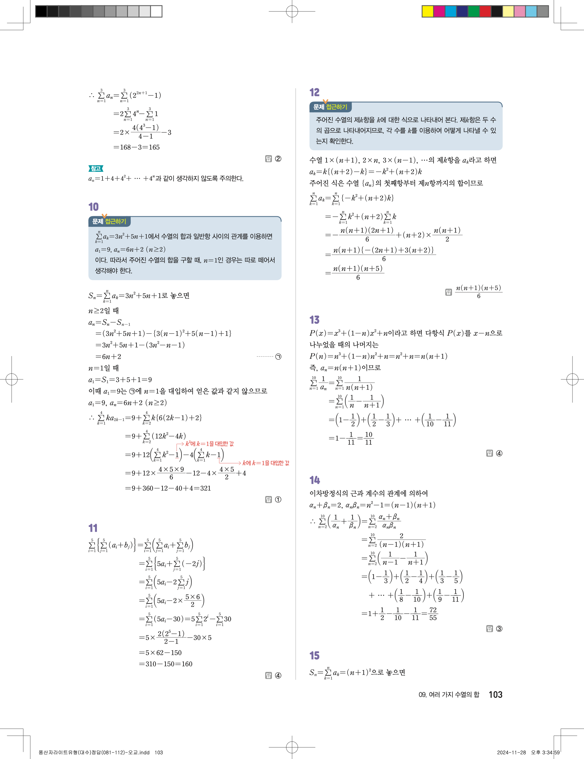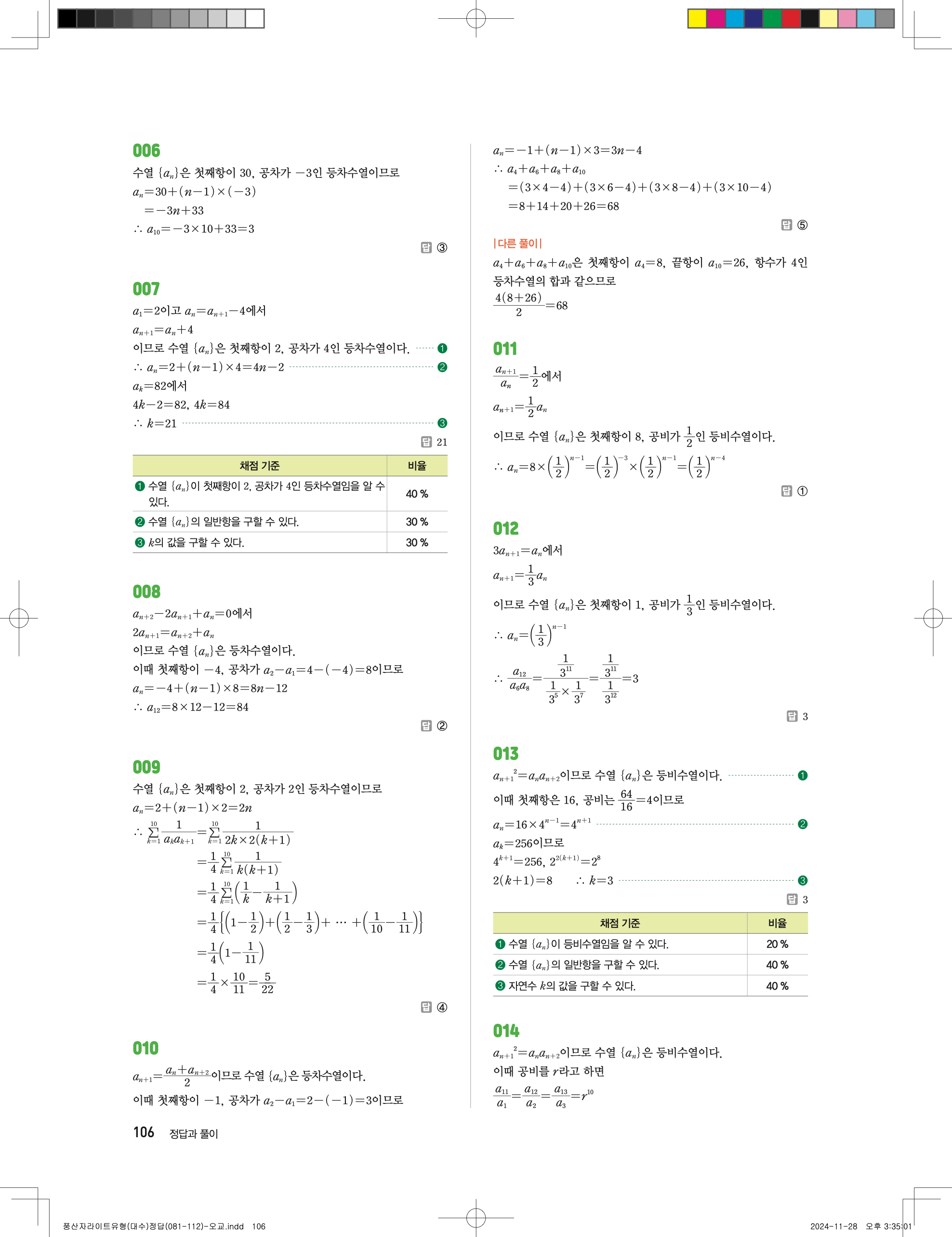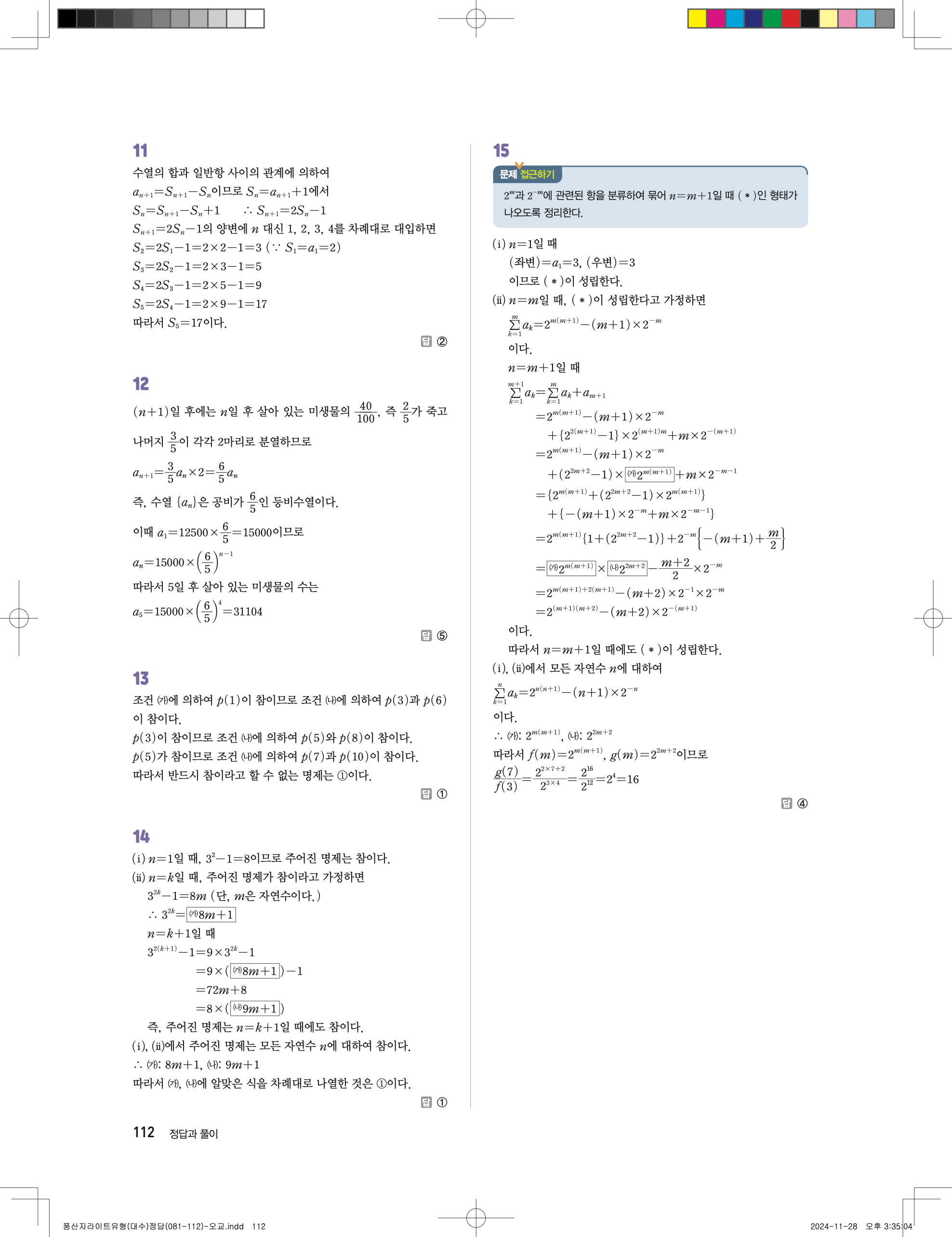 📢 최신개정 풍산자 라이트 유형 대수 답지 정답 해설 PDF 다운로드