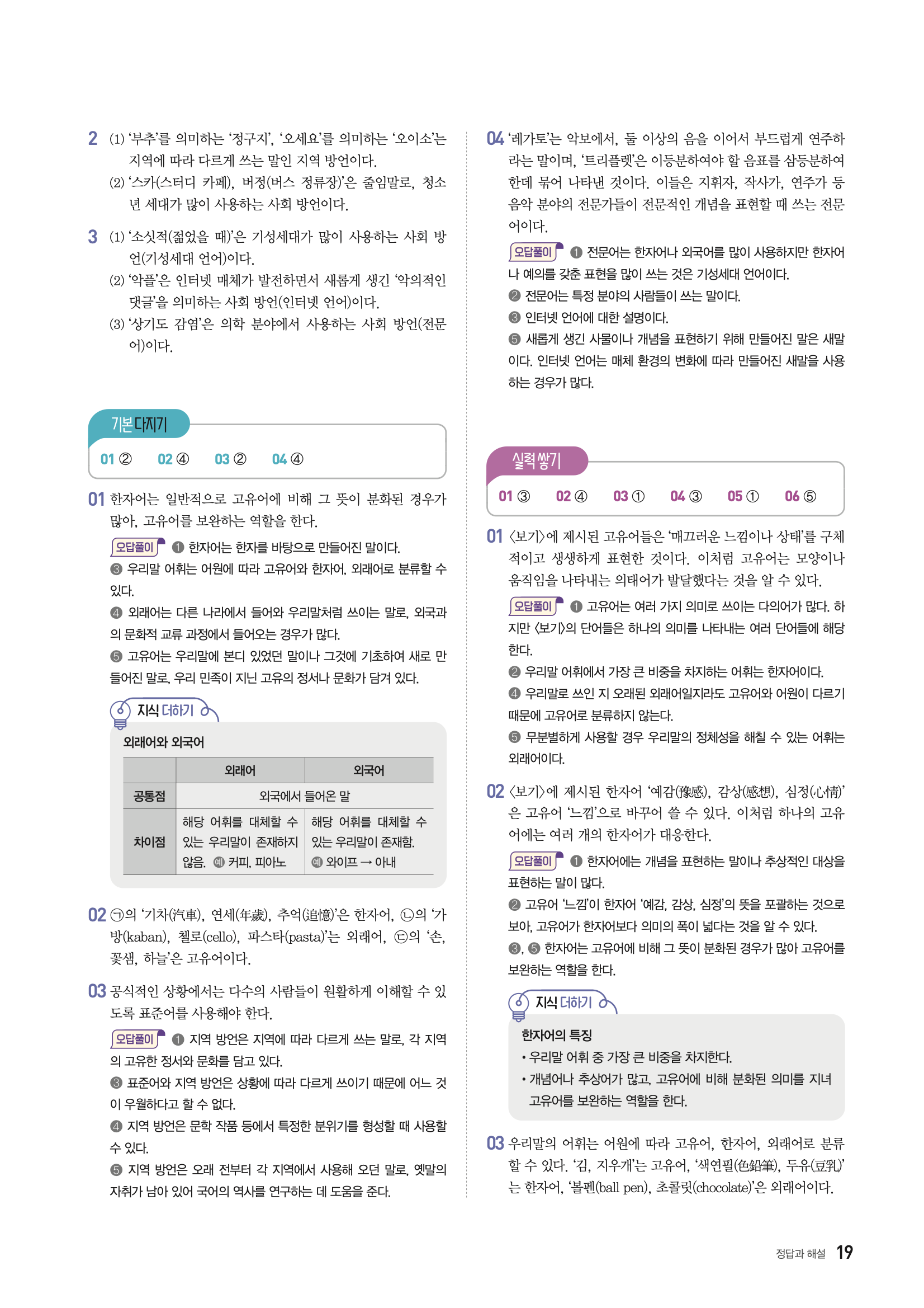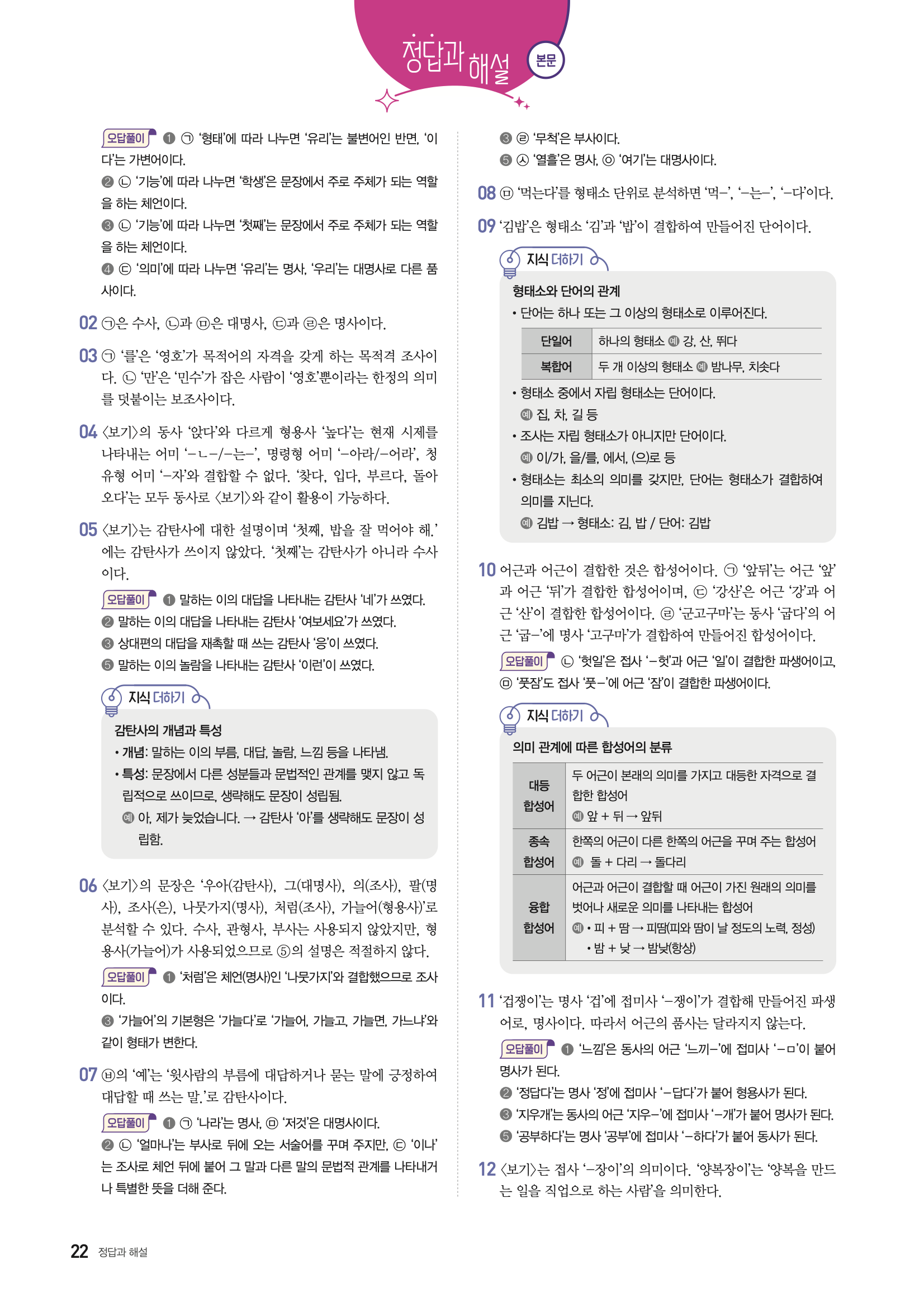 📌 한끝 중등 국어 문법편 정답 및 해설 다운로드
