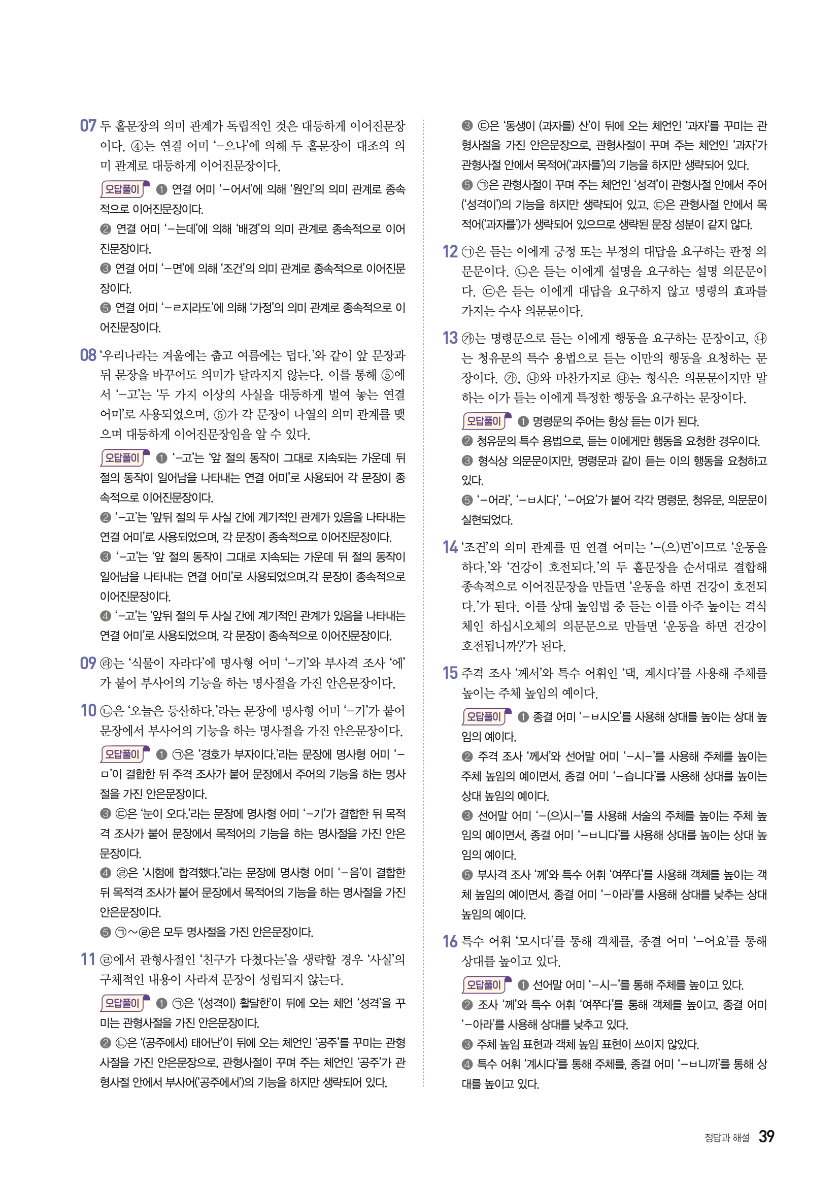 2025 최신개정 한끝 중등 국어 문법편의 답지 해설 빠른답지 바로보는 사진답지 PDF를 제공합니다.