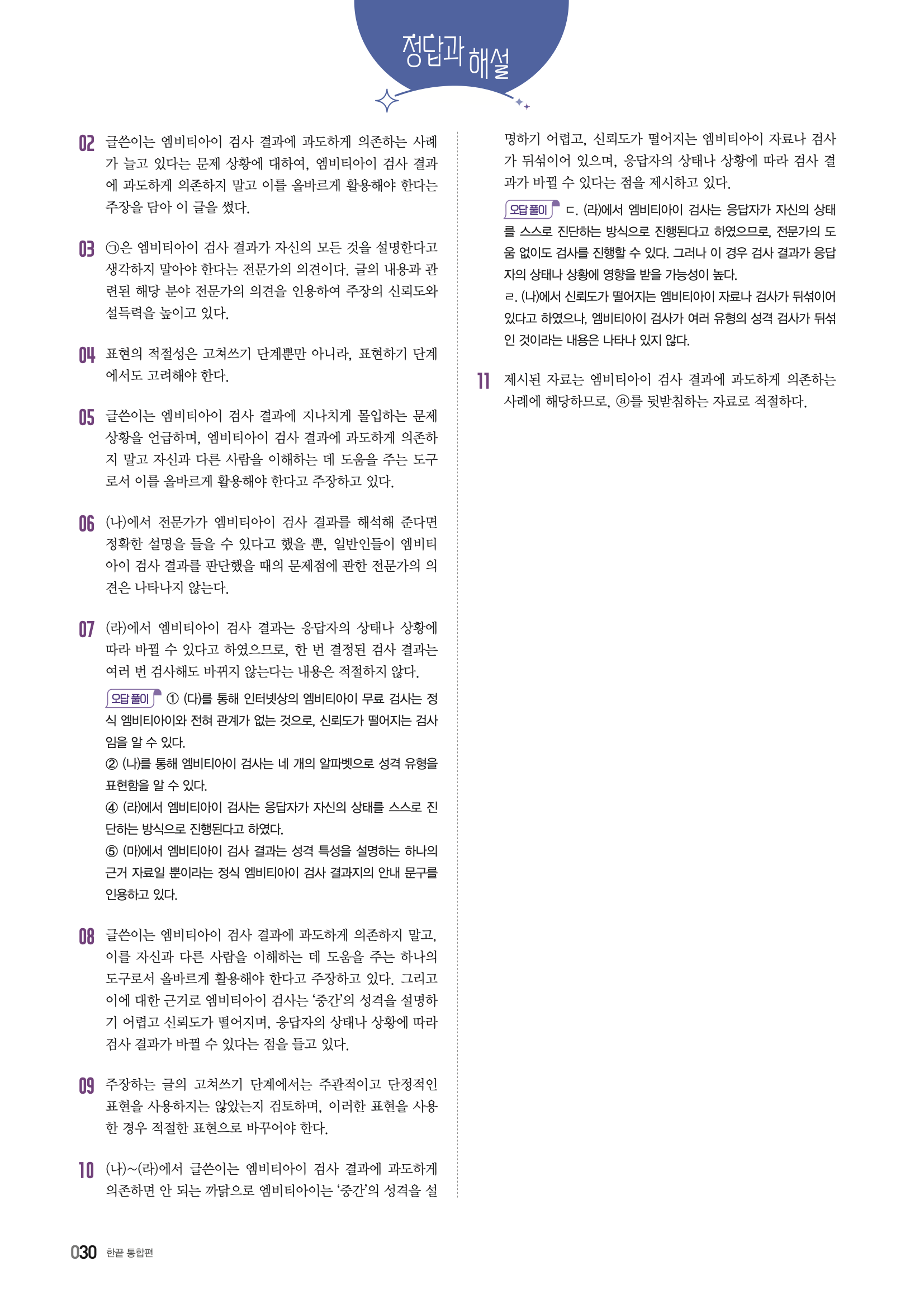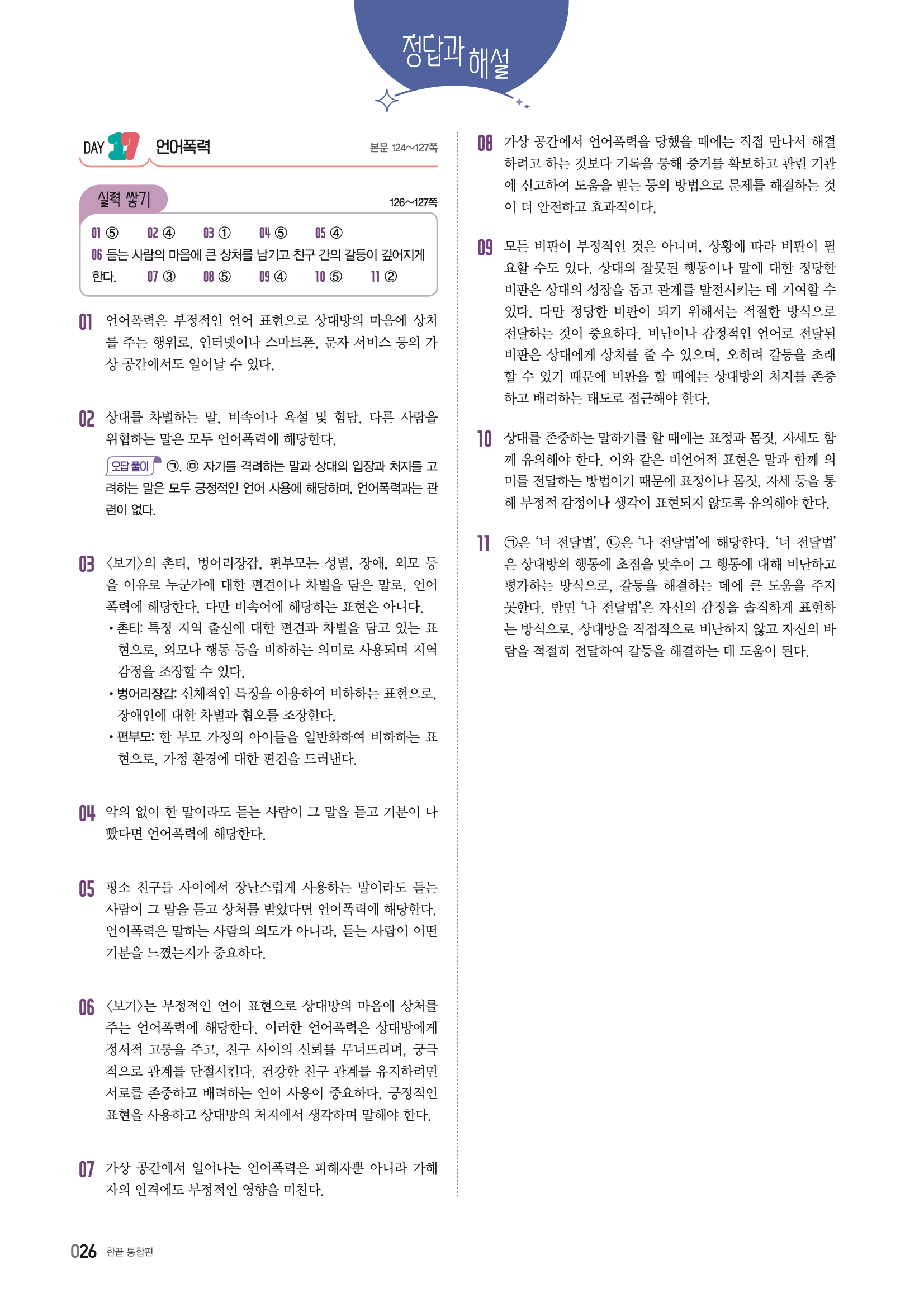 📌 정답 확인 및 오답 분석 → 빠른답지를 활용하여 정답을 체크하고, 오답을 분석하세요.