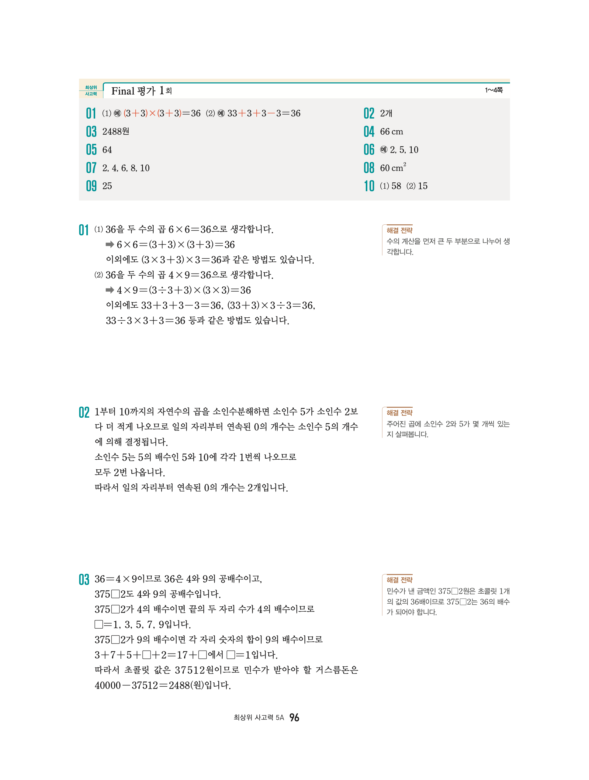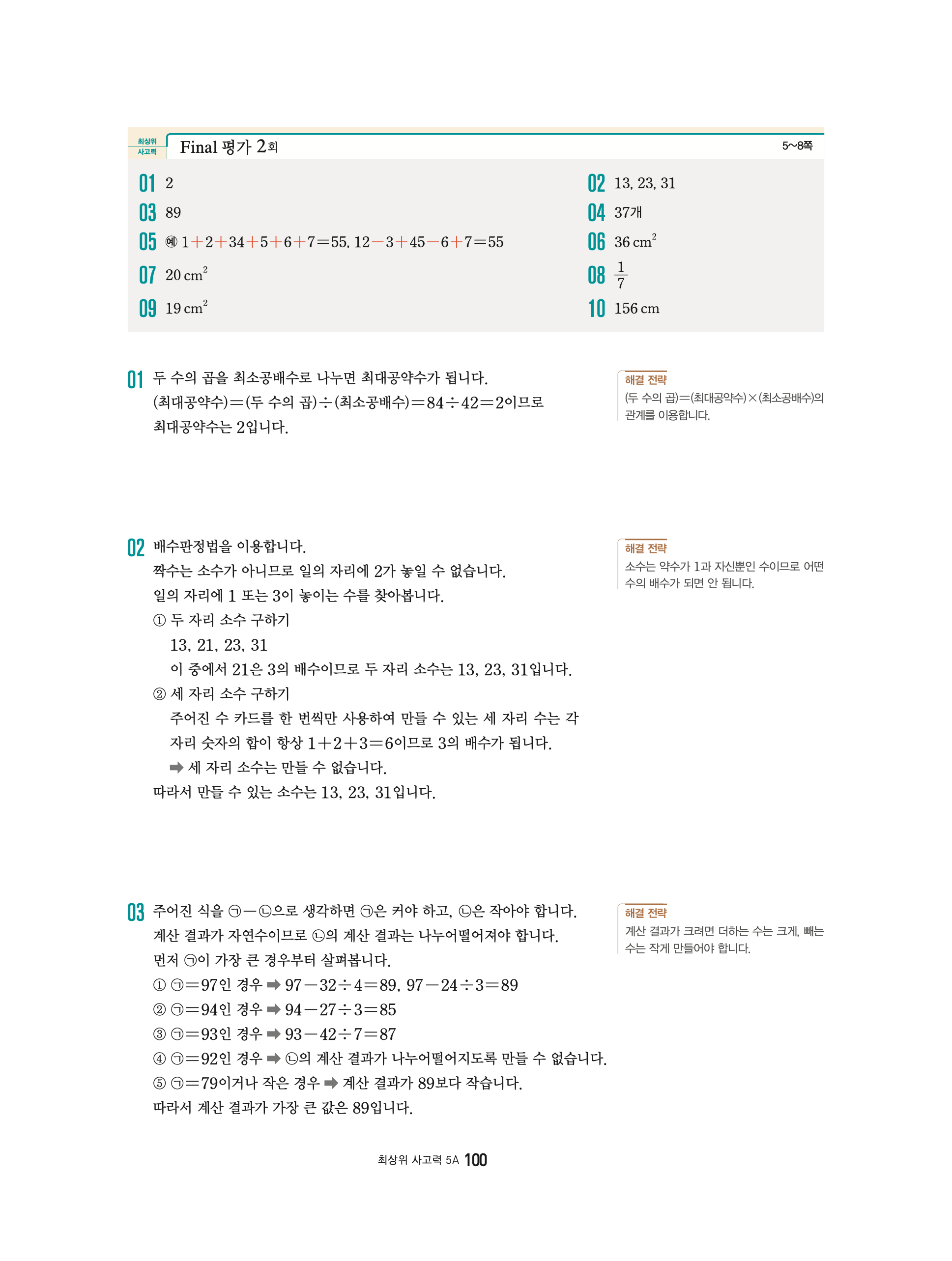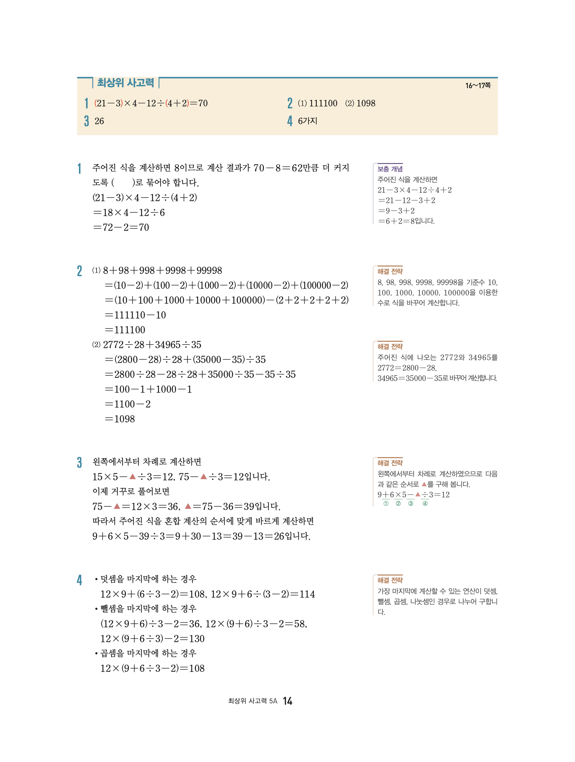 📚 디딤돌 초등 최상위 사고력 5A 답지 활용법