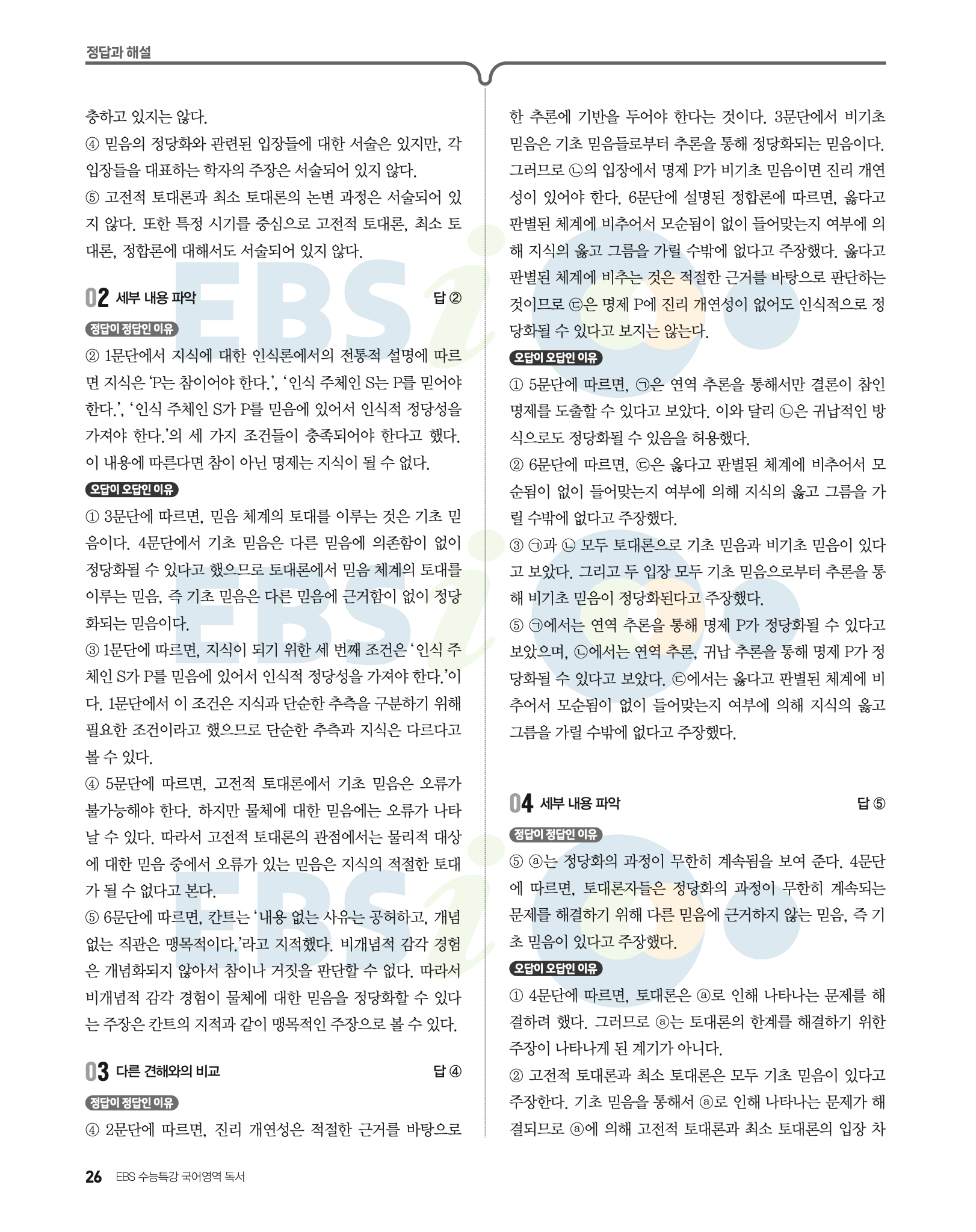 국어영역 독서를 효과적으로 학습하고, 수능 대비를 철저히 하고자 하는 학생들을 위해 2026 수능특강 국어영역 독서의 답지와 해설을 제공합니다.