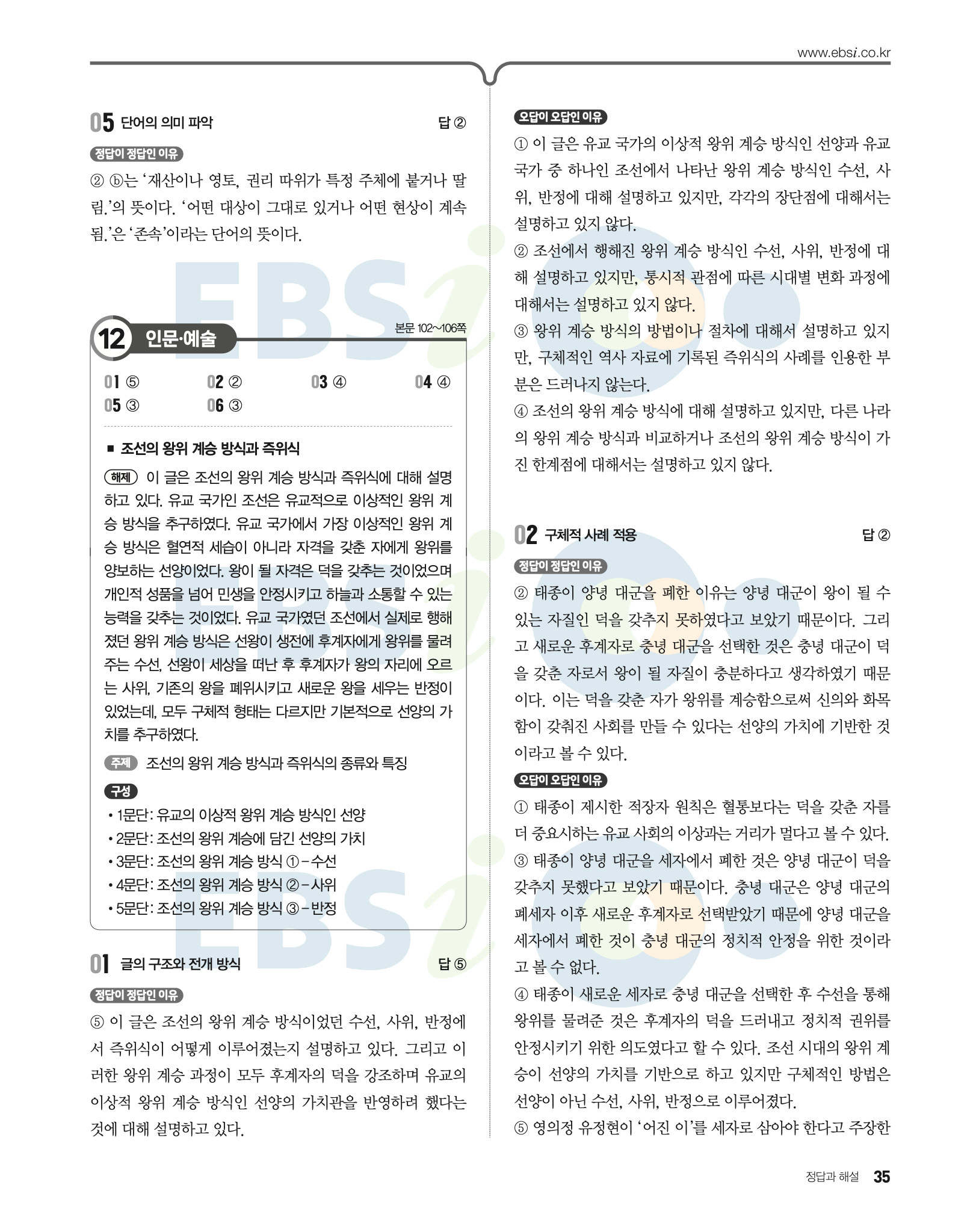 아래는 수능 대비 학습에 도움이 되는 다른 교재의 답지와 해설을 제공하는 포스팅입니다.