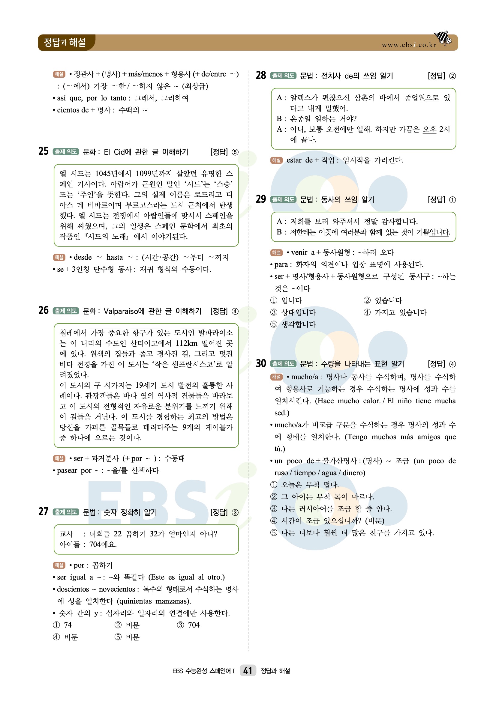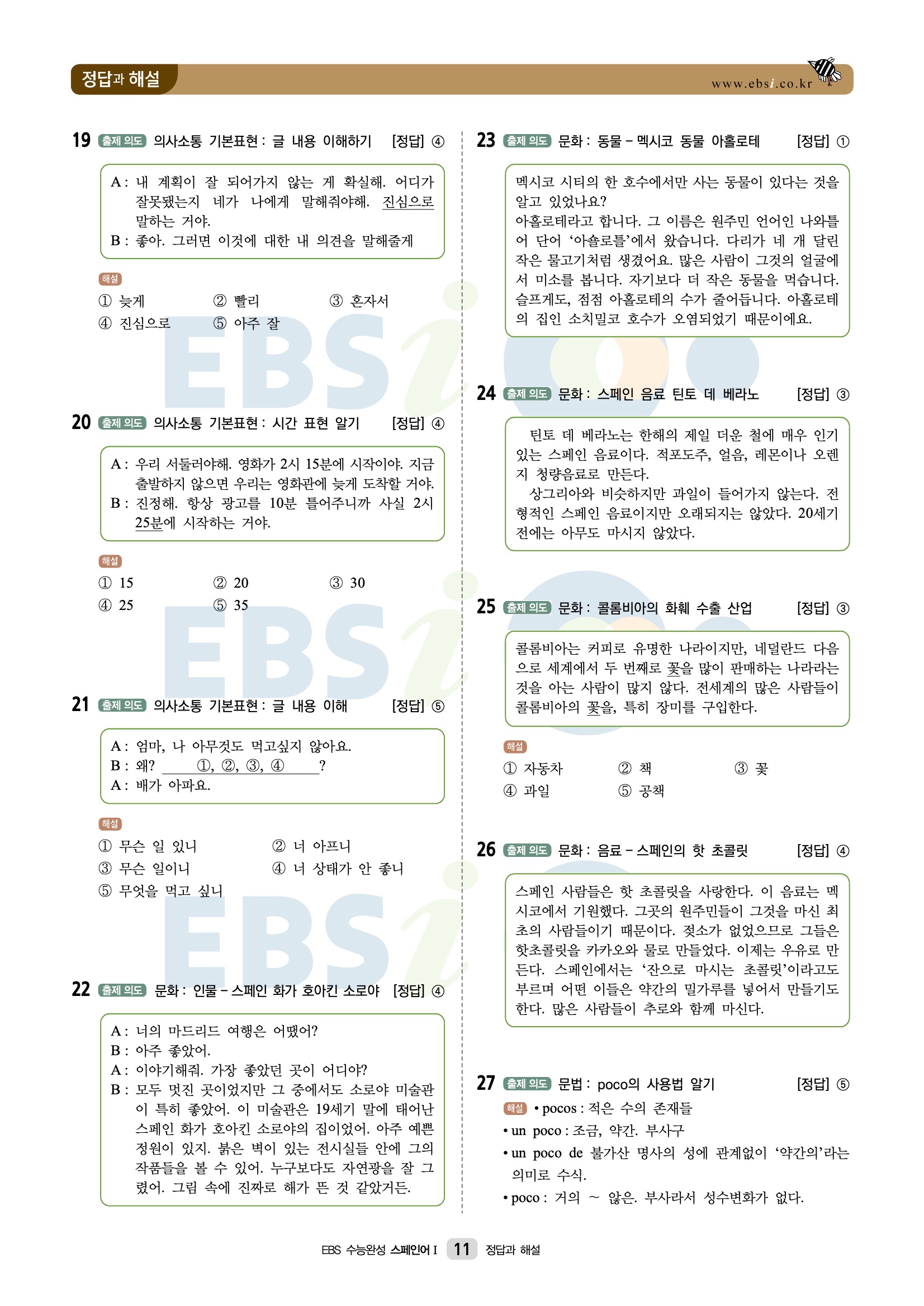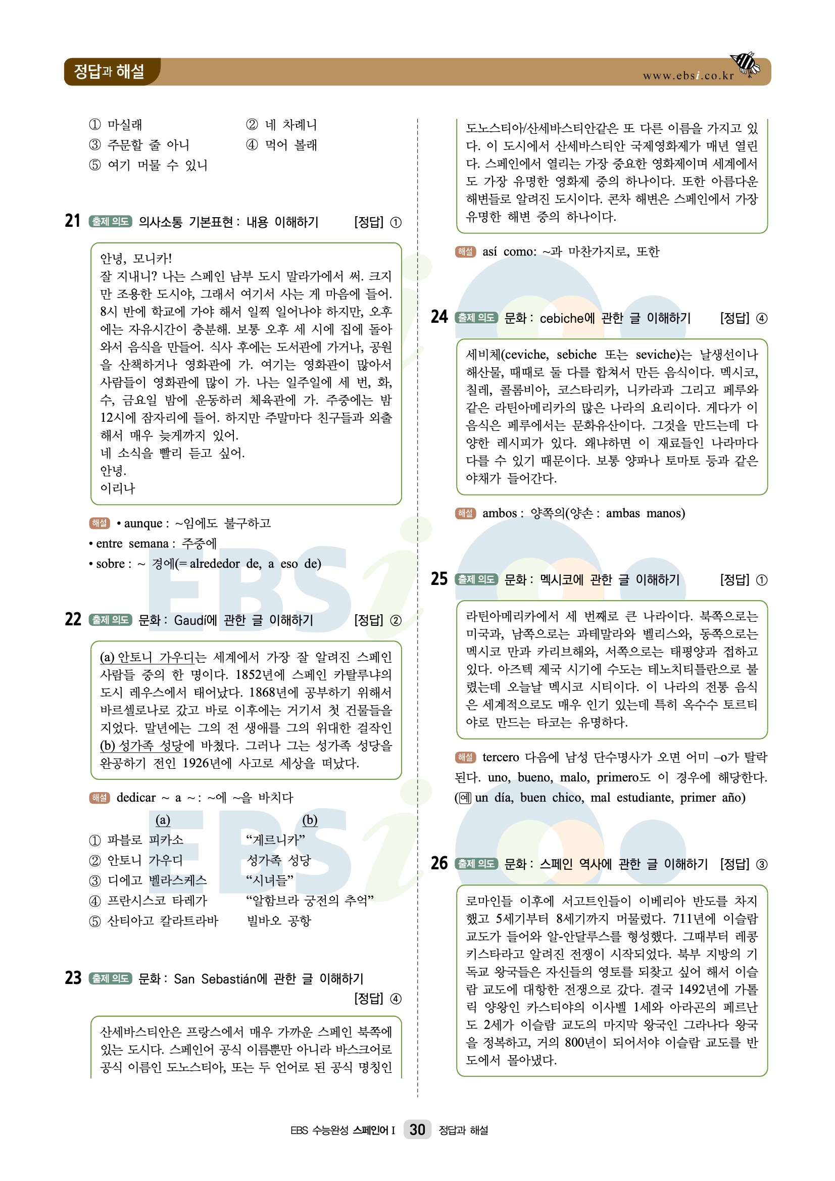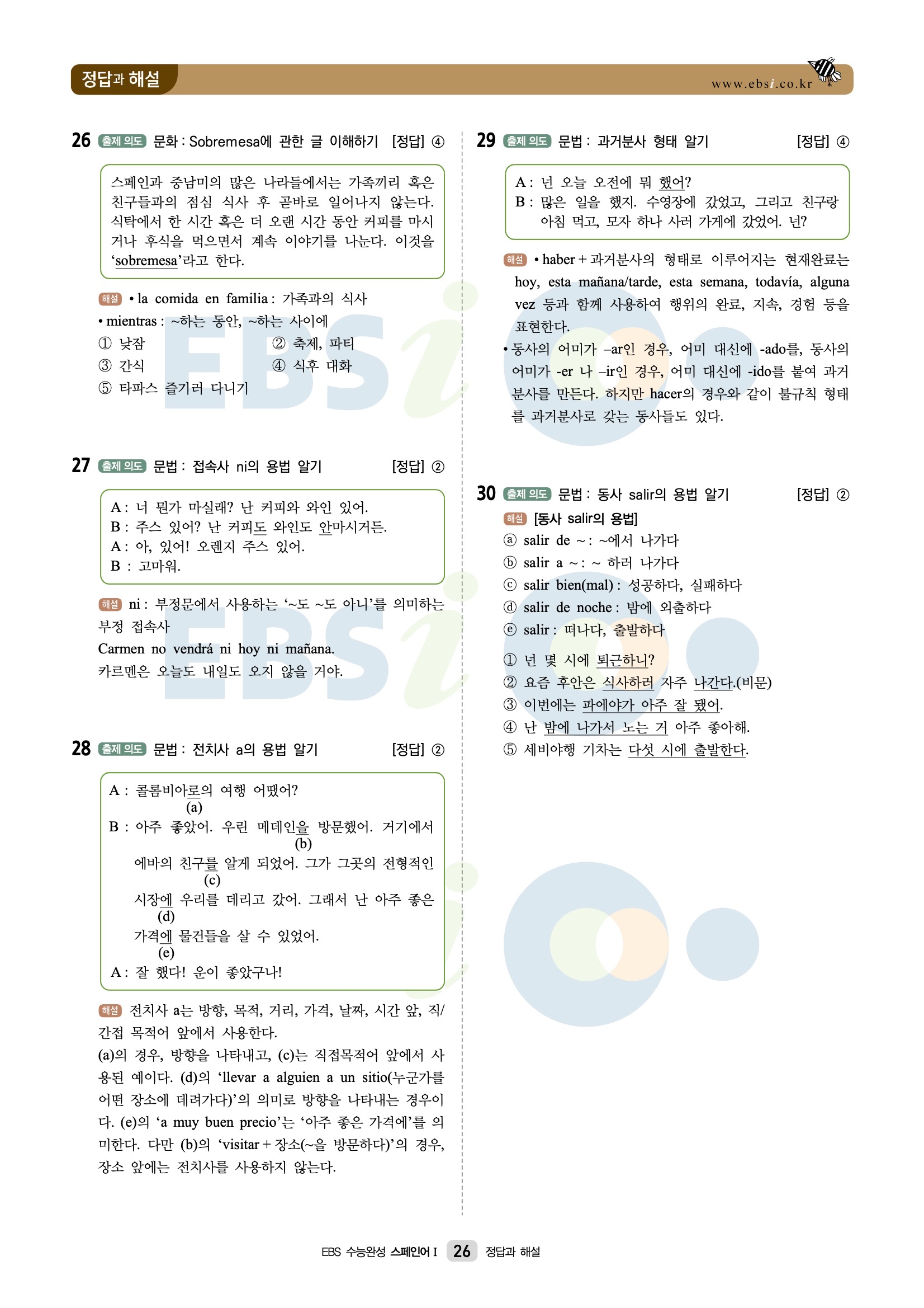 📘 2026 수능완성 스페인어1 답지 및 해설