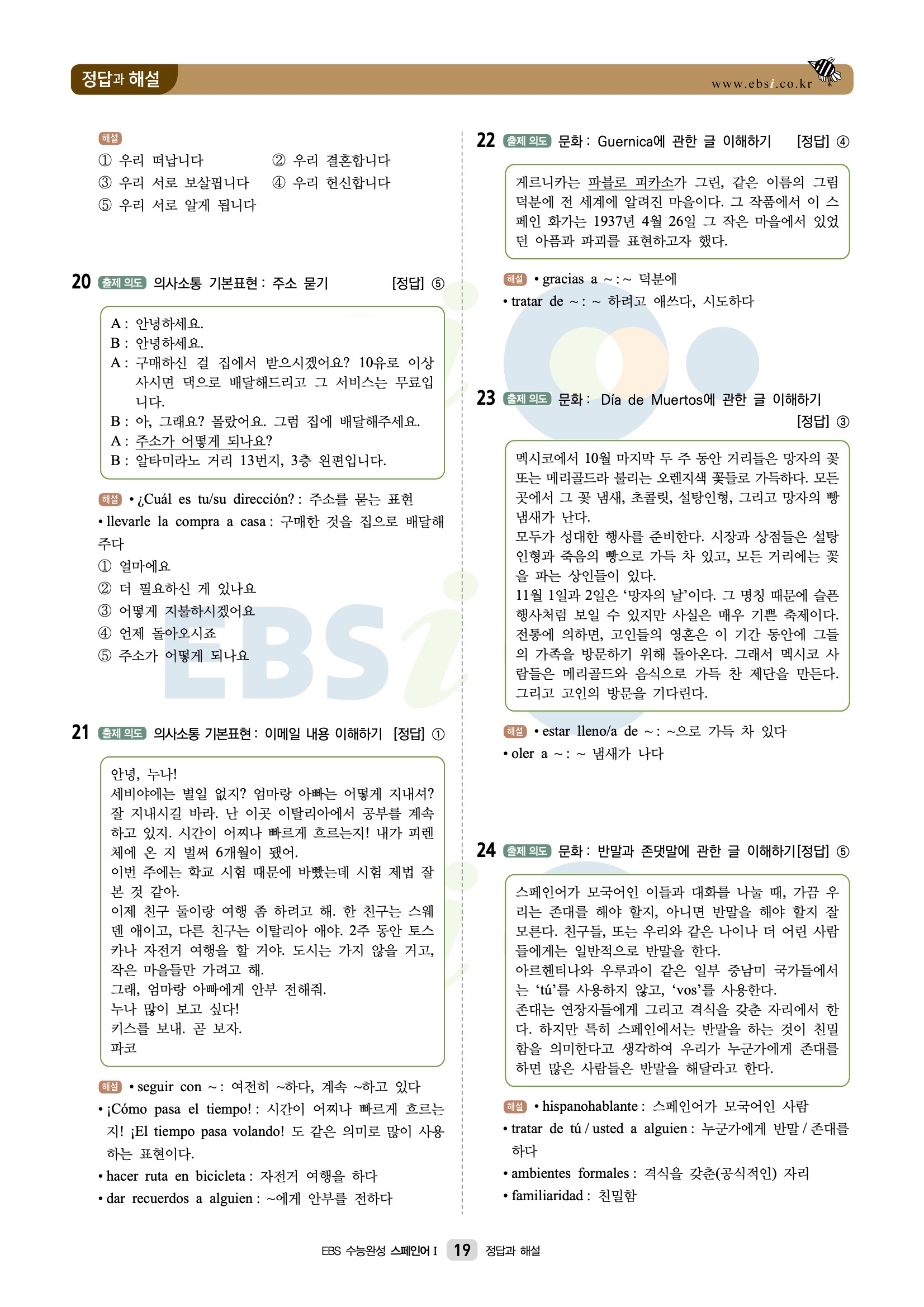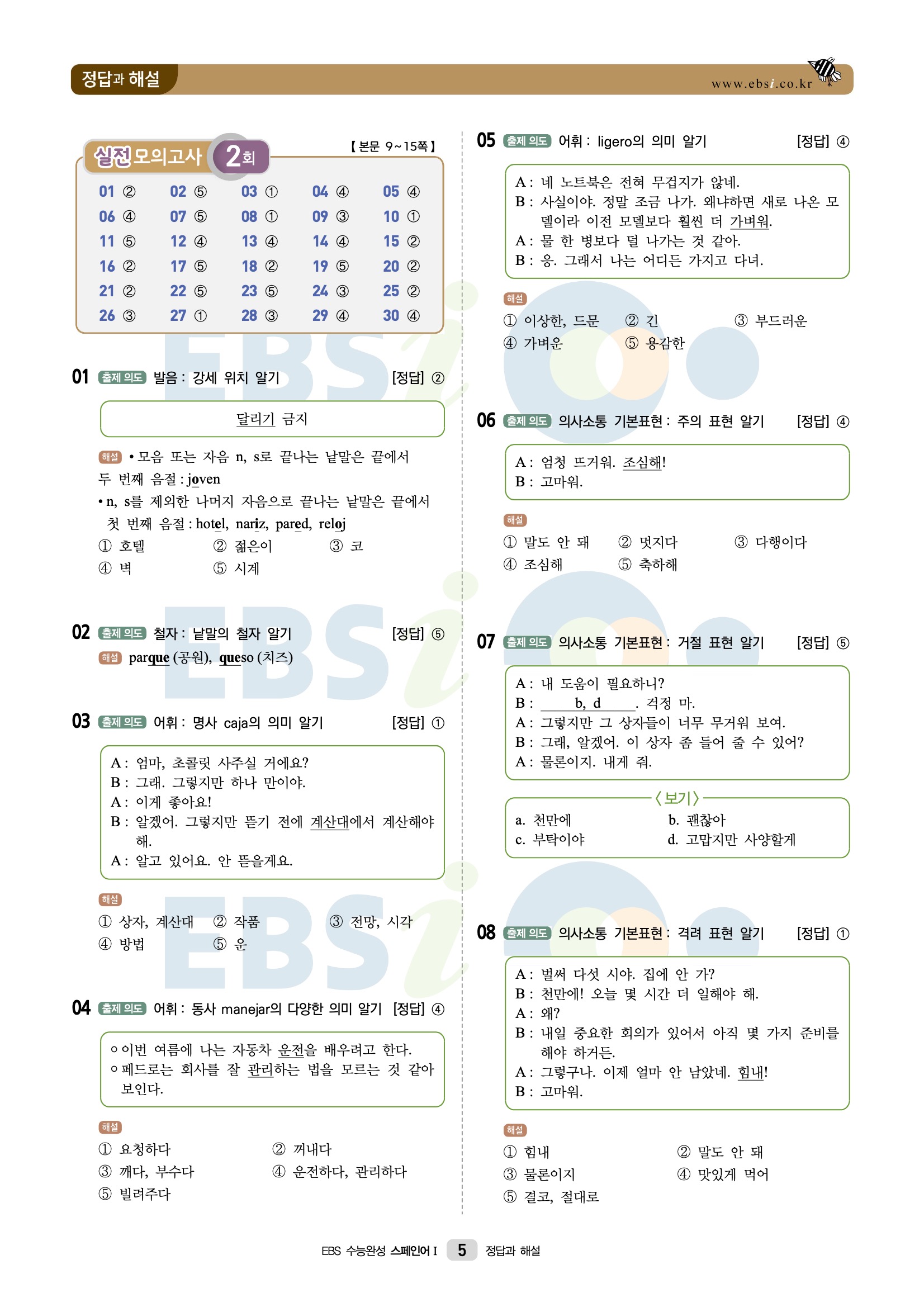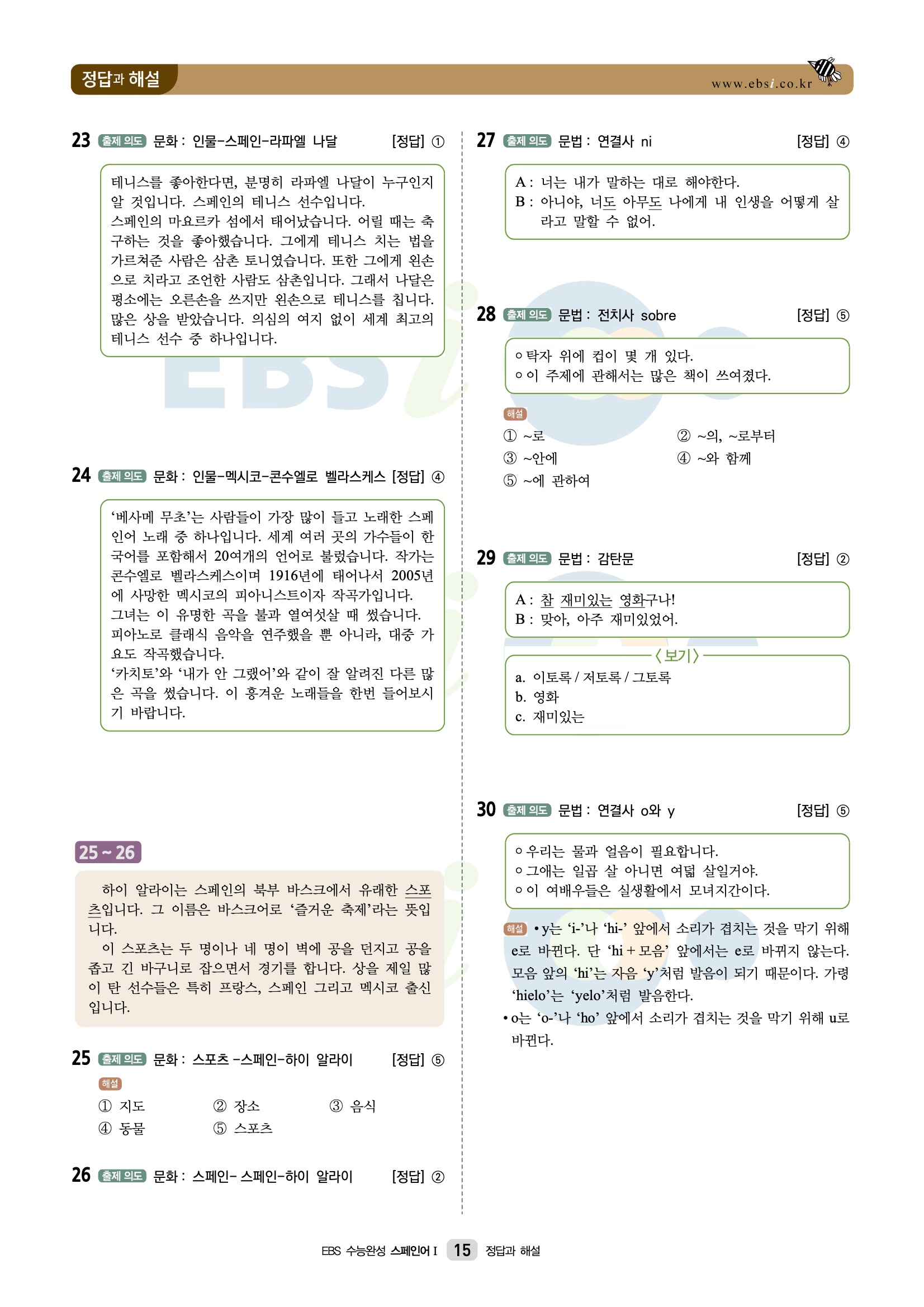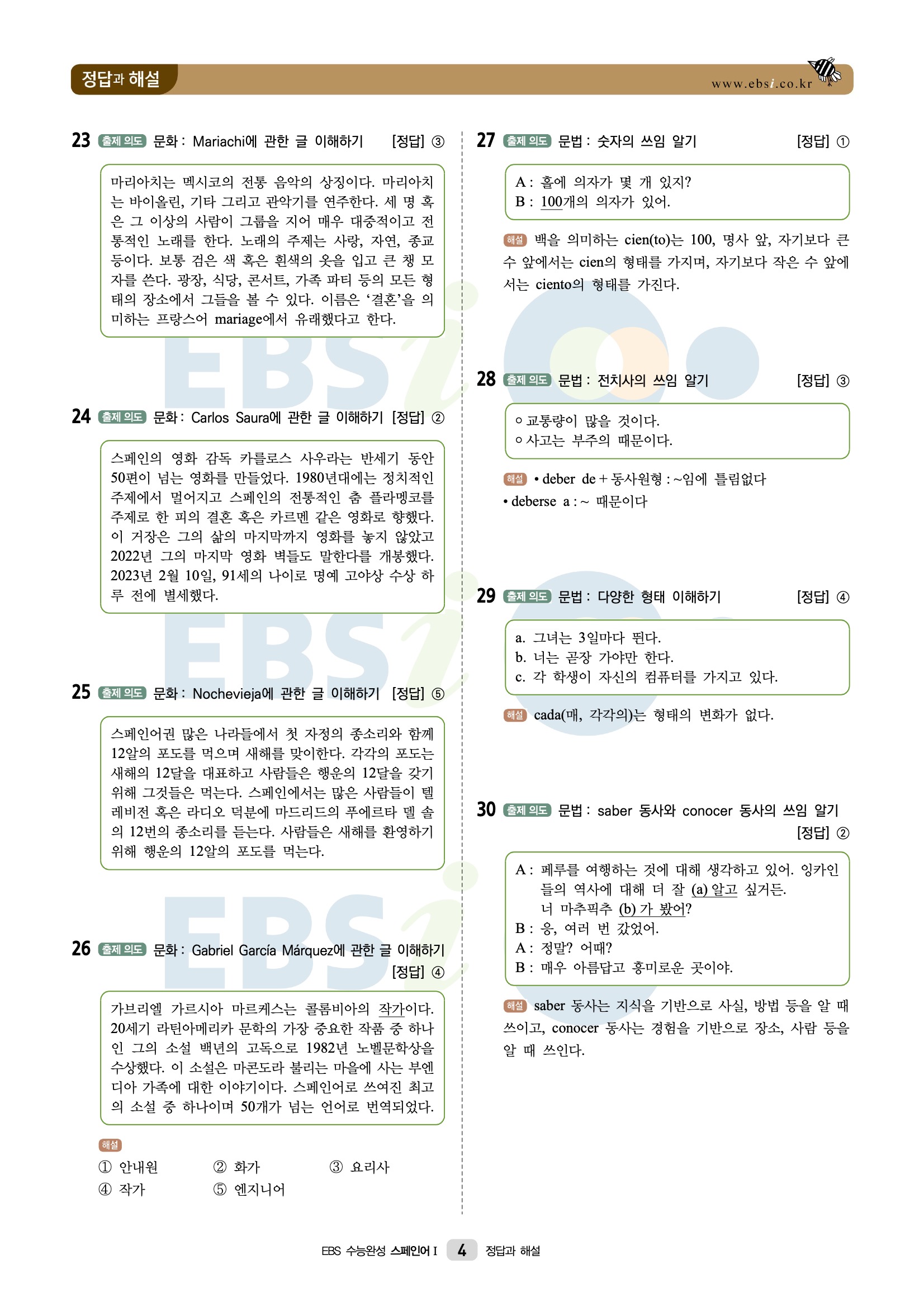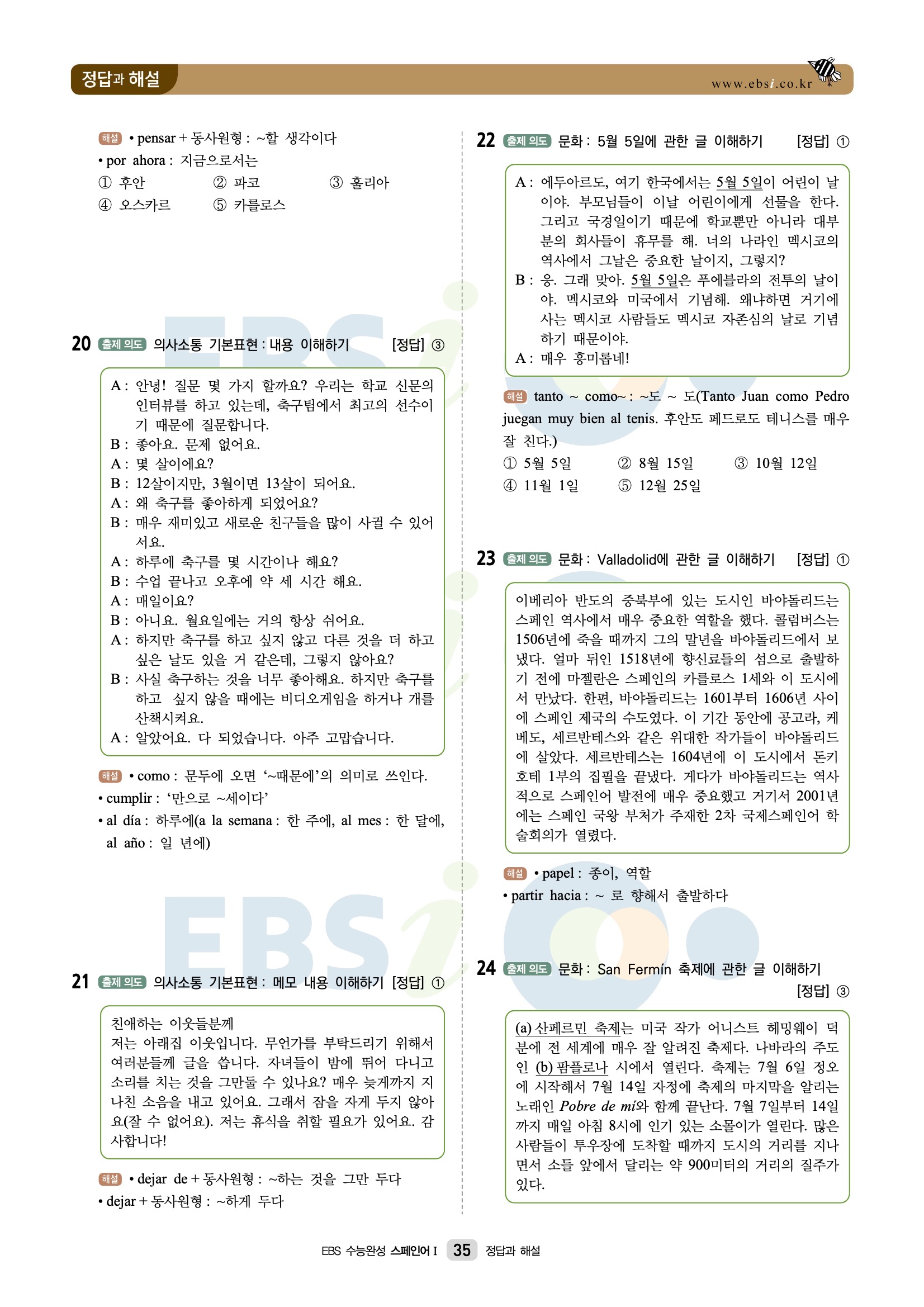 📘 2026 수능완성 스페인어1 답지 및 해설
