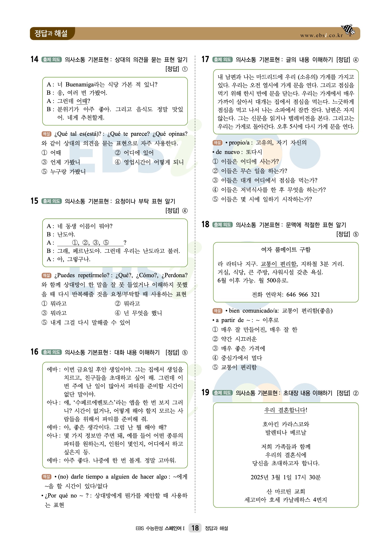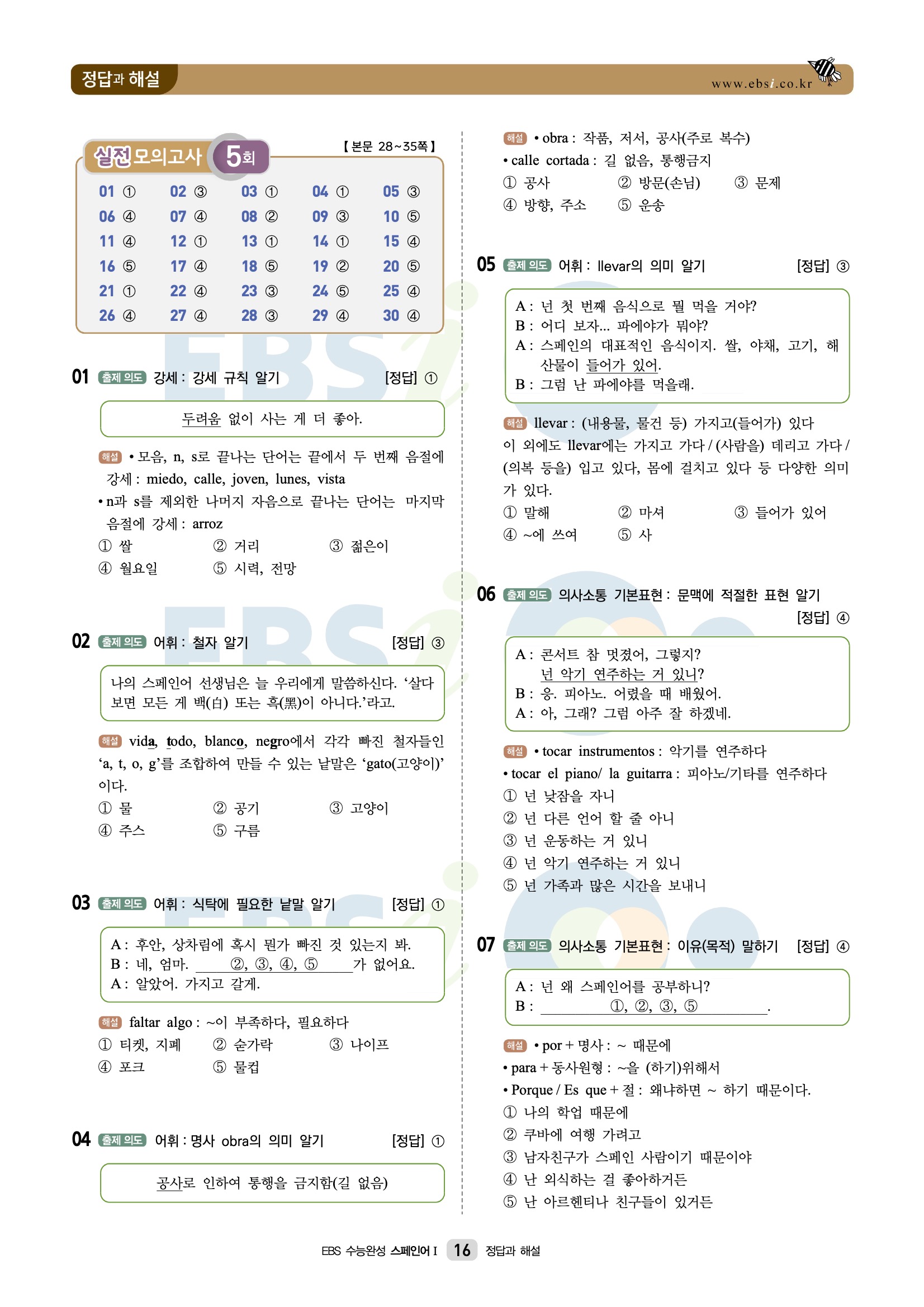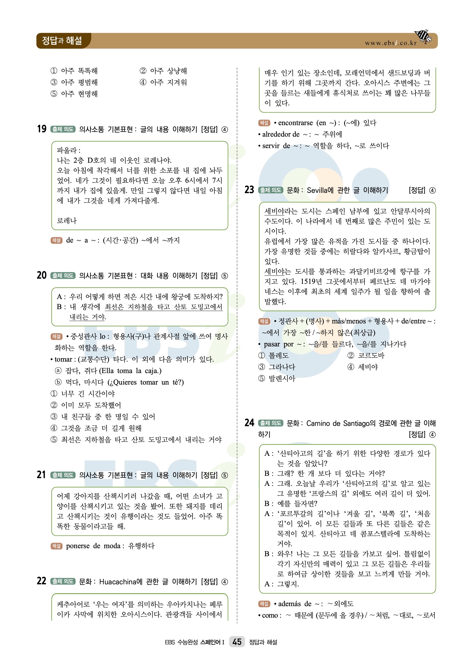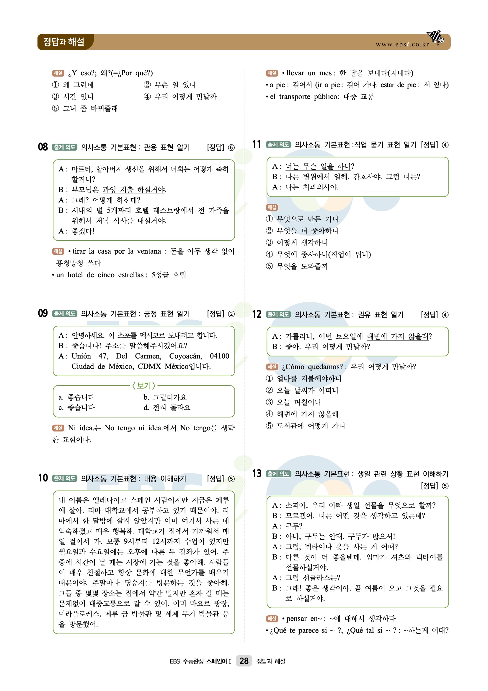 📘 2026 수능완성 스페인어1 답지 및 해설