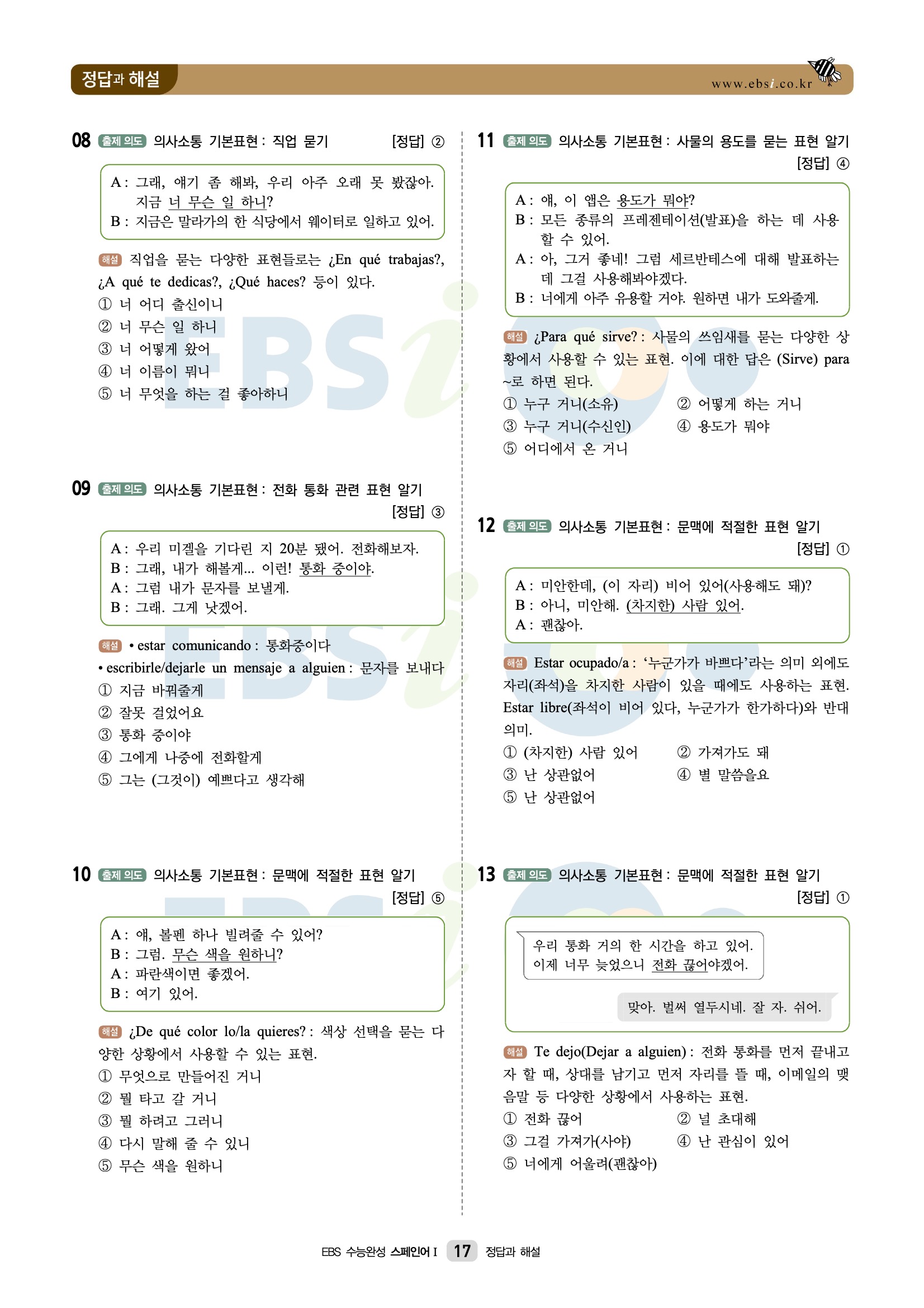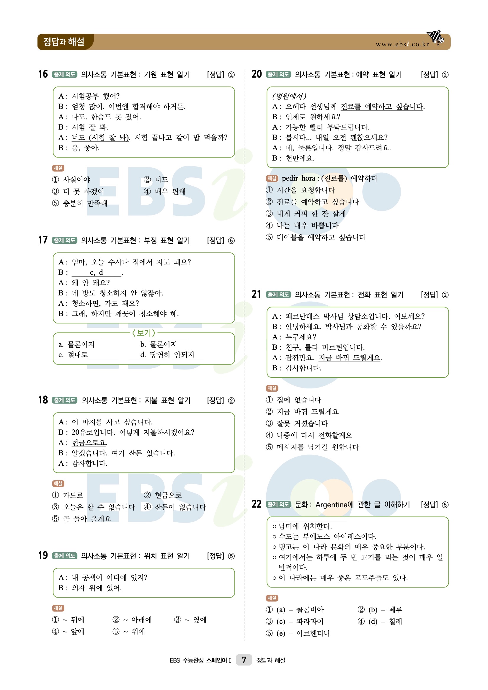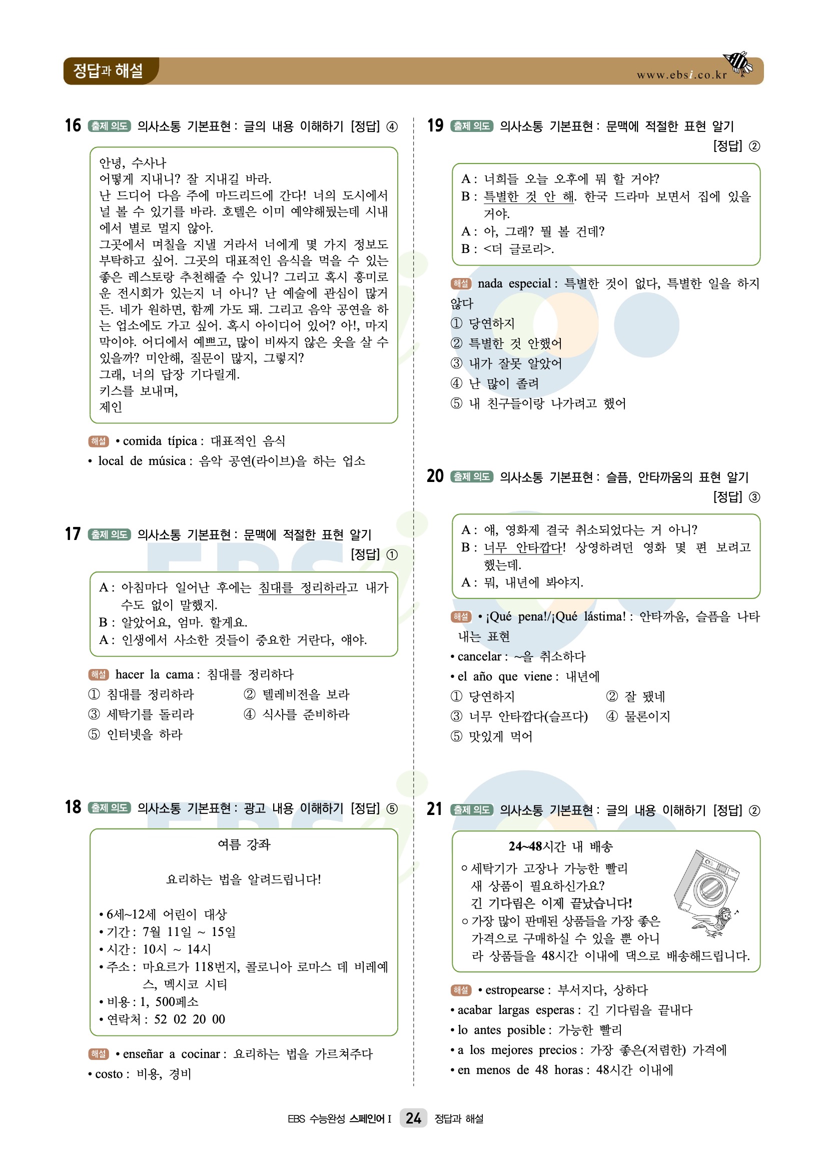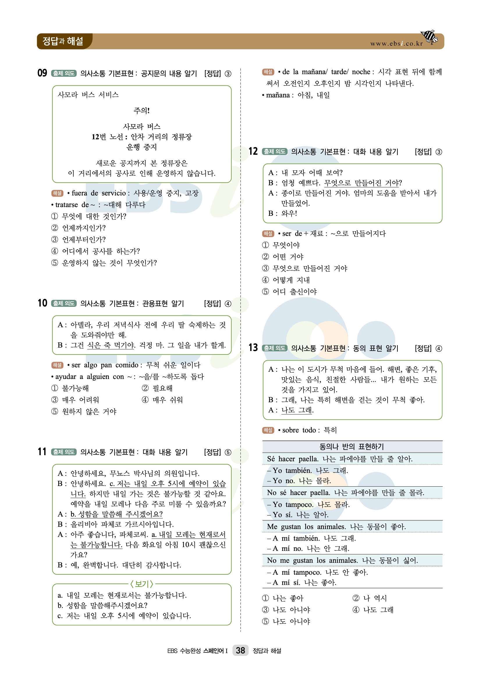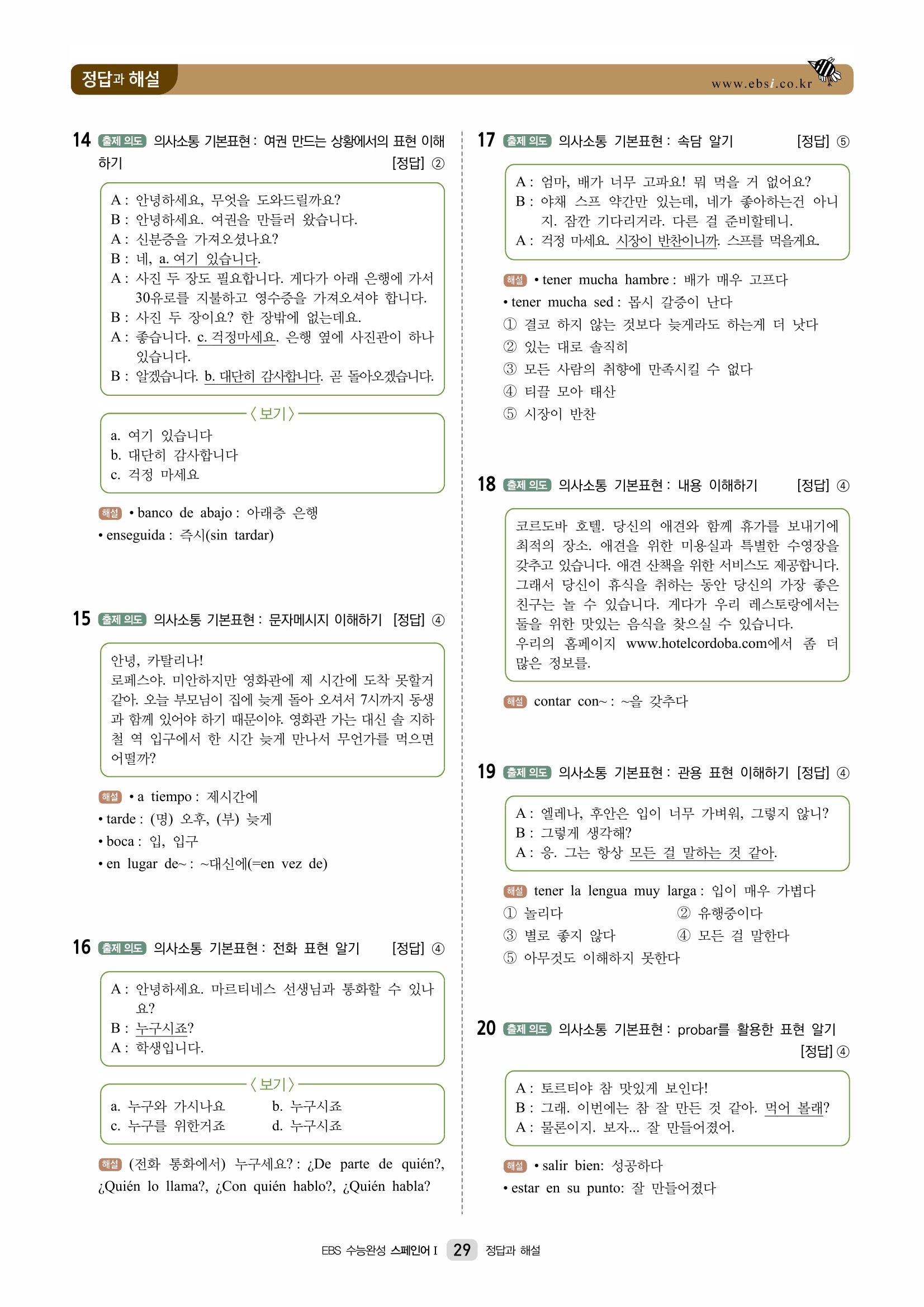 📘 2026 수능완성 스페인어1 답지 및 해설