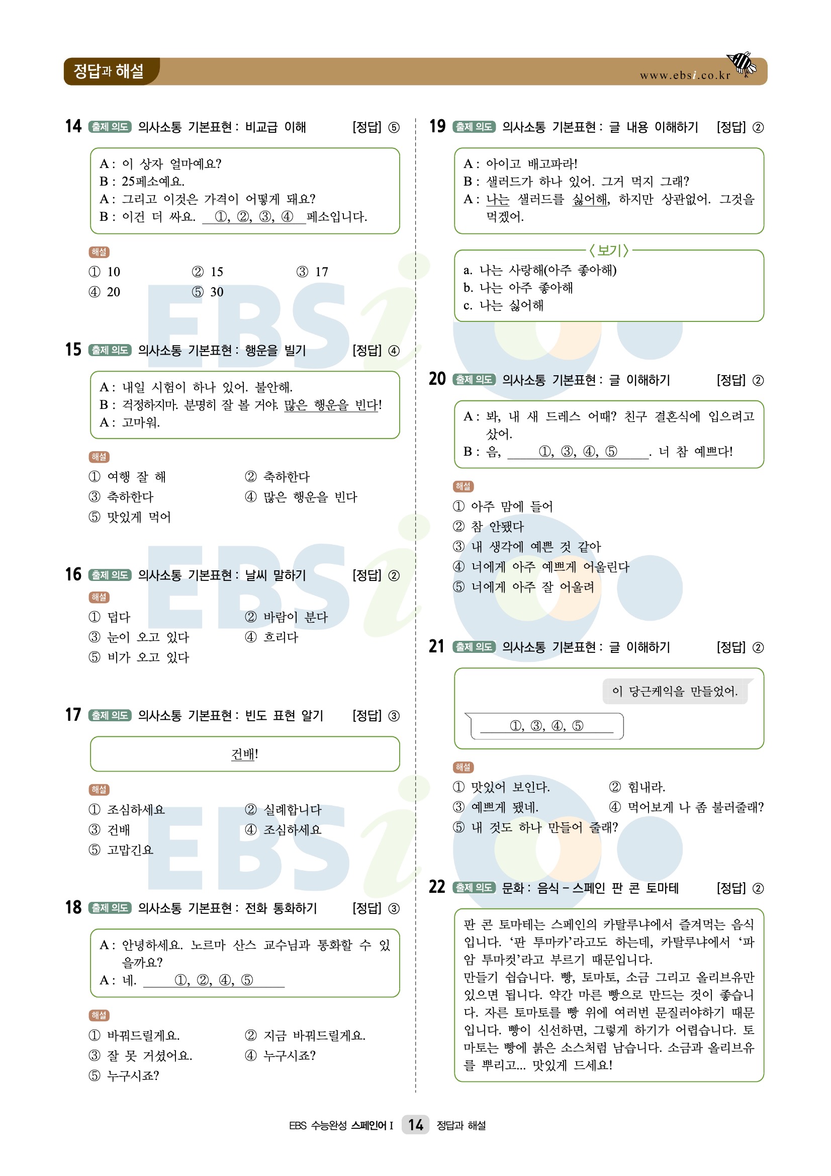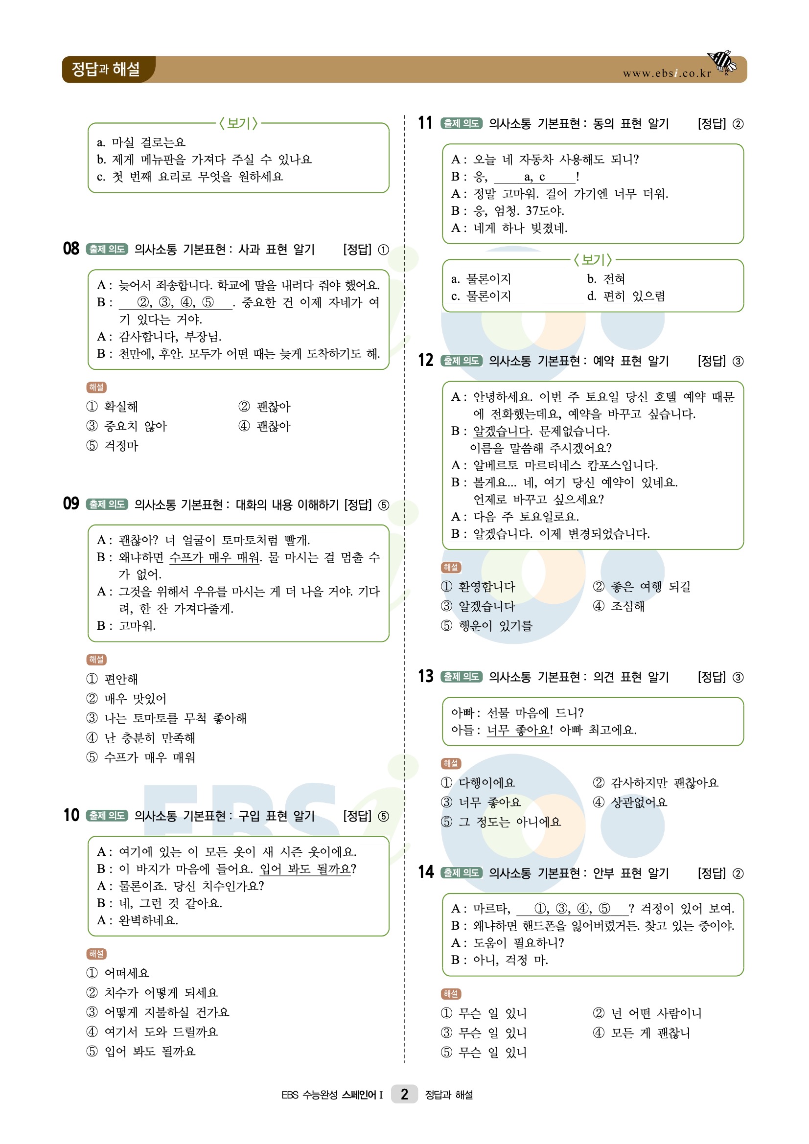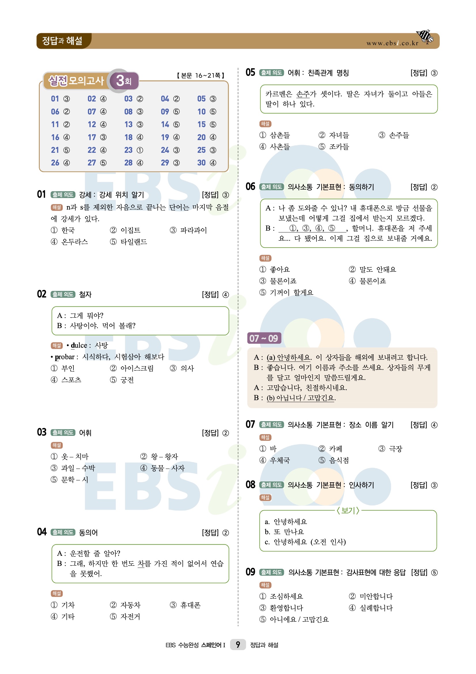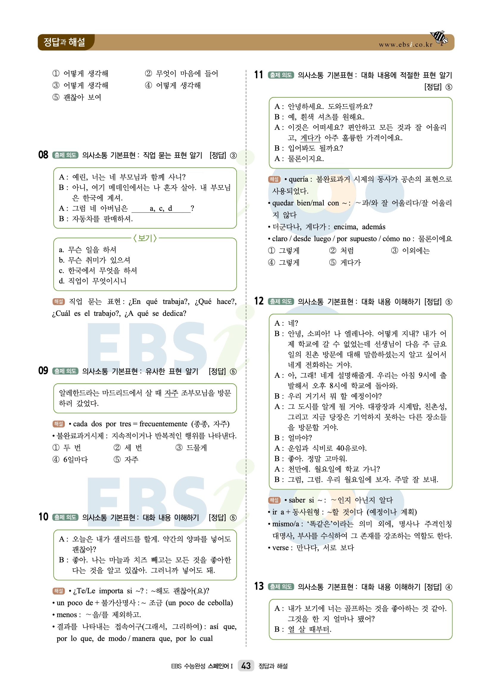 📘 2026 수능완성 스페인어1 답지 및 해설