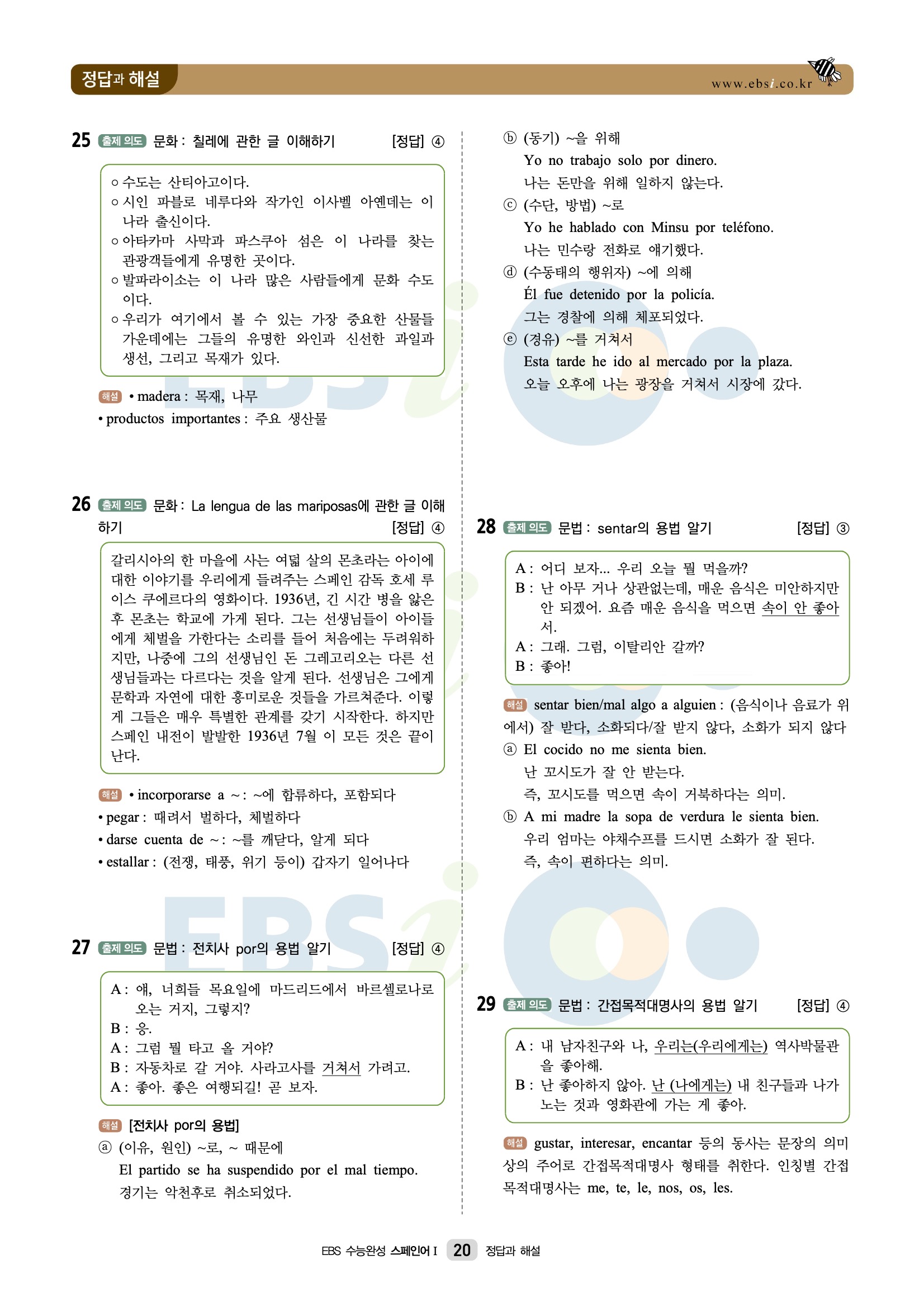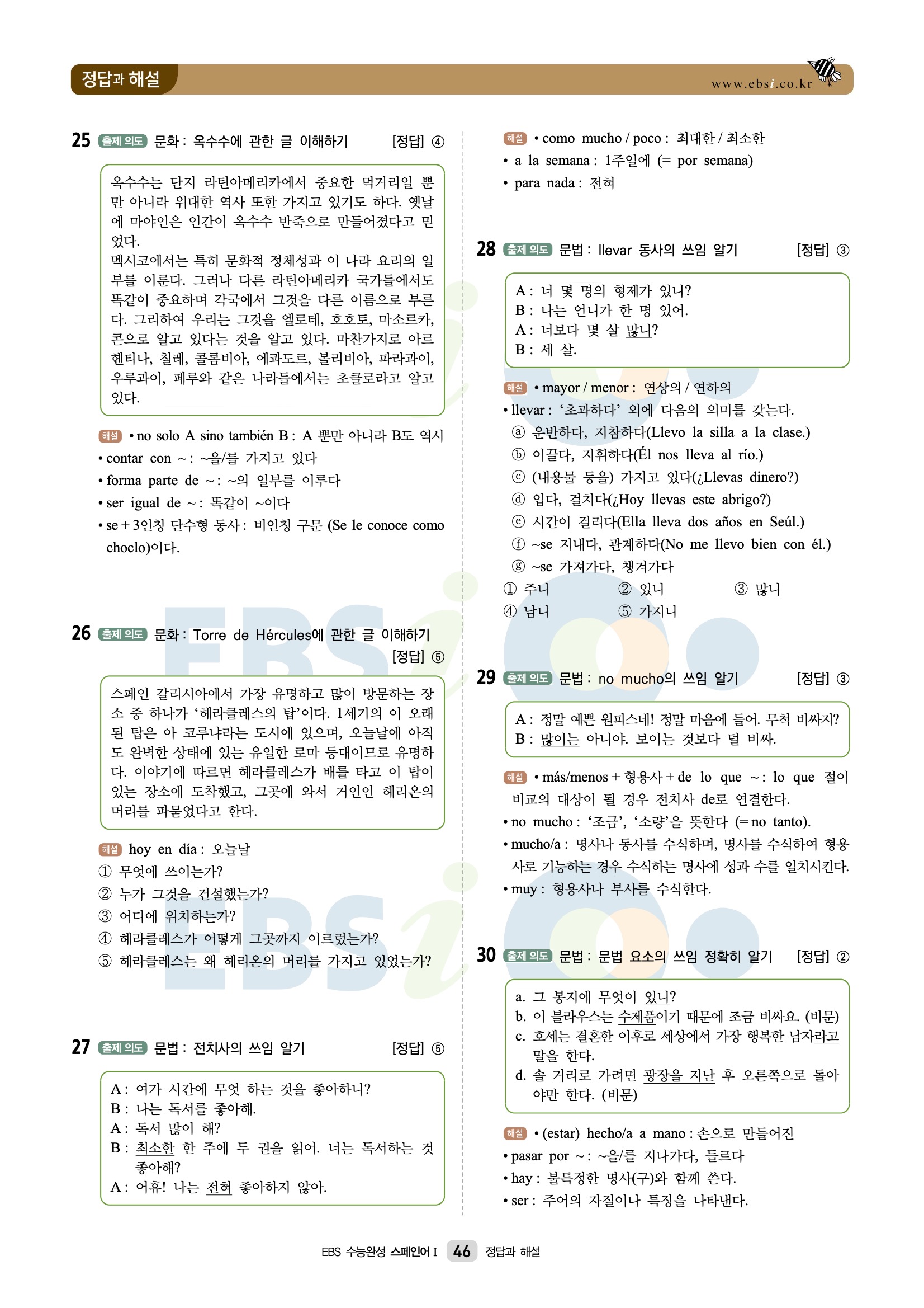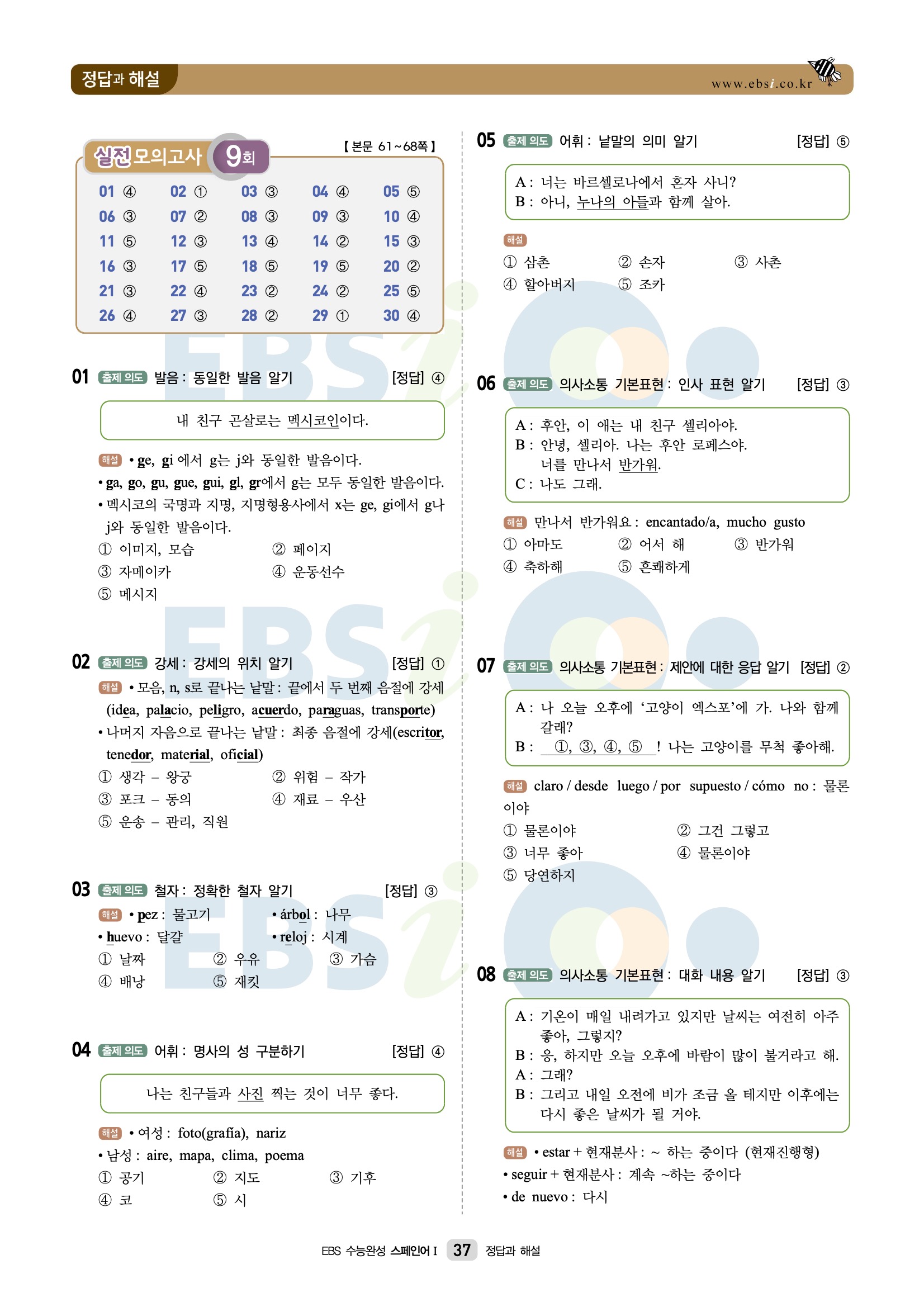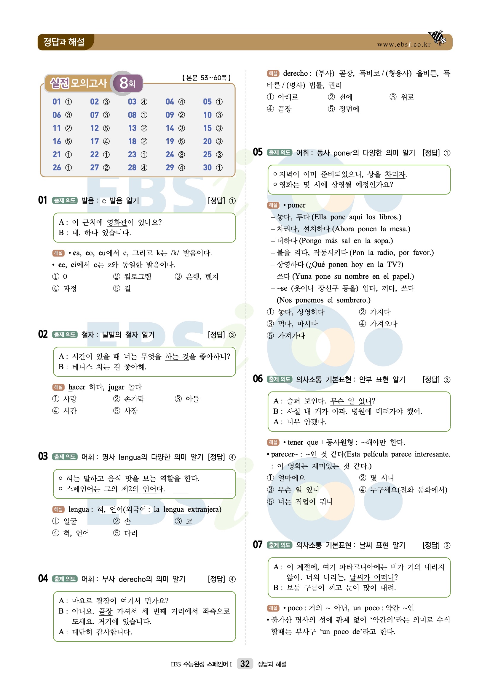 스페인어1을 효과적으로 학습하고, 수능 대비를 철저히 하고자 하는 학생들을 위해 2026 수능특강 스페인어1의 답지와 해설을 제공합니다.
