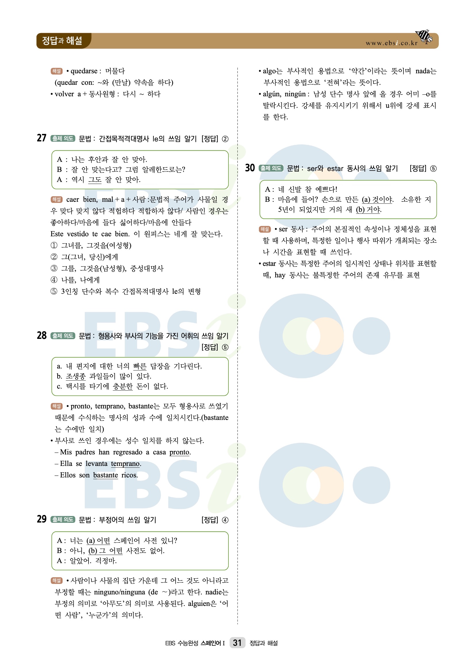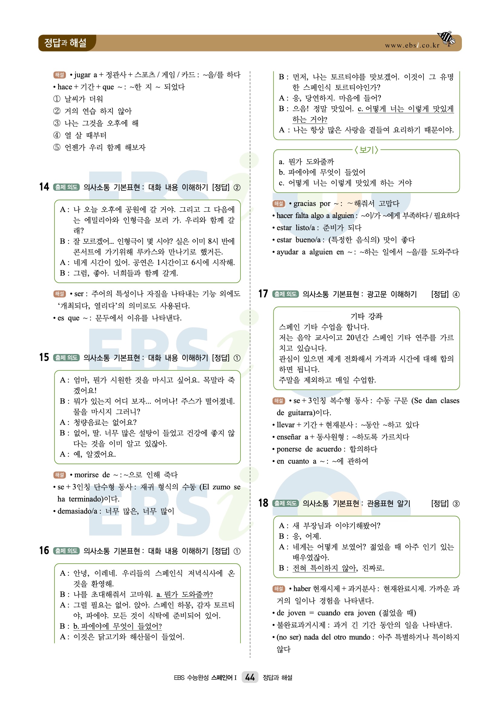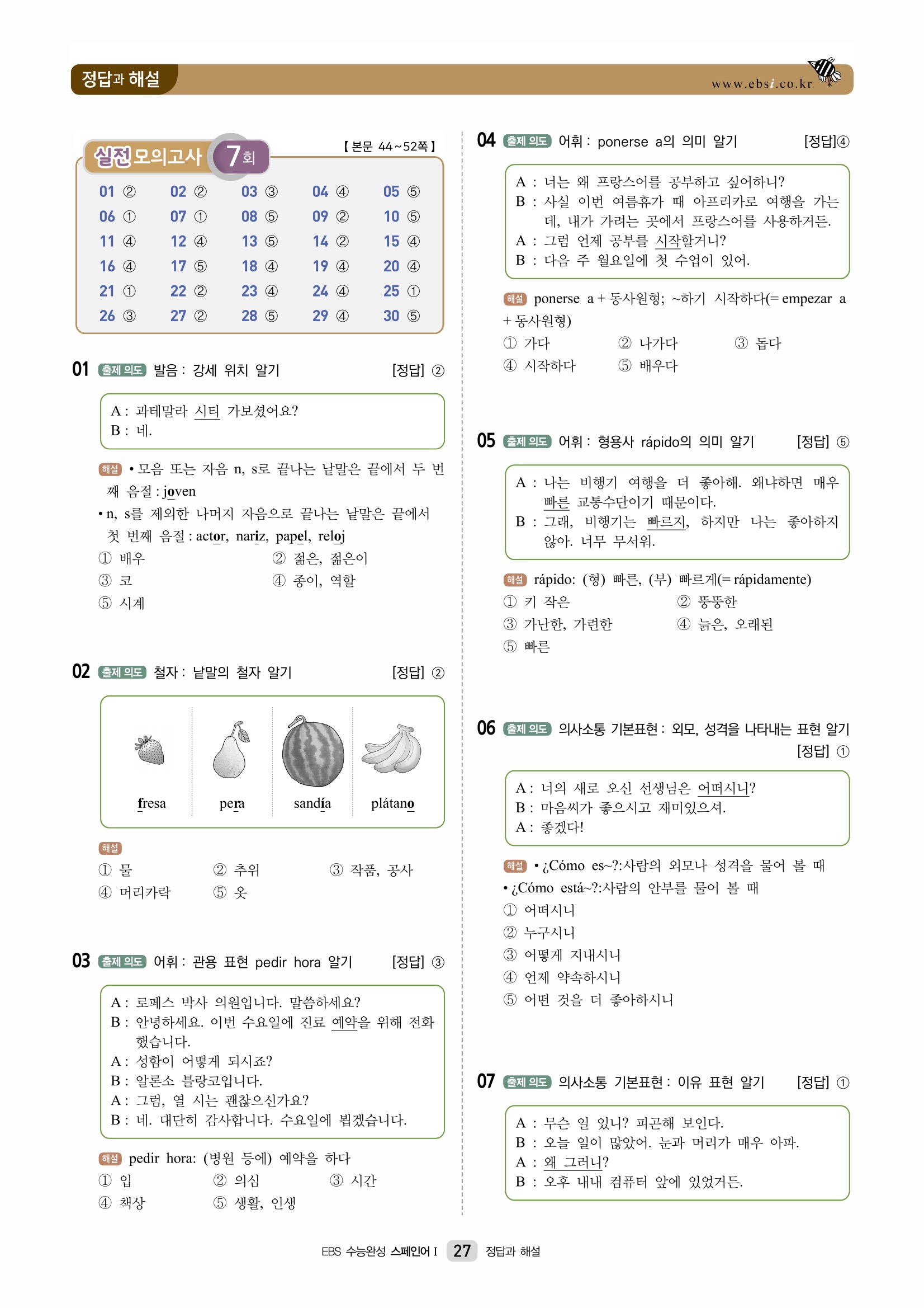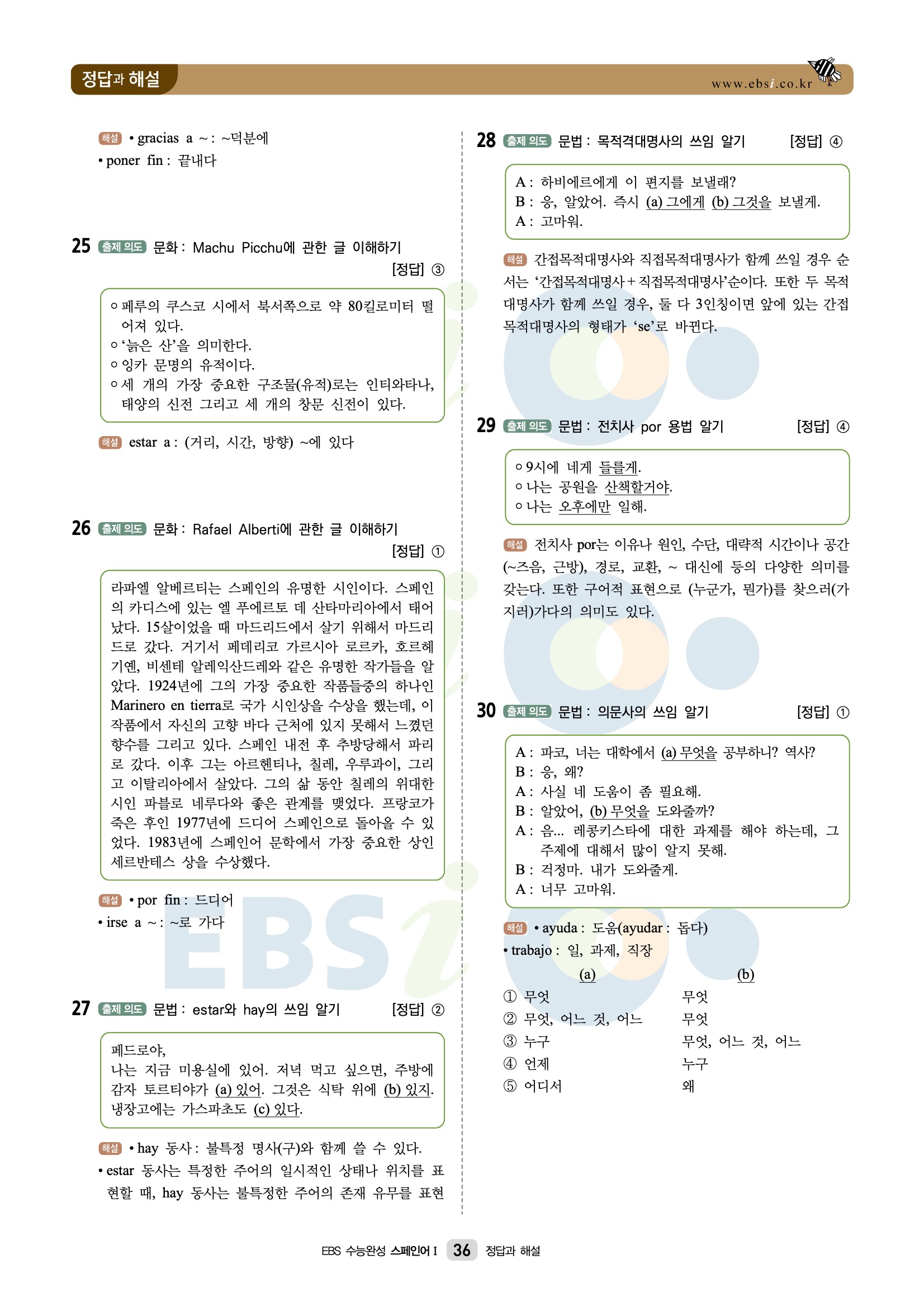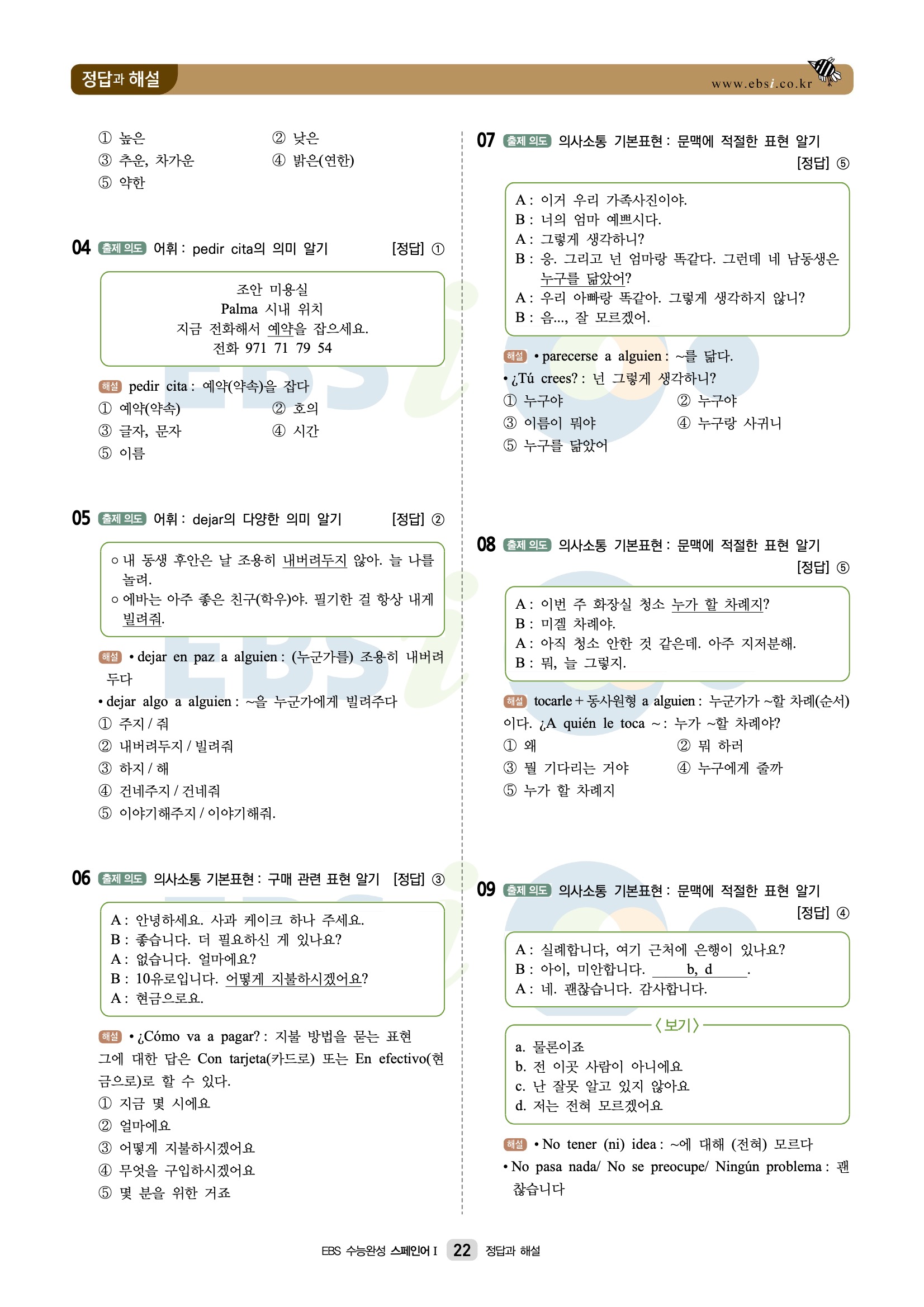 스페인어1을 효과적으로 학습하고, 수능 대비를 철저히 하고자 하는 학생들을 위해 2026 수능특강 스페인어1의 답지와 해설을 제공합니다.