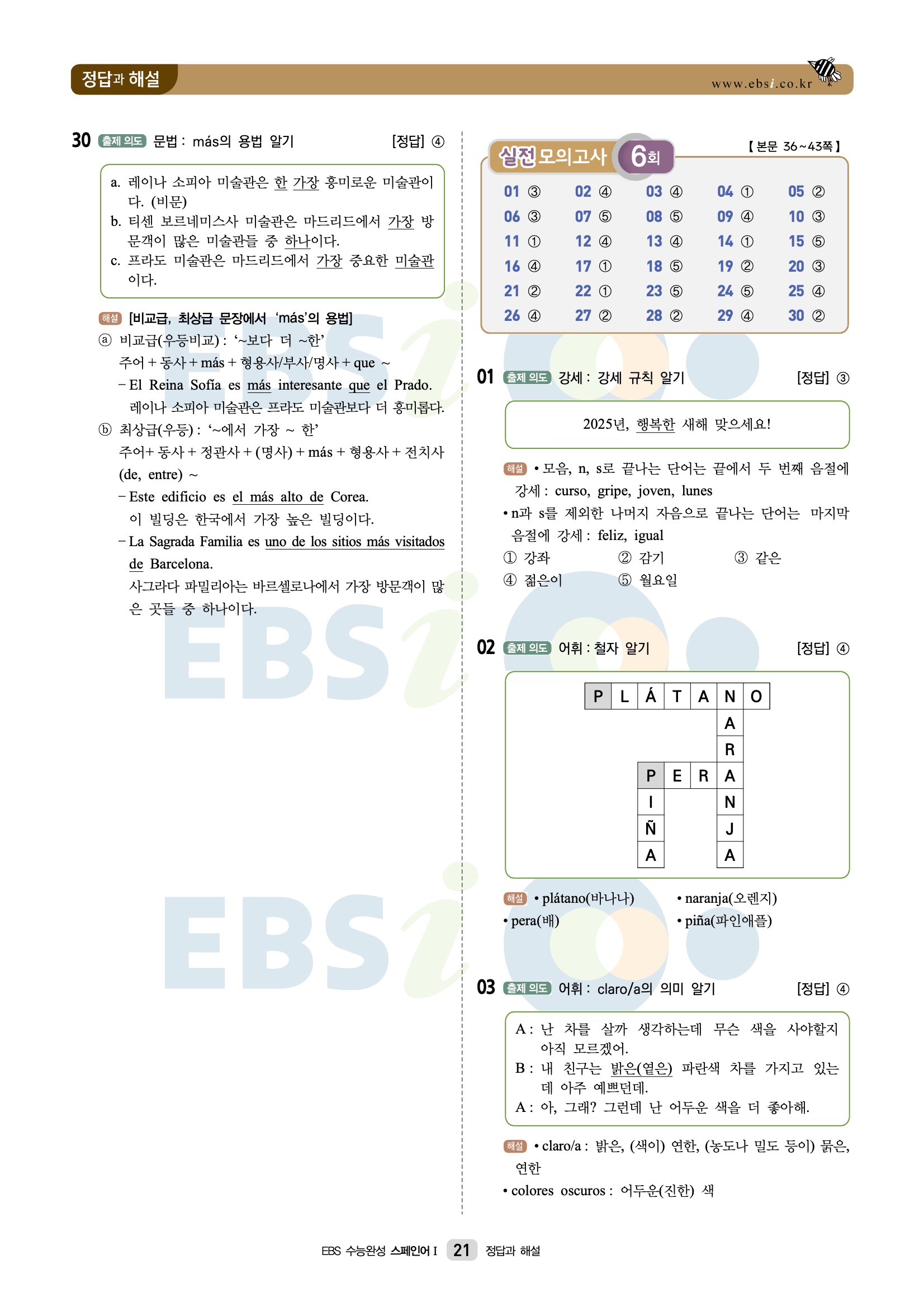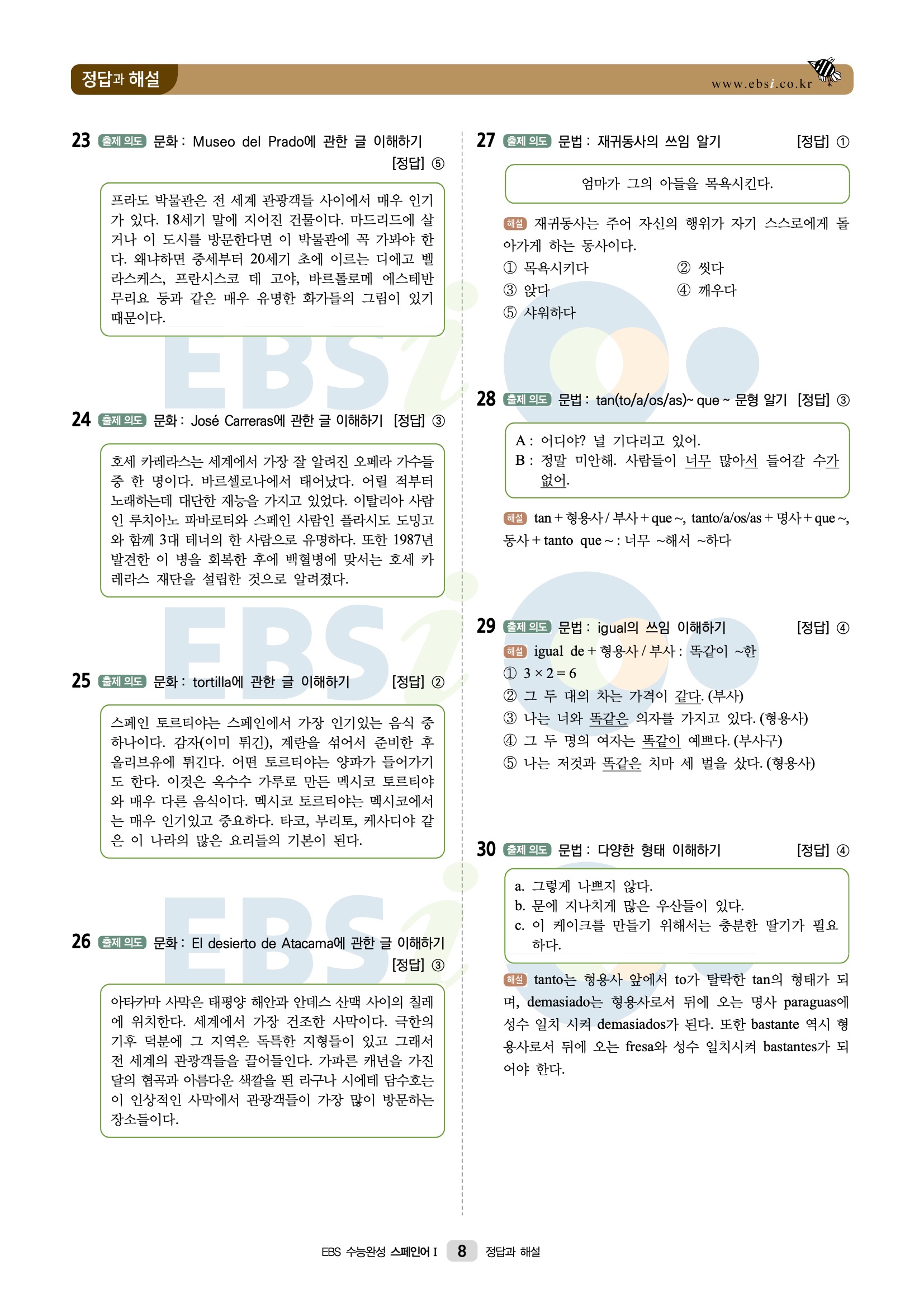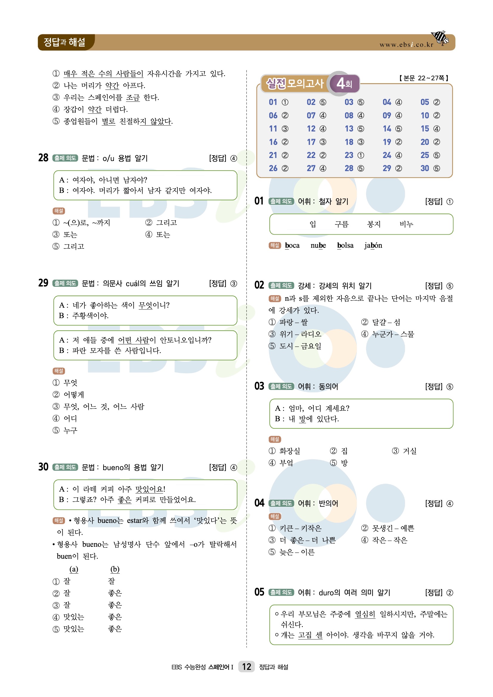 2026 수능특강 스페인어1의 답지와 해설을 통해 효과적으로 학습하고, 수능에서 좋은 성과를 거두시기 바랍니다.