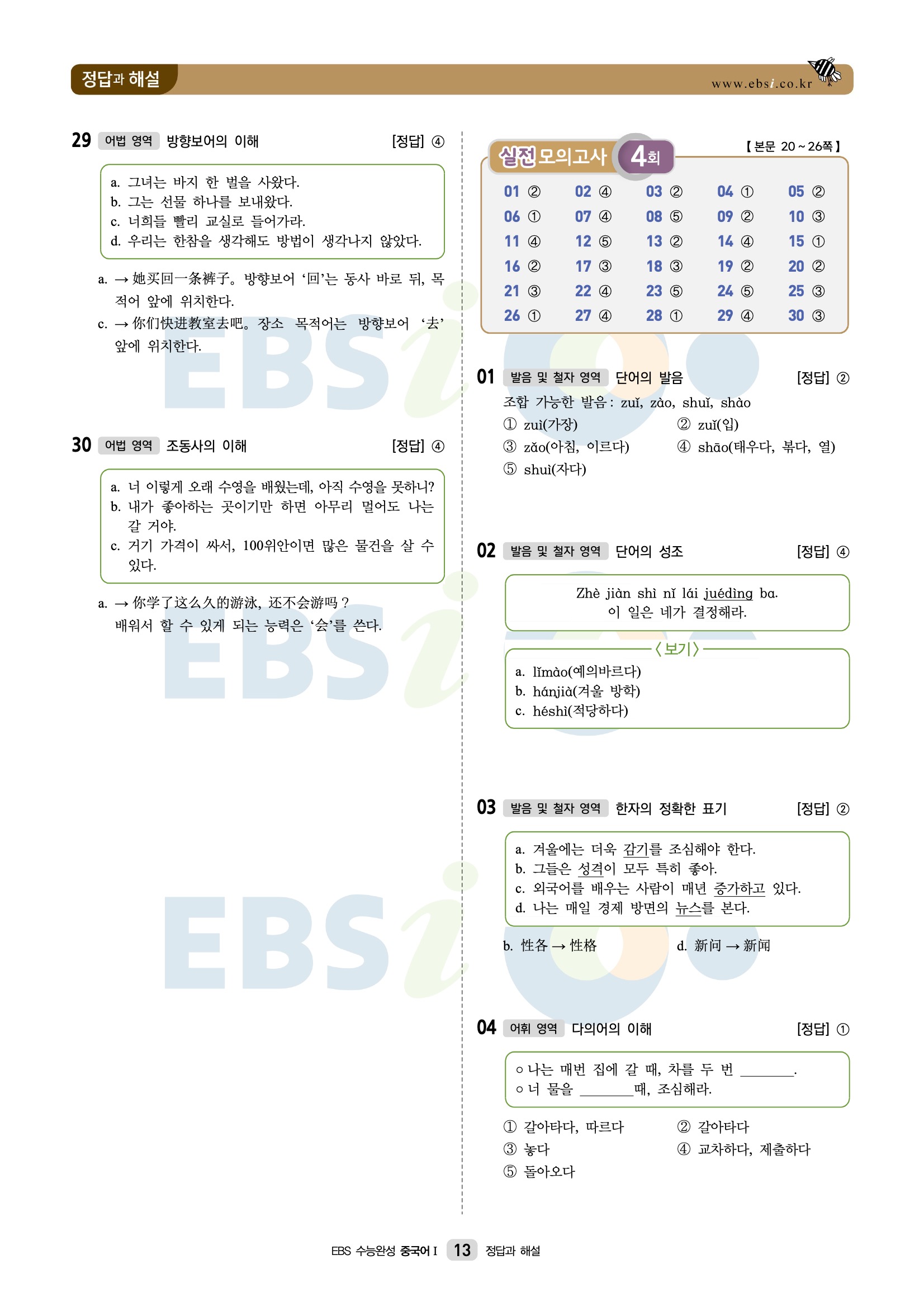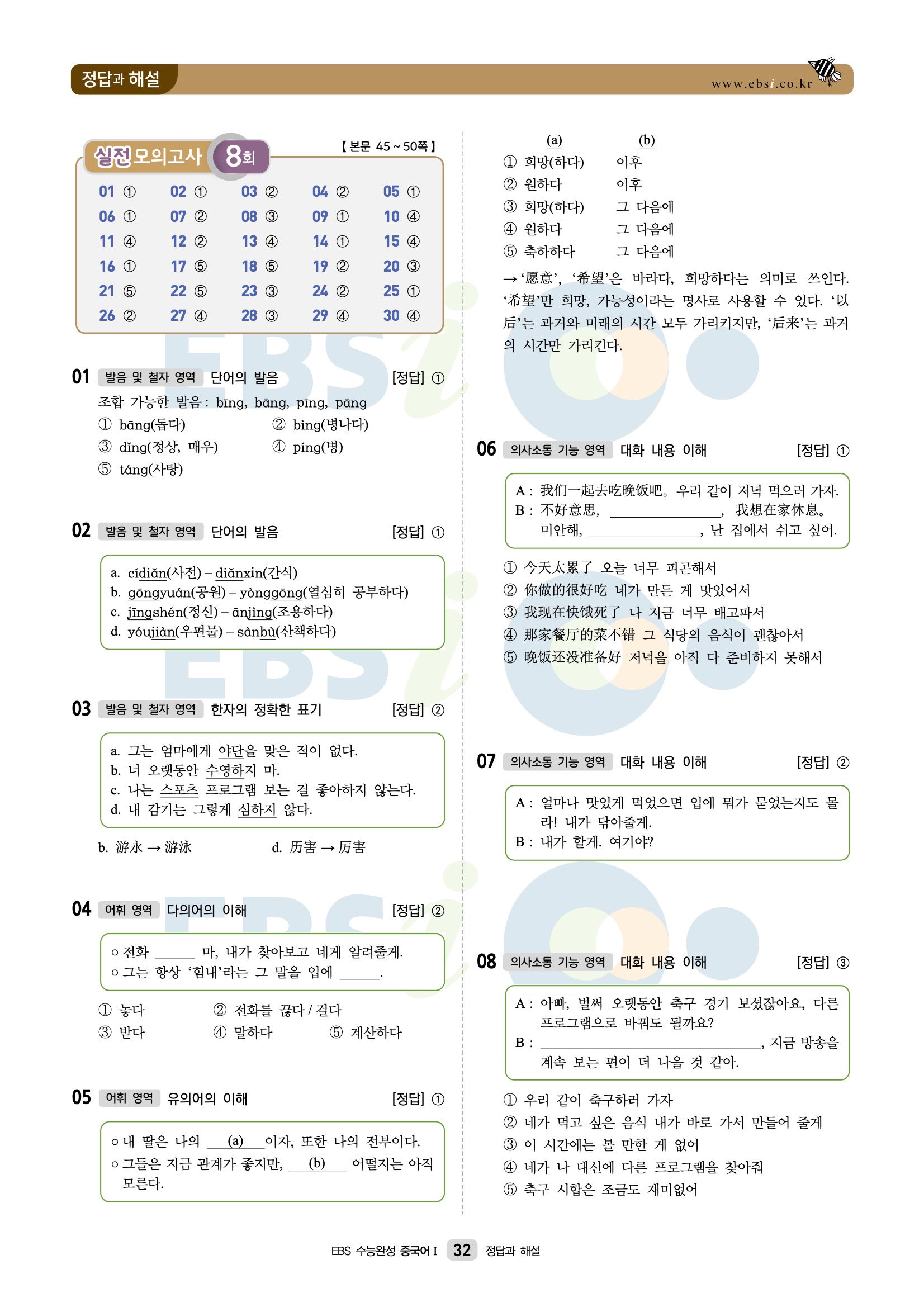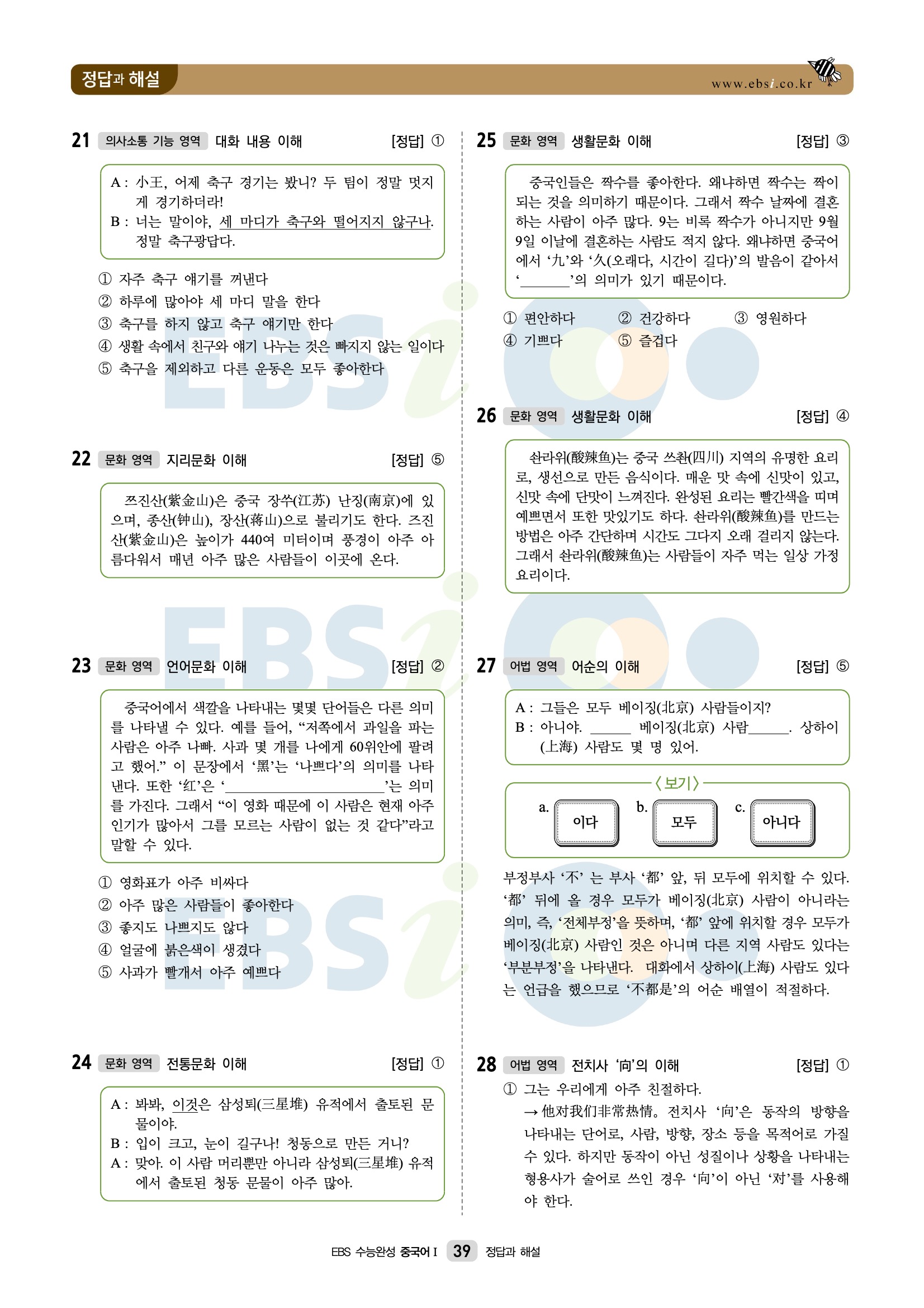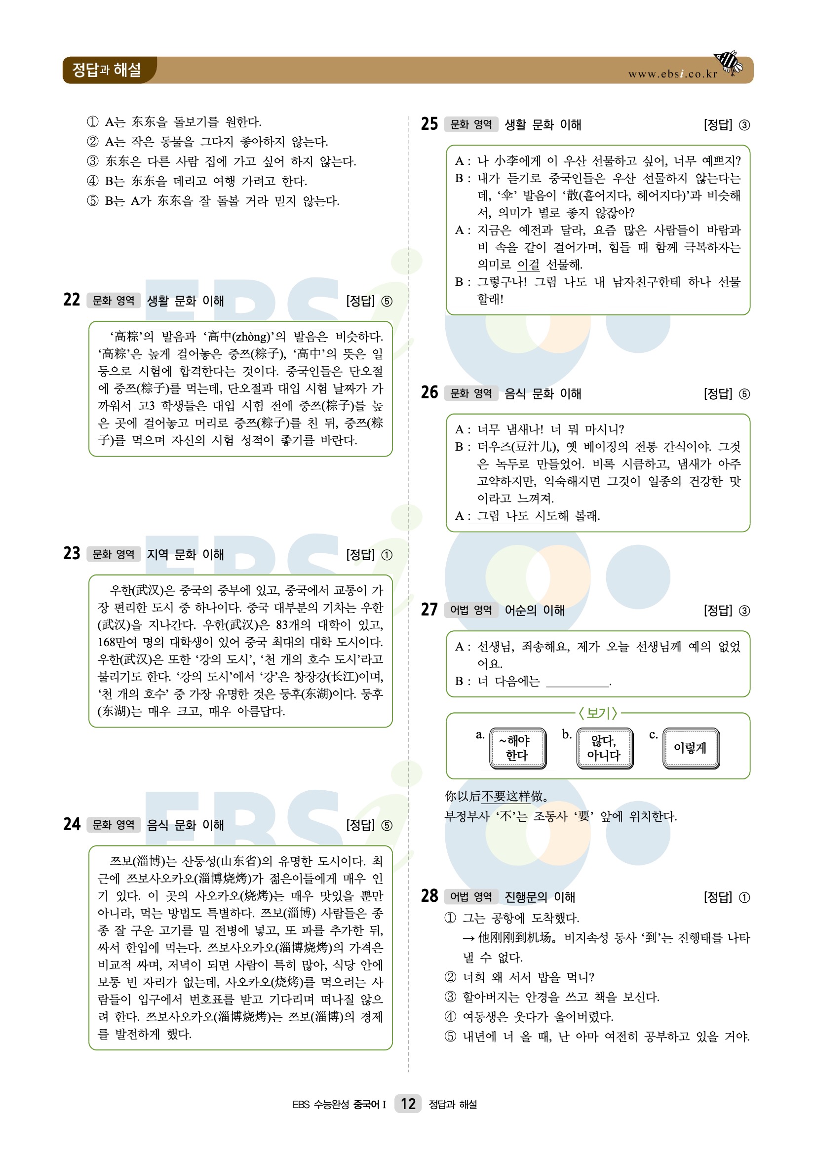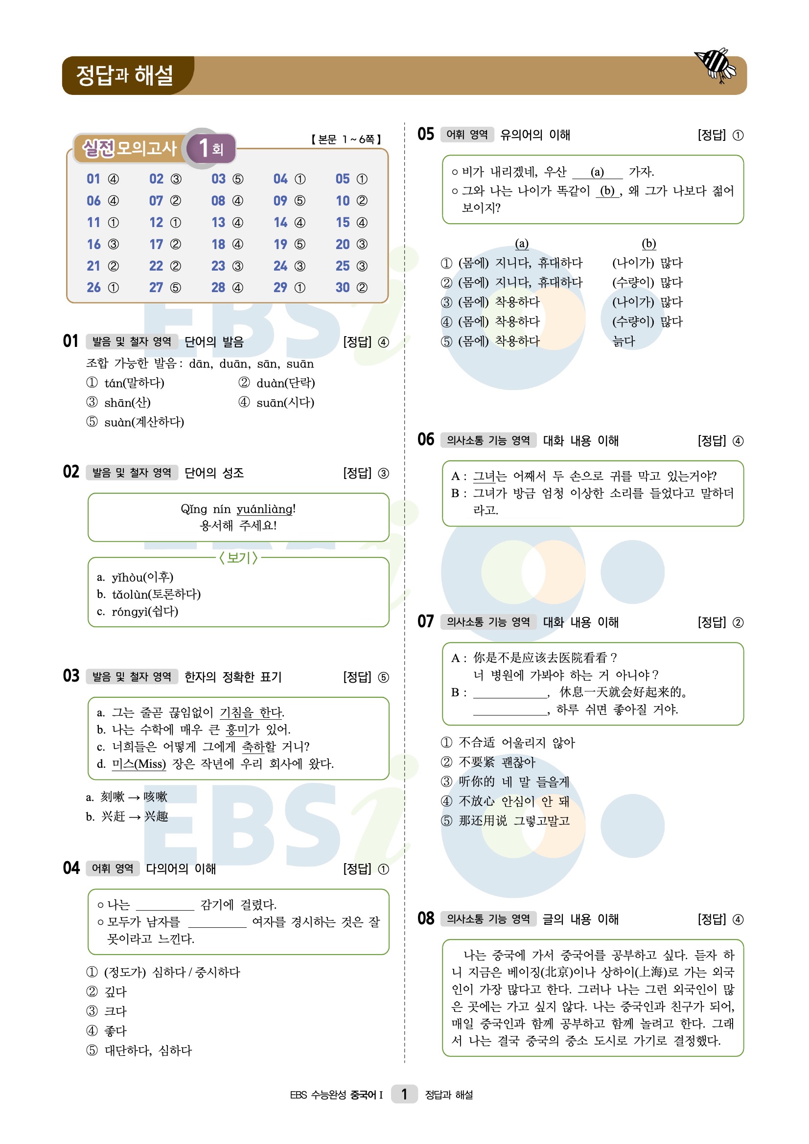 중국어1을 효과적으로 학습하고, 수능 대비를 철저히 하고자 하는 학생들을 위해 2026 수능특강 중국어1의 답지와 해설을 제공합니다.