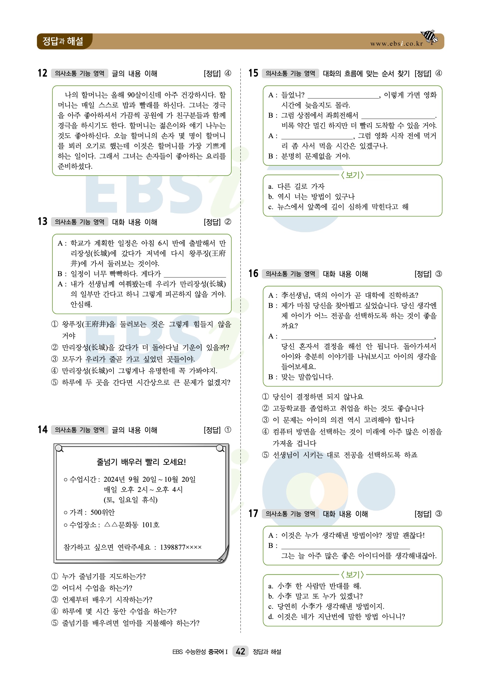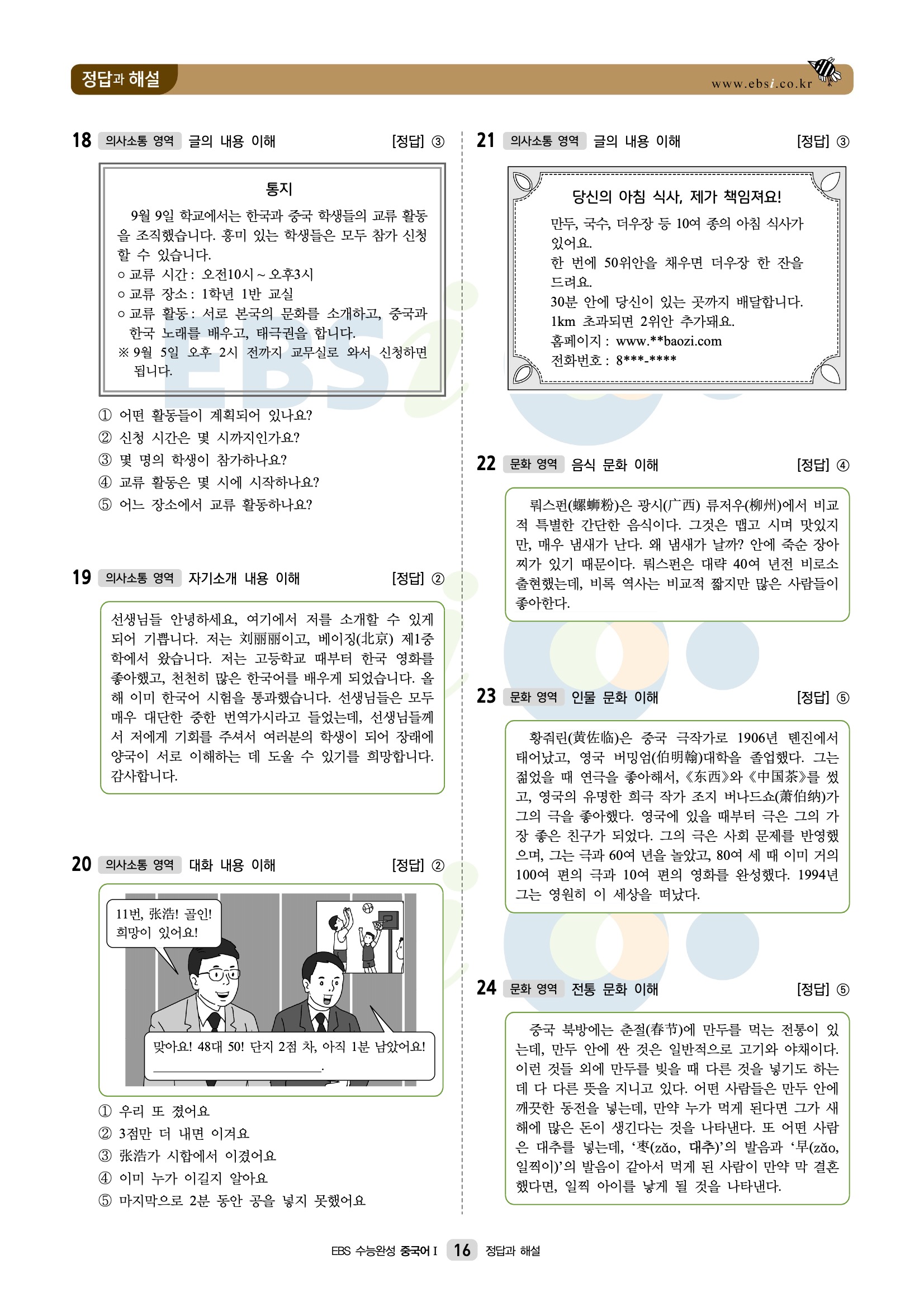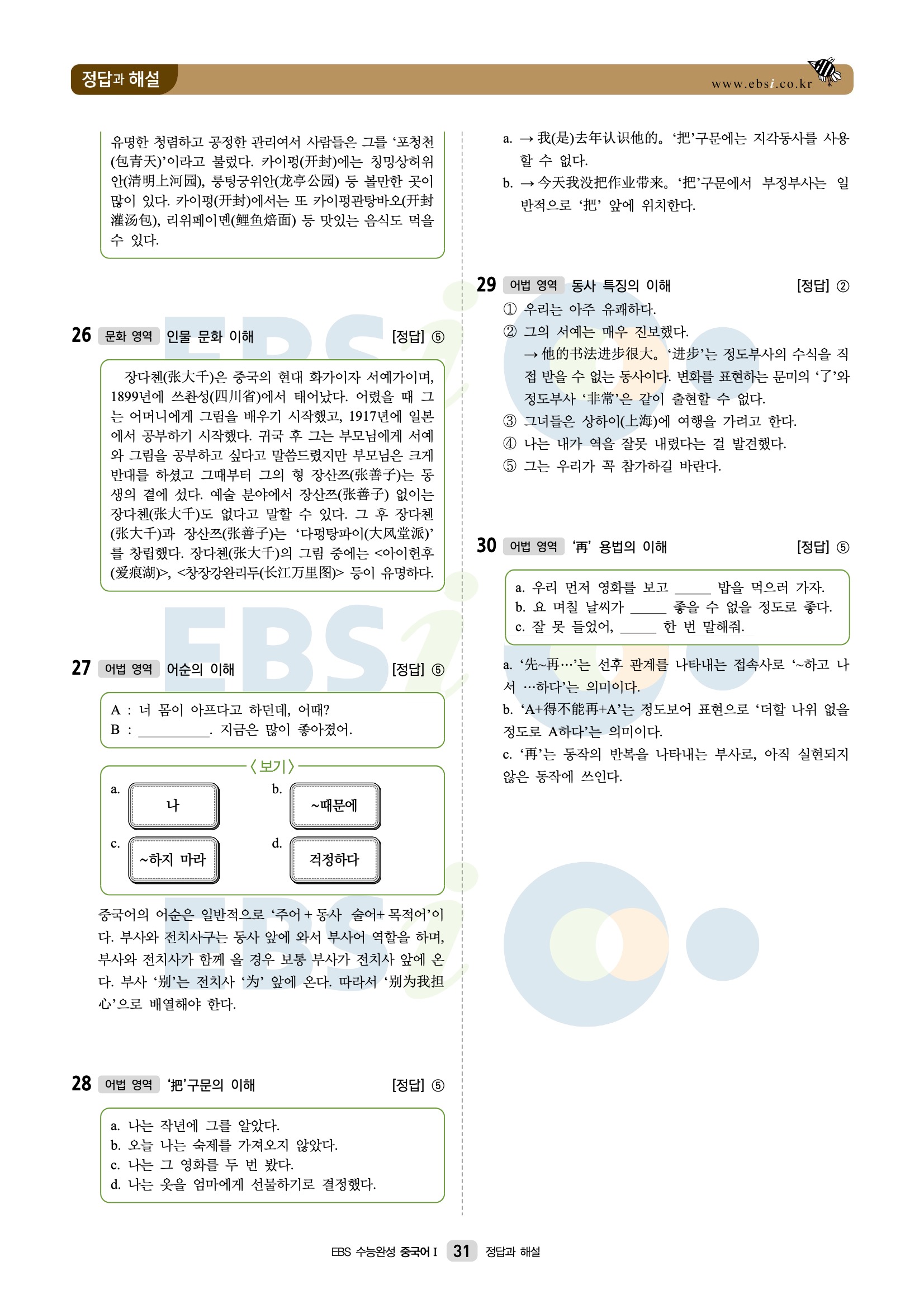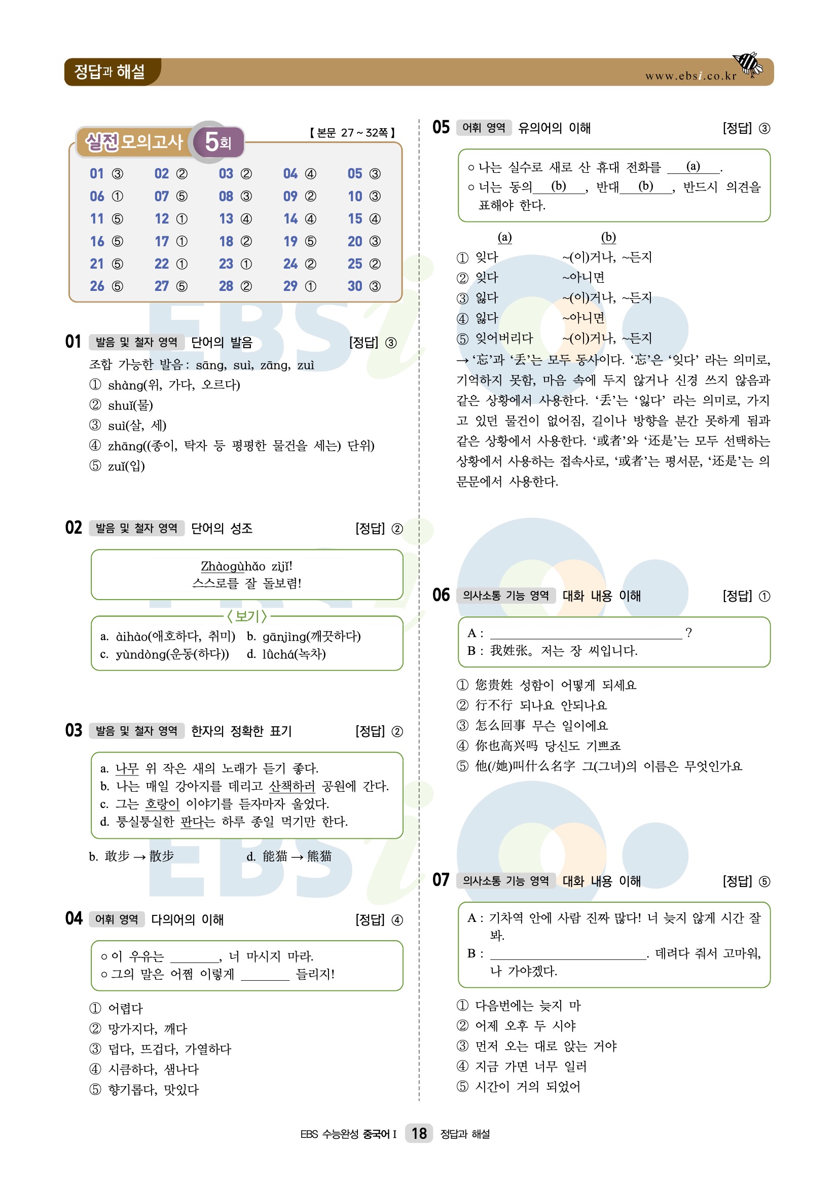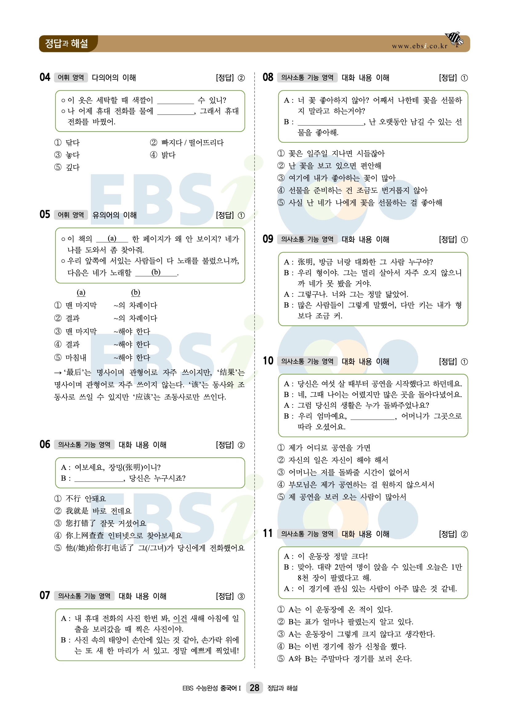 중국어1을 효과적으로 학습하고, 수능 대비를 철저히 하고자 하는 학생들을 위해 2026 수능특강 중국어1의 답지와 해설을 제공합니다.