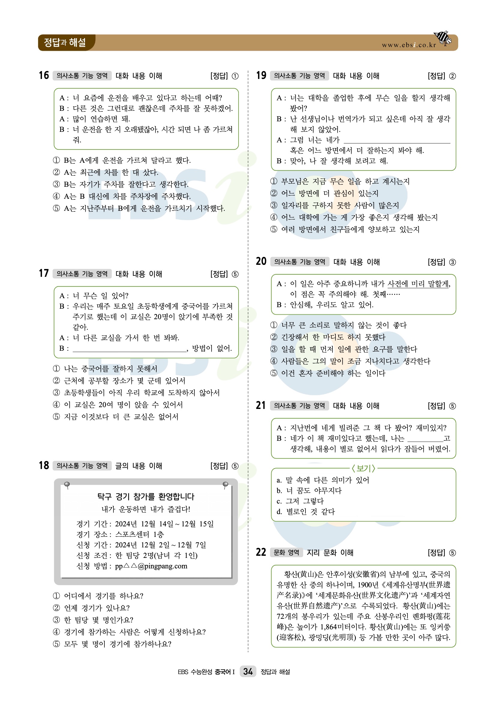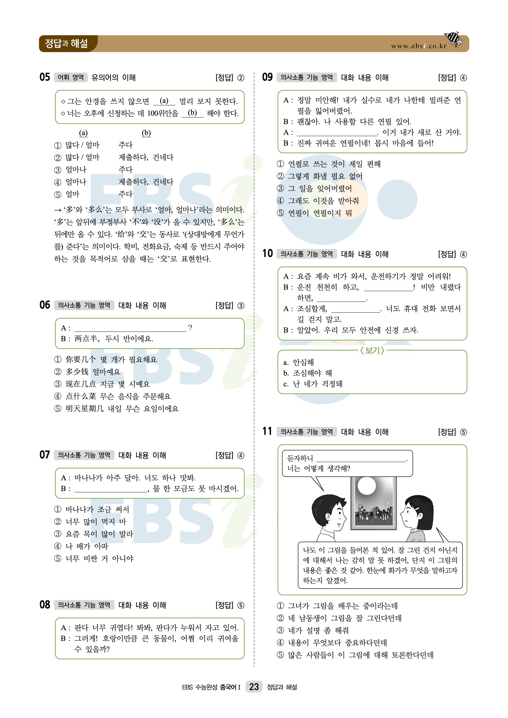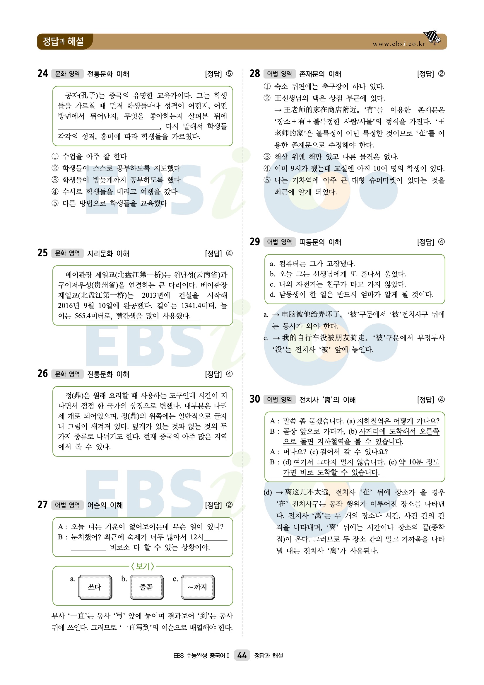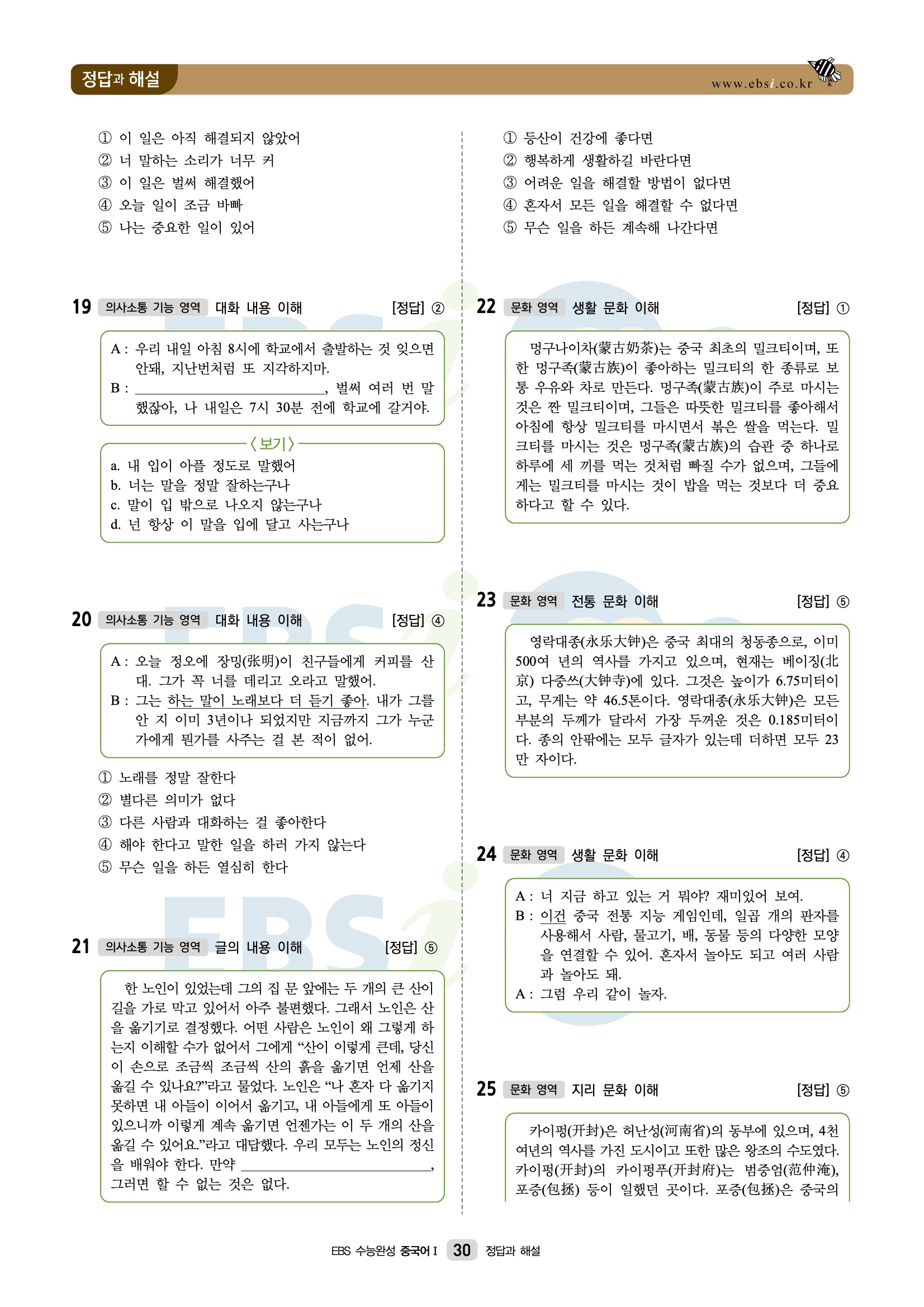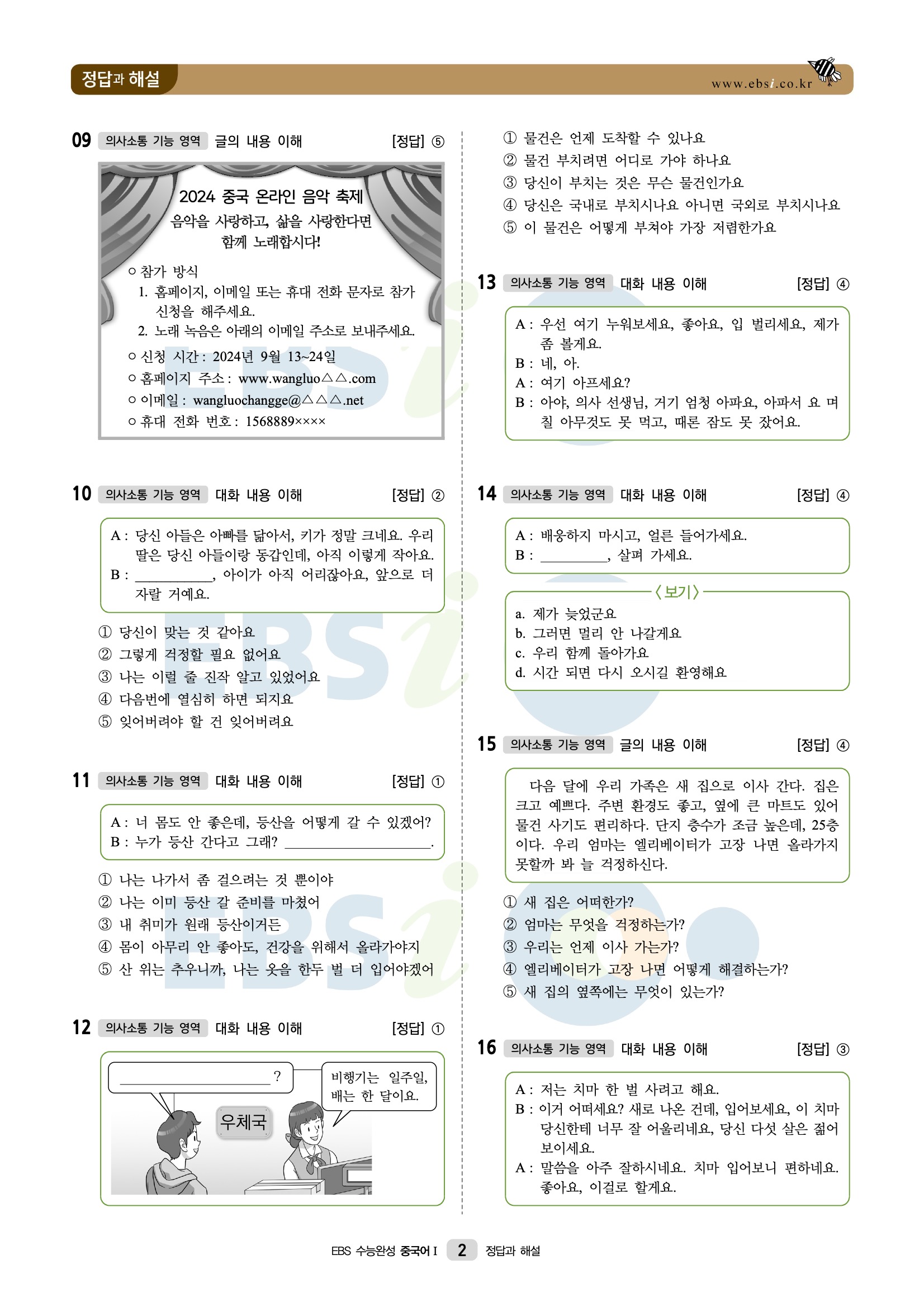 📷 2026 수능특강 중국어1 바로보는 사진답지