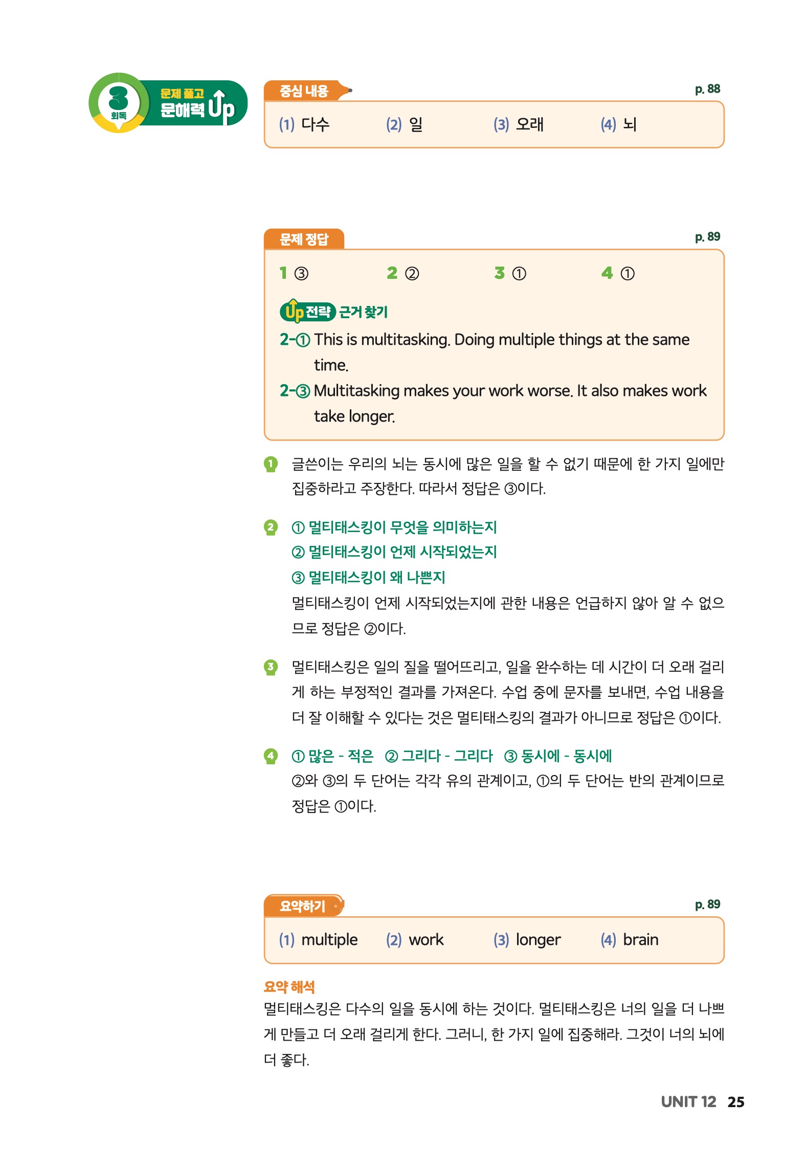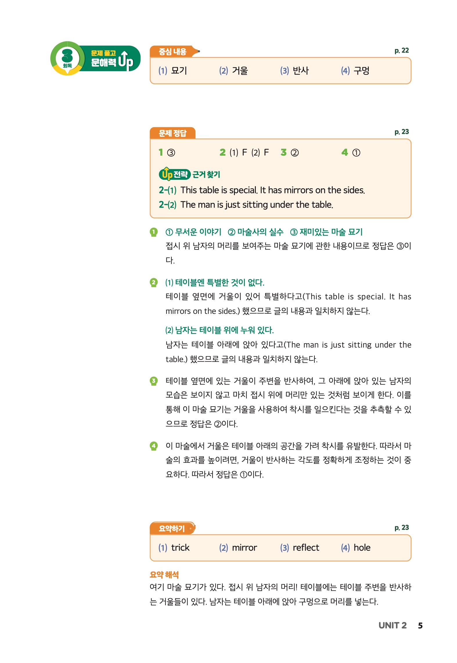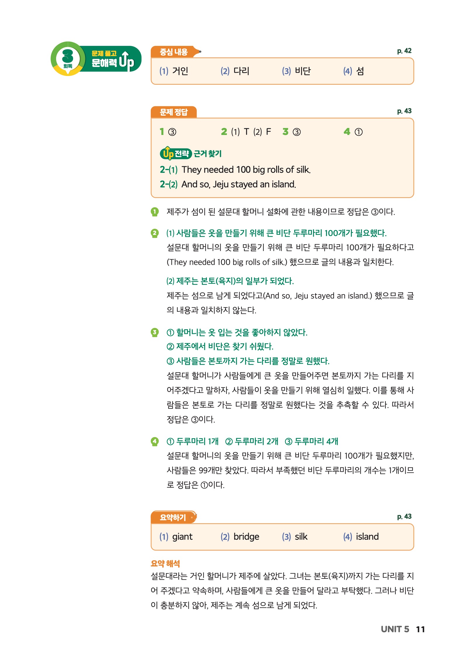 아래는 독해력 향상과 문해력 학습에 도움이 되는 다른 교재의 답지와 해설을 제공하는 포스팅입니다.