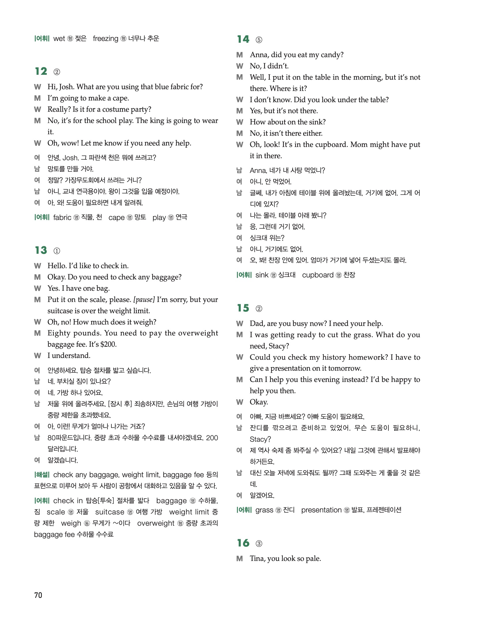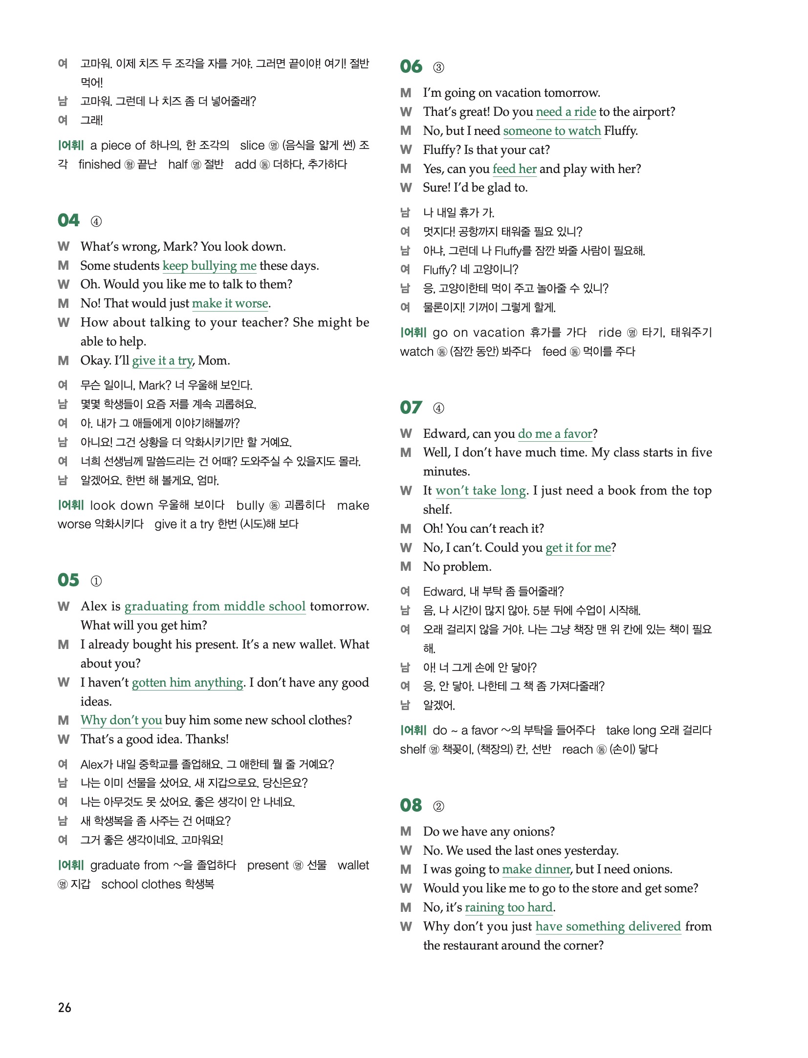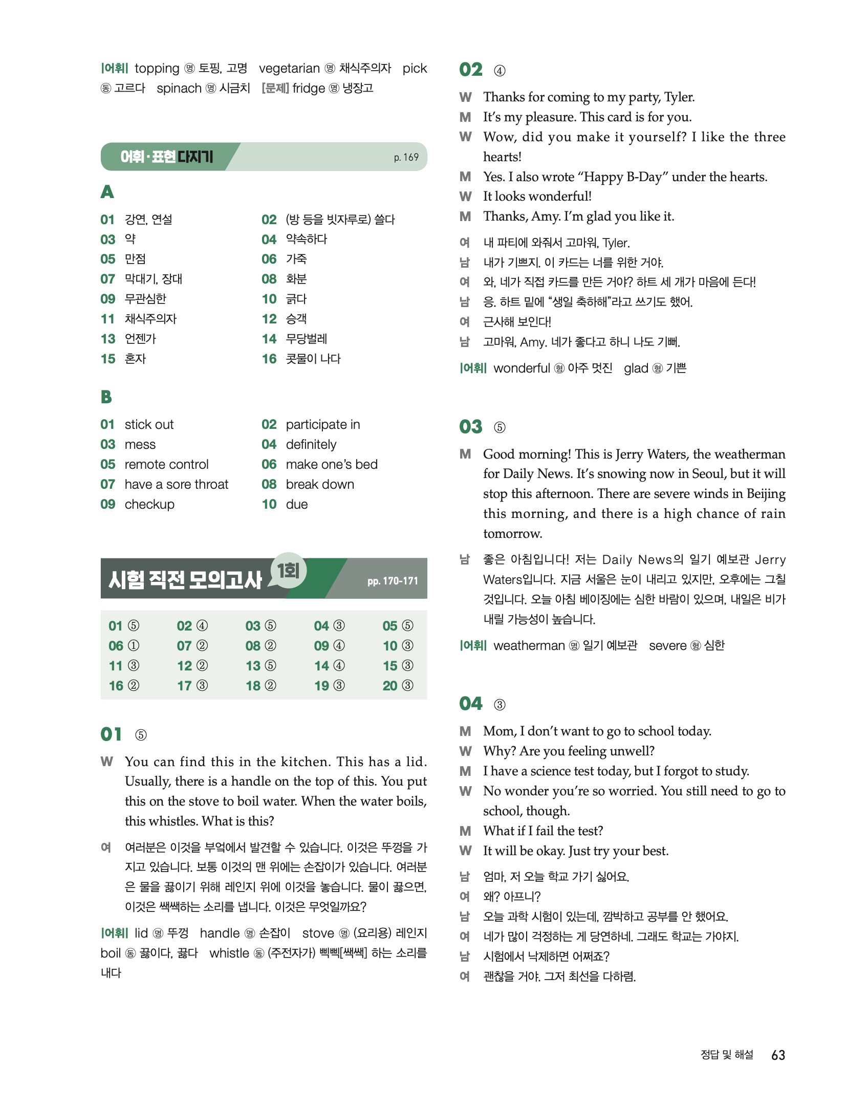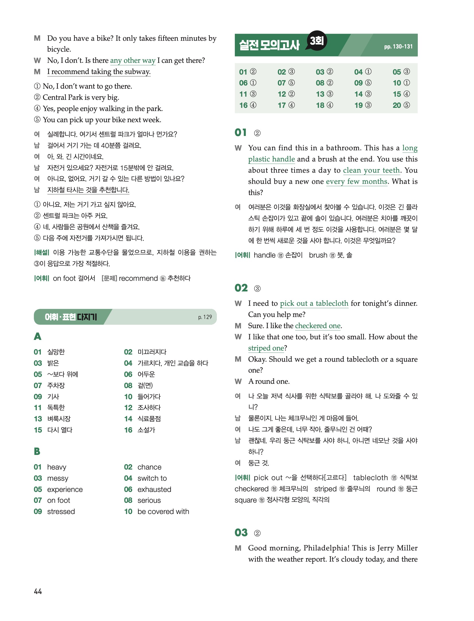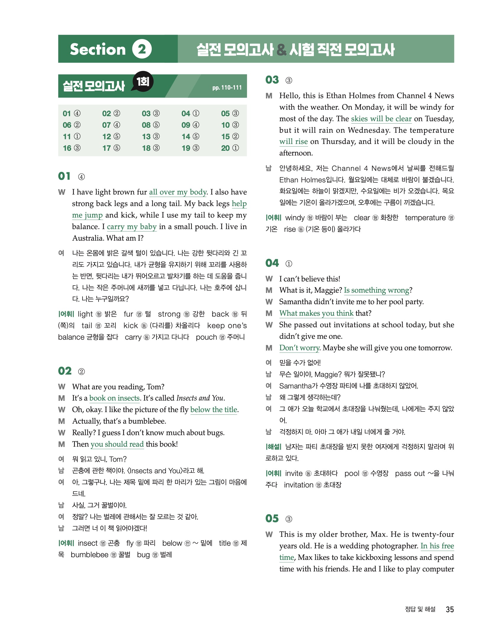 1316 리스닝 레벨1의 답지와 해설을 통해 효과적으로 학습하고, 듣기 실력을 향상시켜 좋은 성과를 거두시기 바랍니다.