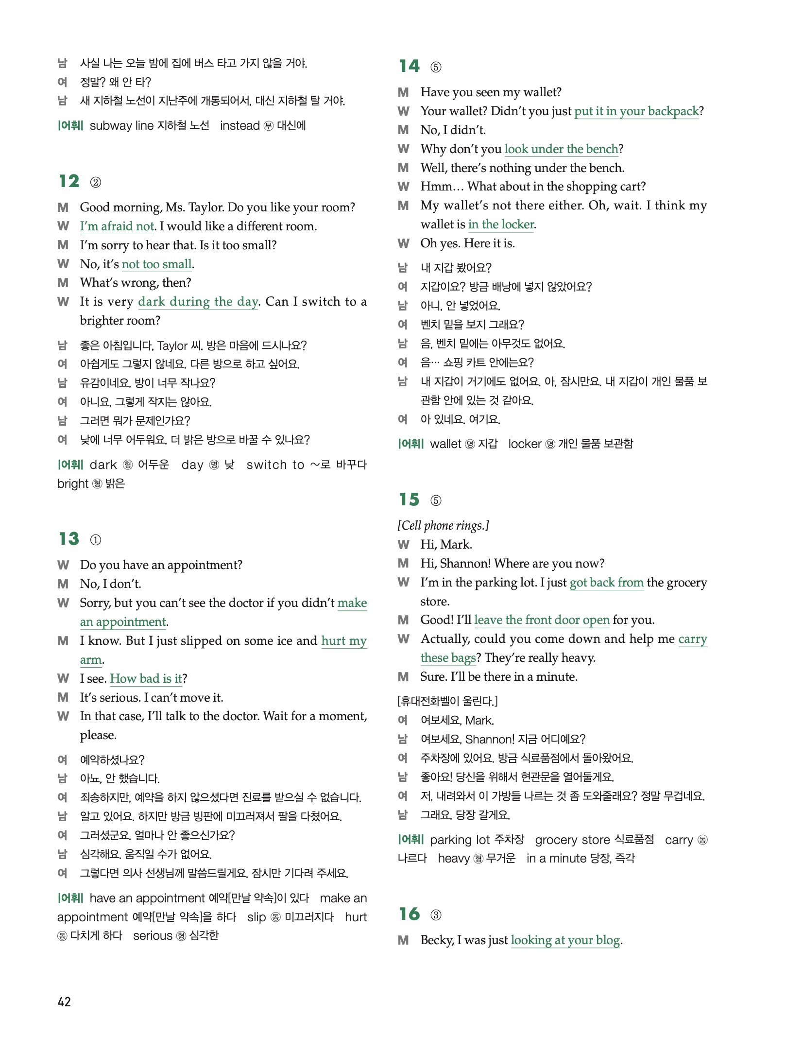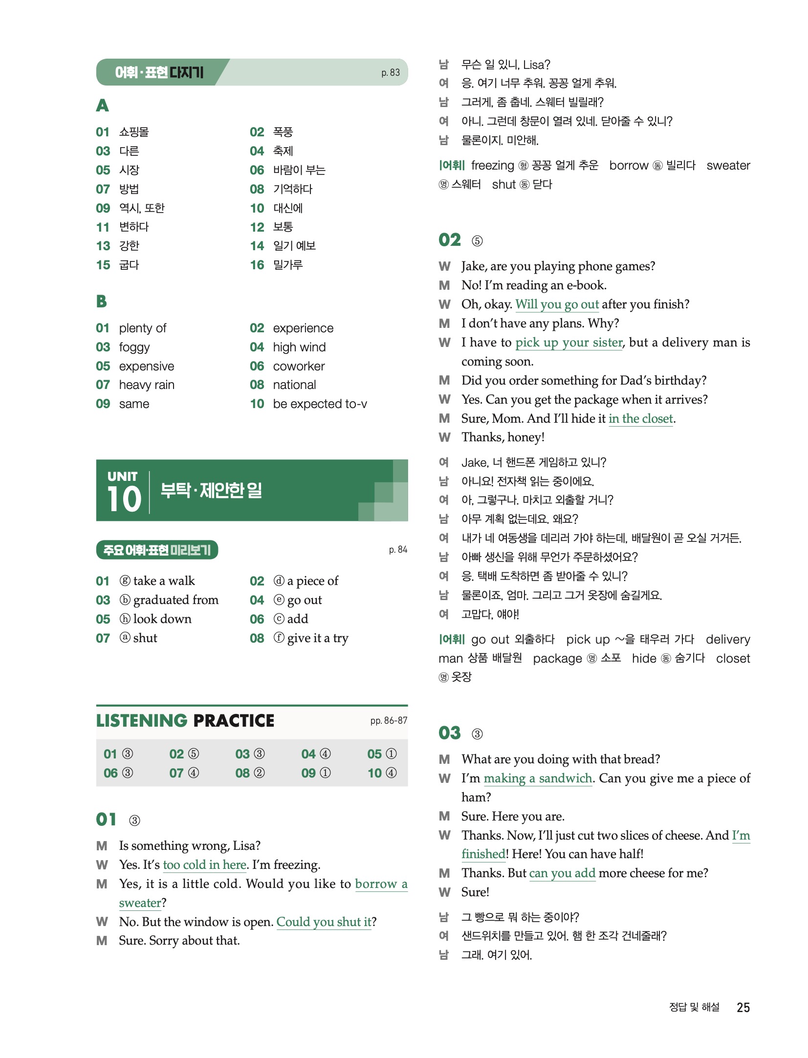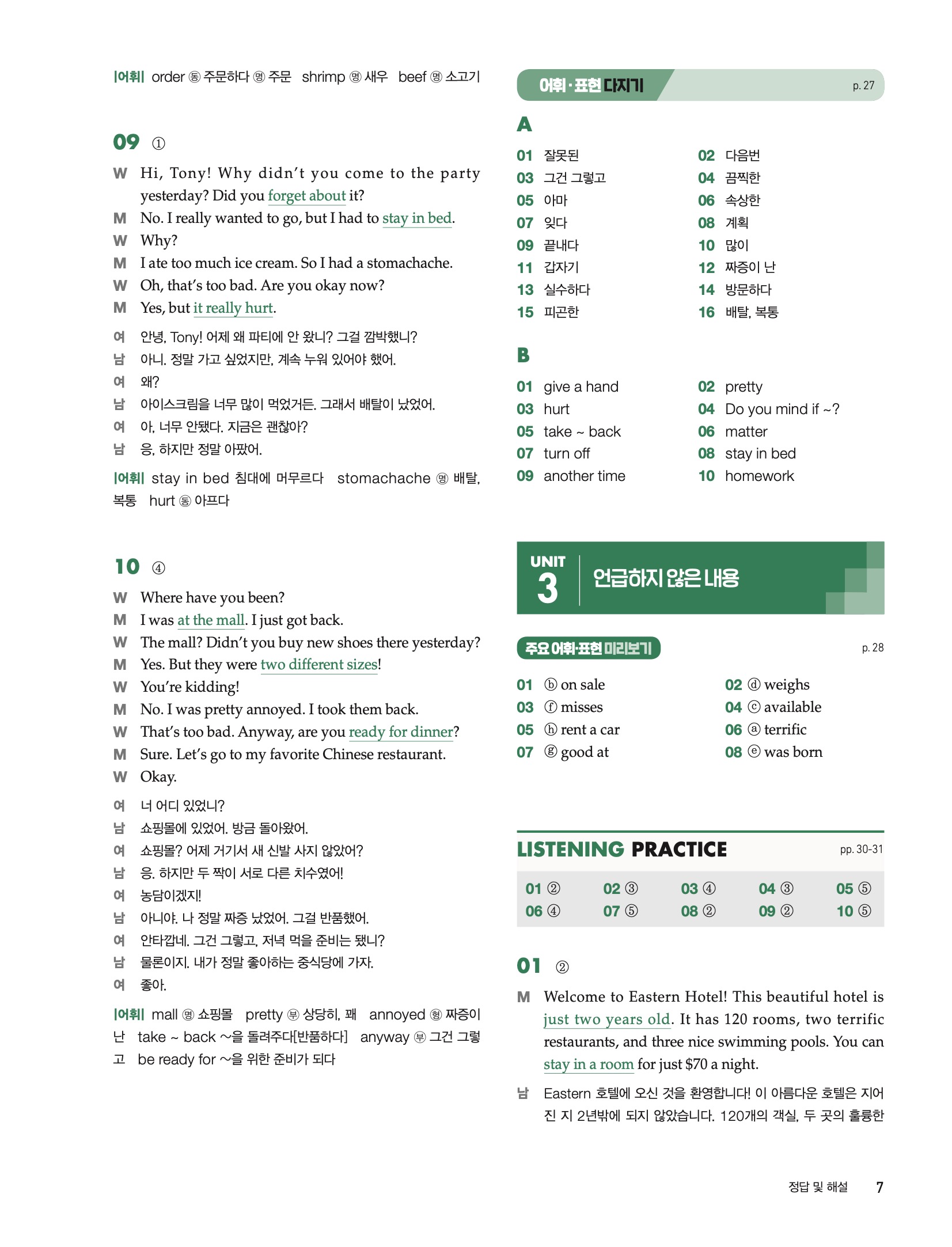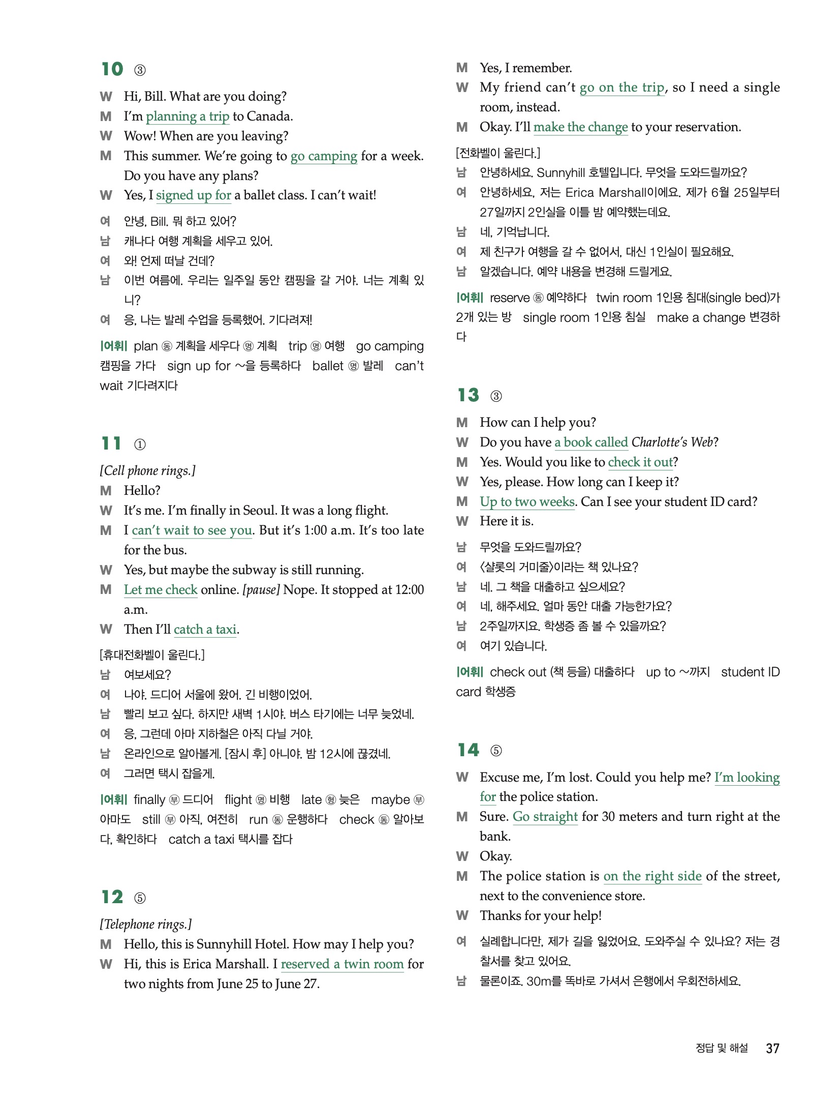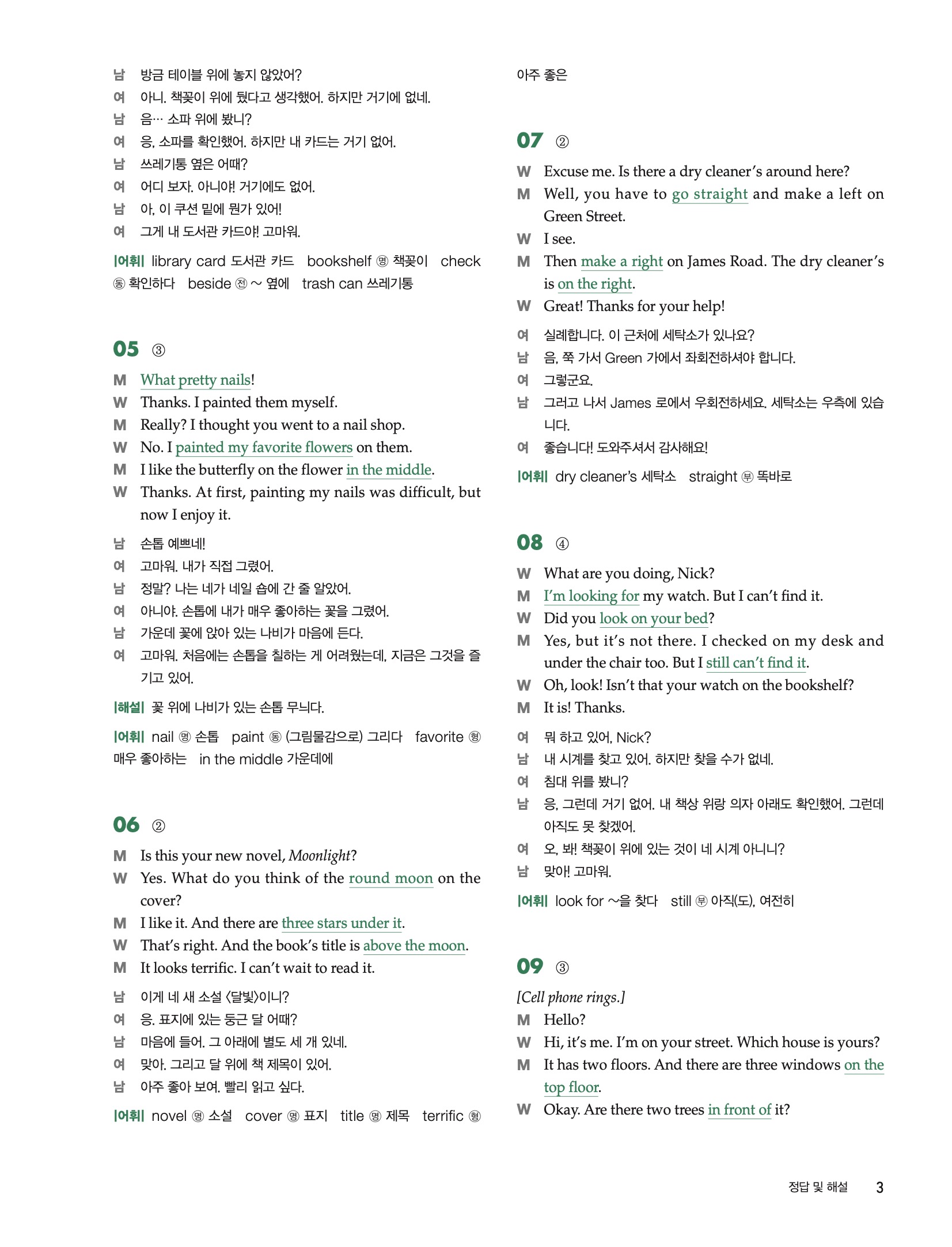 아래는 듣기 실력 향상과 영어 학습에 도움이 되는 다른 교재의 답지와 해설을 제공하는 포스팅입니다.