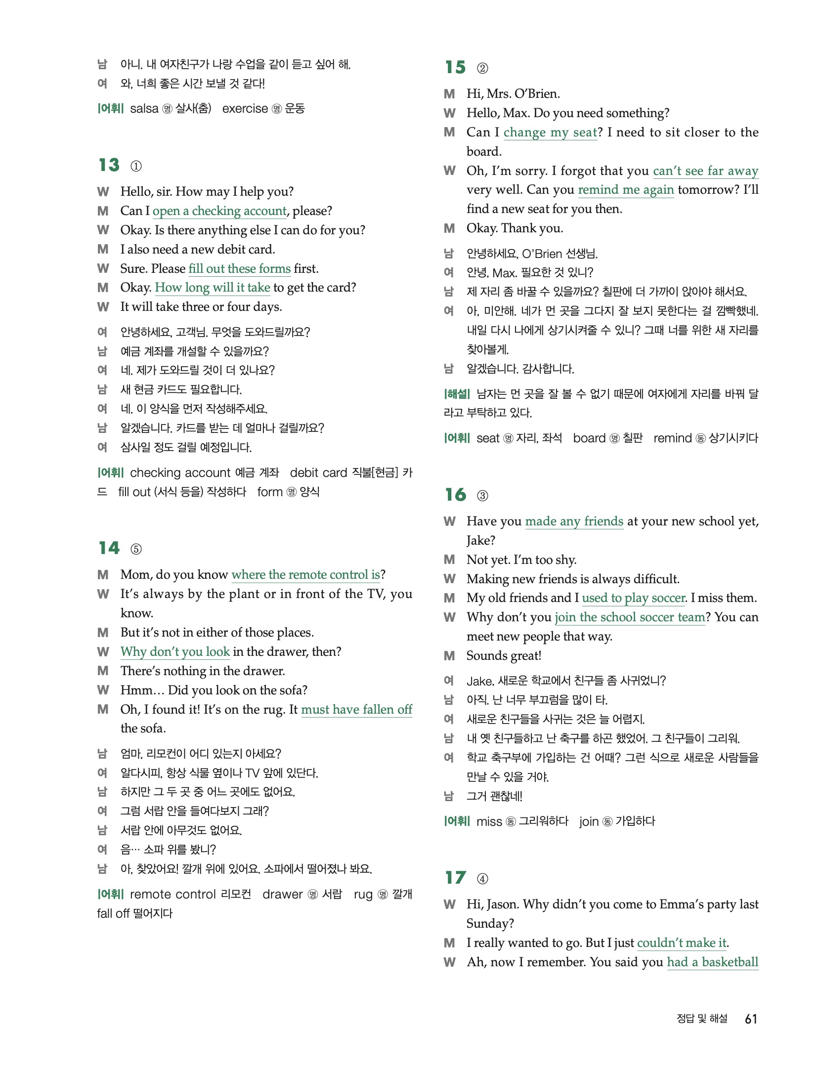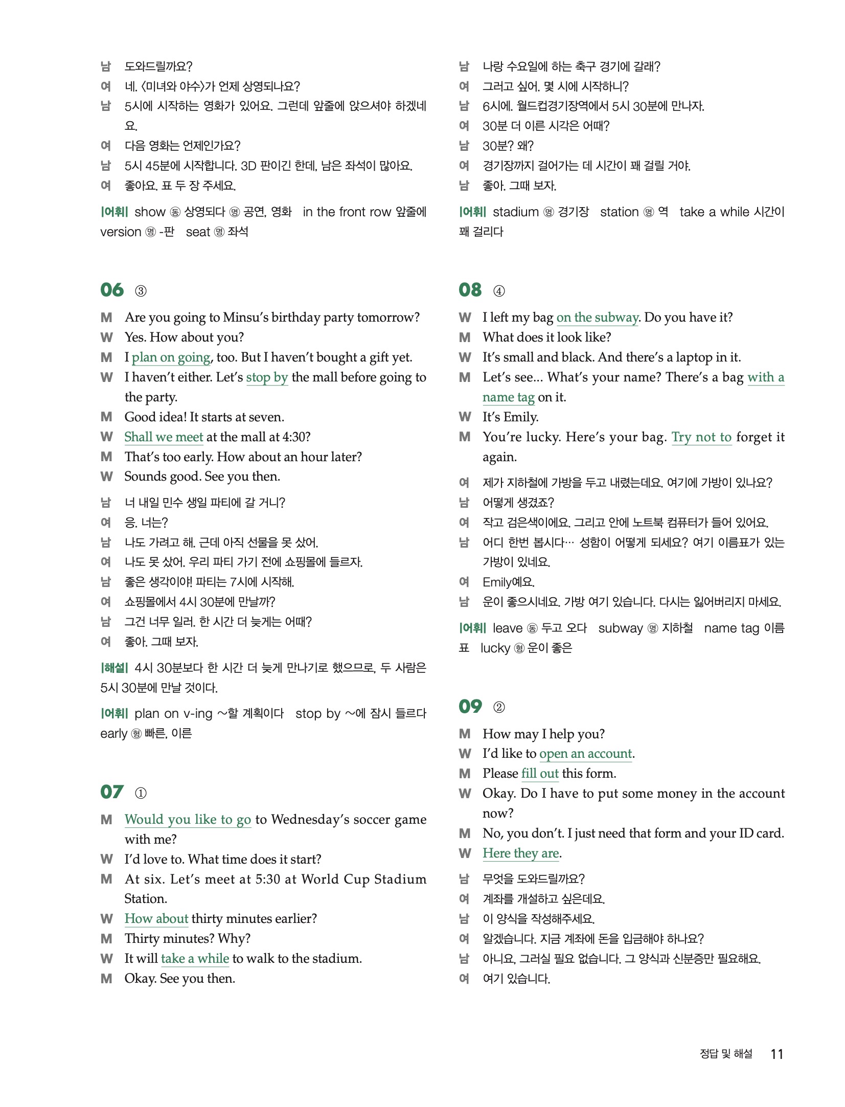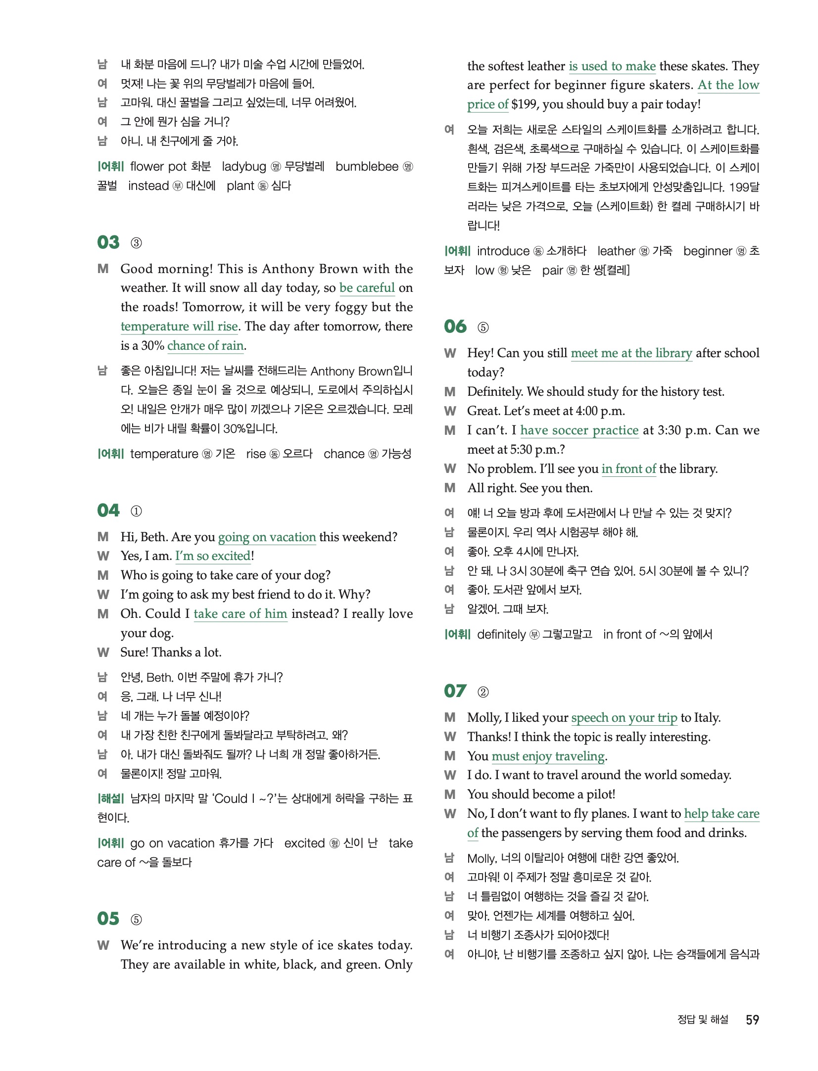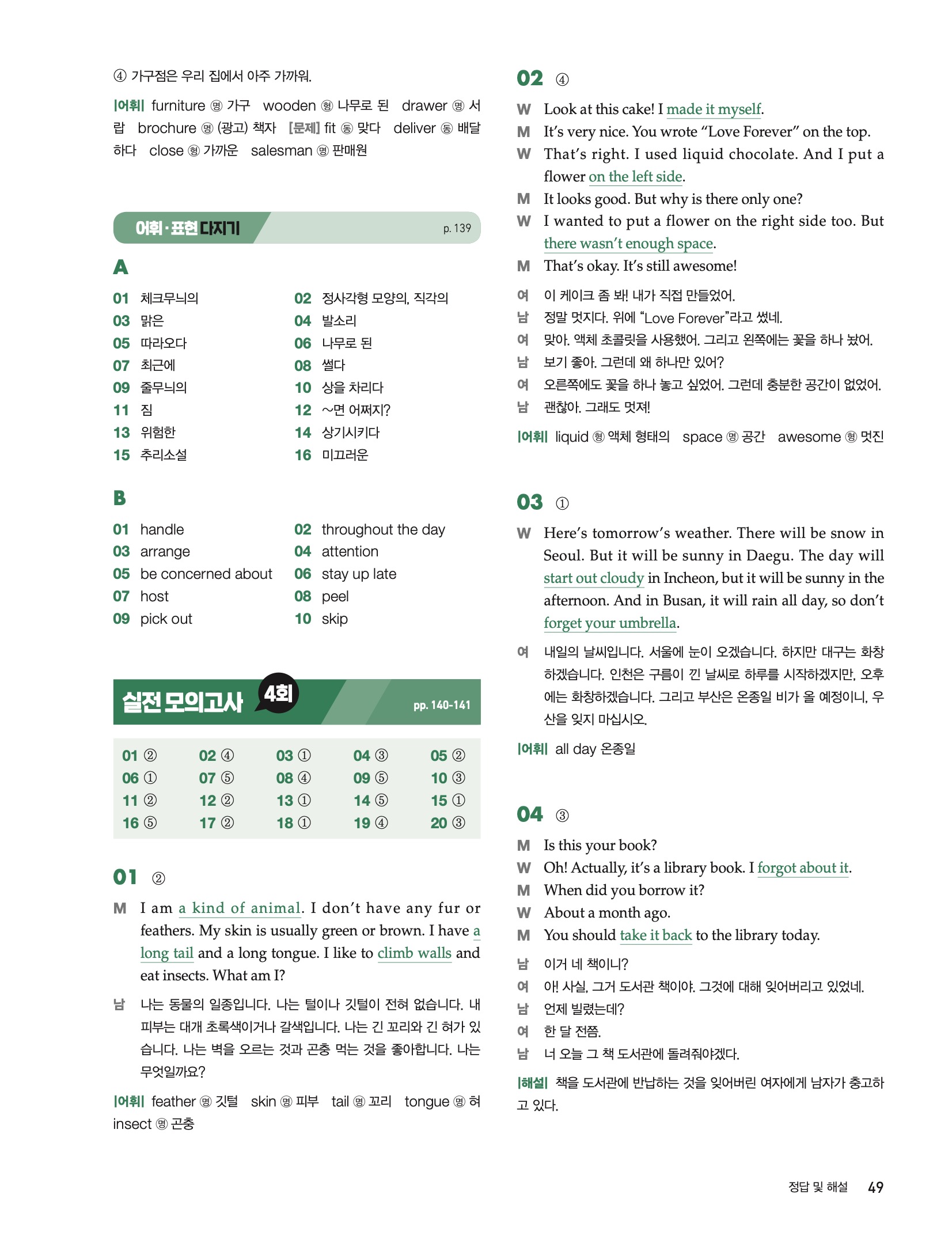 아래는 듣기 실력 향상과 영어 학습에 도움이 되는 다른 교재의 답지와 해설을 제공하는 포스팅입니다.