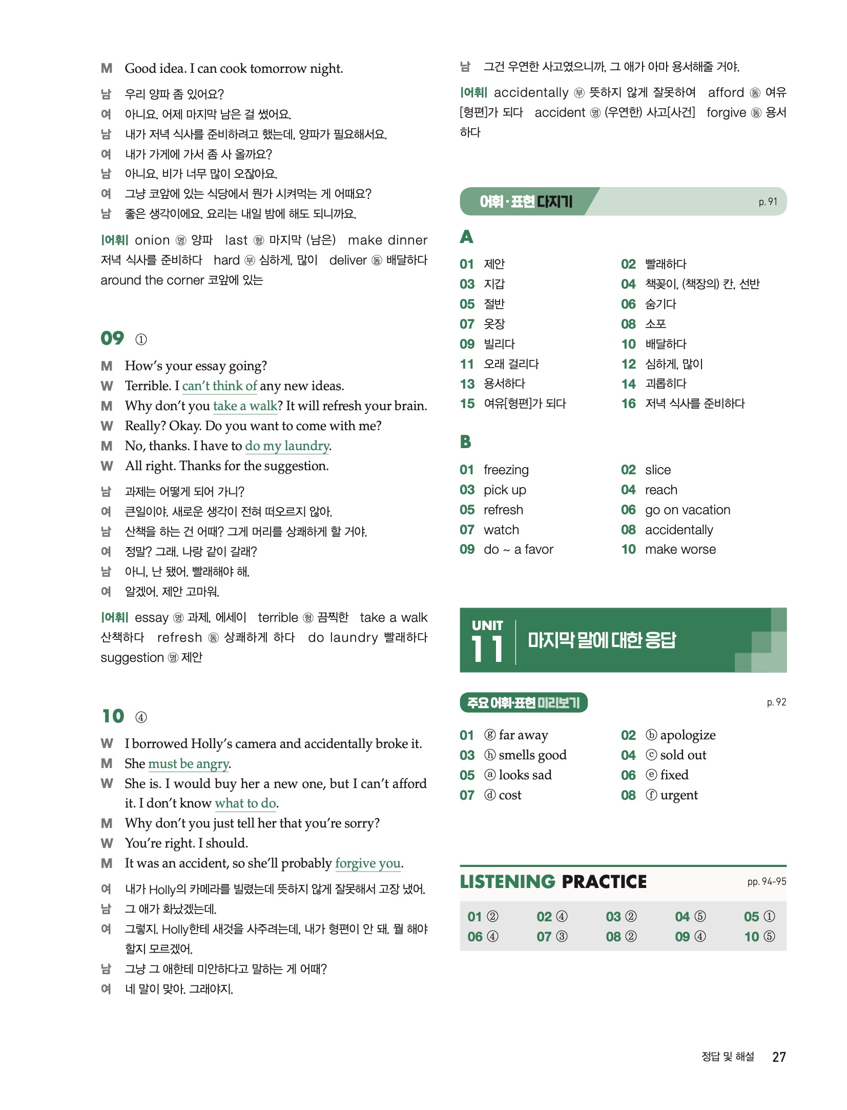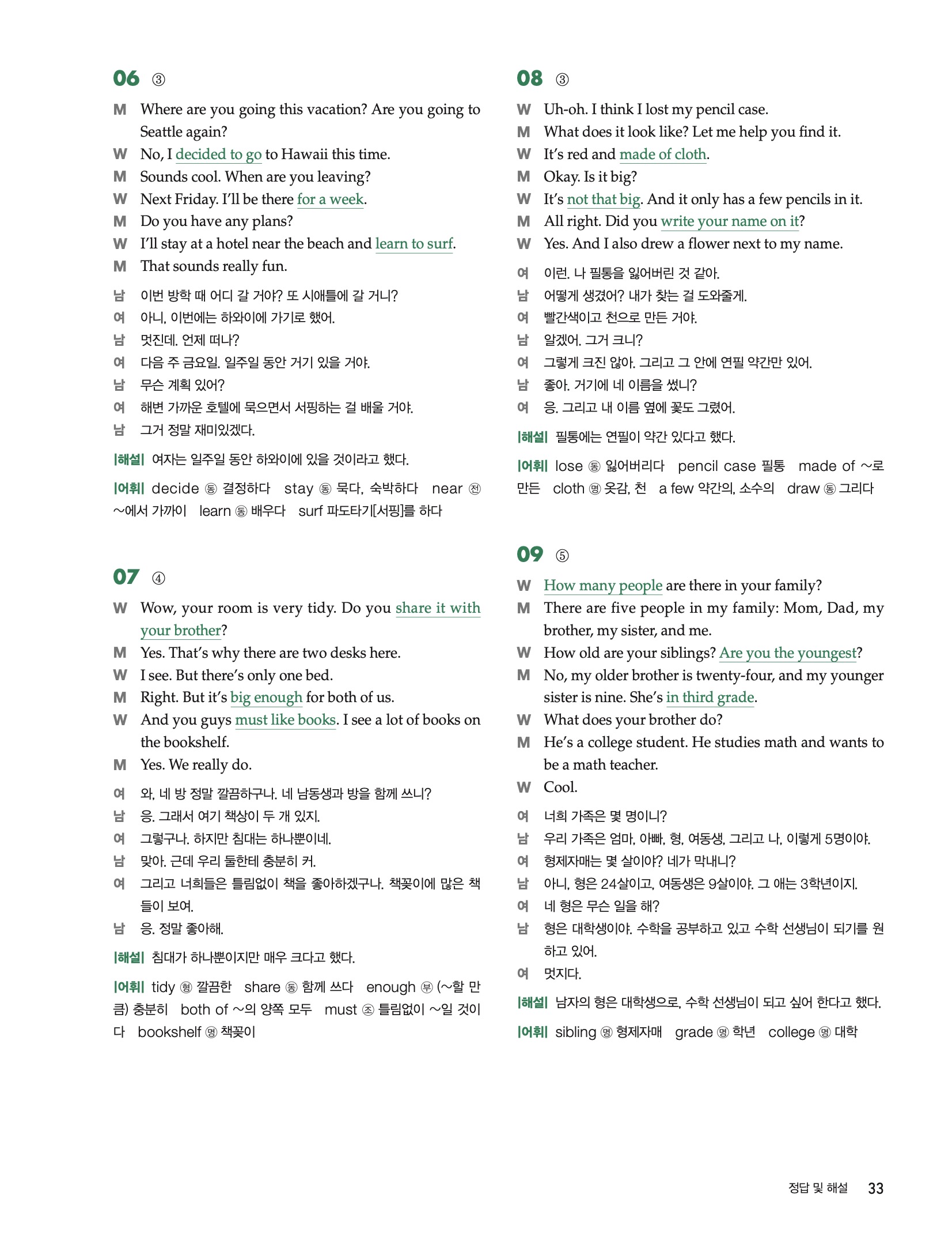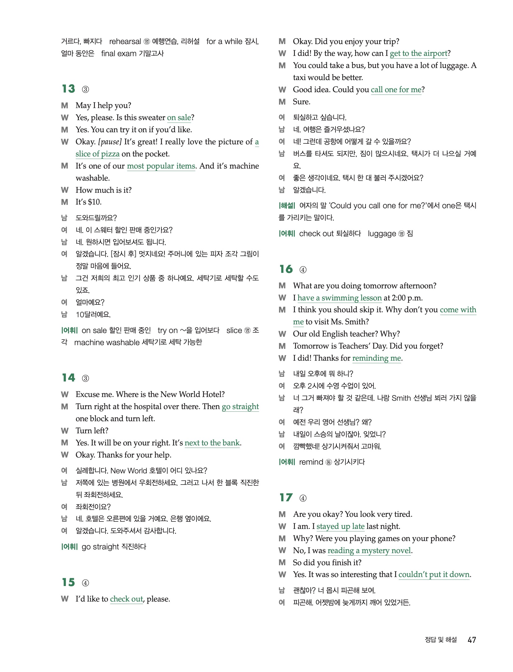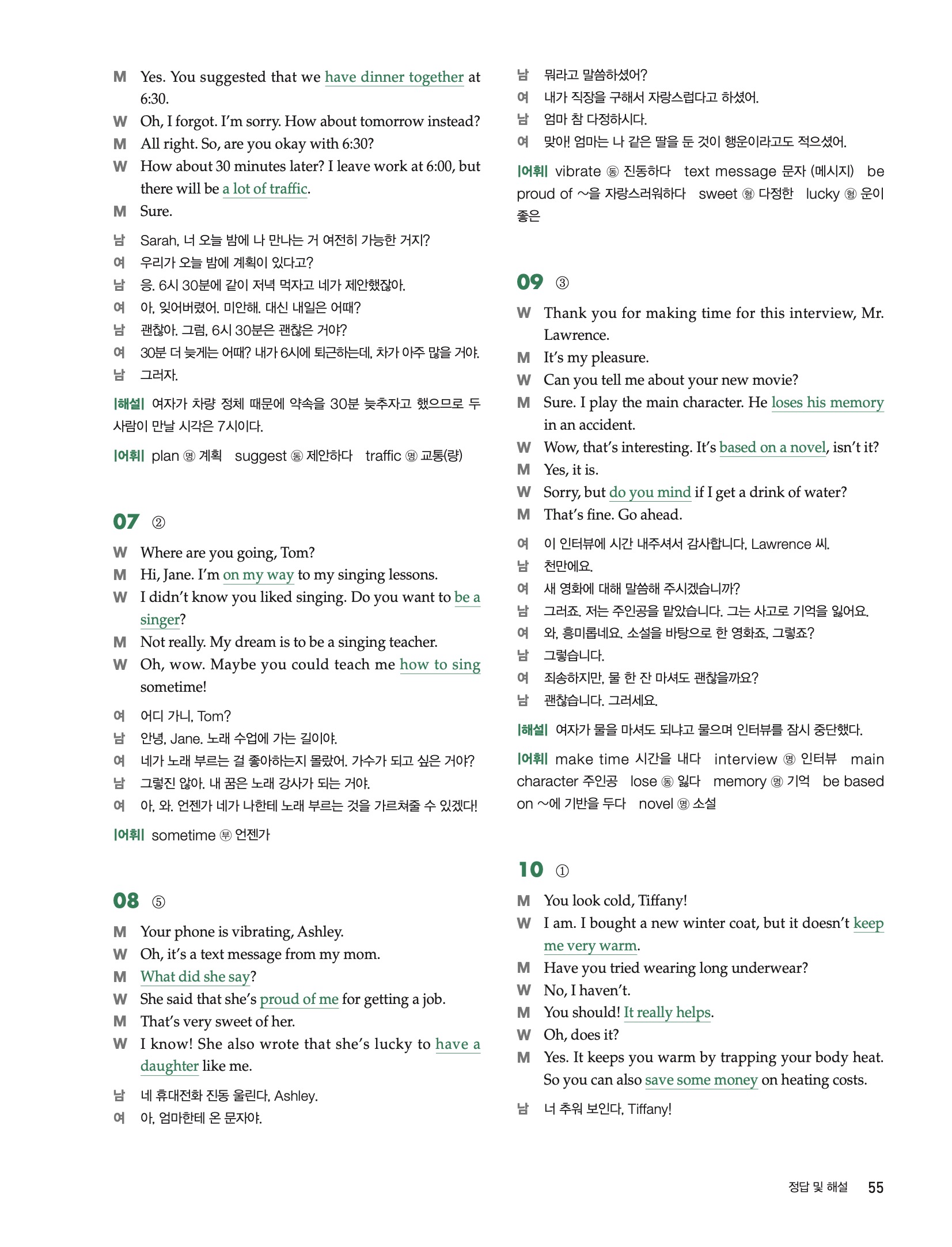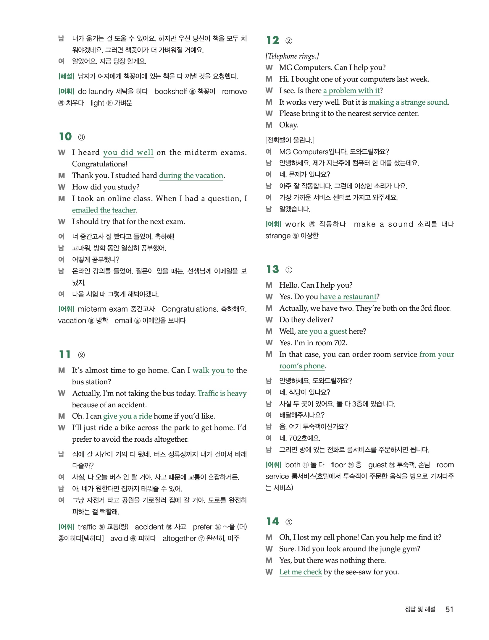 아래는 듣기 실력 향상과 영어 학습에 도움이 되는 다른 교재의 답지와 해설을 제공하는 포스팅입니다.