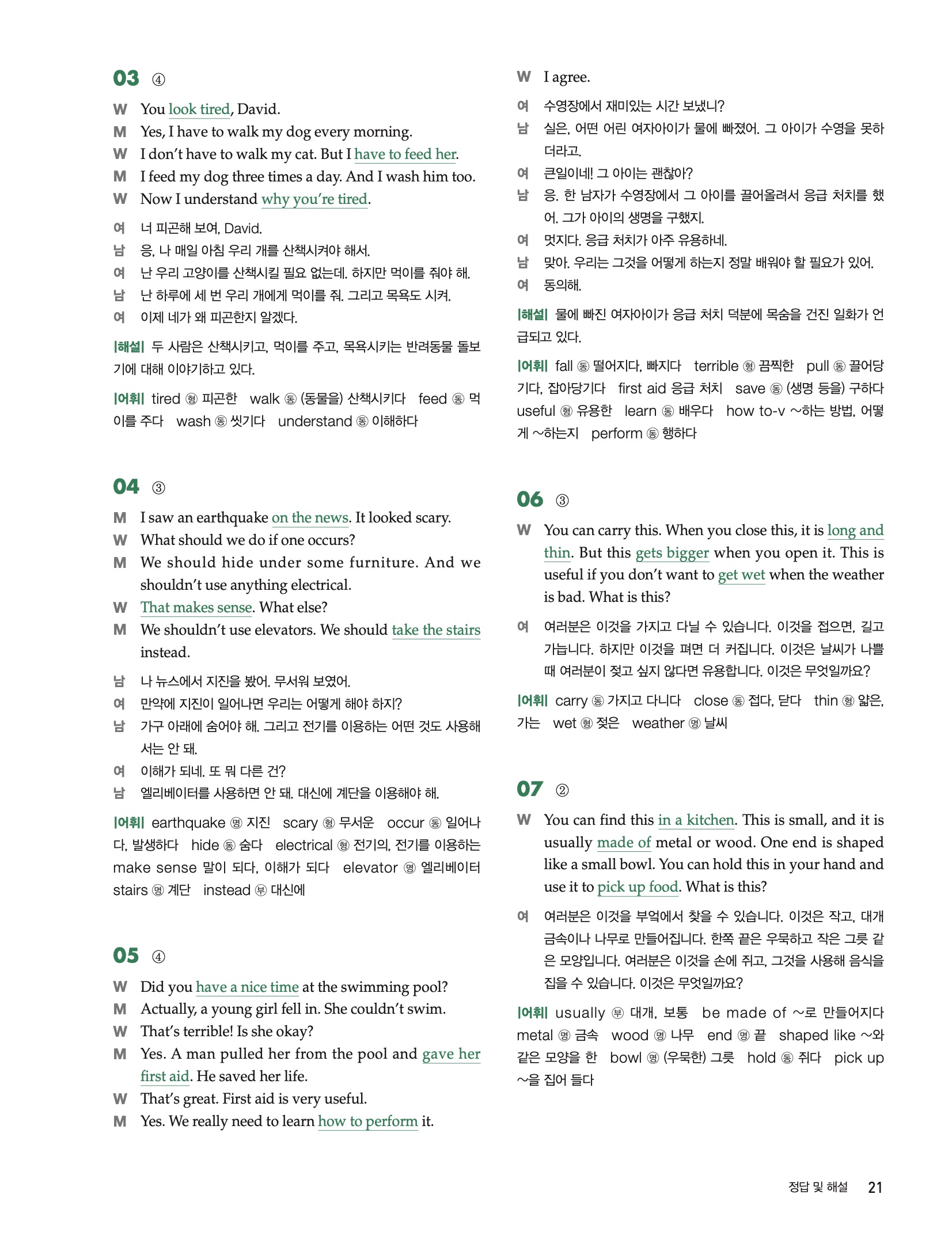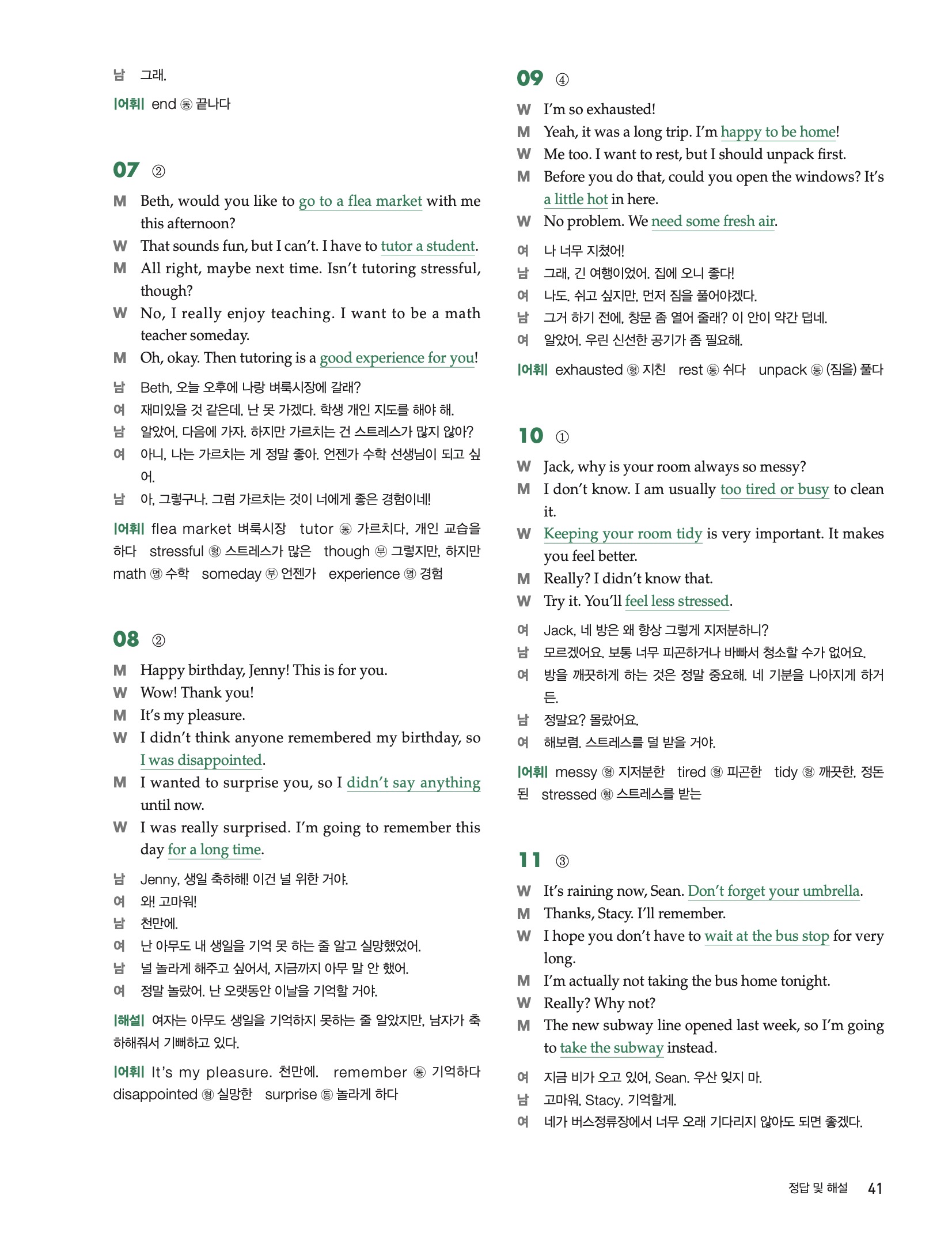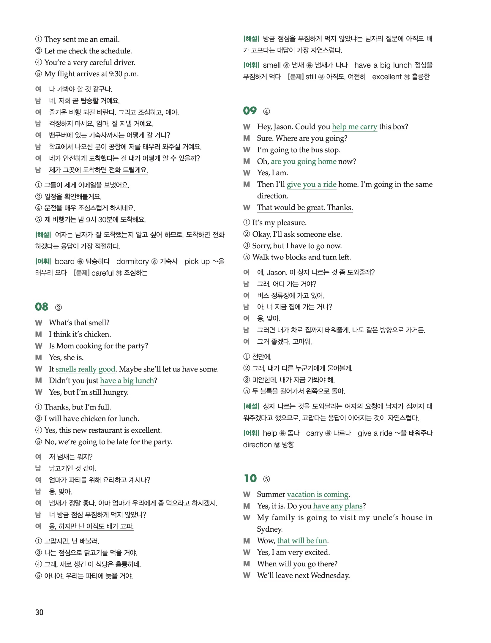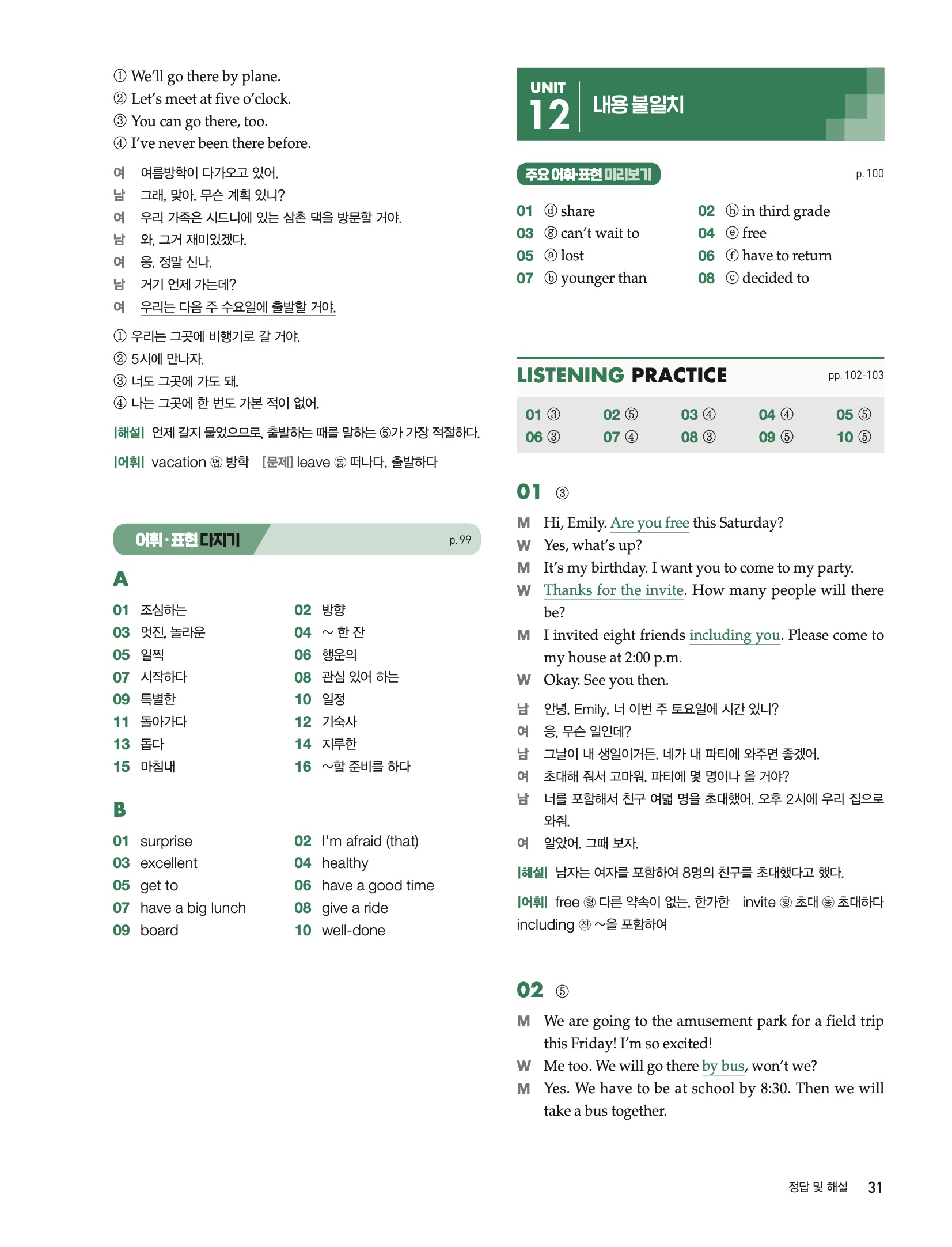 아래는 듣기 실력 향상과 영어 학습에 도움이 되는 다른 교재의 답지와 해설을 제공하는 포스팅입니다.