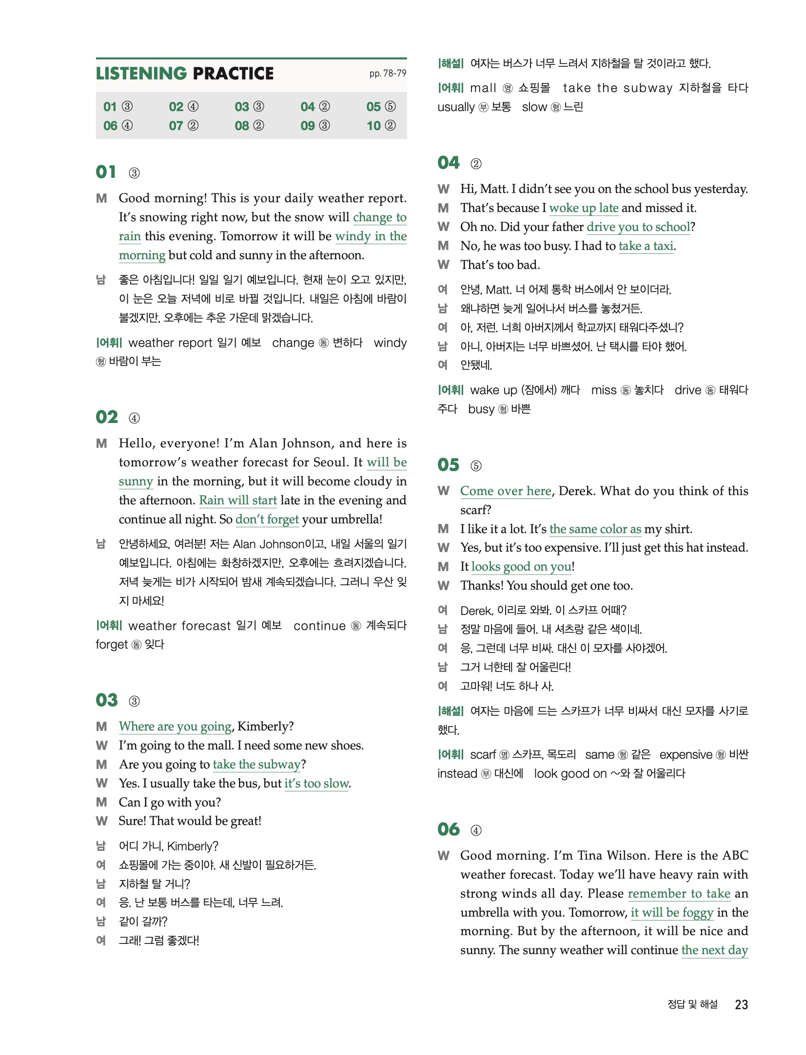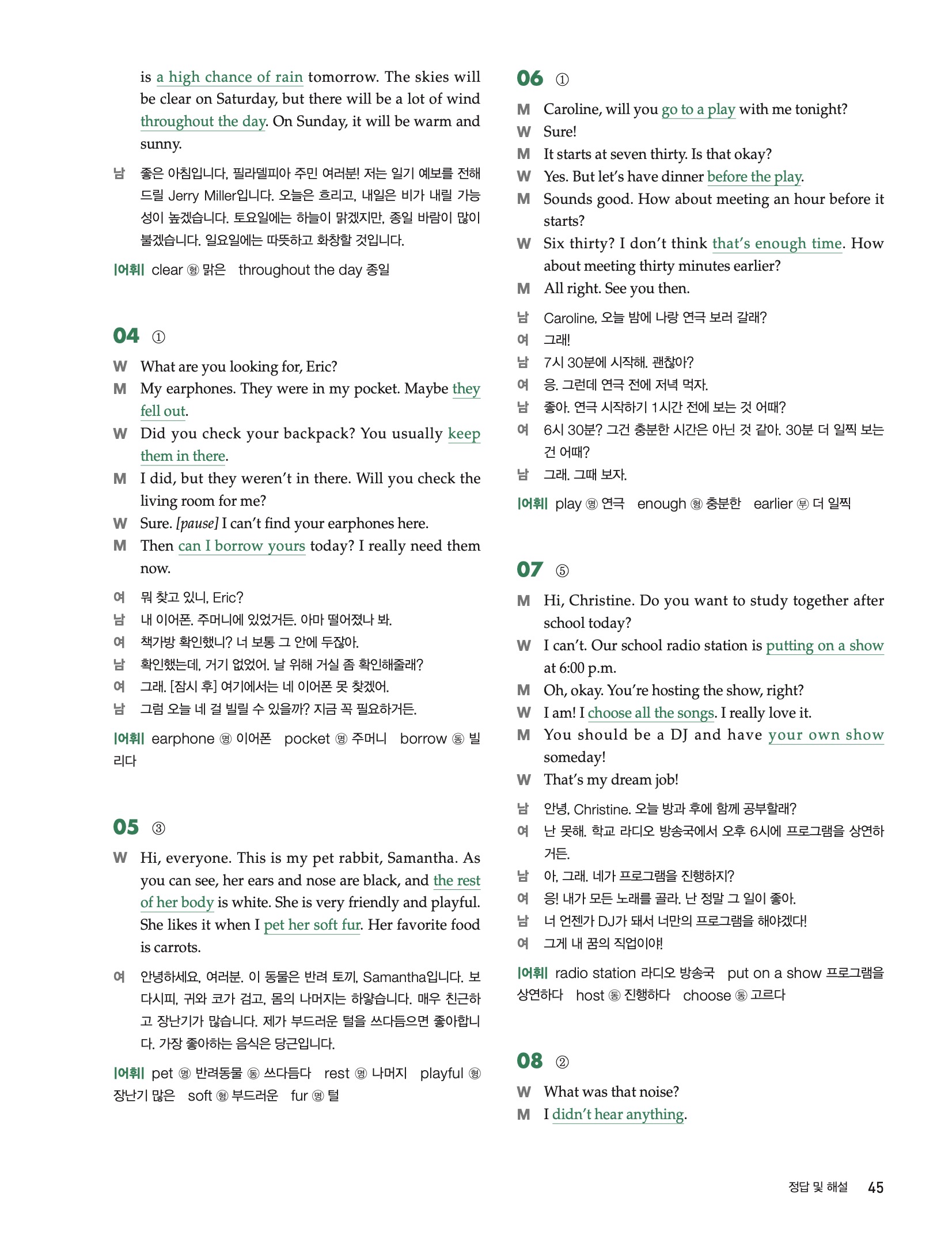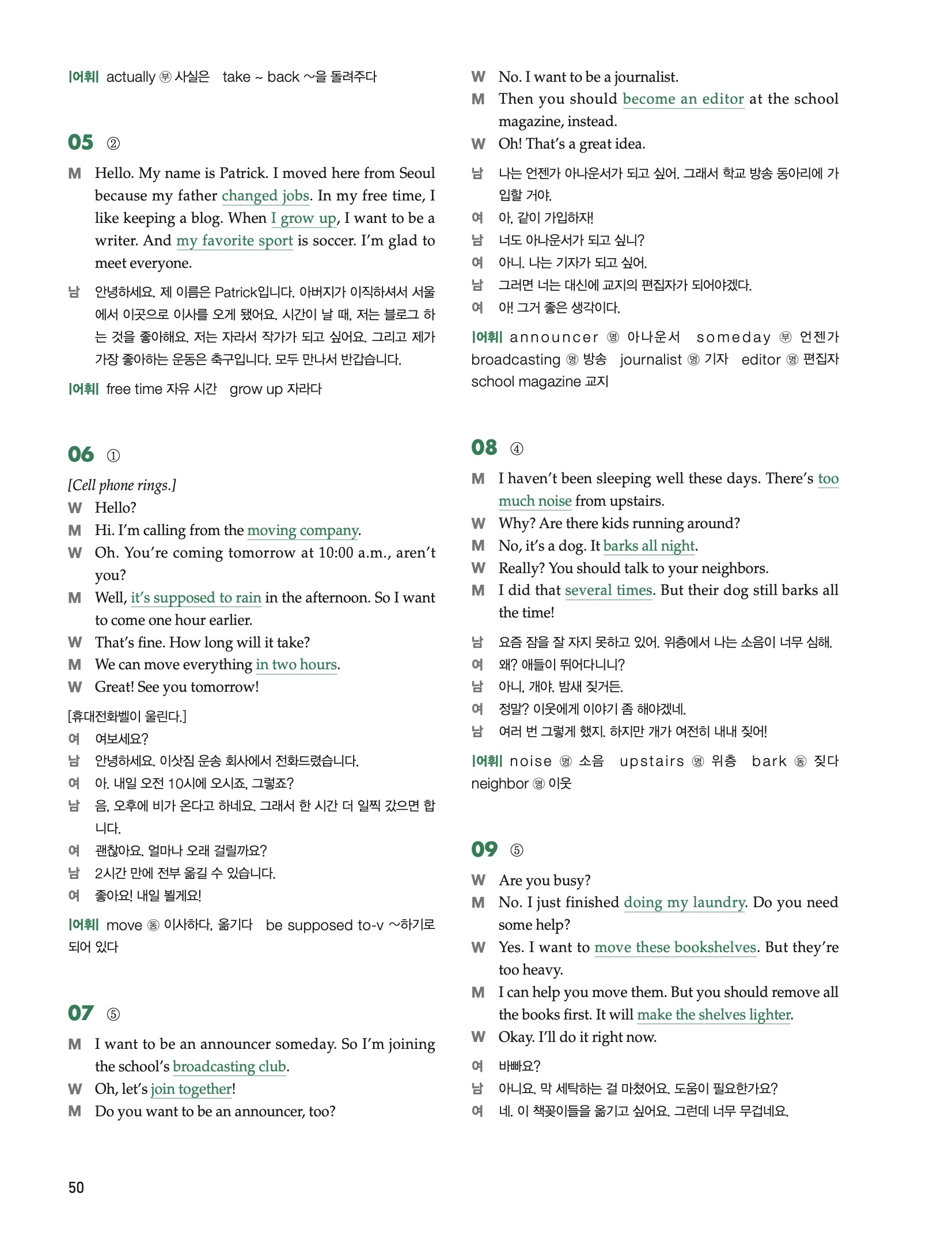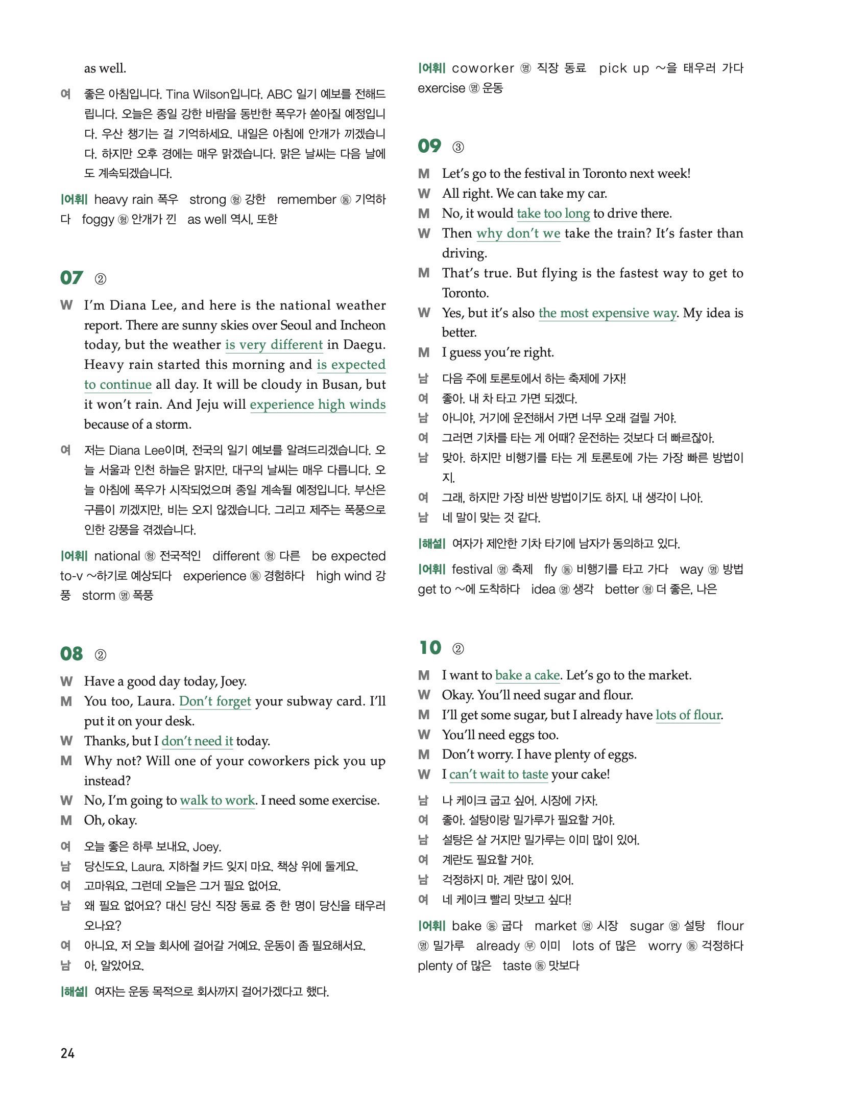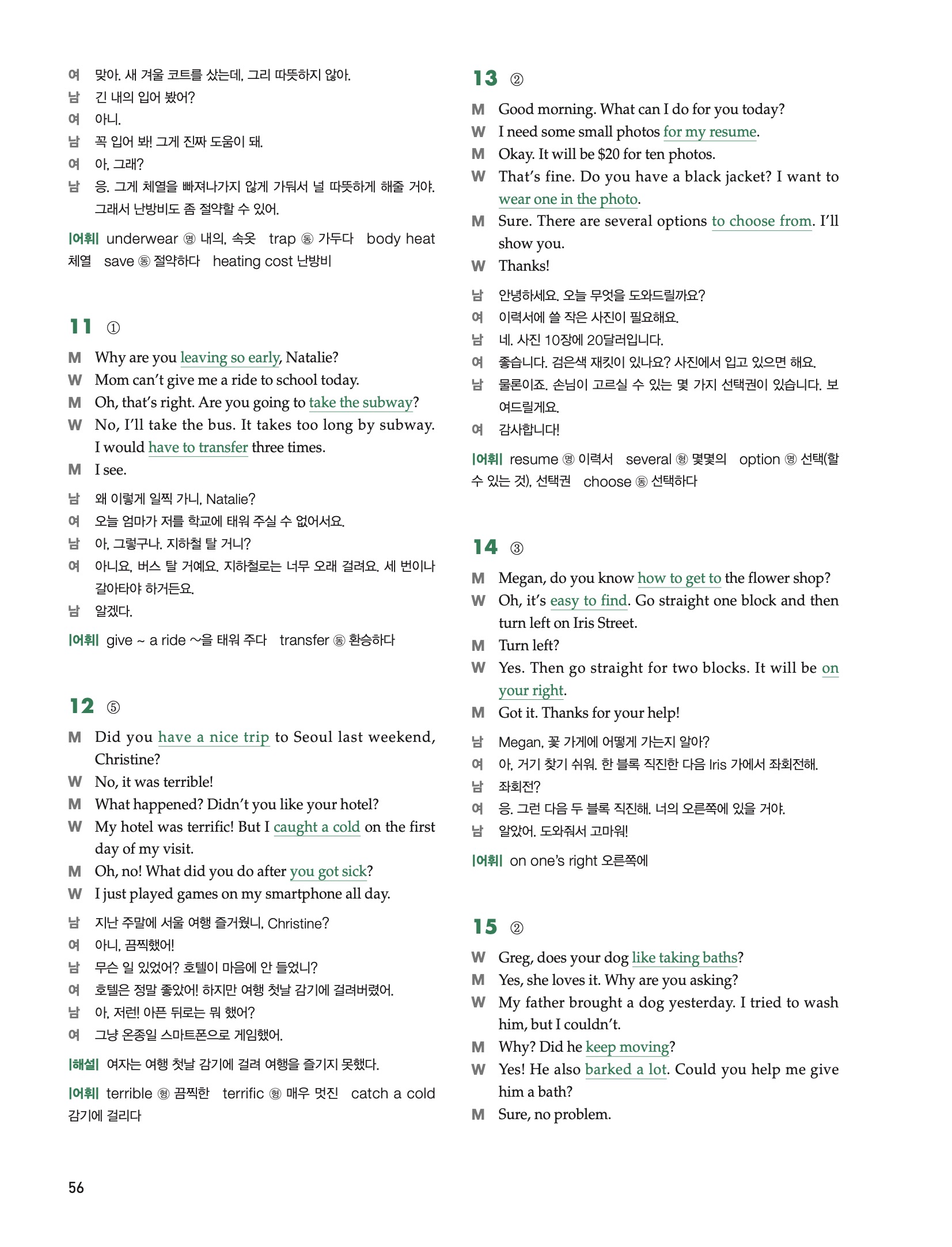 아래는 듣기 실력 향상과 영어 학습에 도움이 되는 다른 교재의 답지와 해설을 제공하는 포스팅입니다.