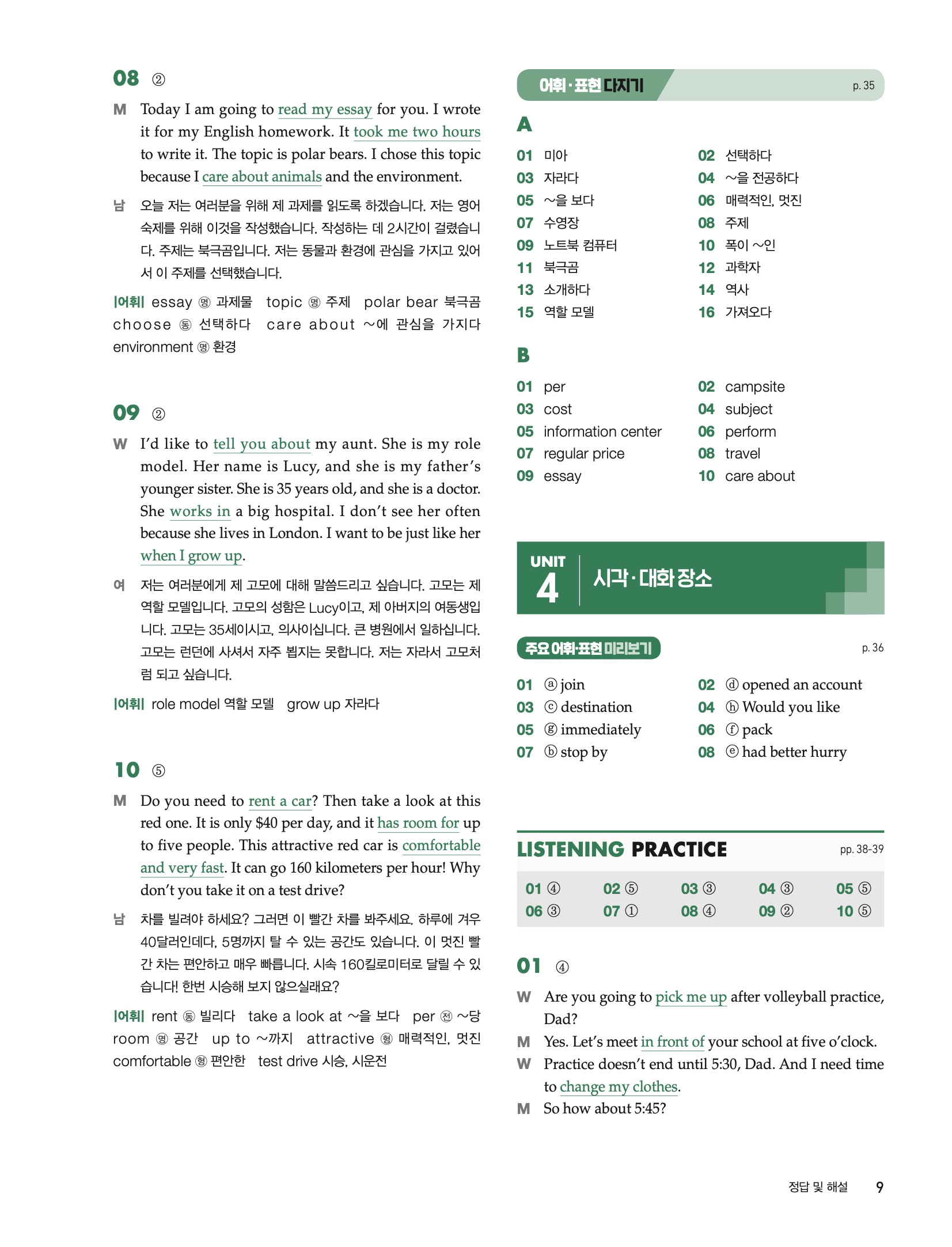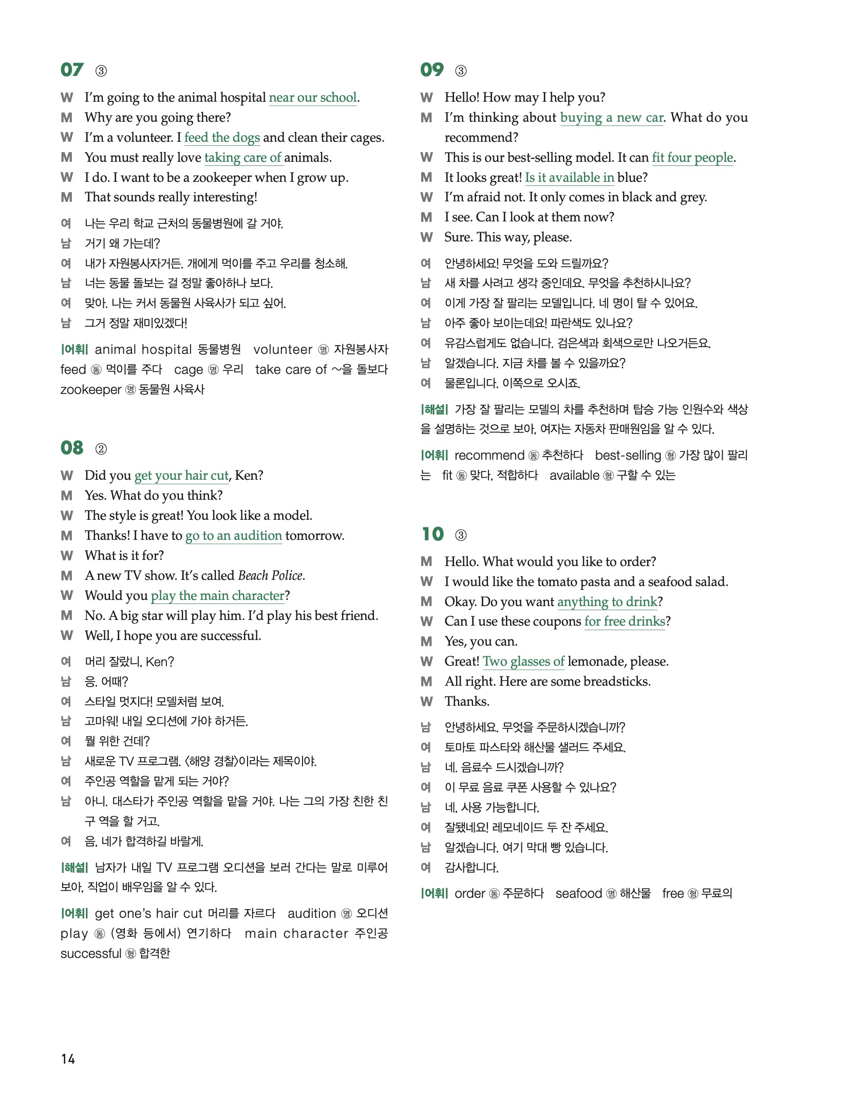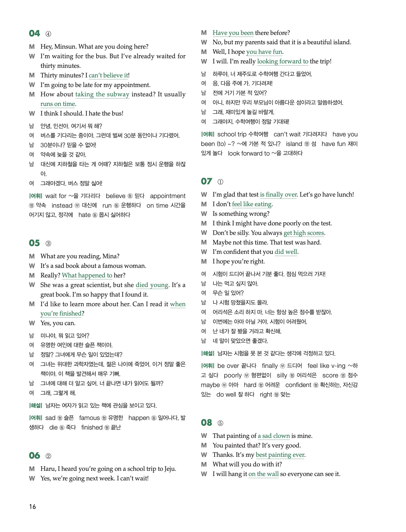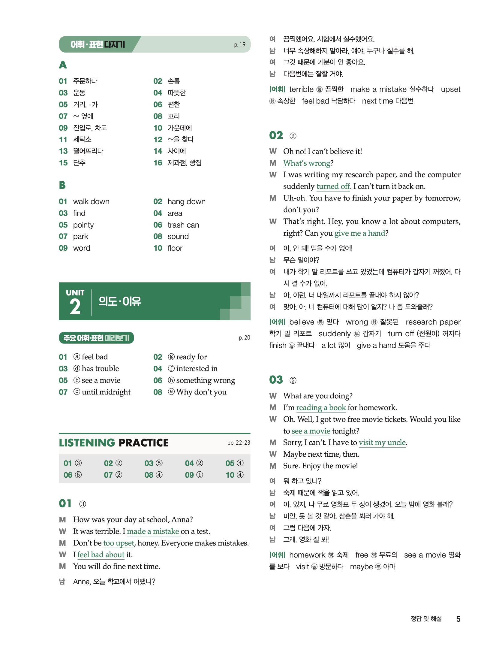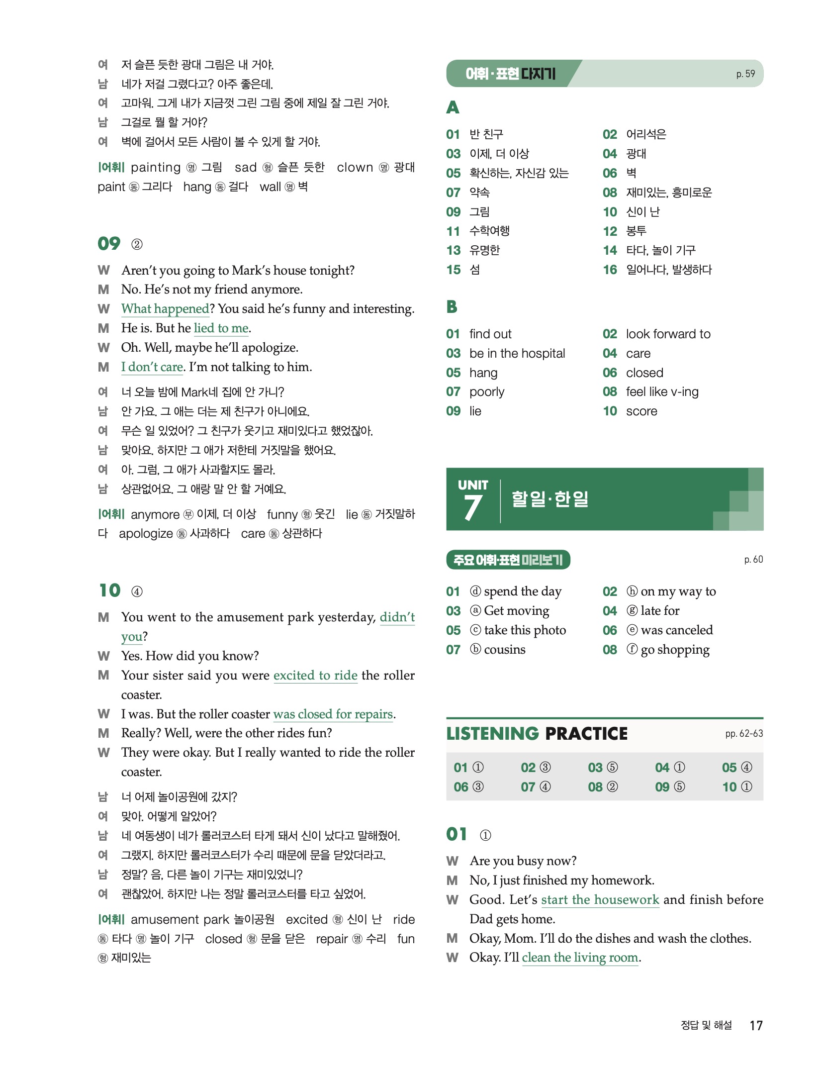 아래는 듣기 실력 향상과 영어 학습에 도움이 되는 다른 교재의 답지와 해설을 제공하는 포스팅입니다.