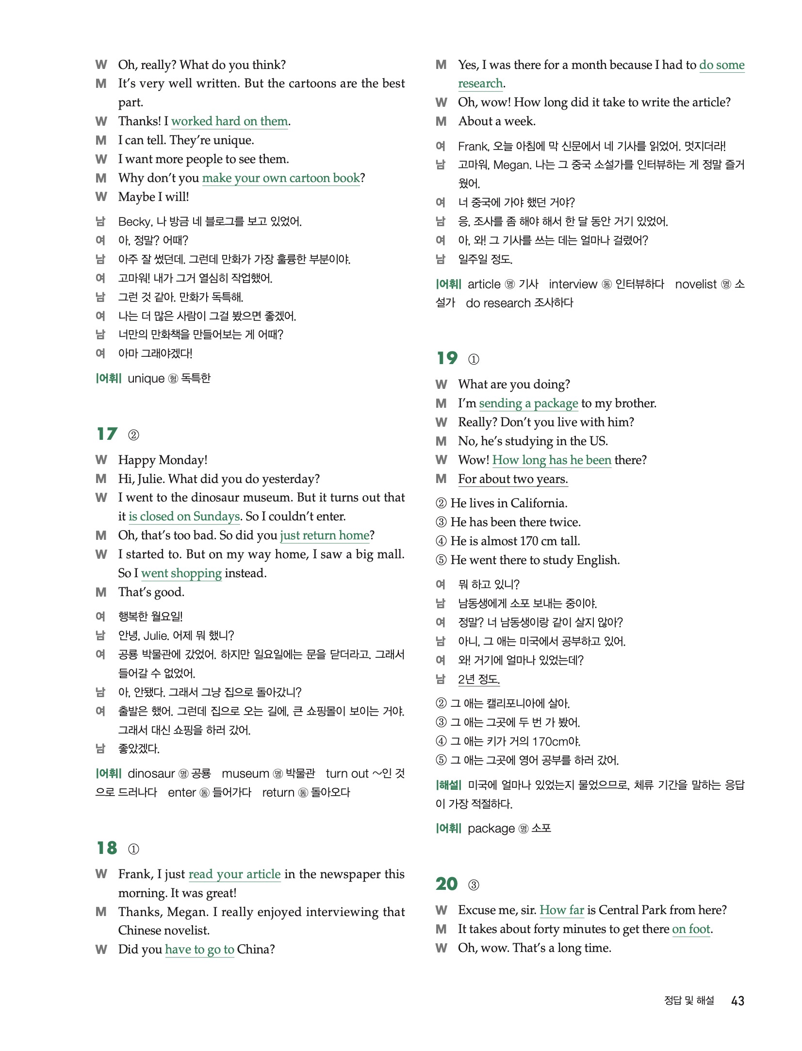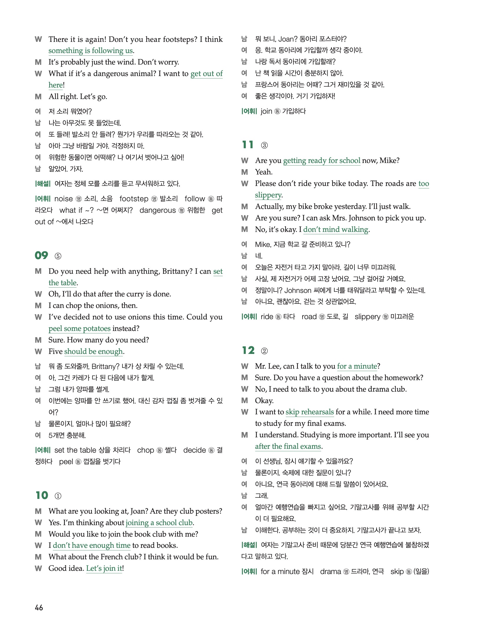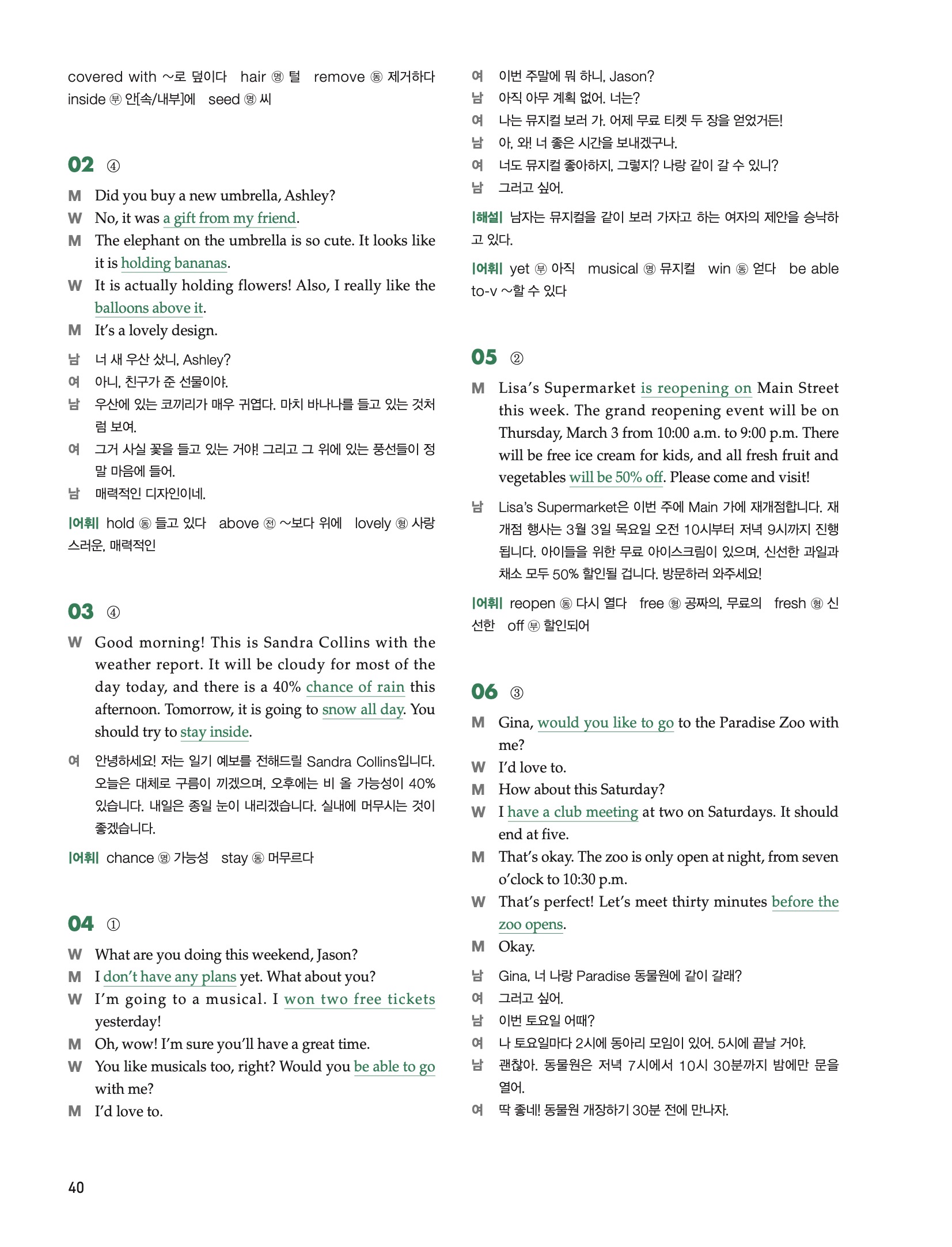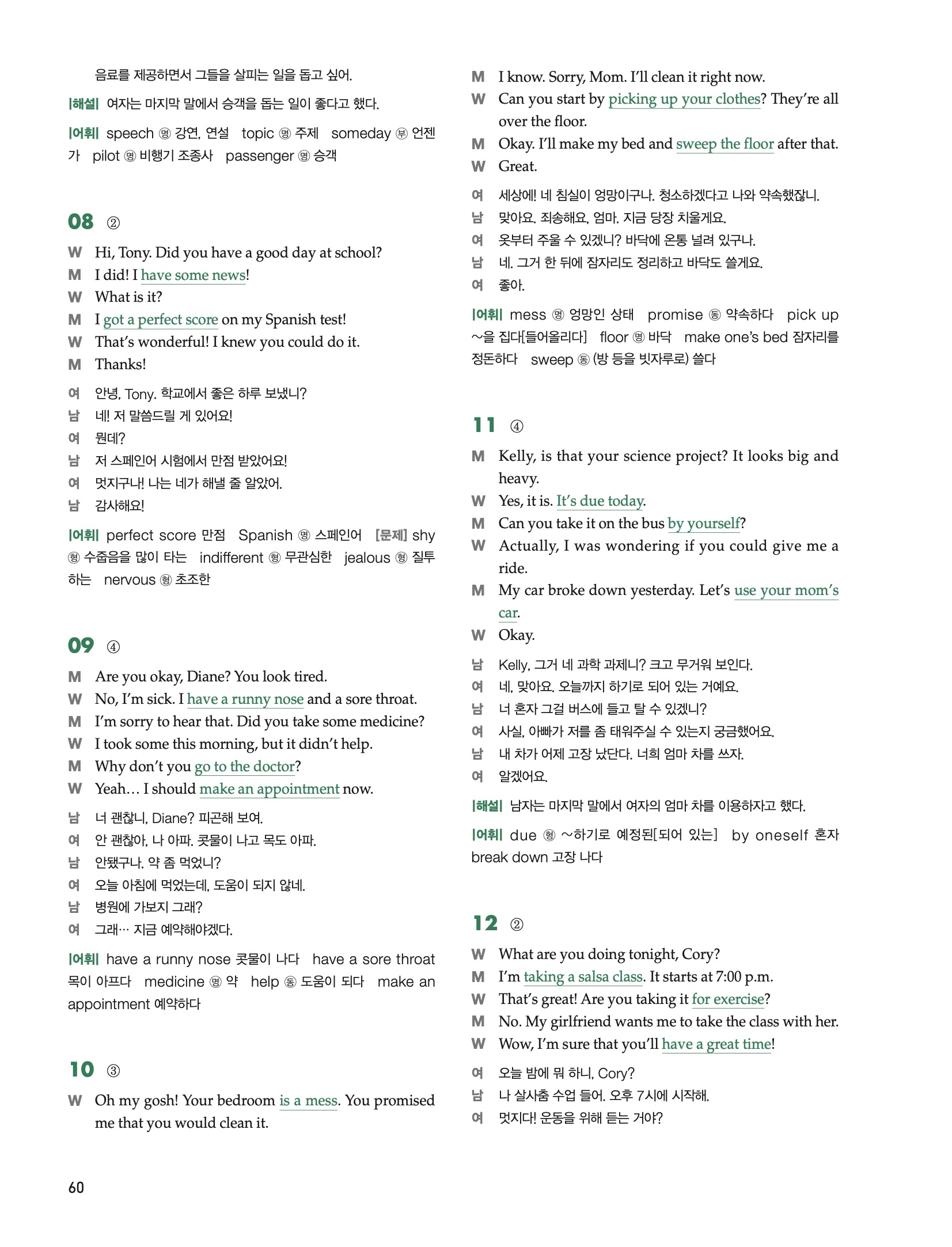 아래는 듣기 실력 향상과 영어 학습에 도움이 되는 다른 교재의 답지와 해설을 제공하는 포스팅입니다.