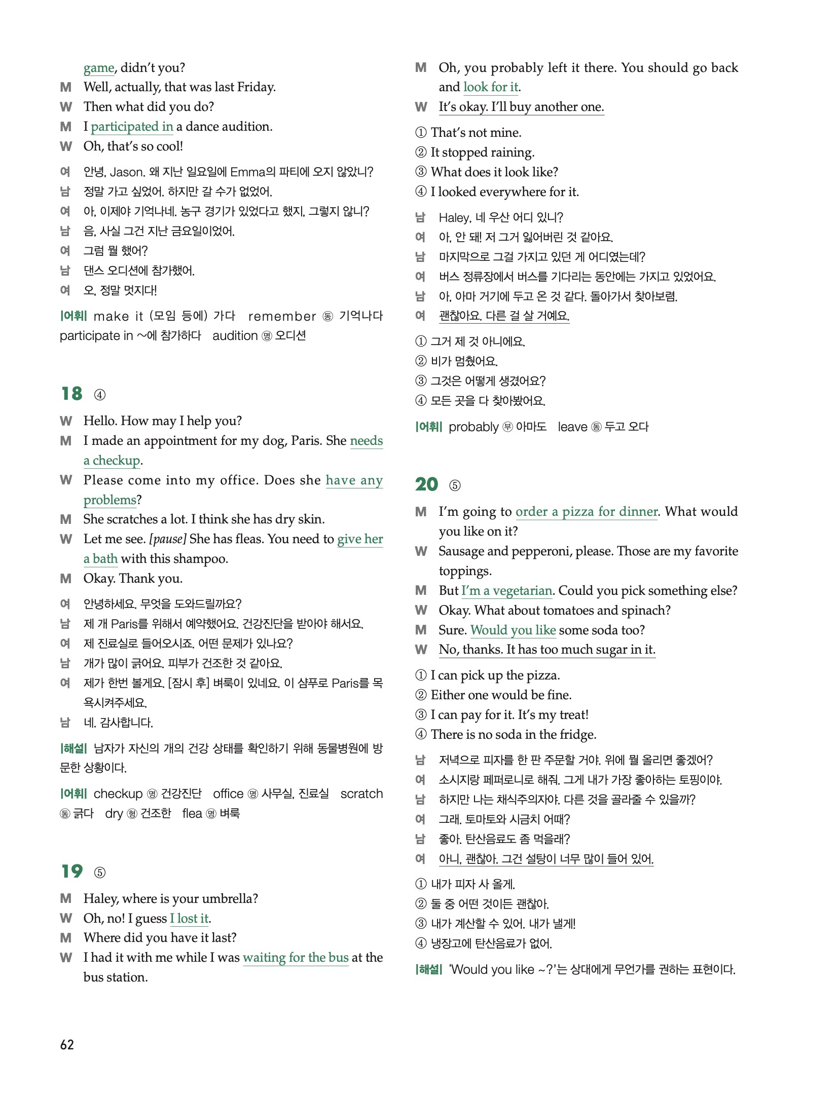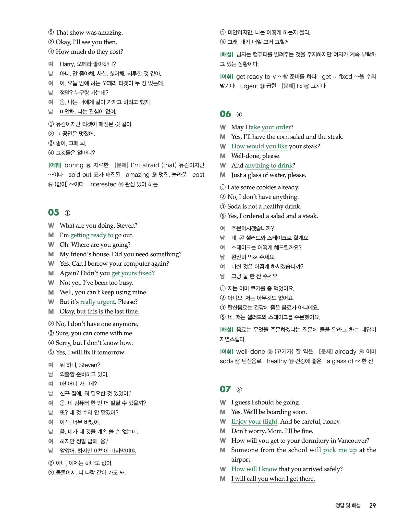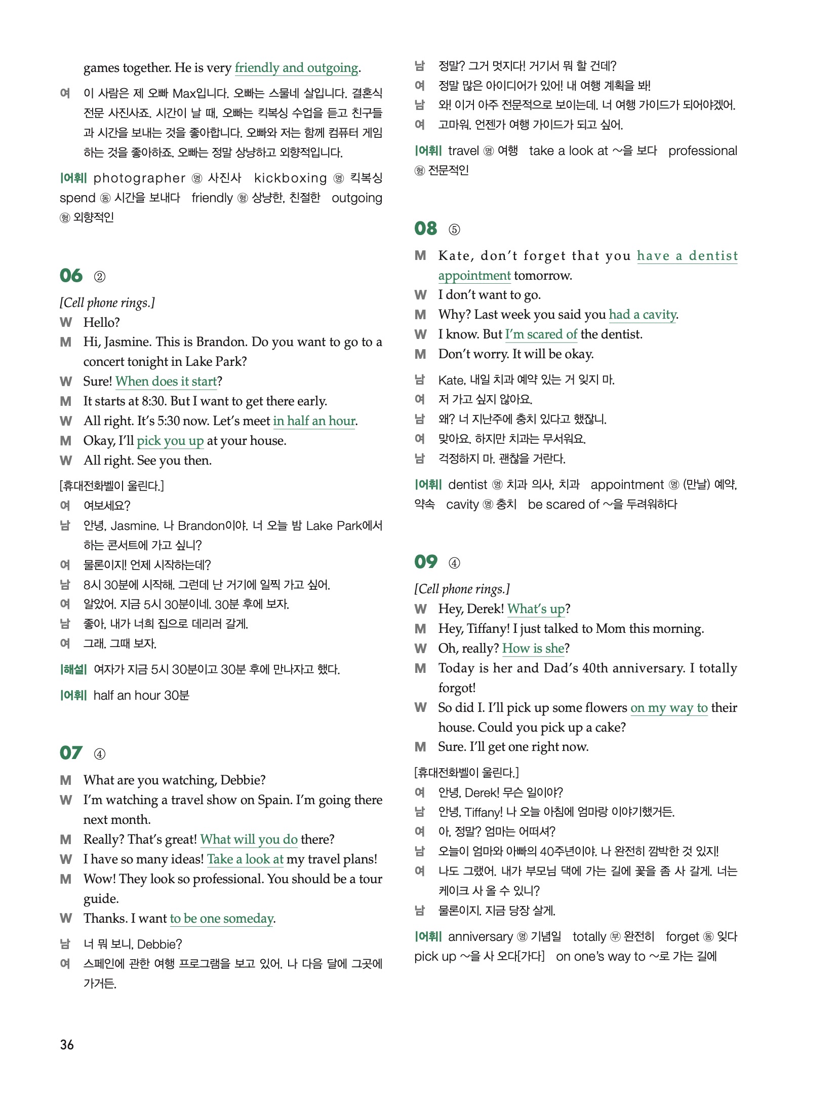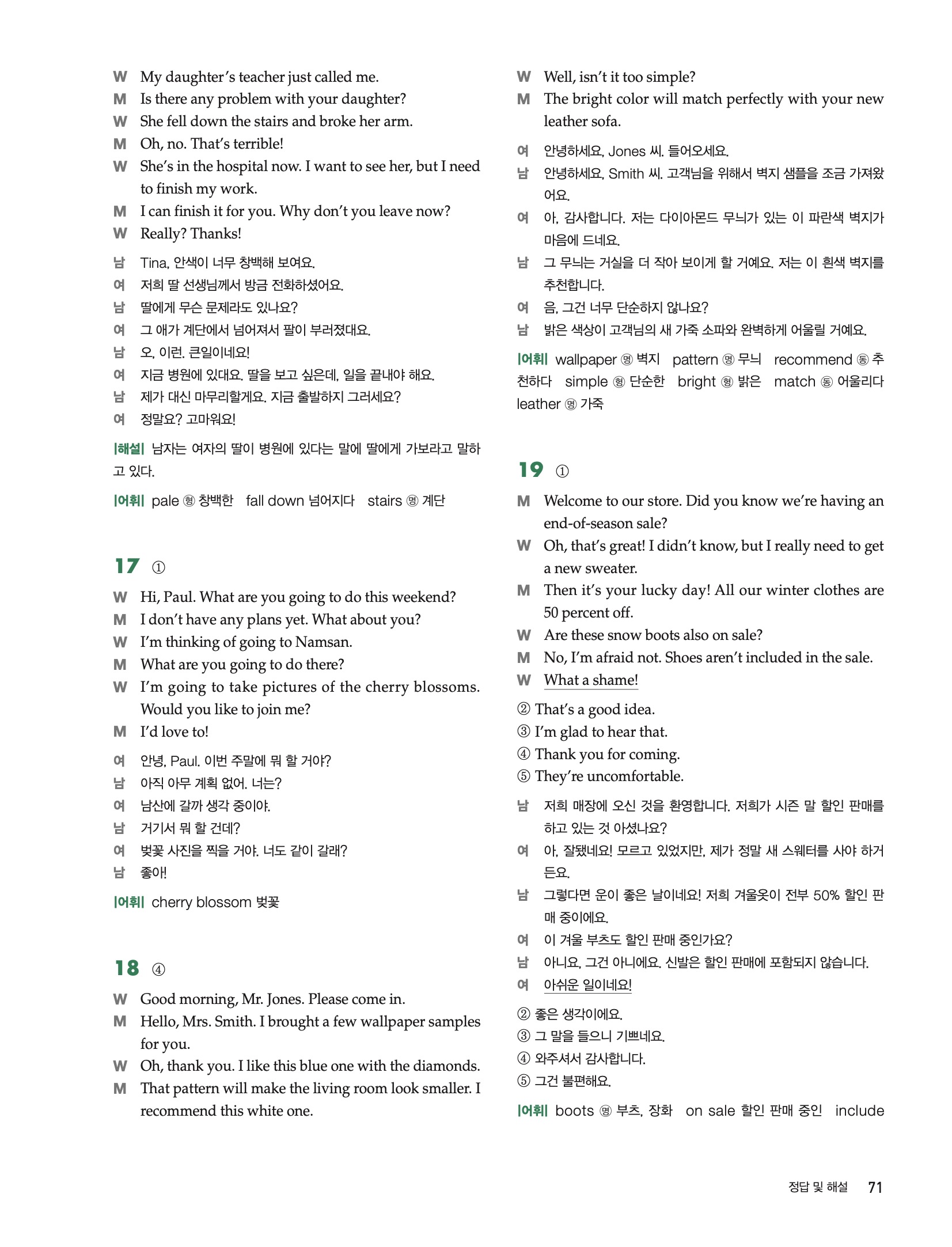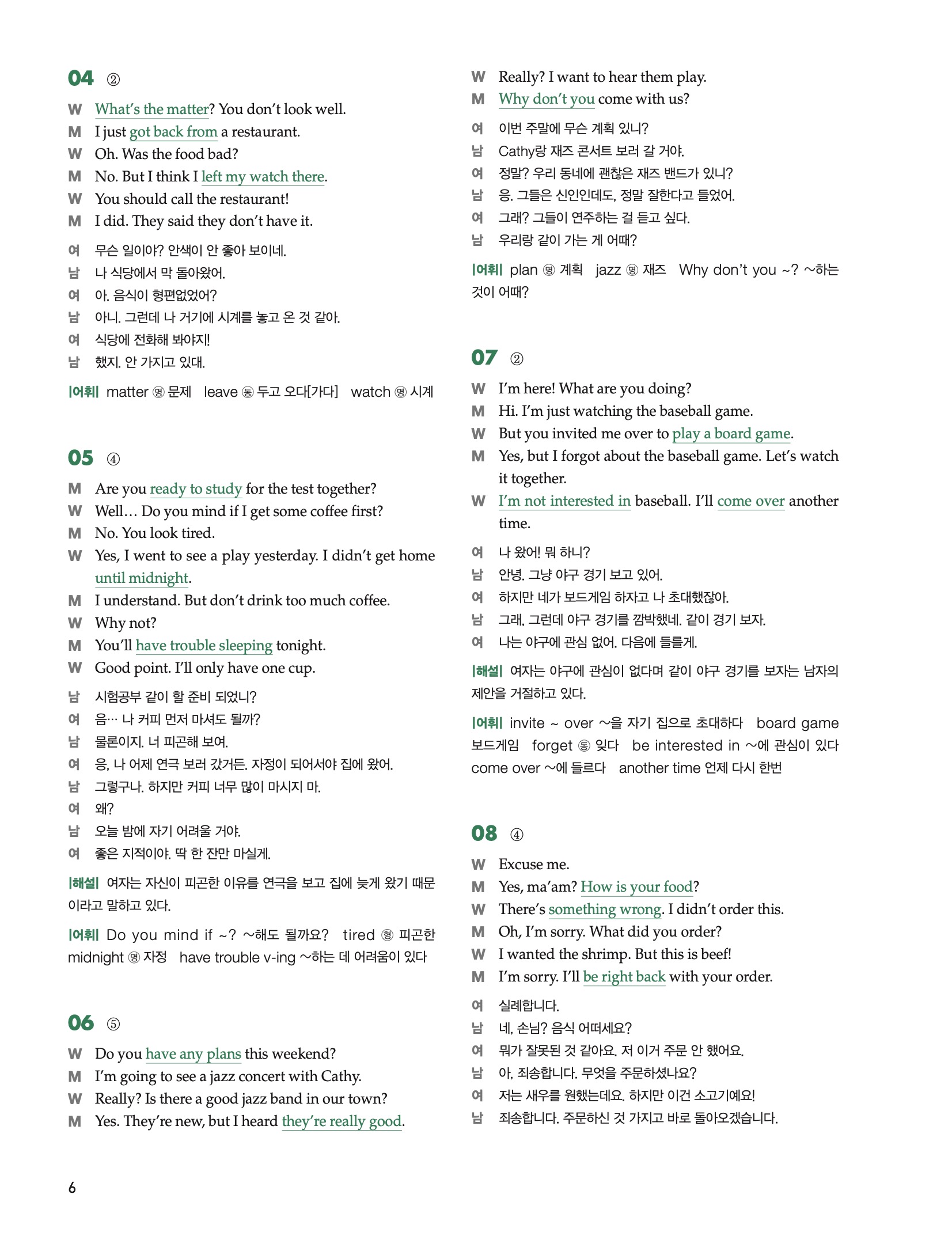 아래는 듣기 실력 향상과 영어 학습에 도움이 되는 다른 교재의 답지와 해설을 제공하는 포스팅입니다.