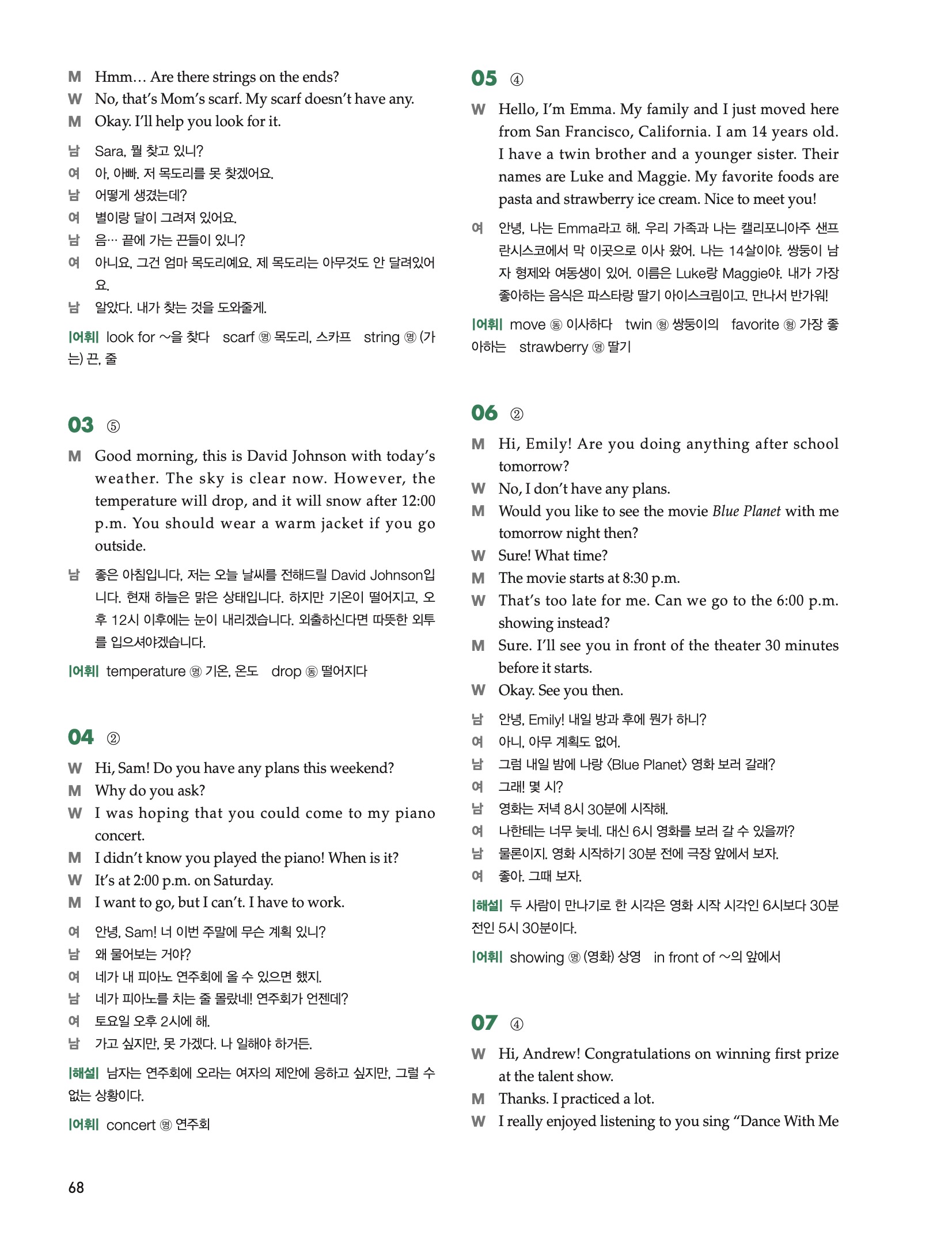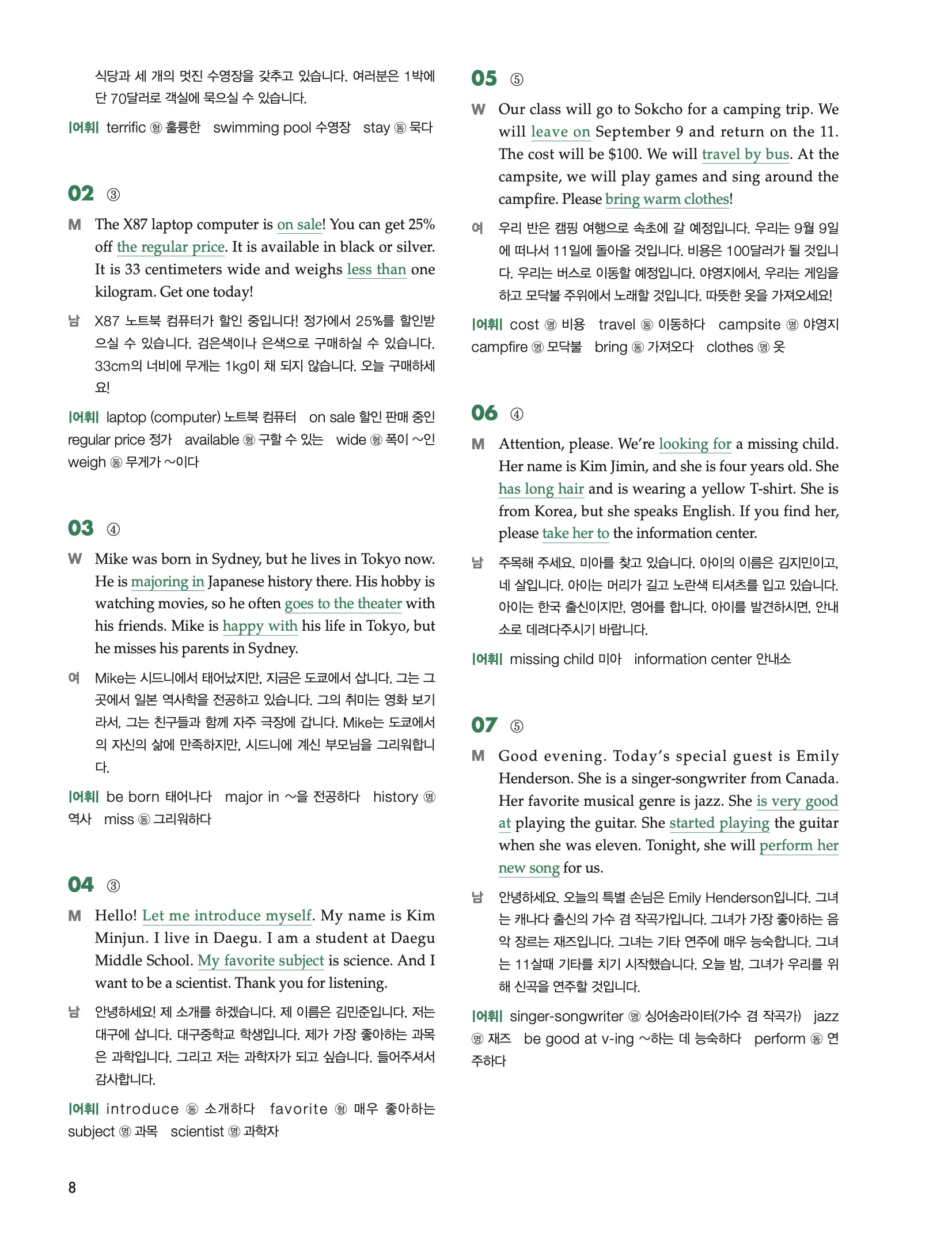 ✅ 핵심 개념 및 실전 연습 – 듣기 문제 풀이와 함께 주요 표현과 패턴을 익힐 수 있습니다.