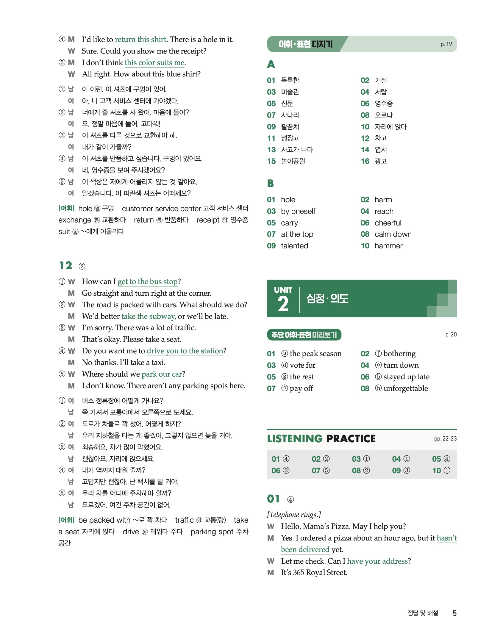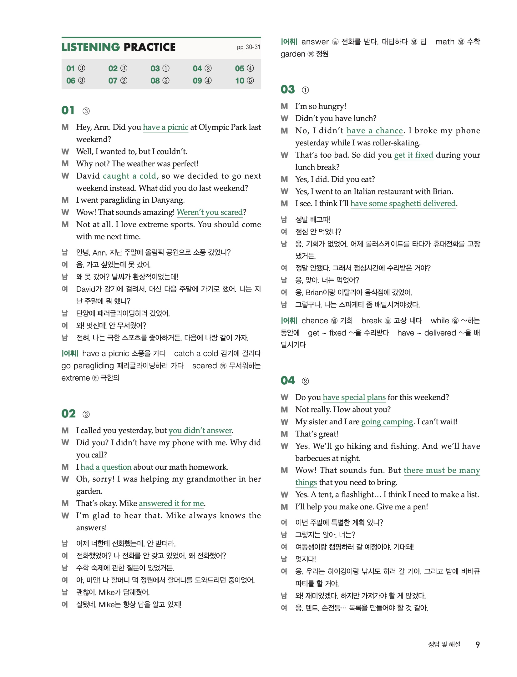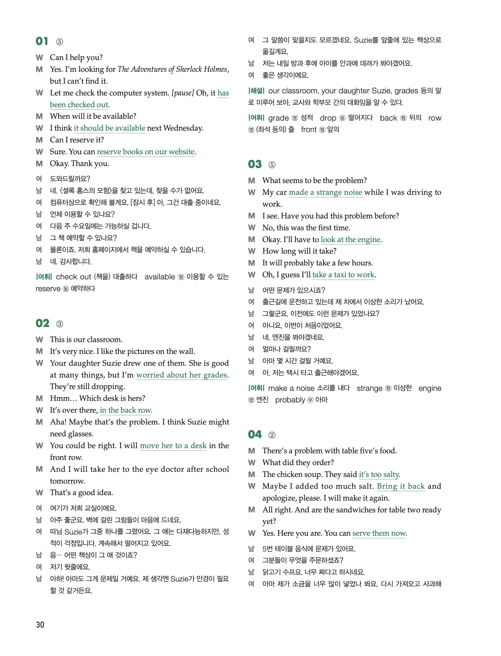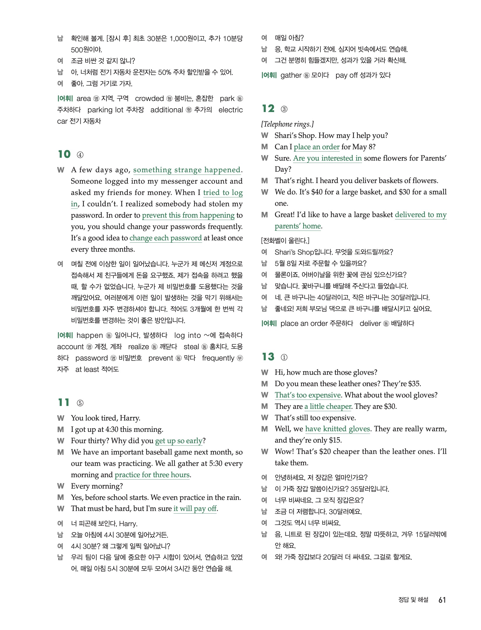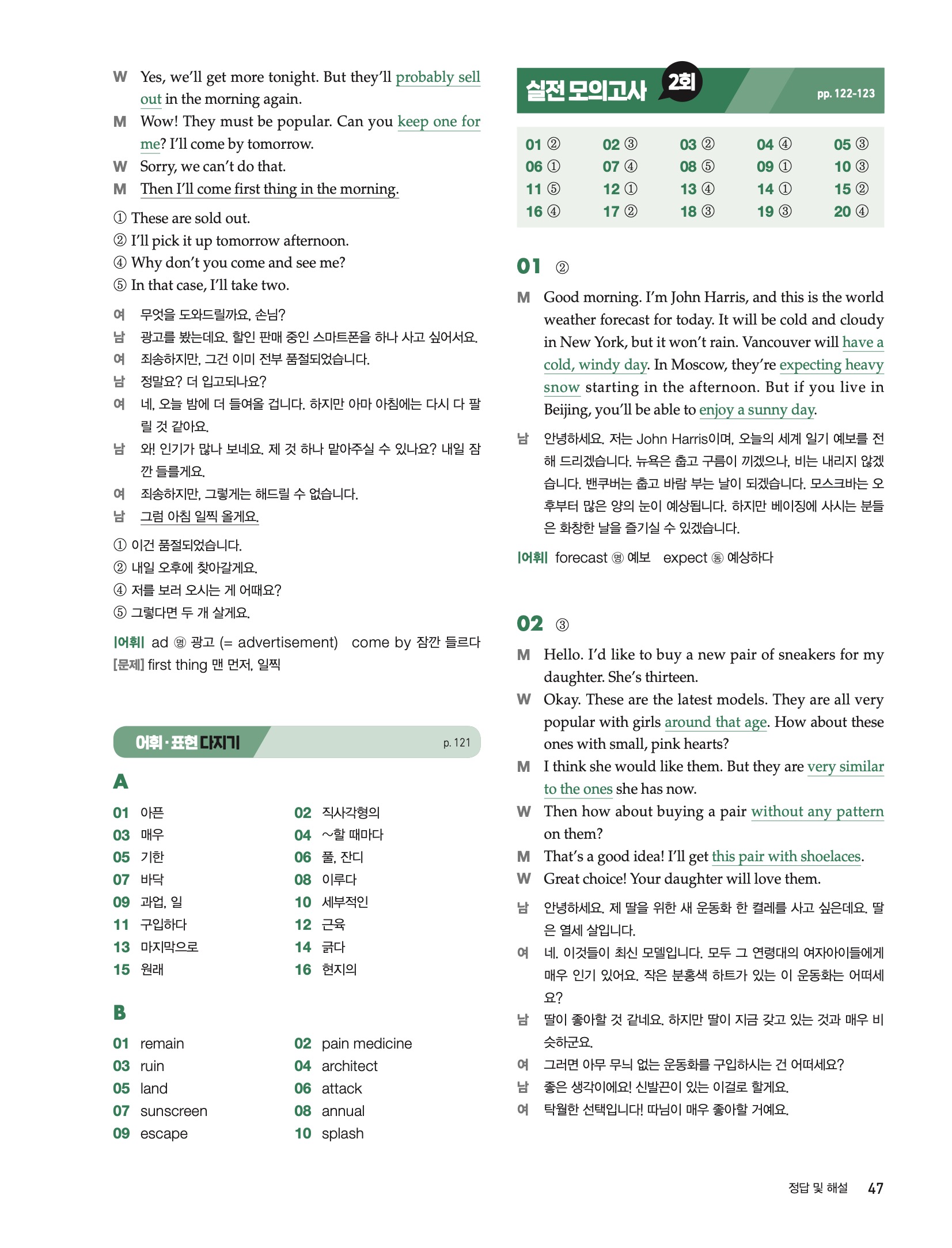 아래는 듣기 실력 향상과 영어 학습에 도움이 되는 다른 교재의 답지와 해설을 제공하는 포스팅입니다.
