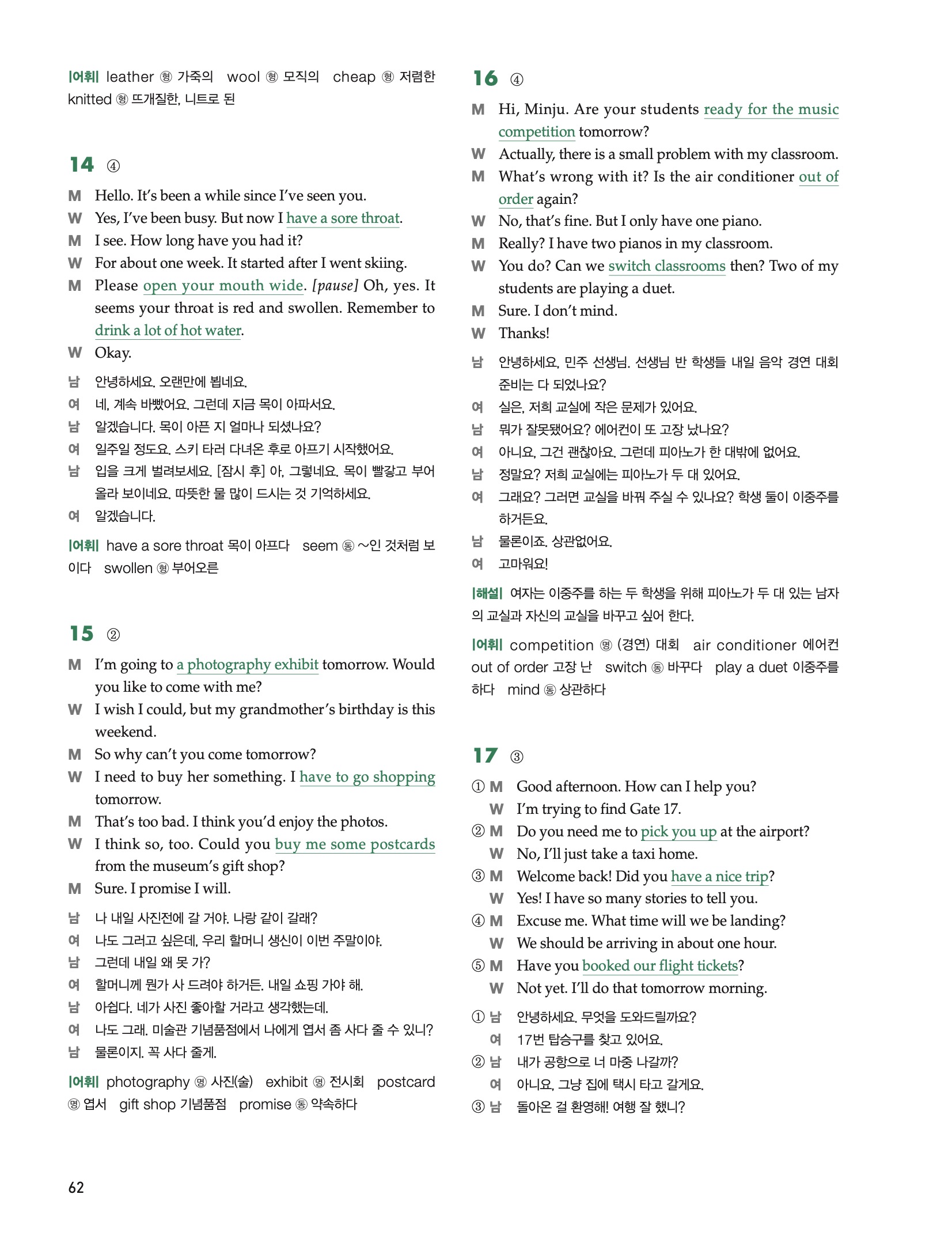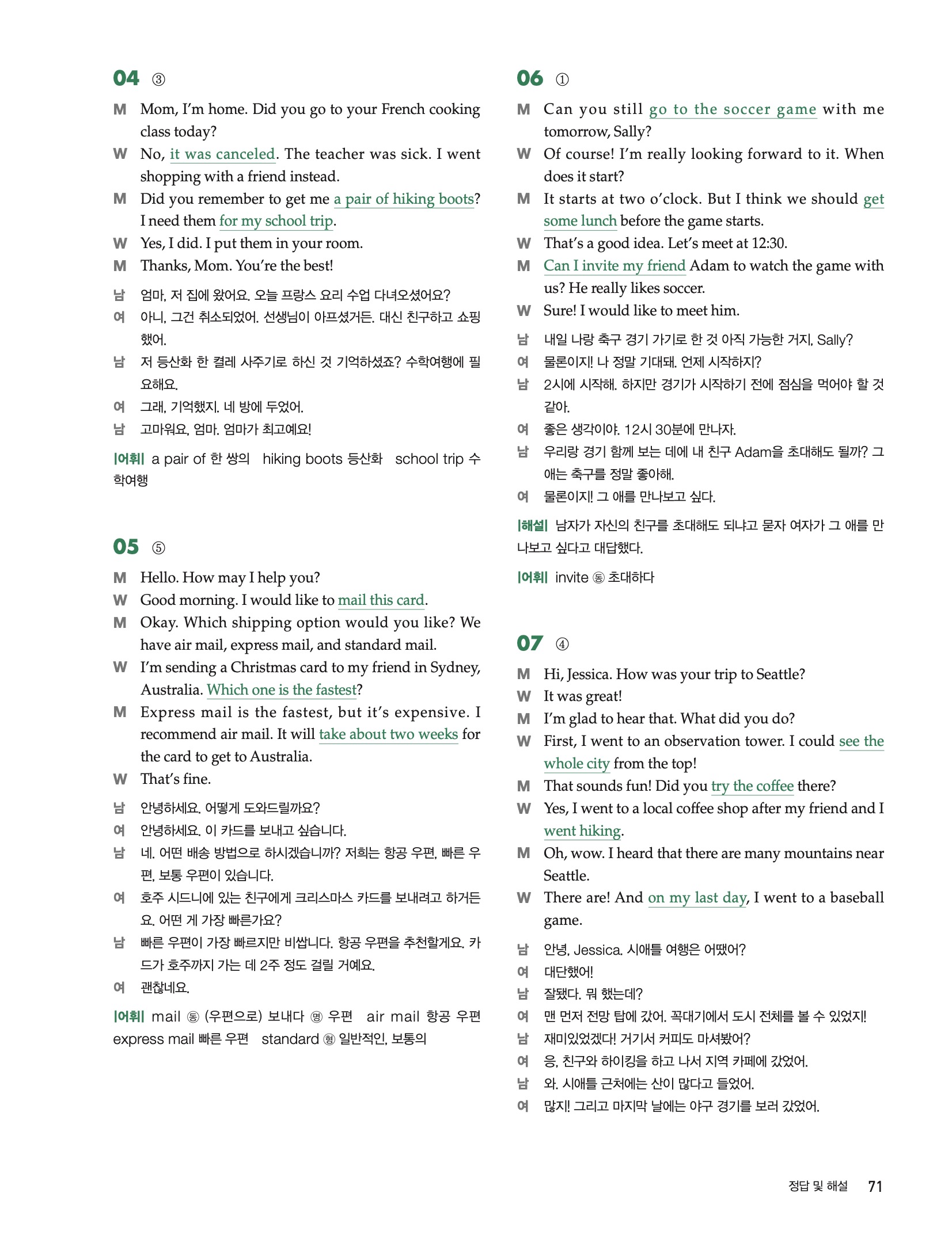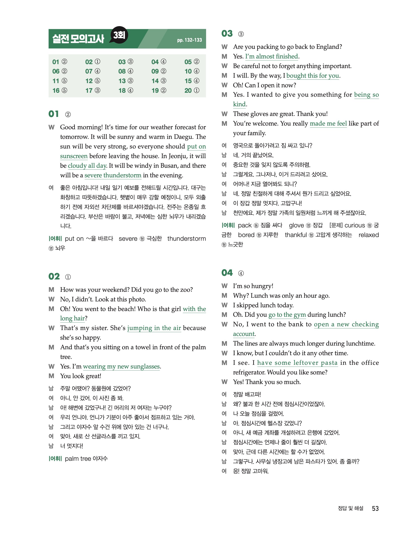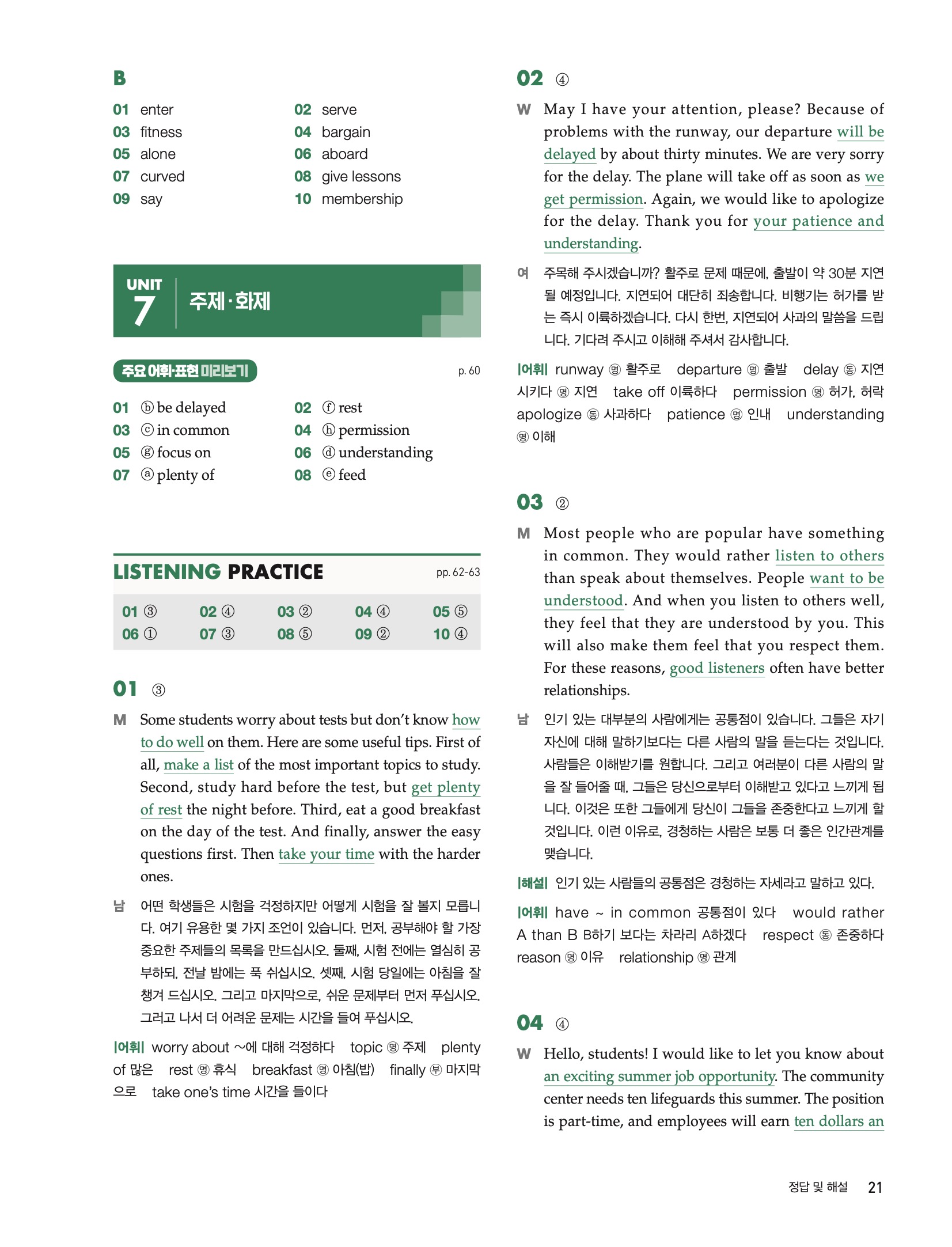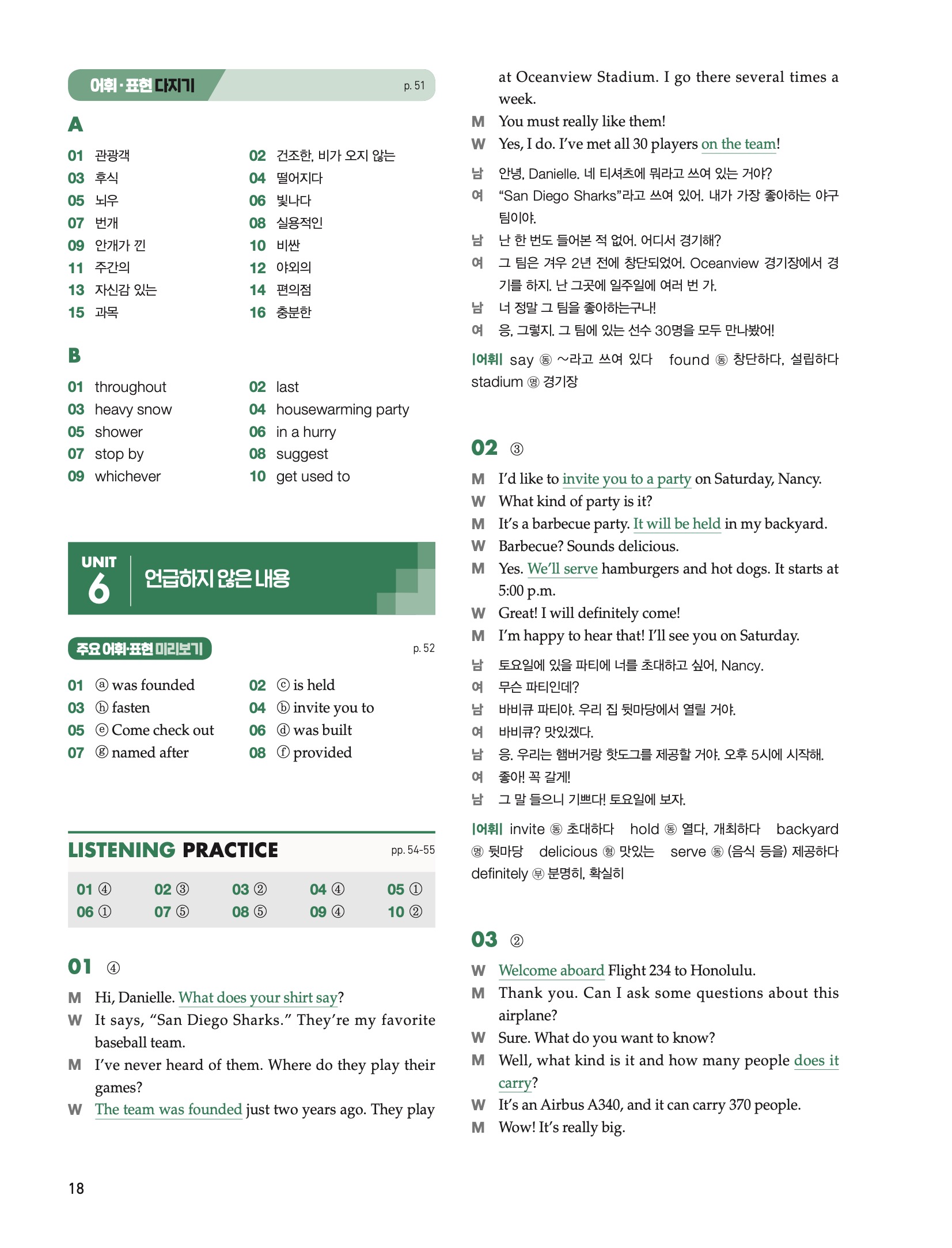 아래는 듣기 실력 향상과 영어 학습에 도움이 되는 다른 교재의 답지와 해설을 제공하는 포스팅입니다.
