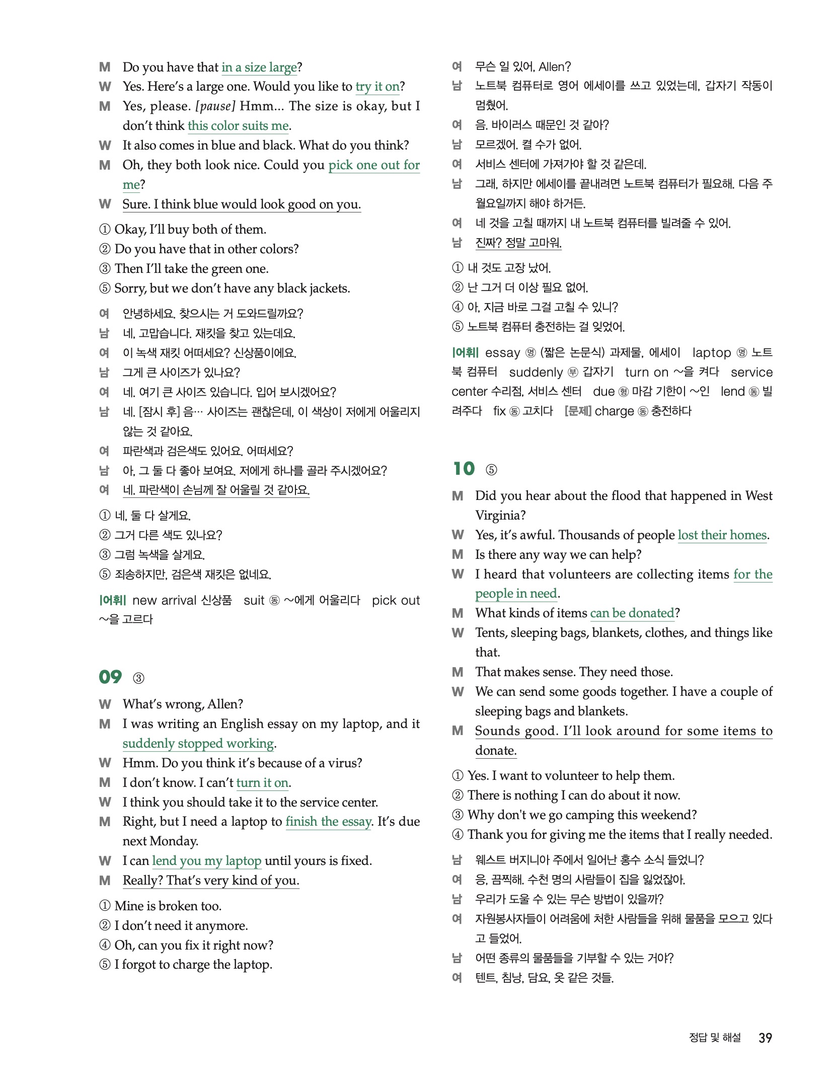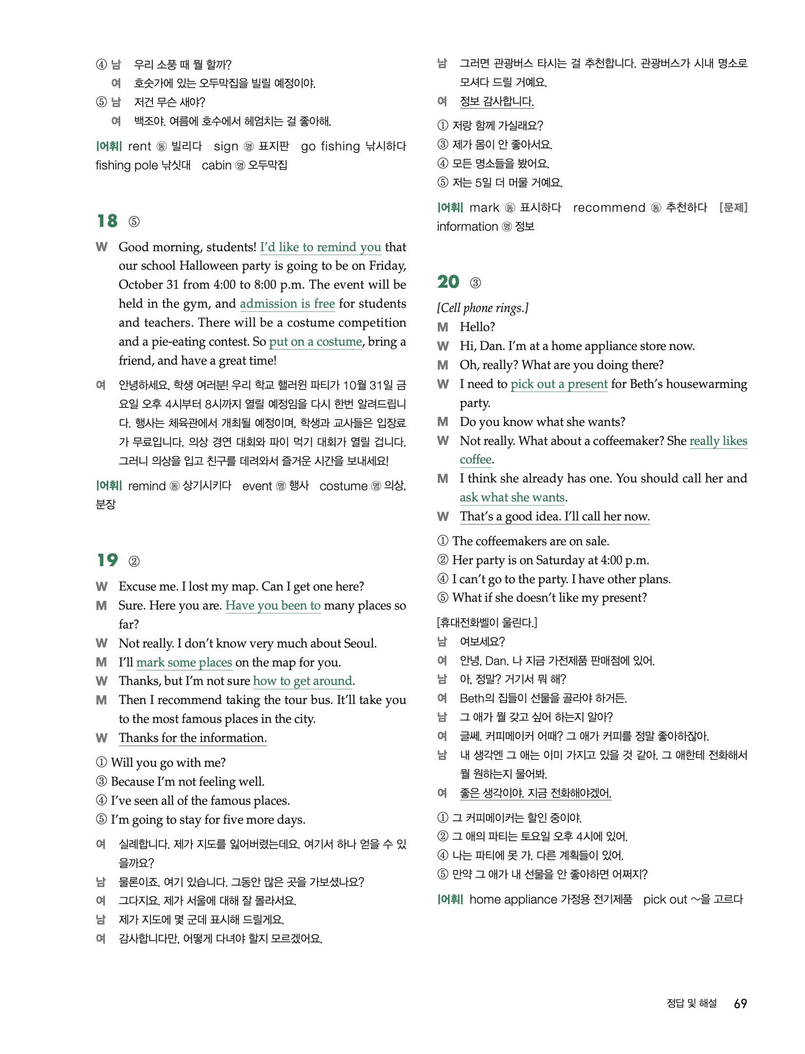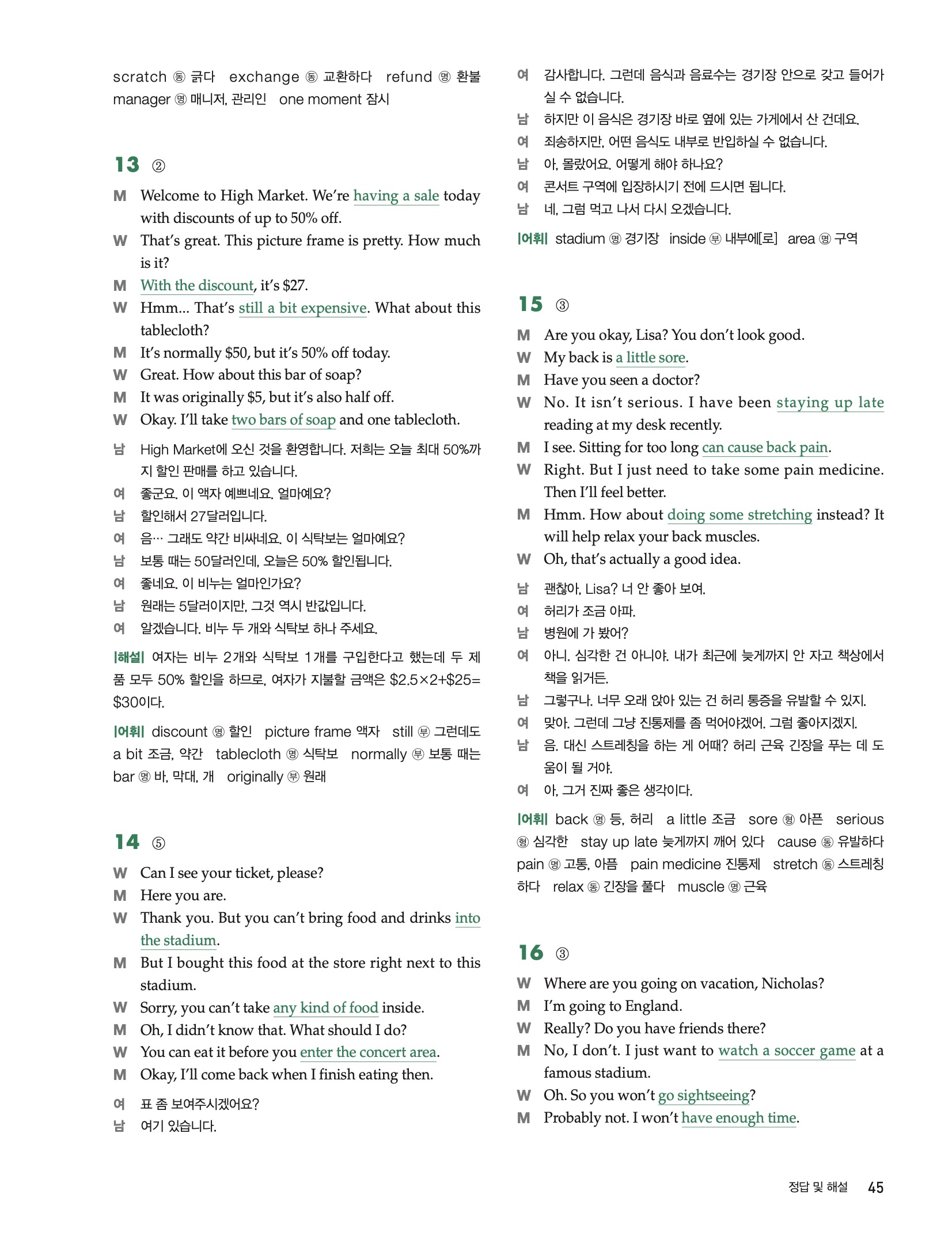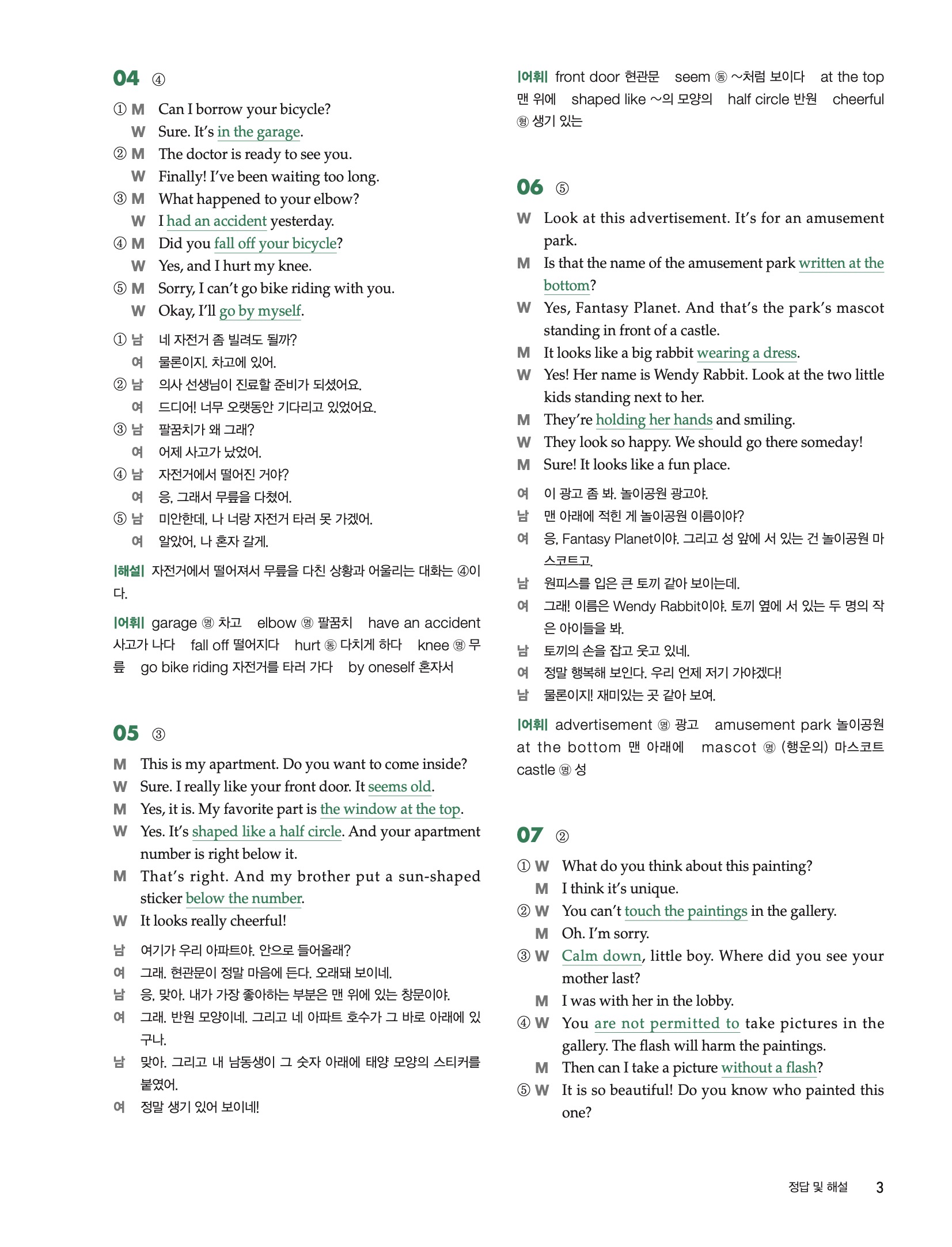 아래는 듣기 실력 향상과 영어 학습에 도움이 되는 다른 교재의 답지와 해설을 제공하는 포스팅입니다.