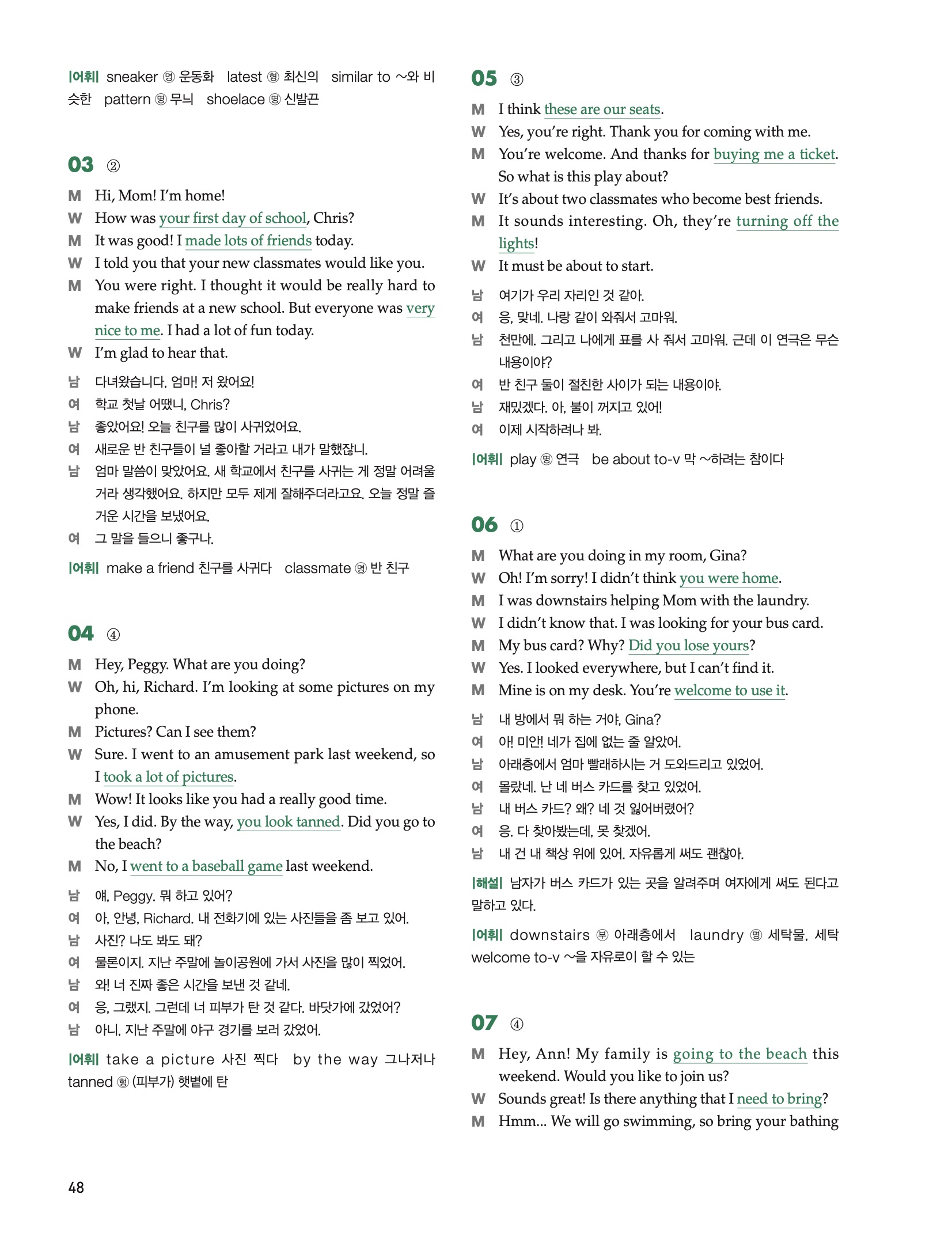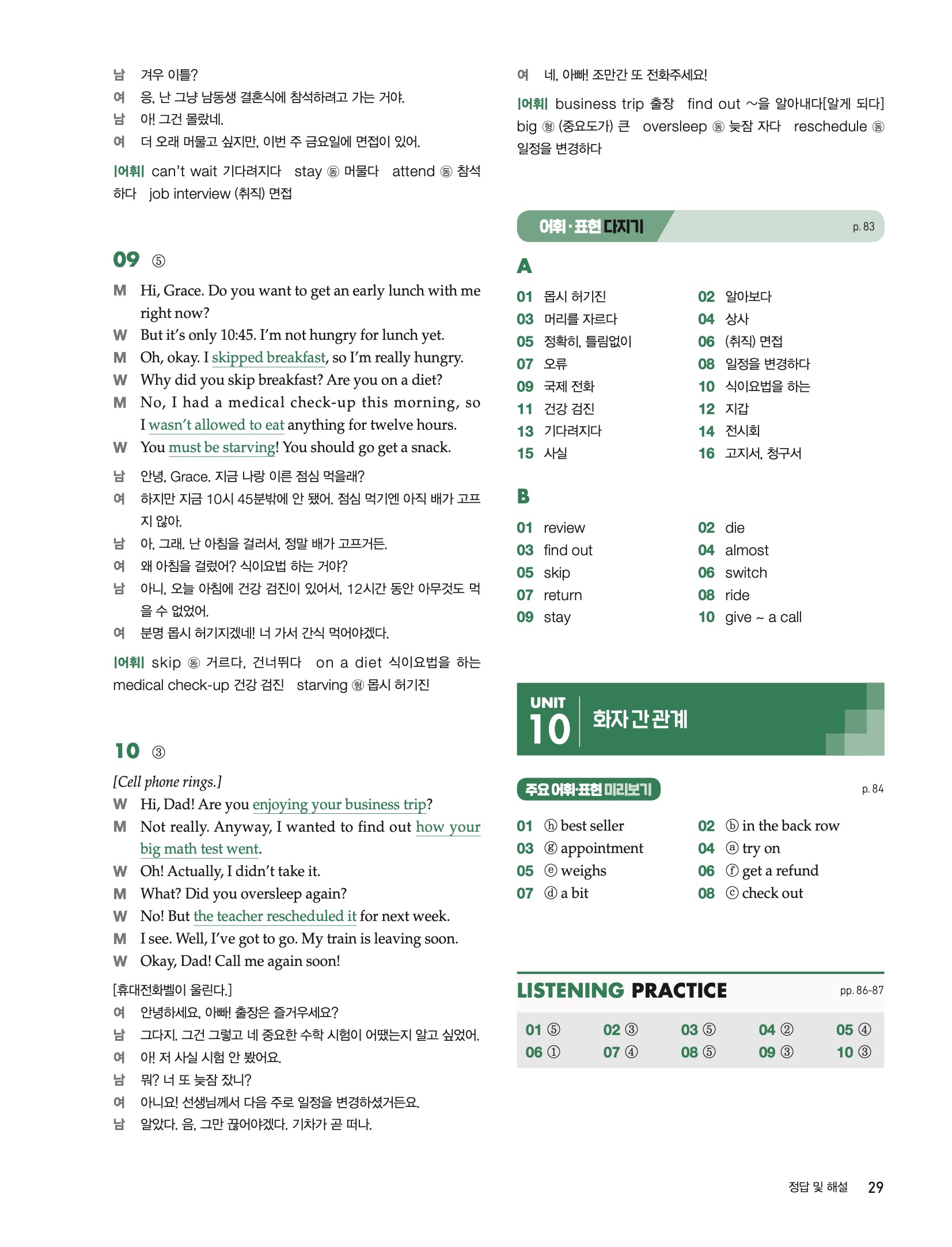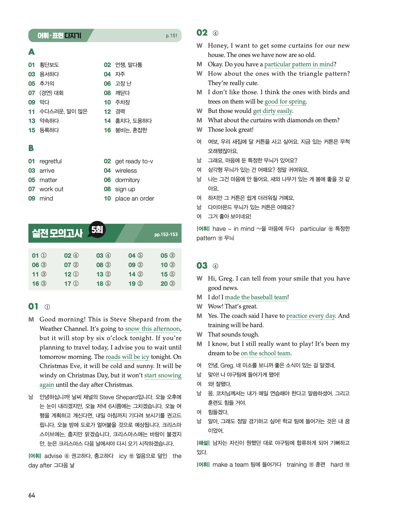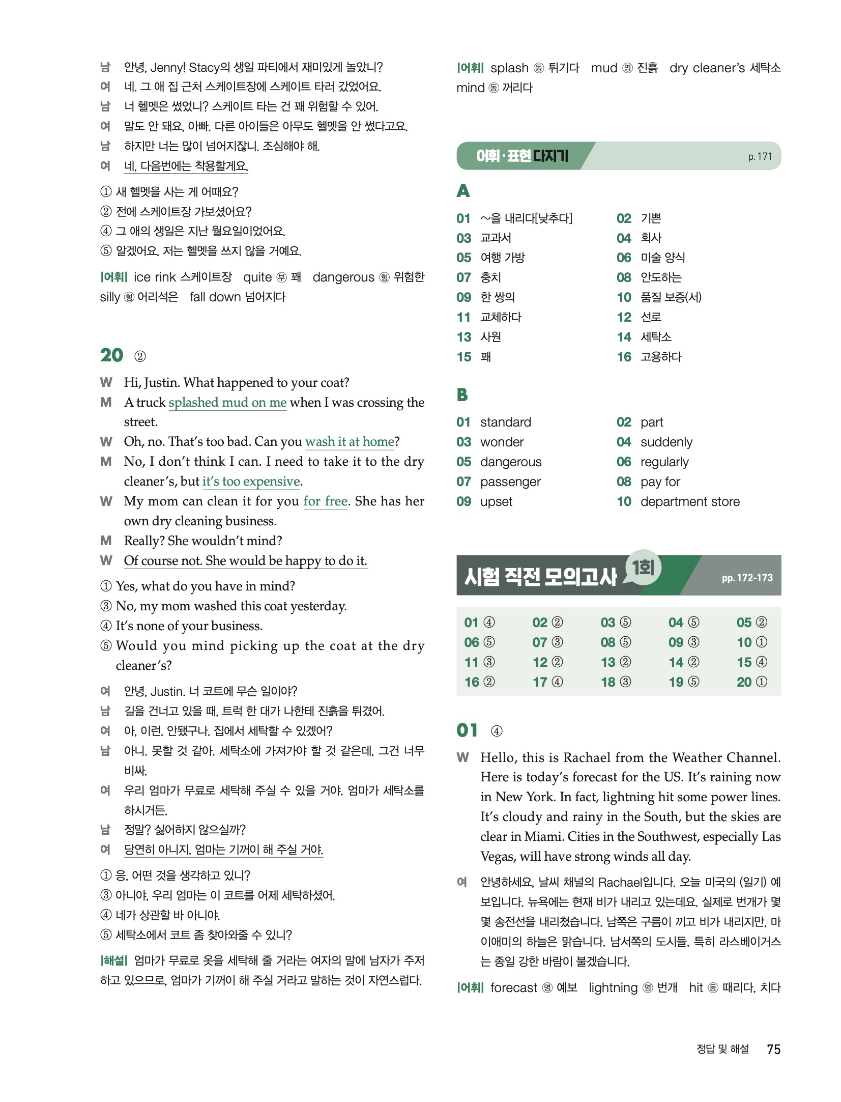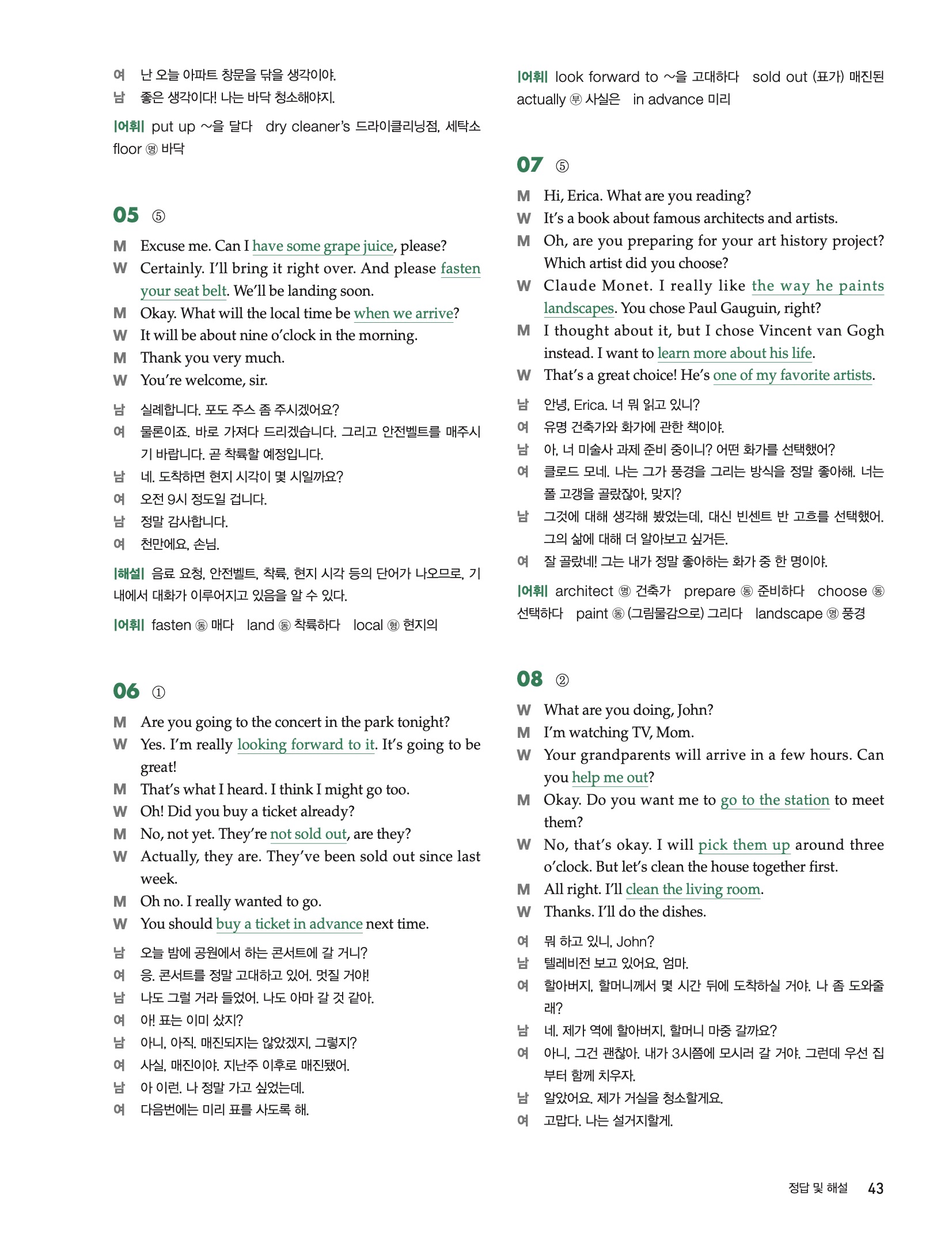 아래는 듣기 실력 향상과 영어 학습에 도움이 되는 다른 교재의 답지와 해설을 제공하는 포스팅입니다.
