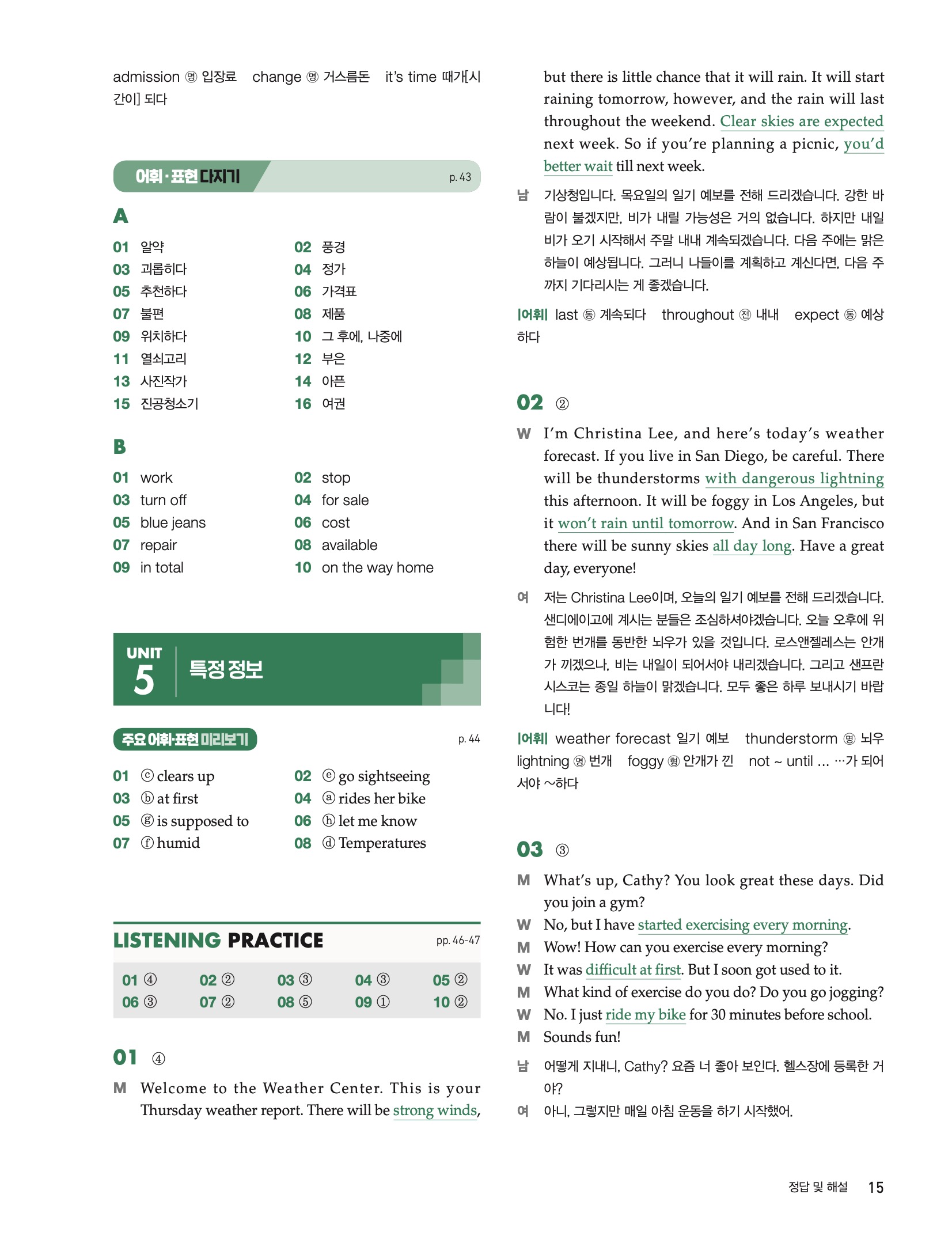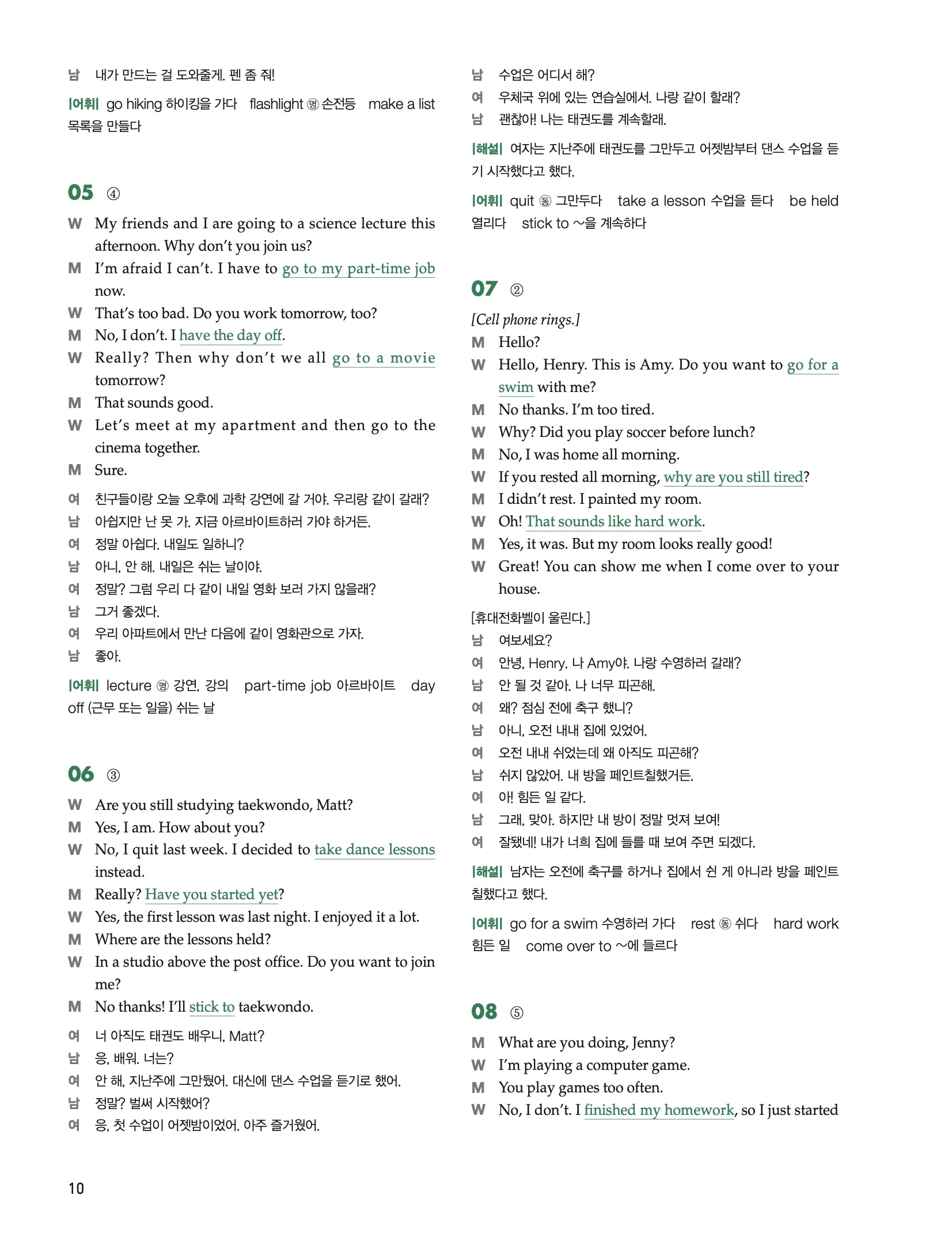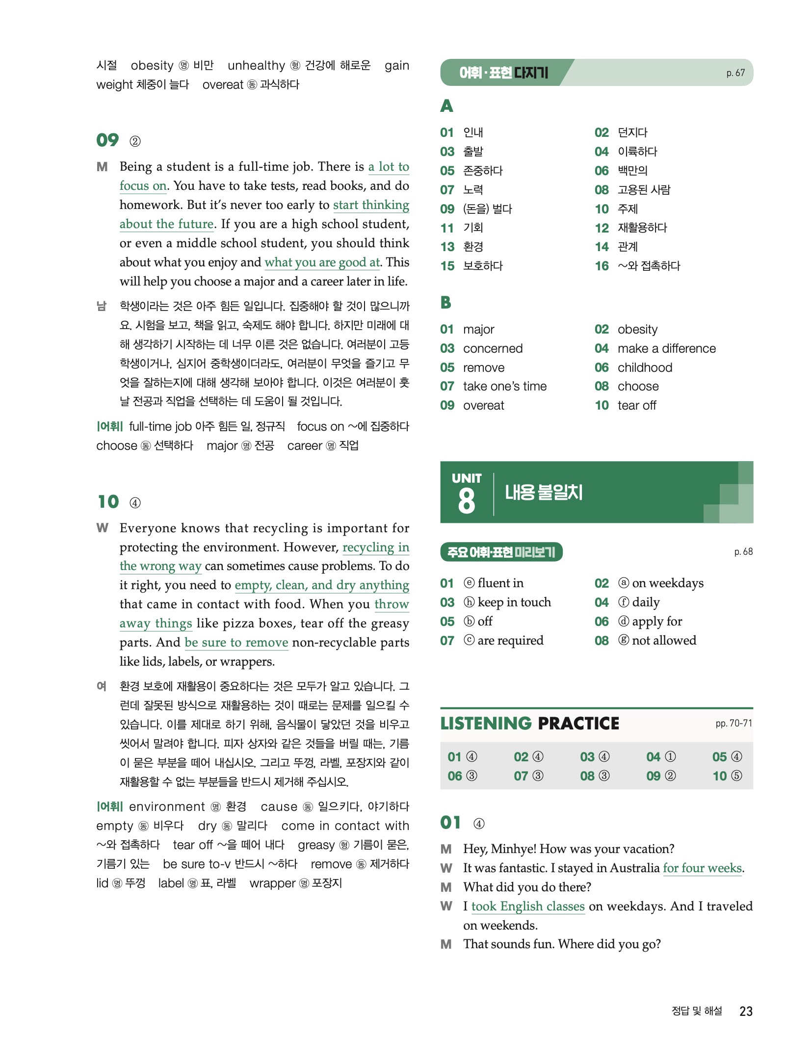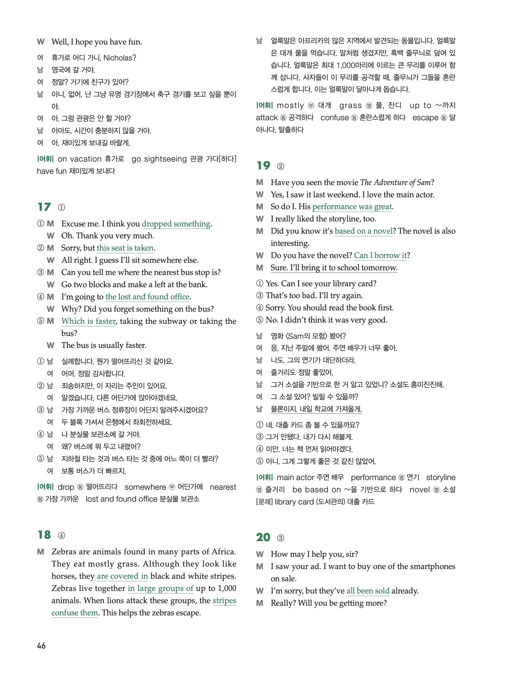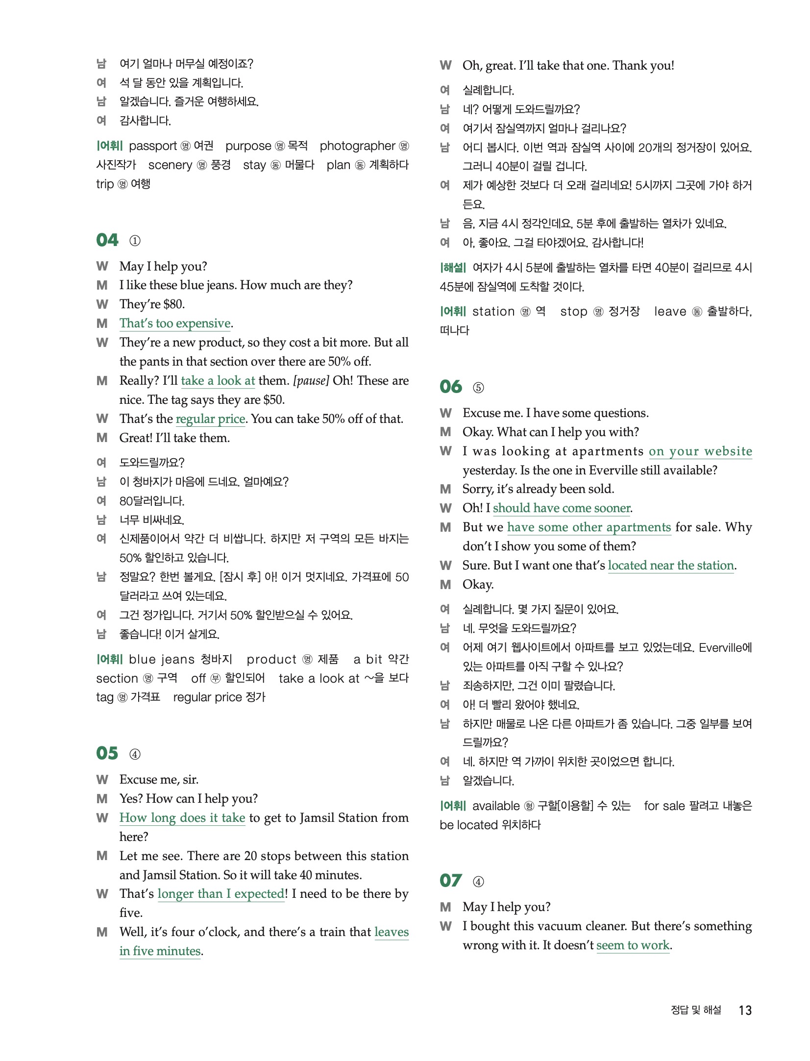 아래는 듣기 실력 향상과 영어 학습에 도움이 되는 다른 교재의 답지와 해설을 제공하는 포스팅입니다.