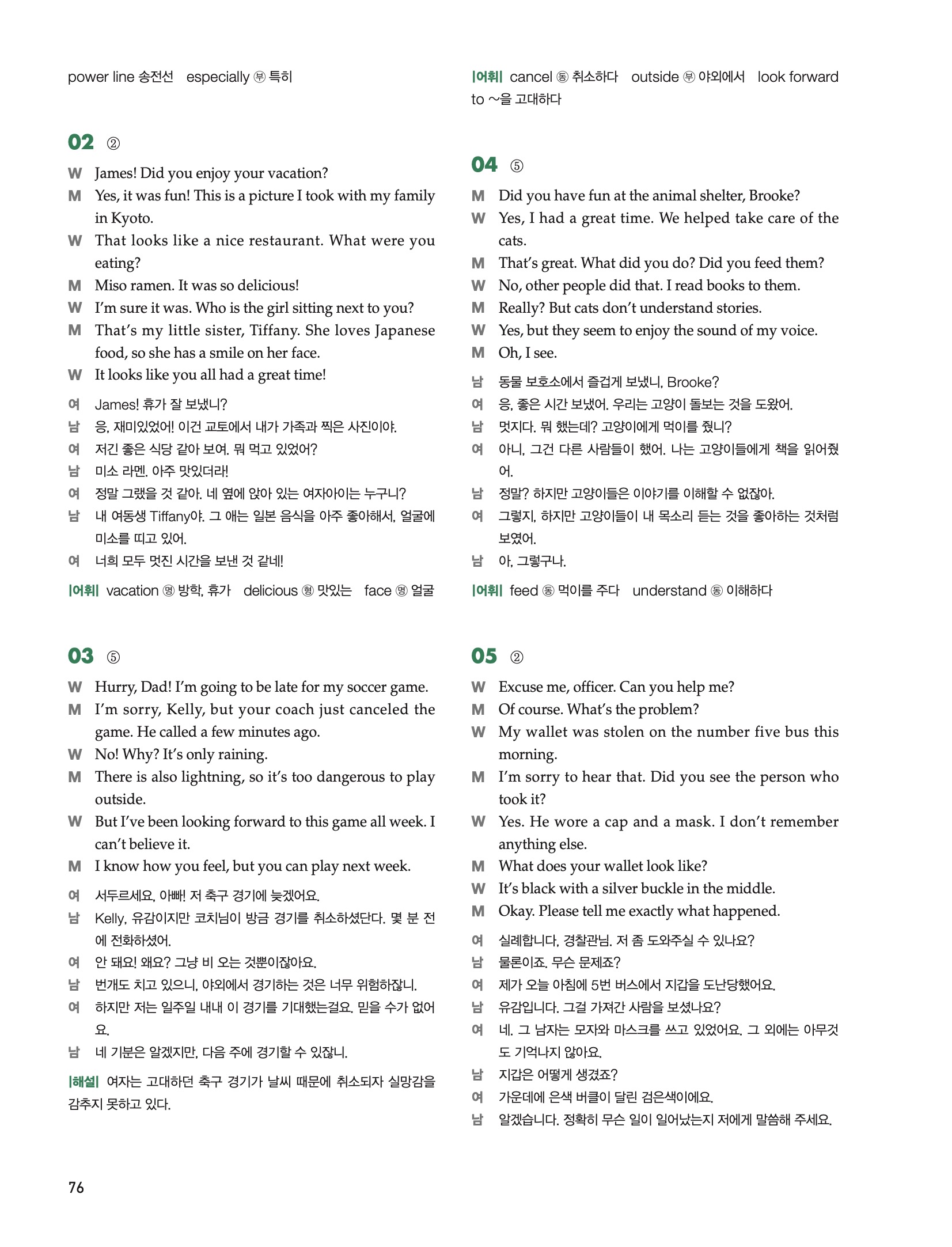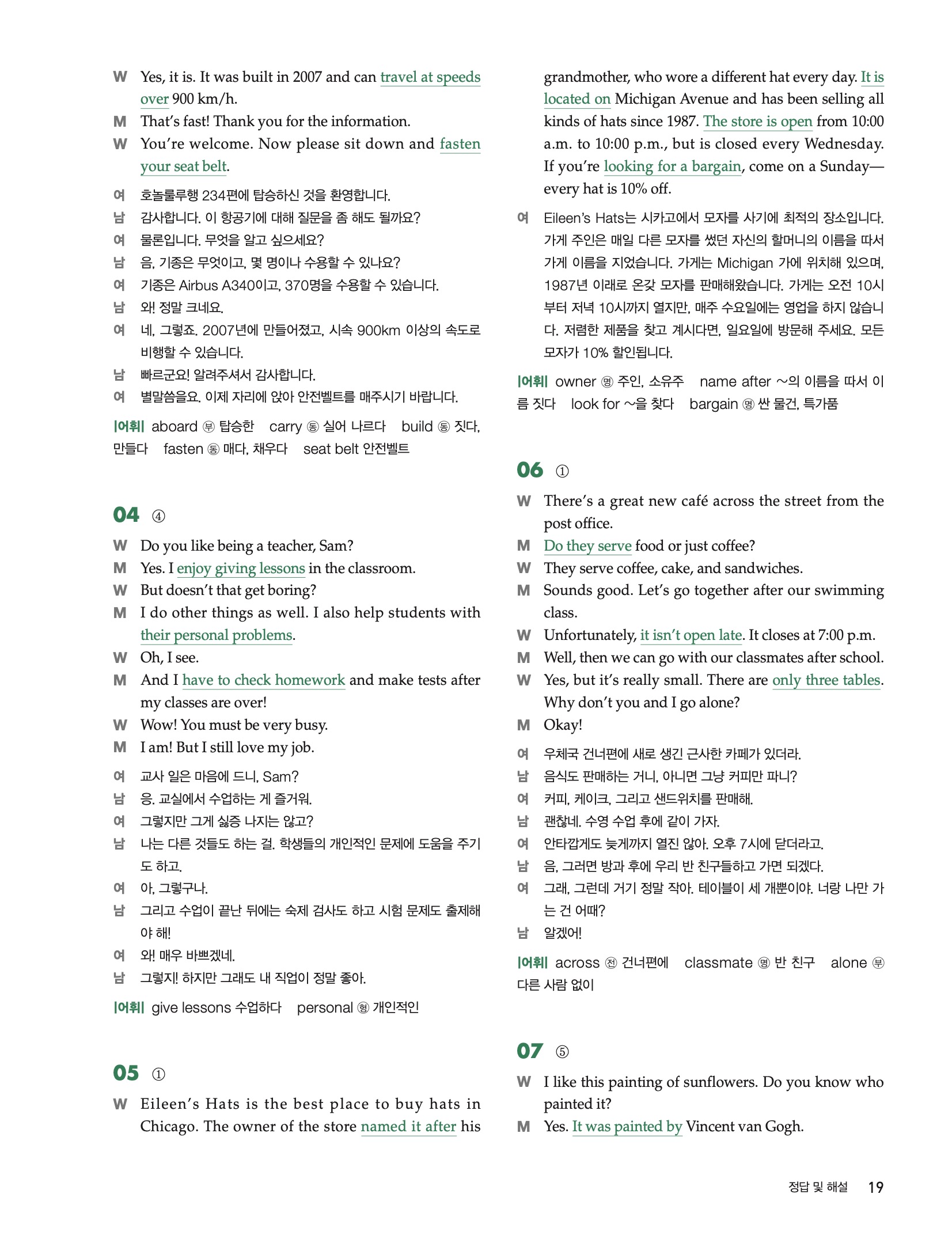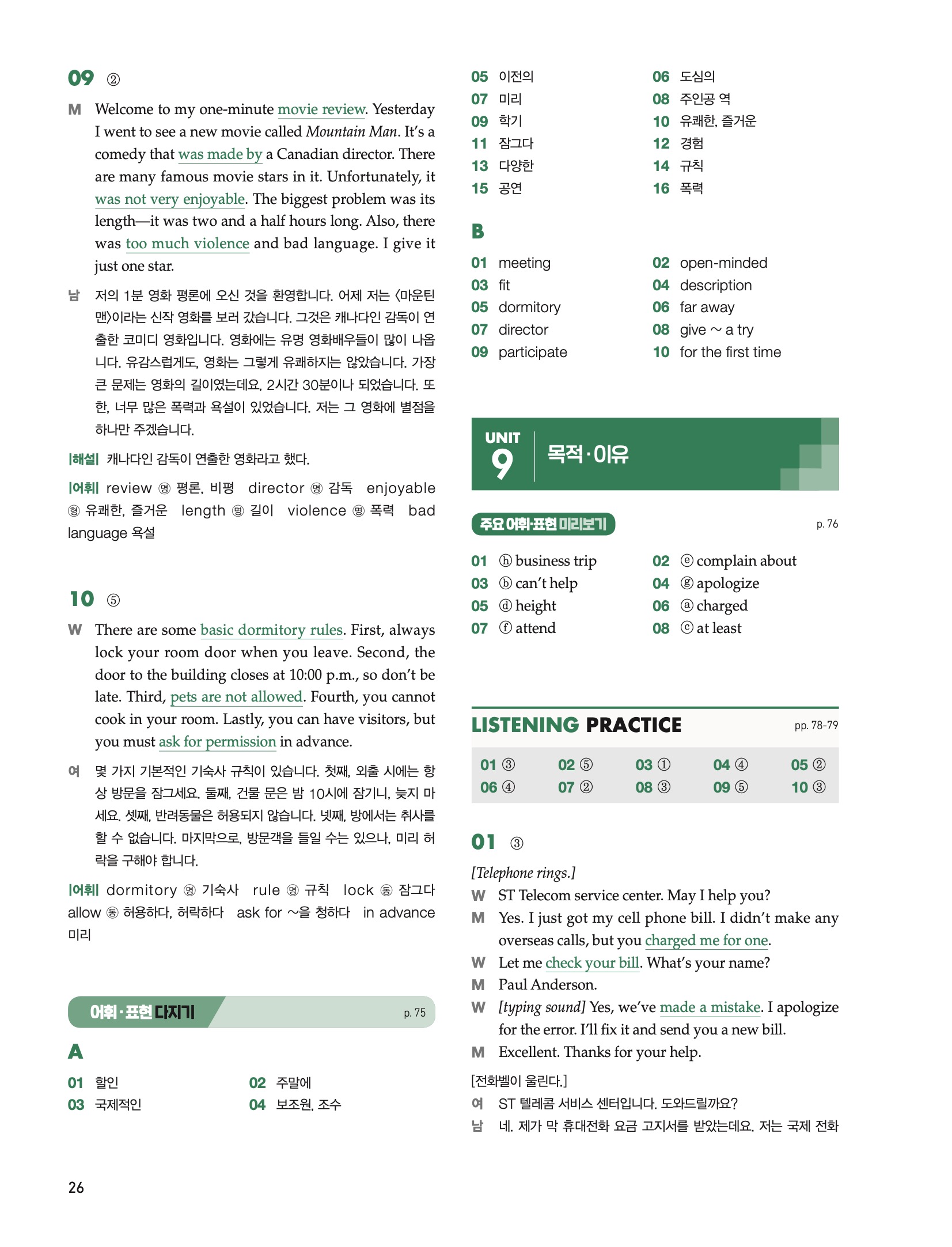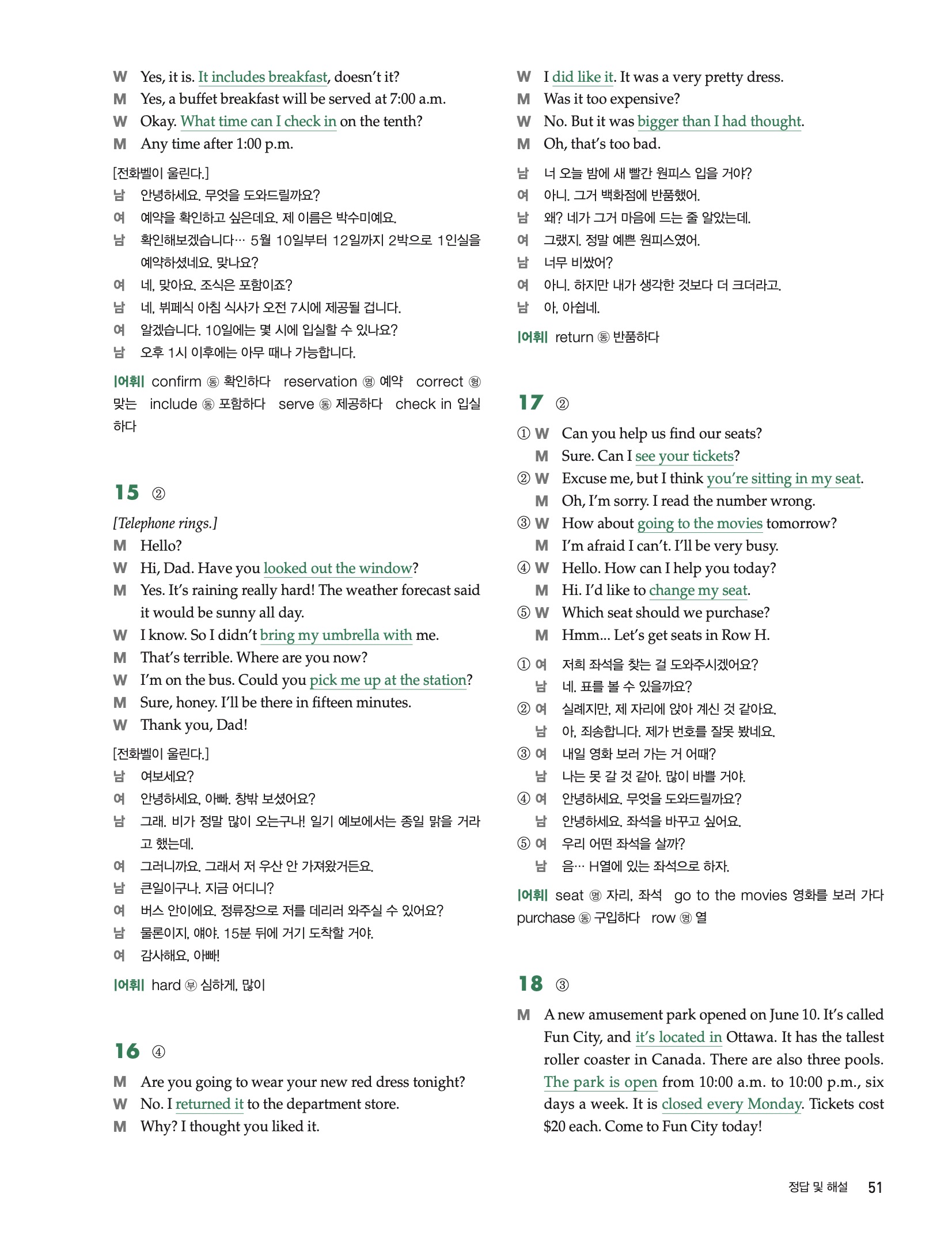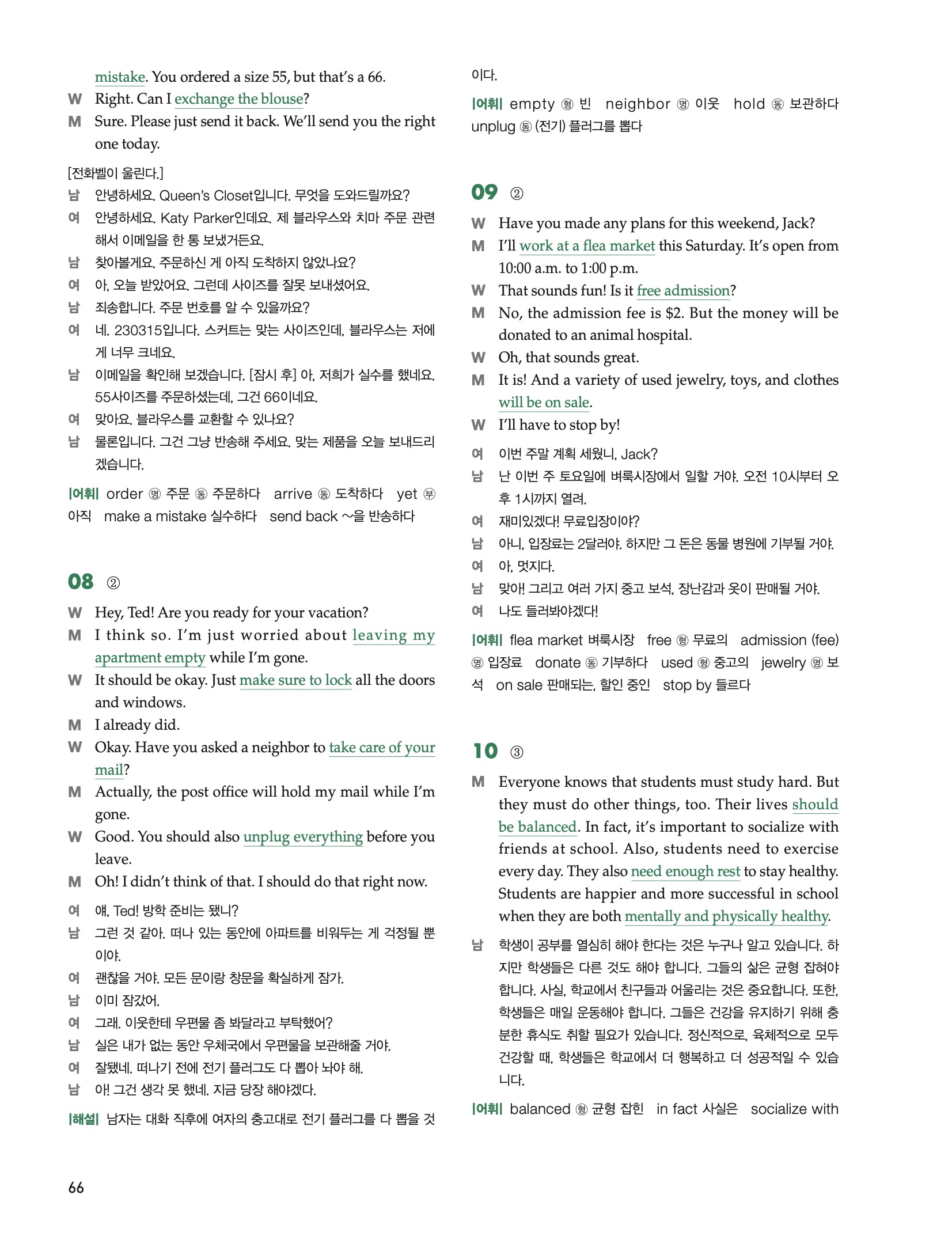 아래는 듣기 실력 향상과 영어 학습에 도움이 되는 다른 교재의 답지와 해설을 제공하는 포스팅입니다.