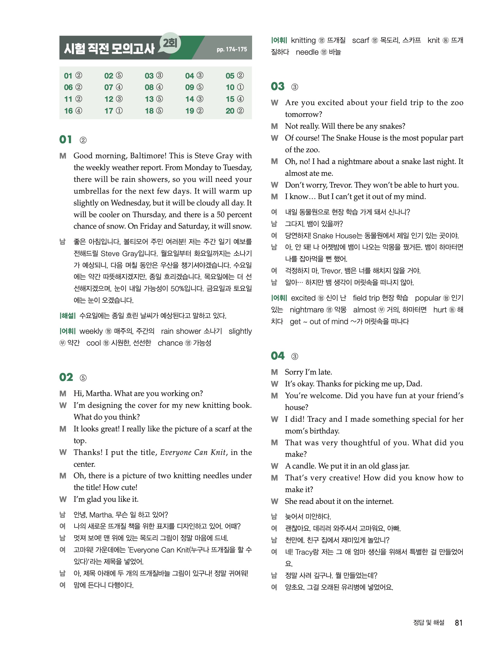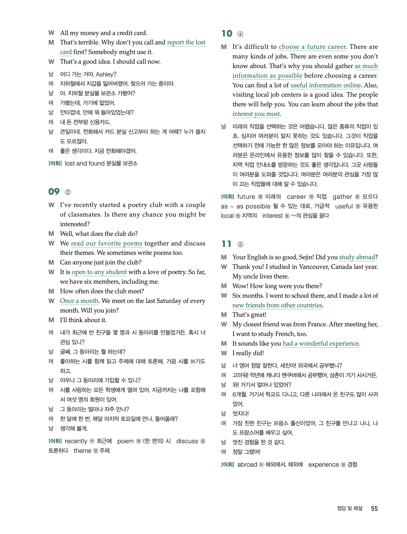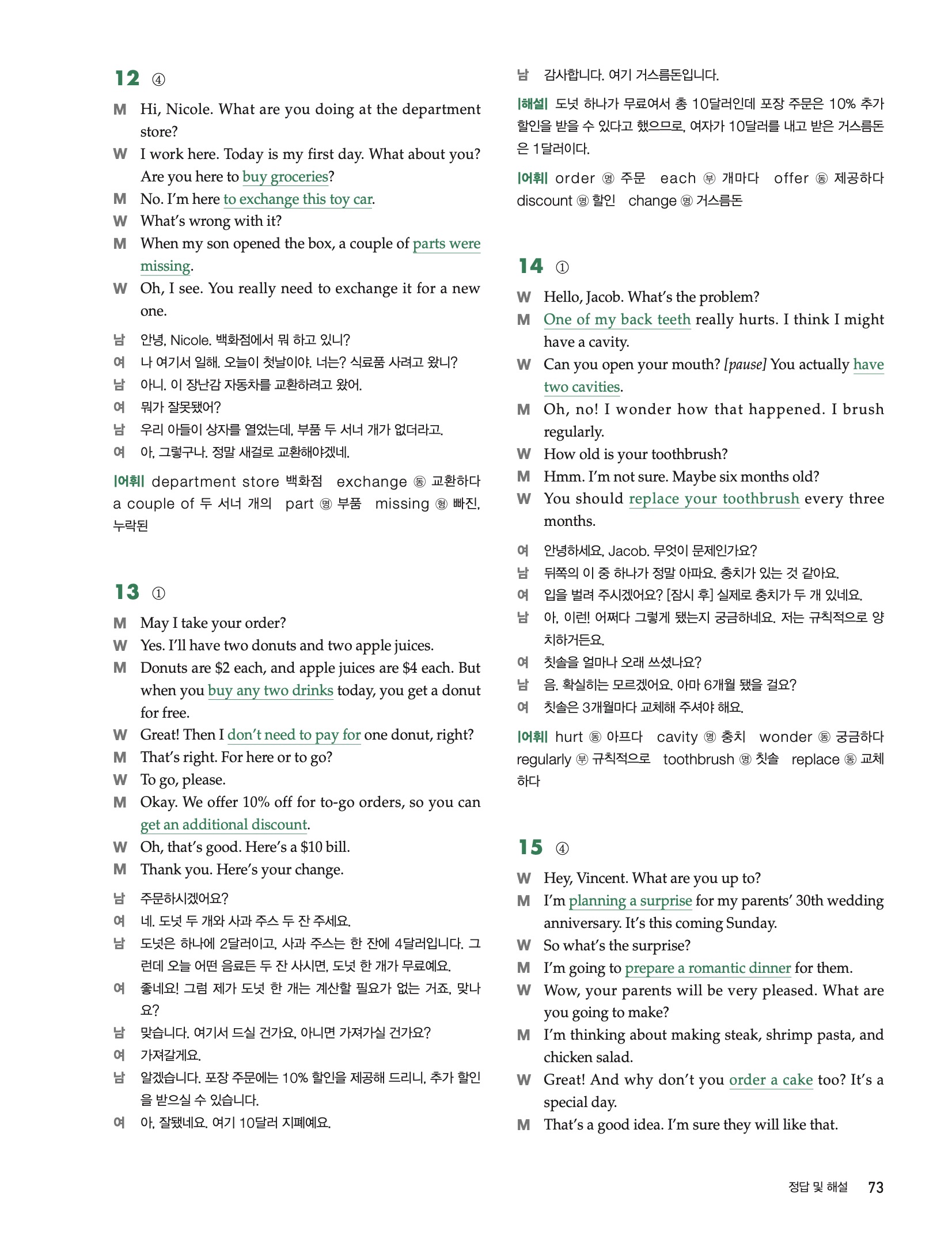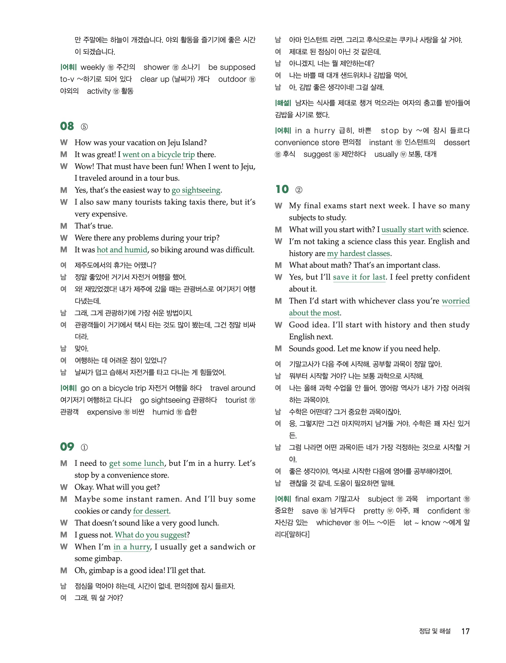 아래는 듣기 실력 향상과 영어 학습에 도움이 되는 다른 교재의 답지와 해설을 제공하는 포스팅입니다.
