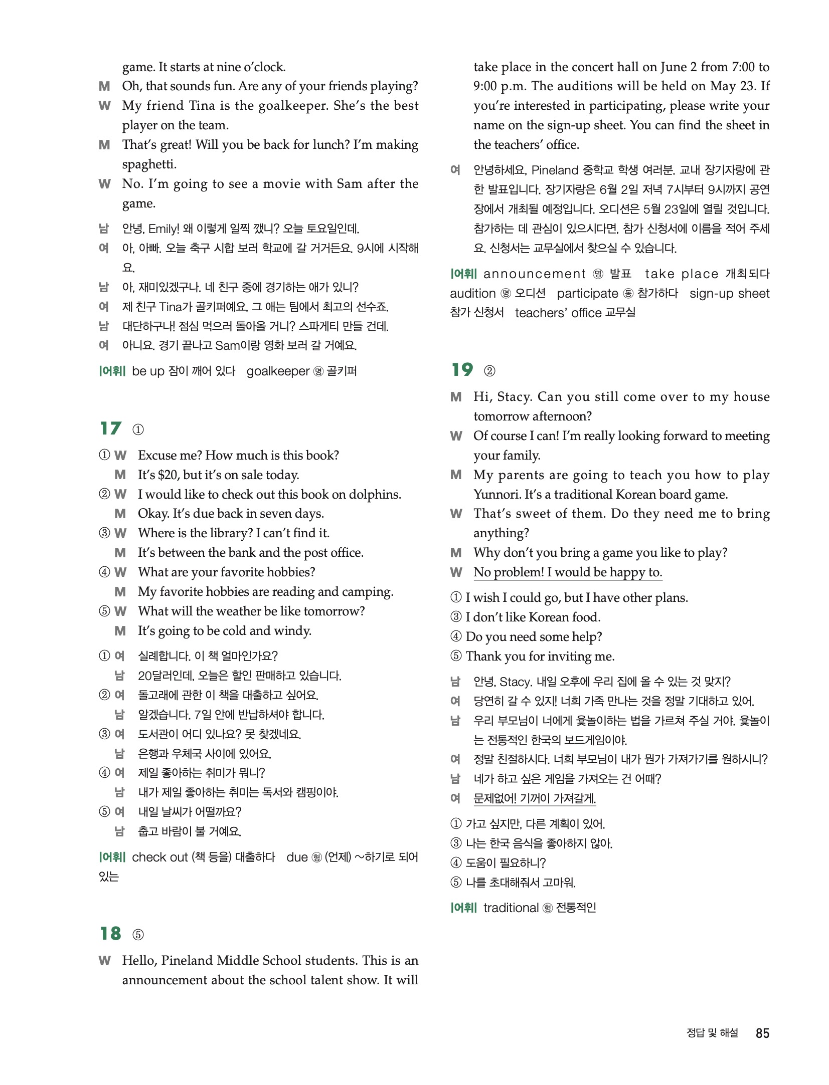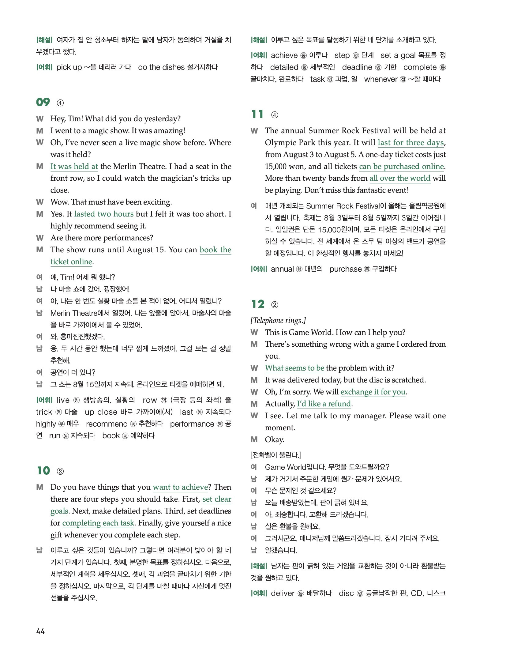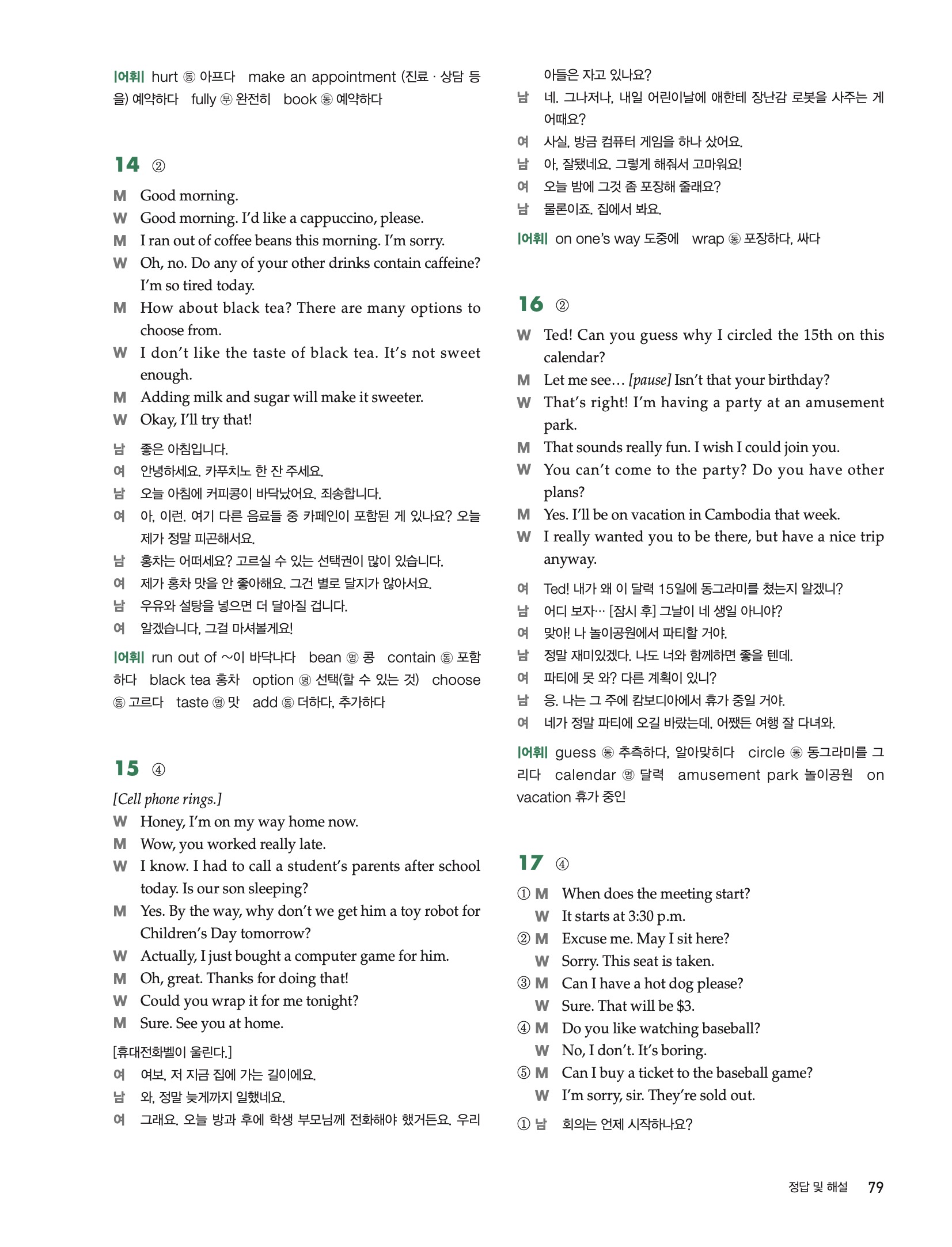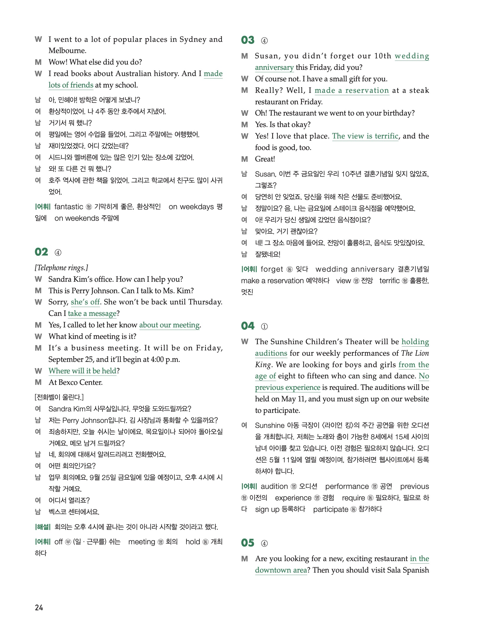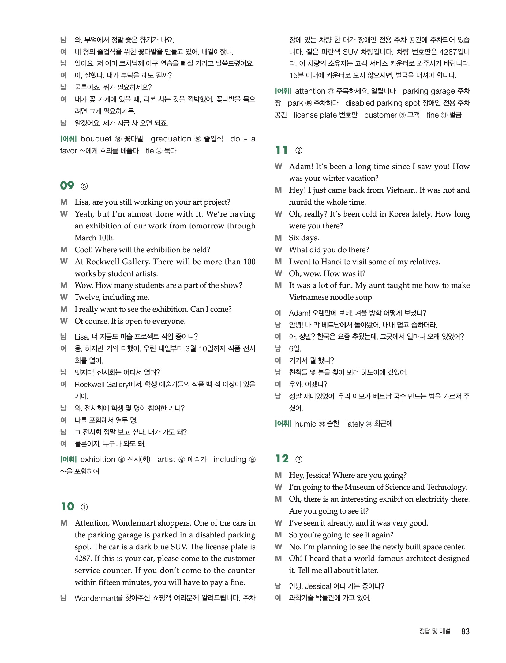 아래는 듣기 실력 향상과 영어 학습에 도움이 되는 다른 교재의 답지와 해설을 제공하는 포스팅입니다.