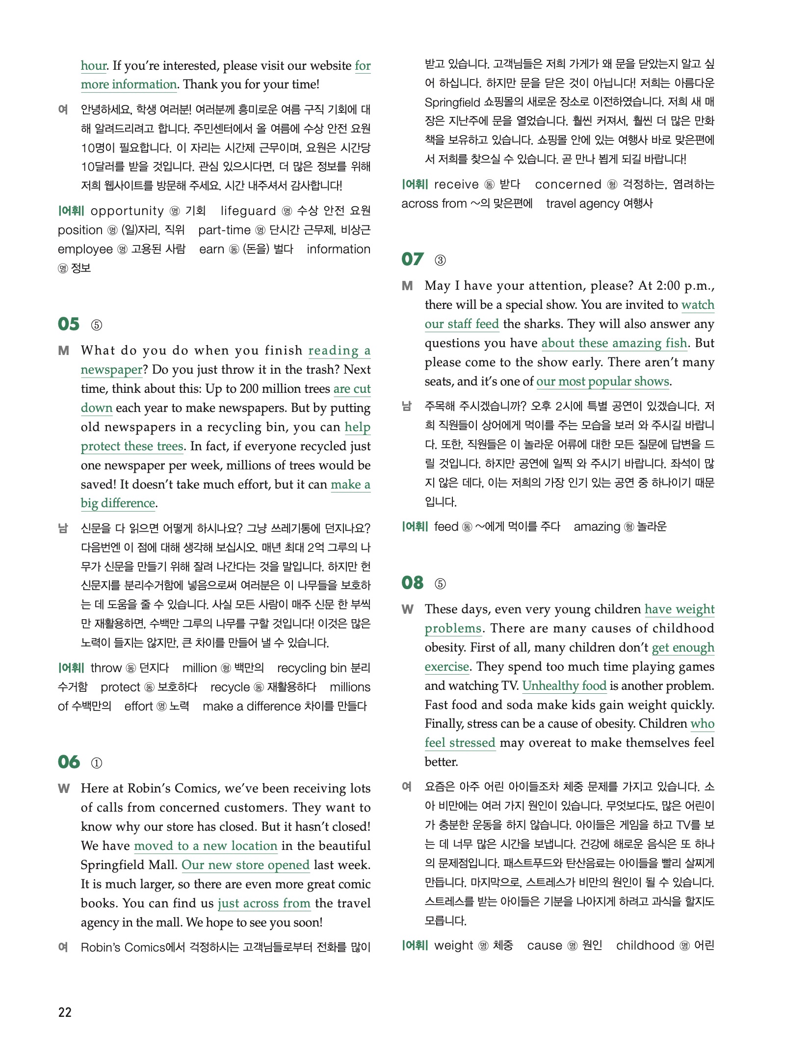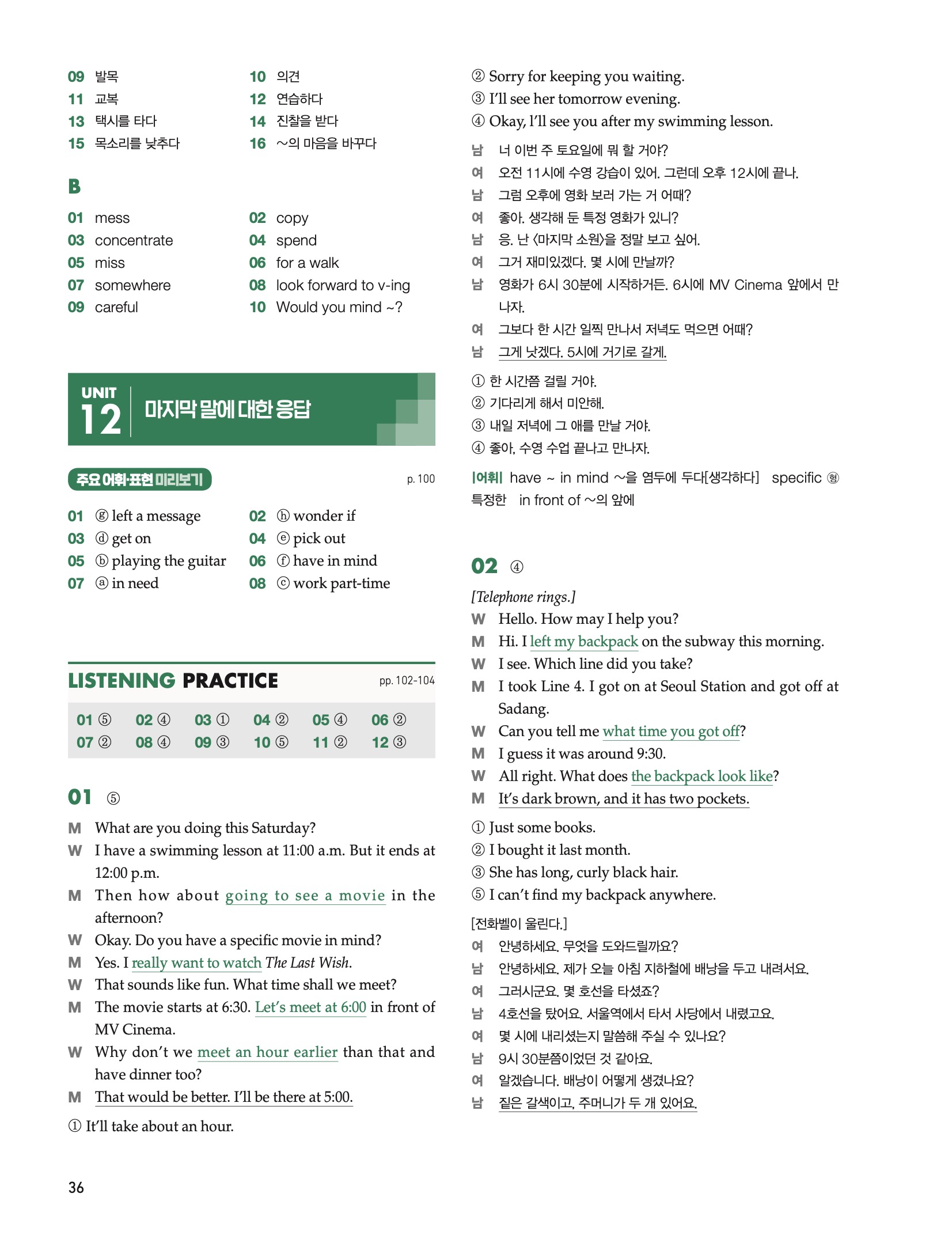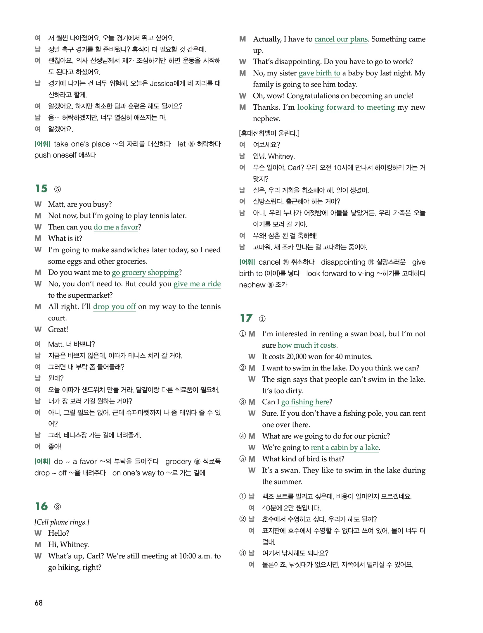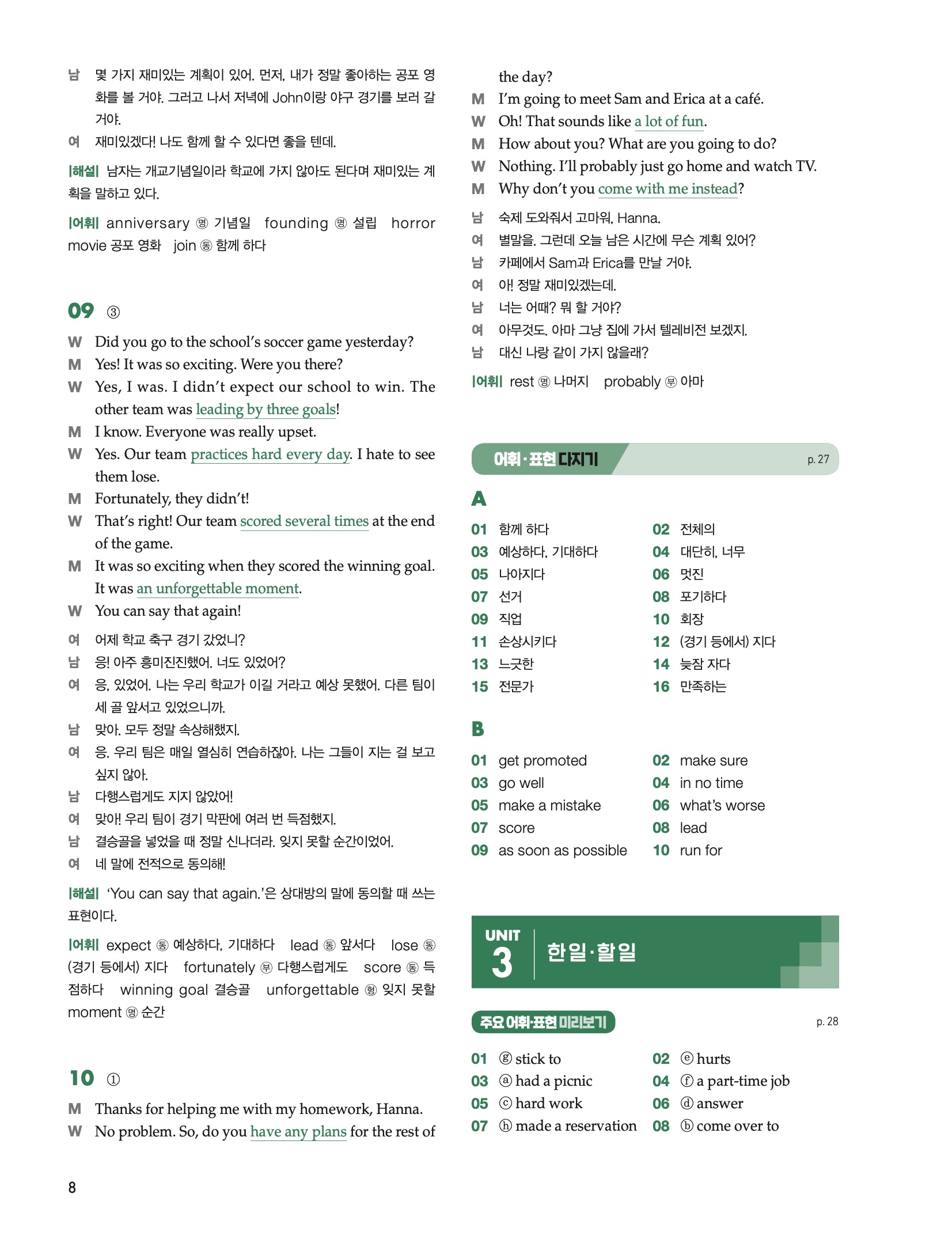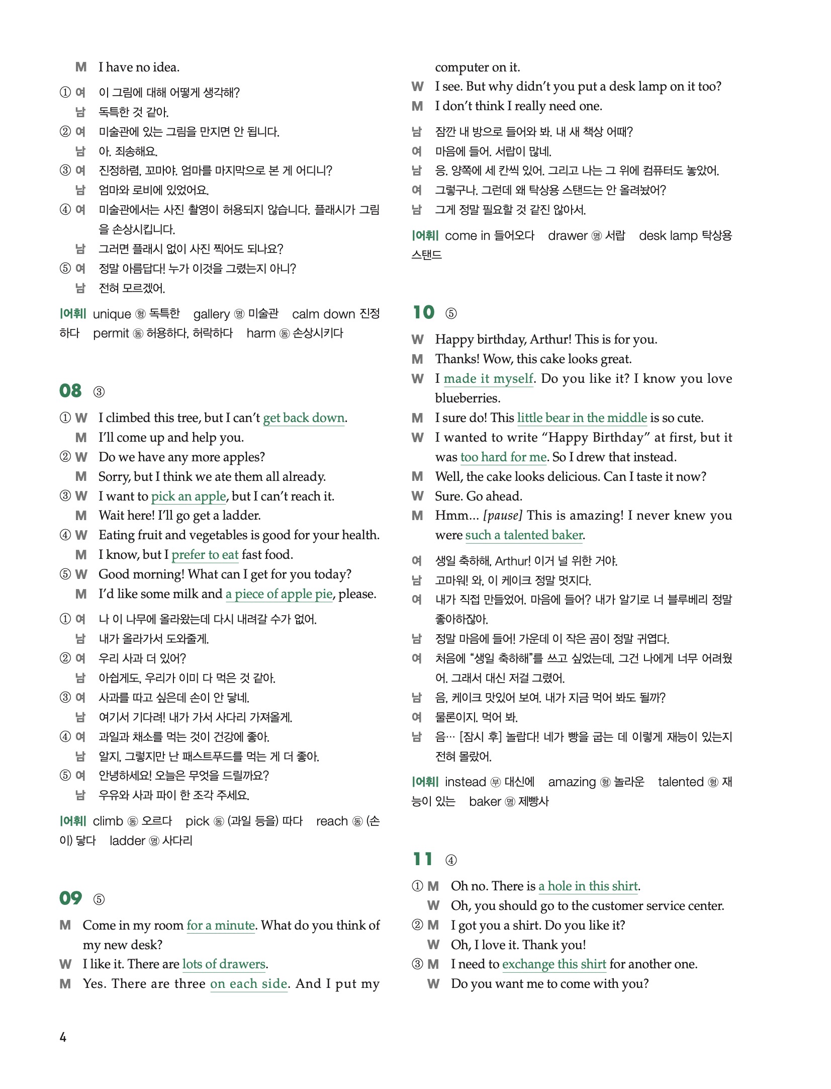 아래는 듣기 실력 향상과 영어 학습에 도움이 되는 다른 교재의 답지와 해설을 제공하는 포스팅입니다.