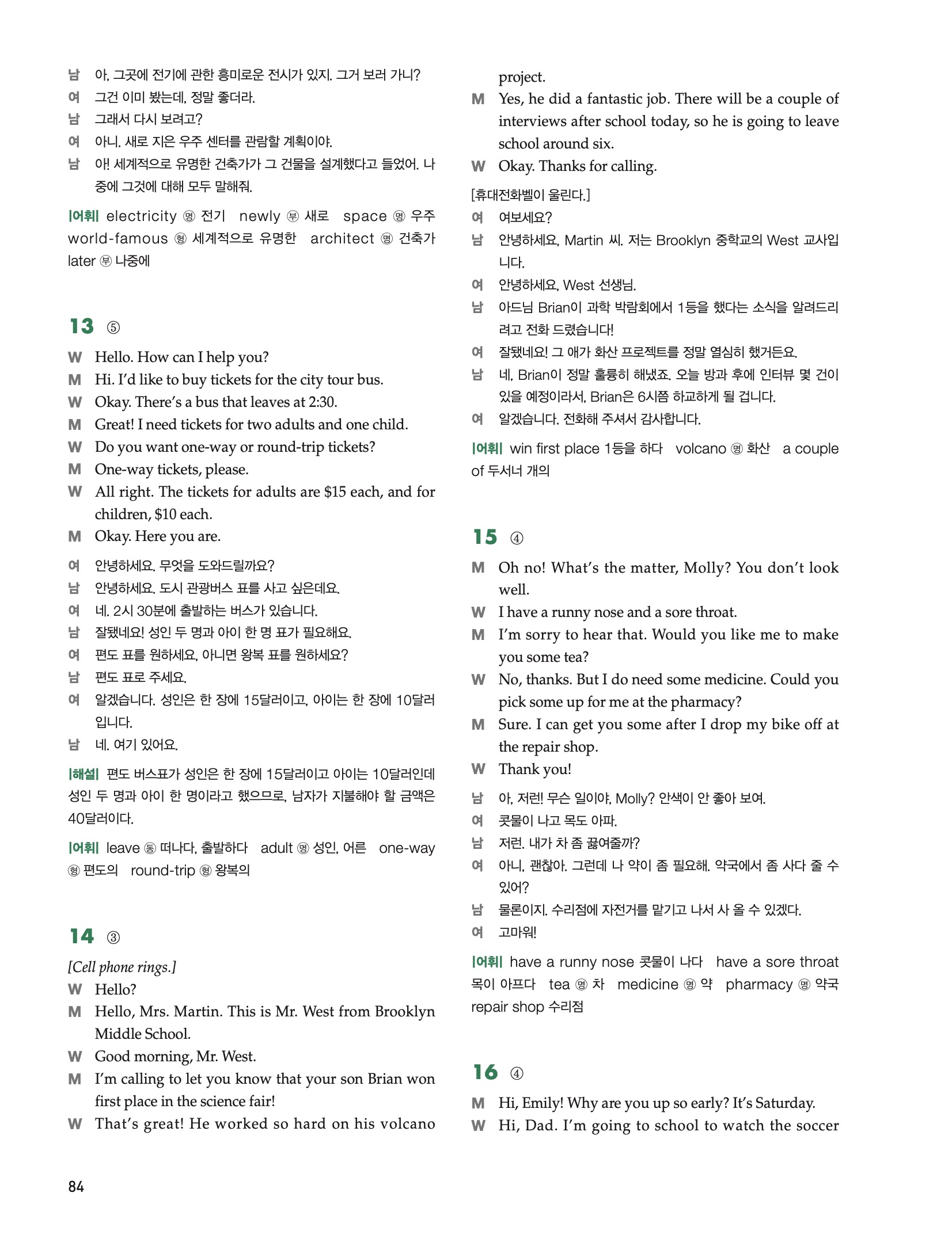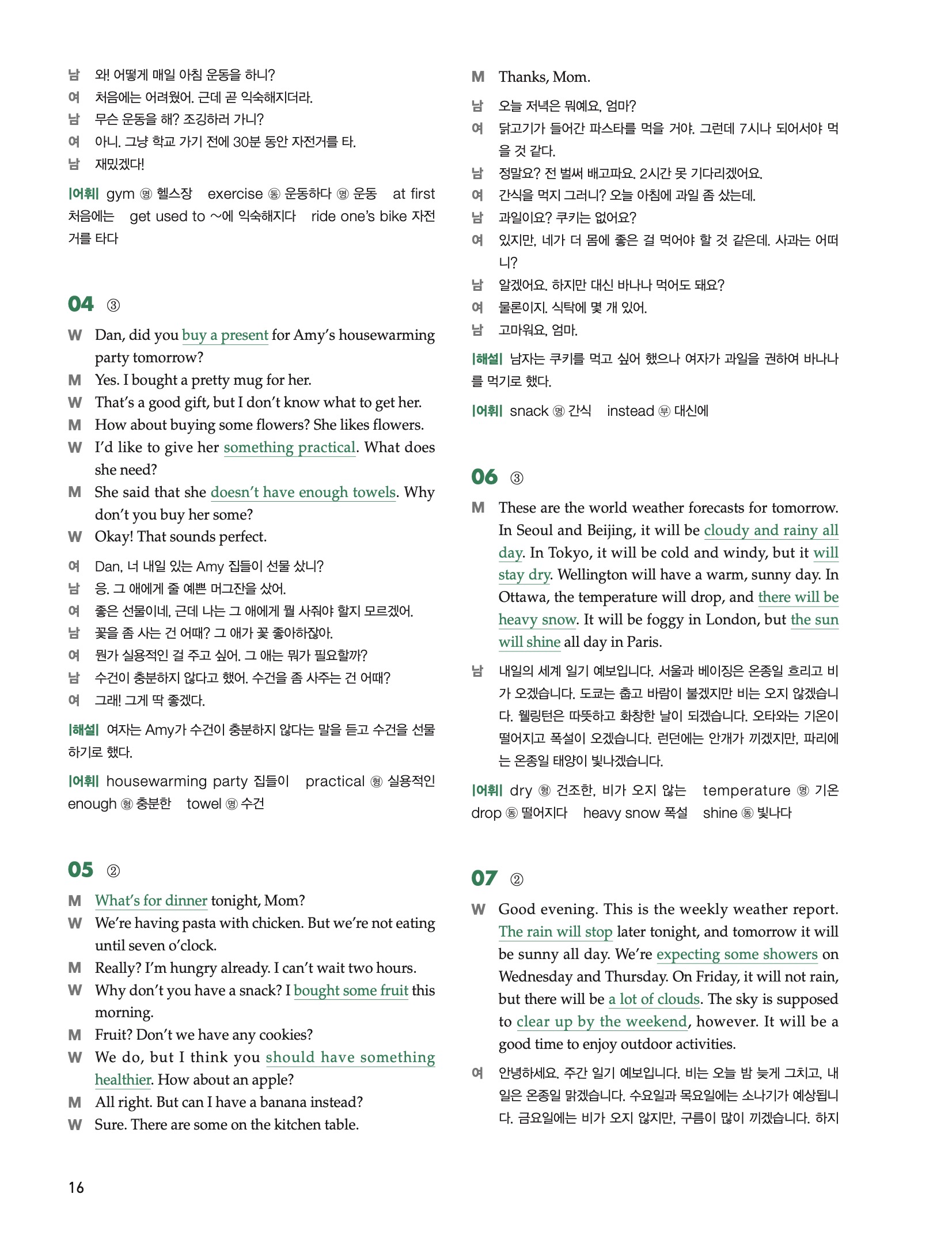 1316 리스닝 레벨2의 답지와 해설을 통해 효과적으로 학습하고, 듣기 실력을 향상시켜 좋은 성과를 거두시기 바랍니다.
