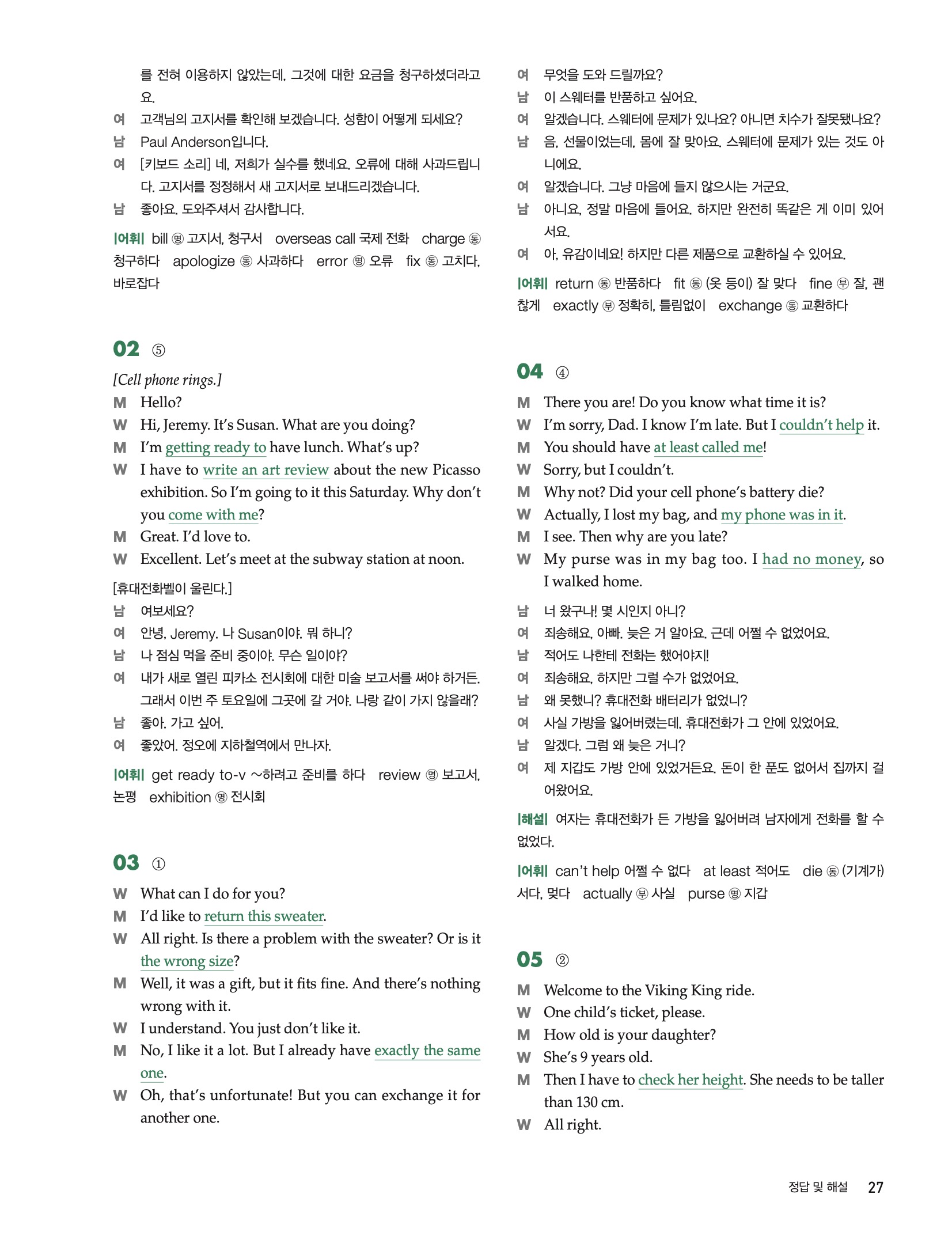 ✅ 핵심 개념 및 실전 연습 – 듣기 문제 풀이와 함께 주요 표현과 패턴을 익힐 수 있습니다.