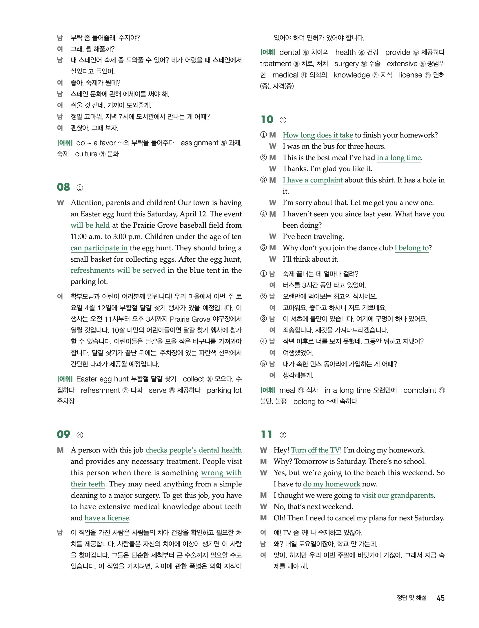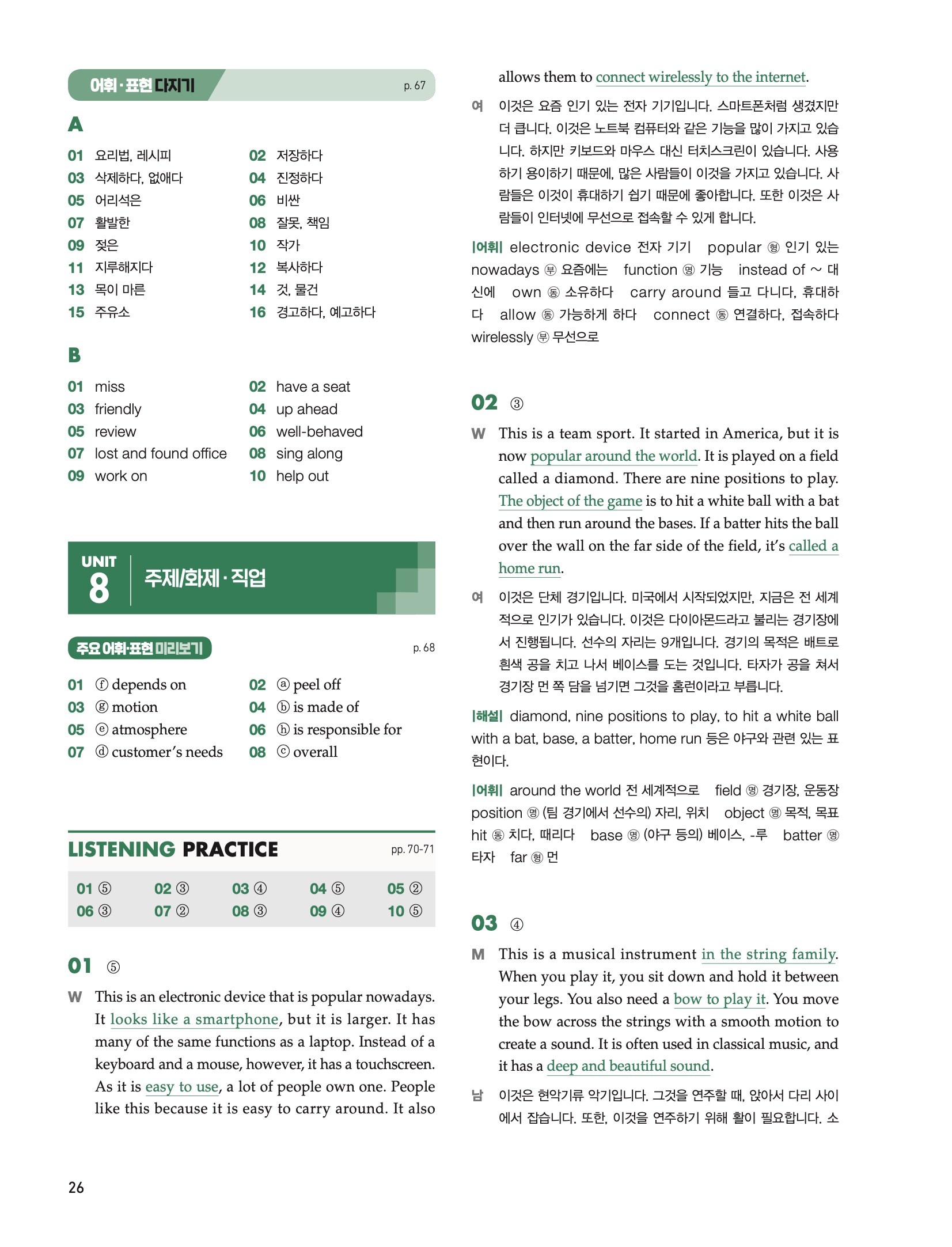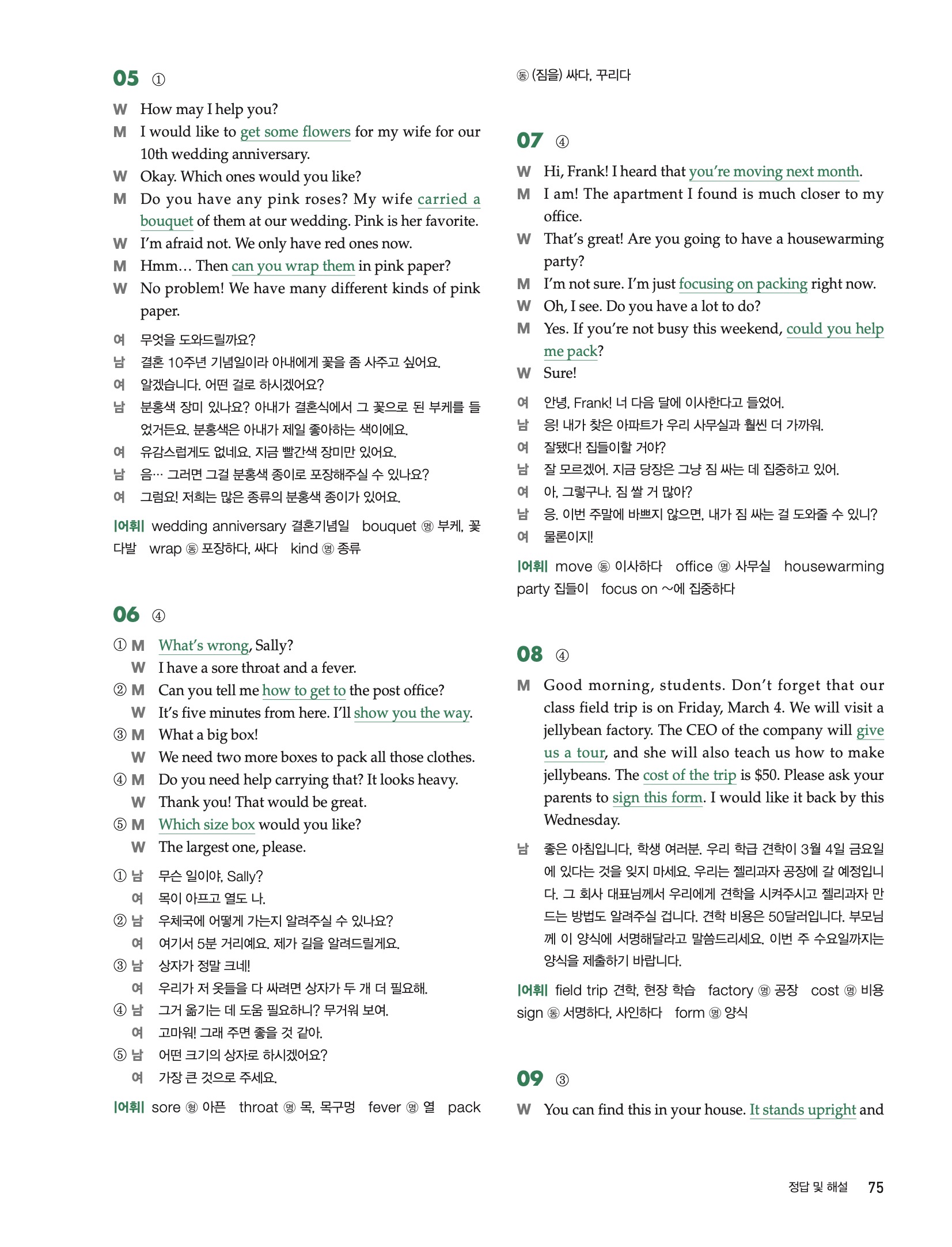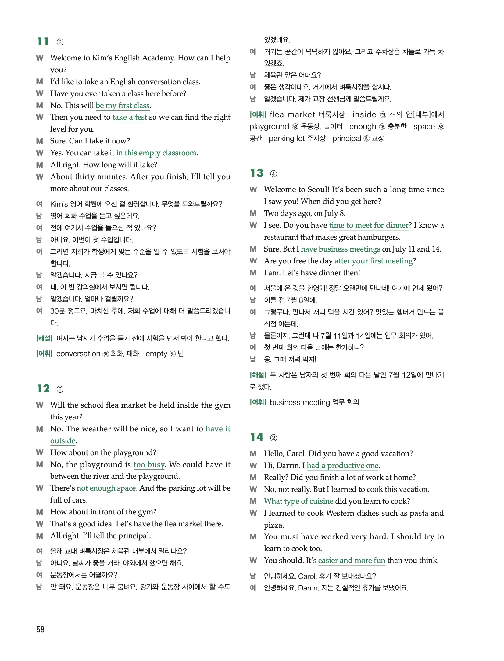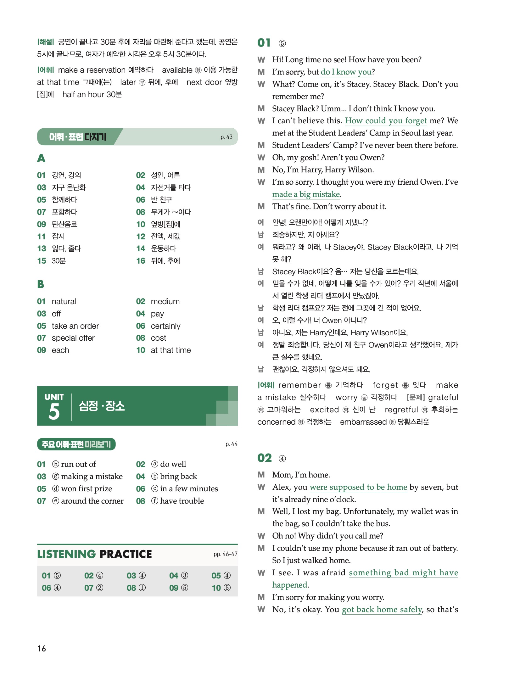 아래는 듣기 실력 향상과 영어 학습에 도움이 되는 다른 교재의 답지와 해설을 제공하는 포스팅입니다.