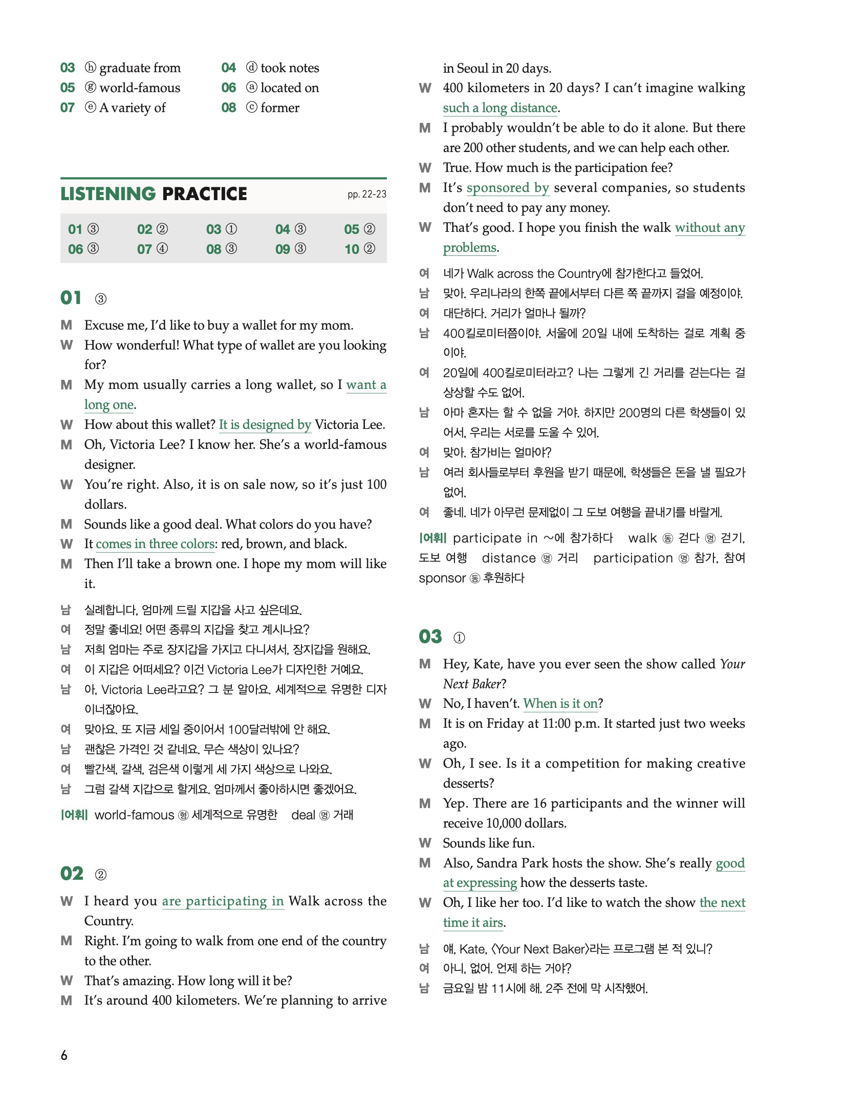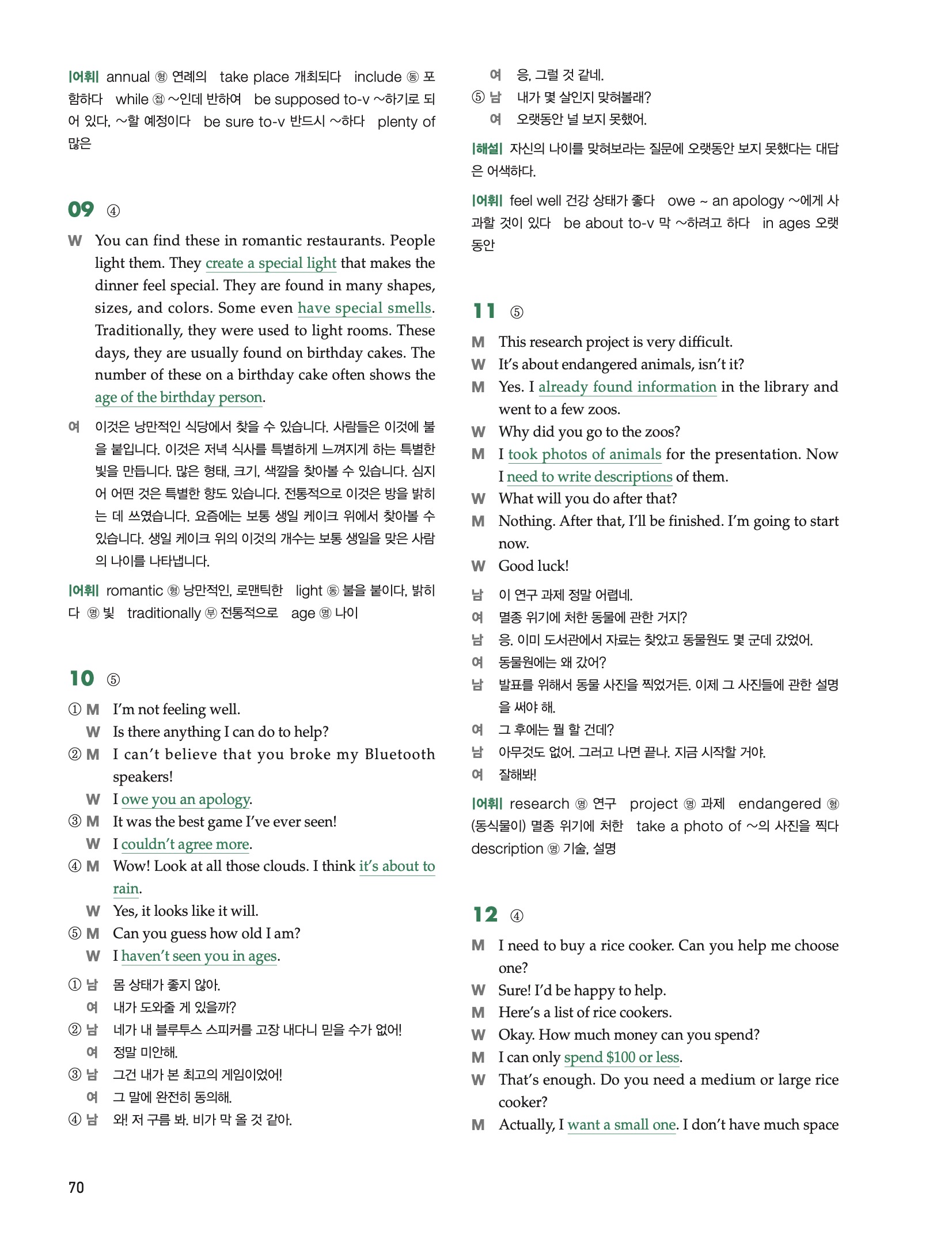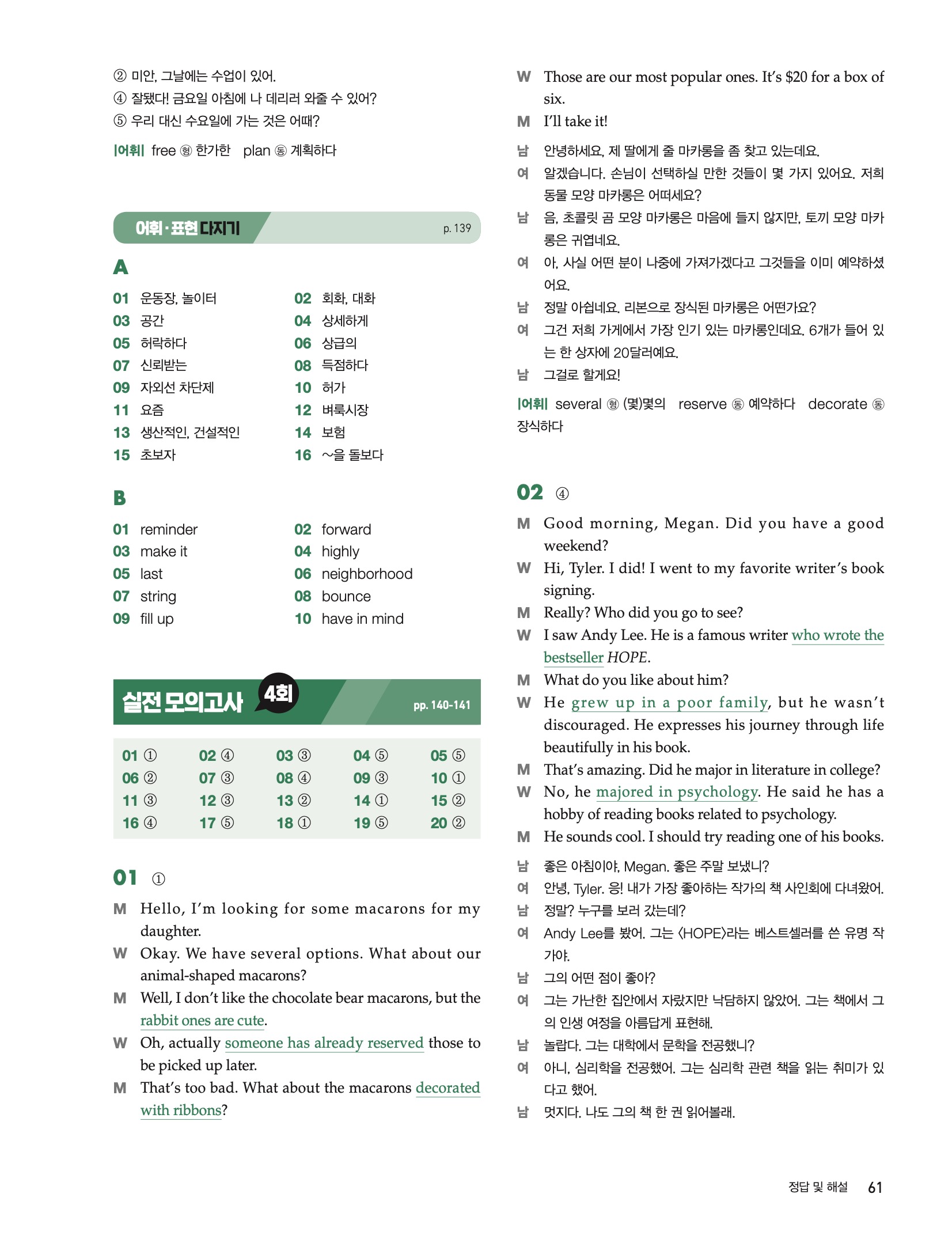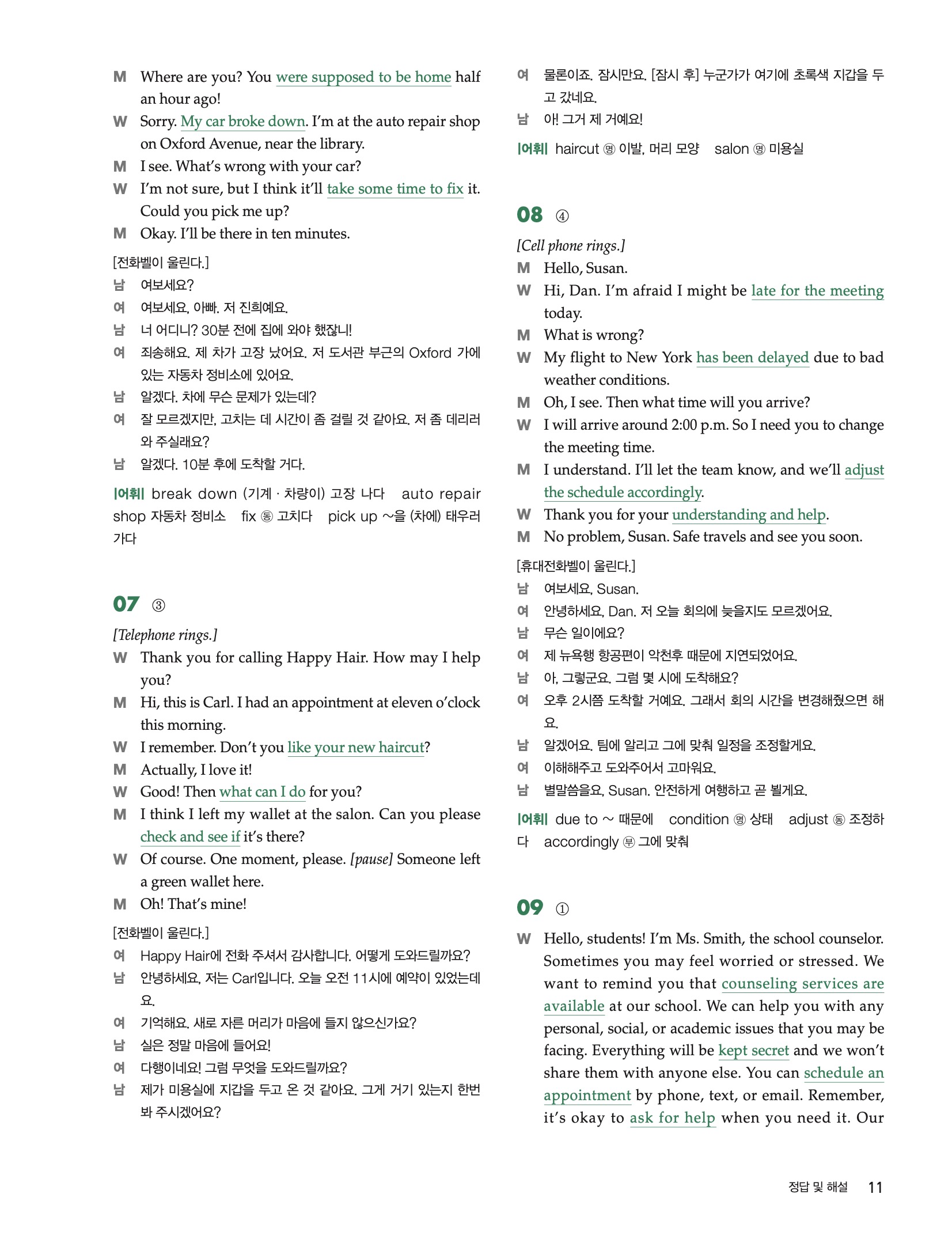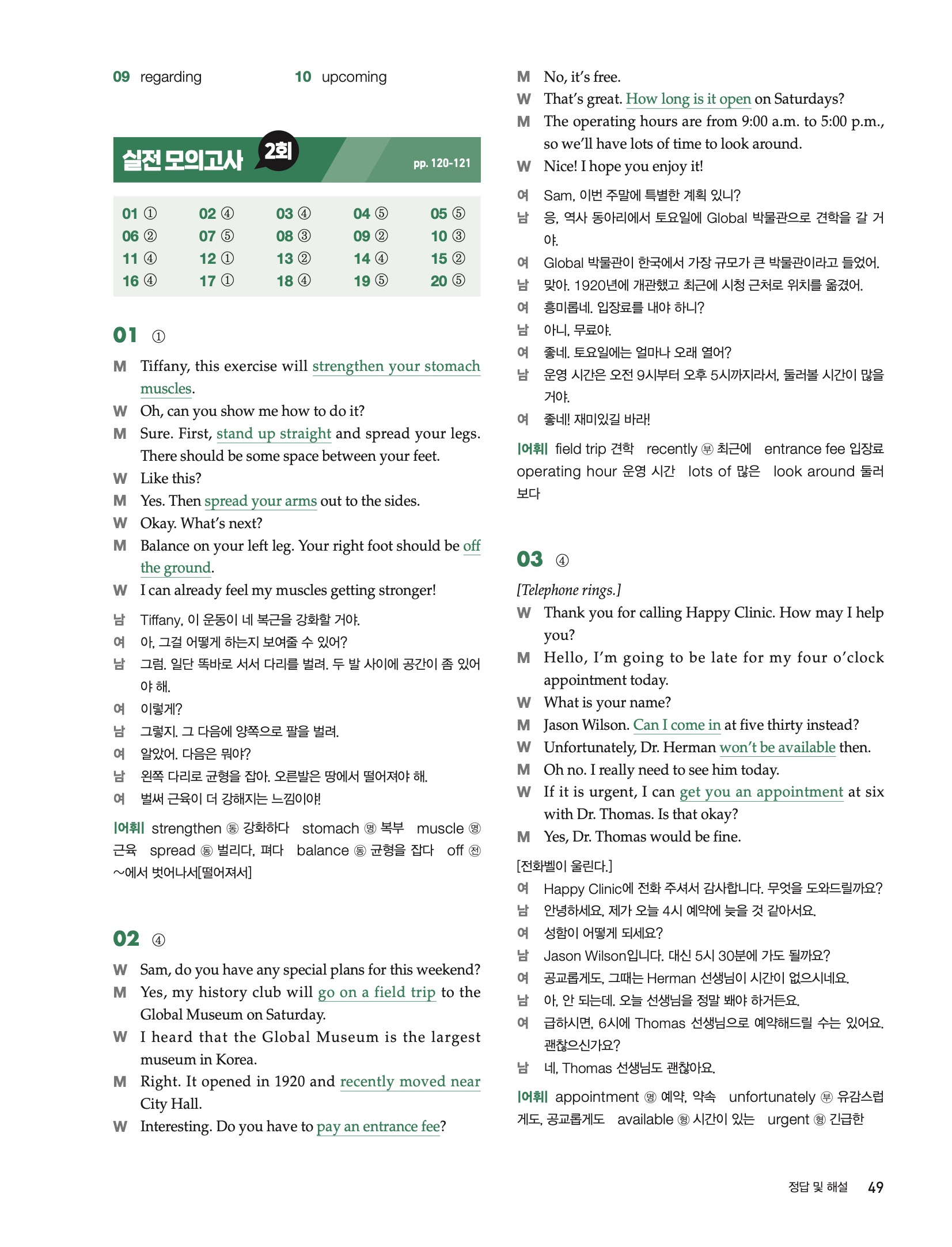 아래는 듣기 실력 향상과 영어 학습에 도움이 되는 다른 교재의 답지와 해설을 제공하는 포스팅입니다.