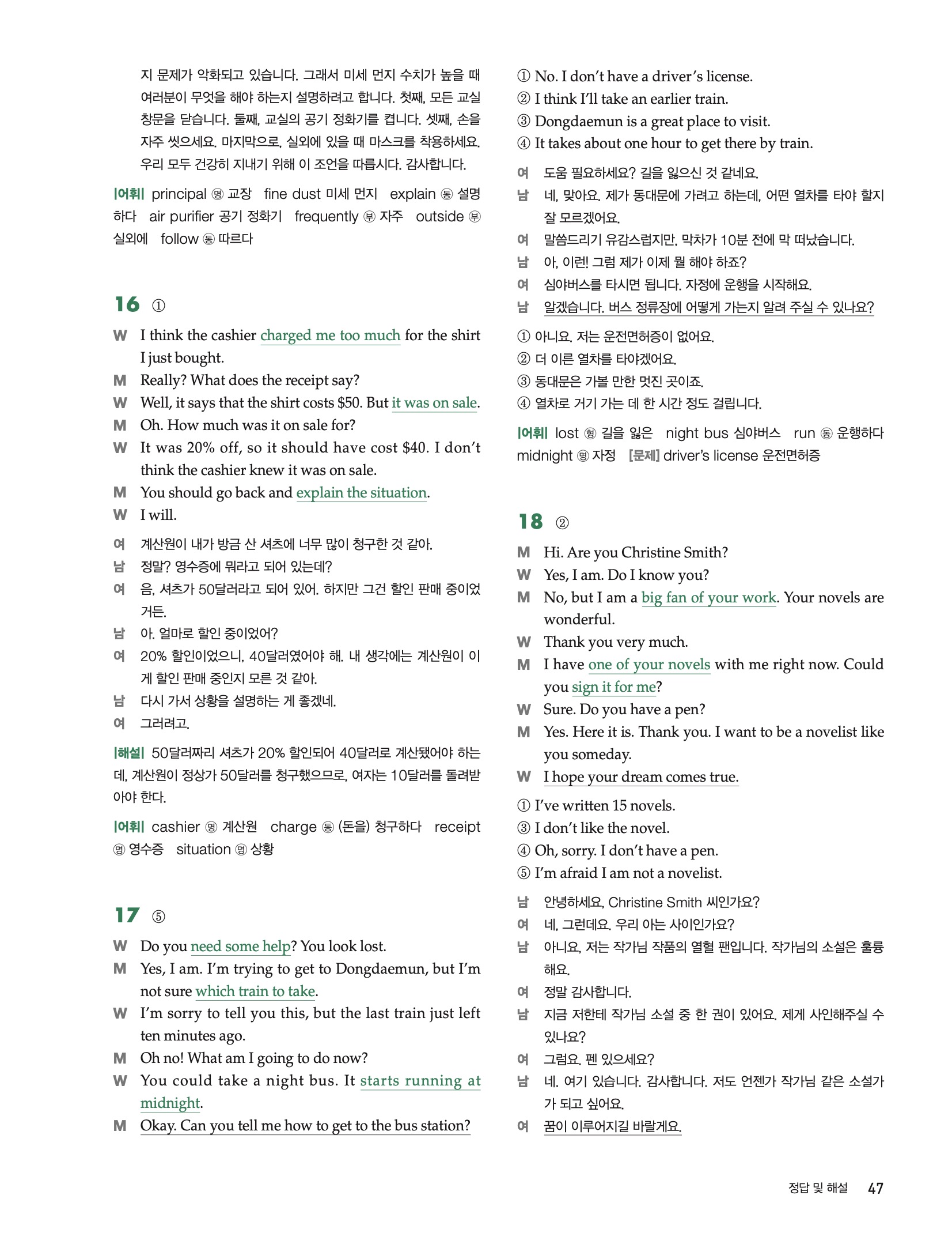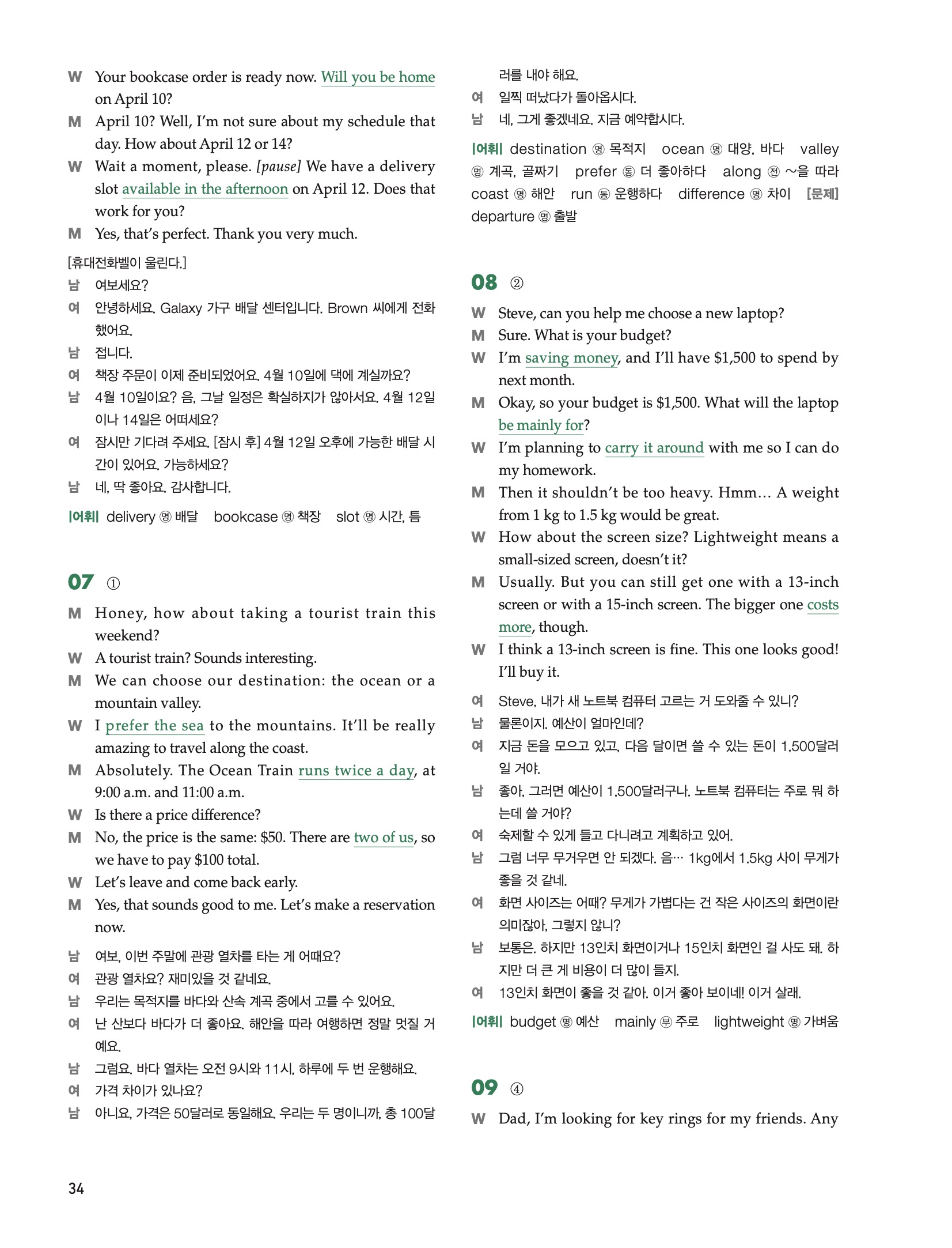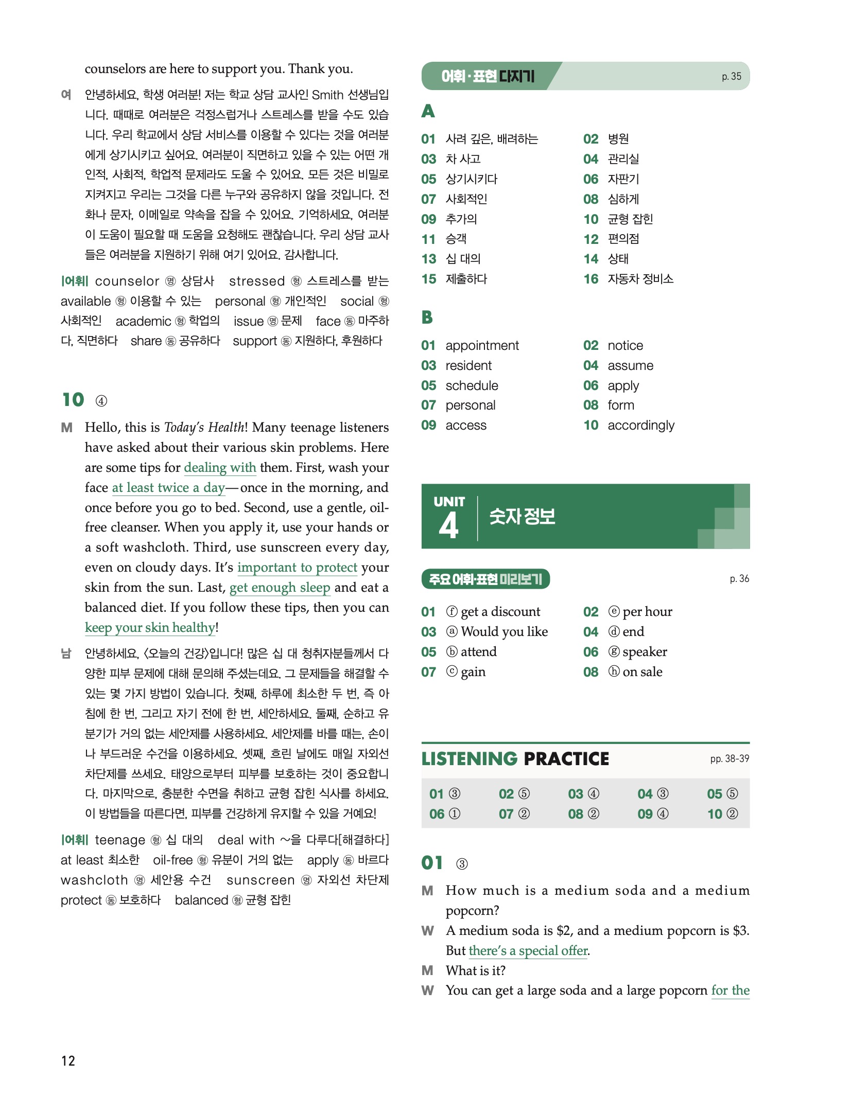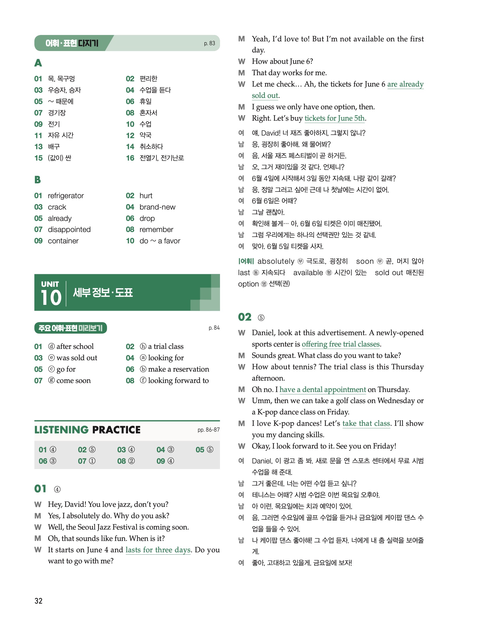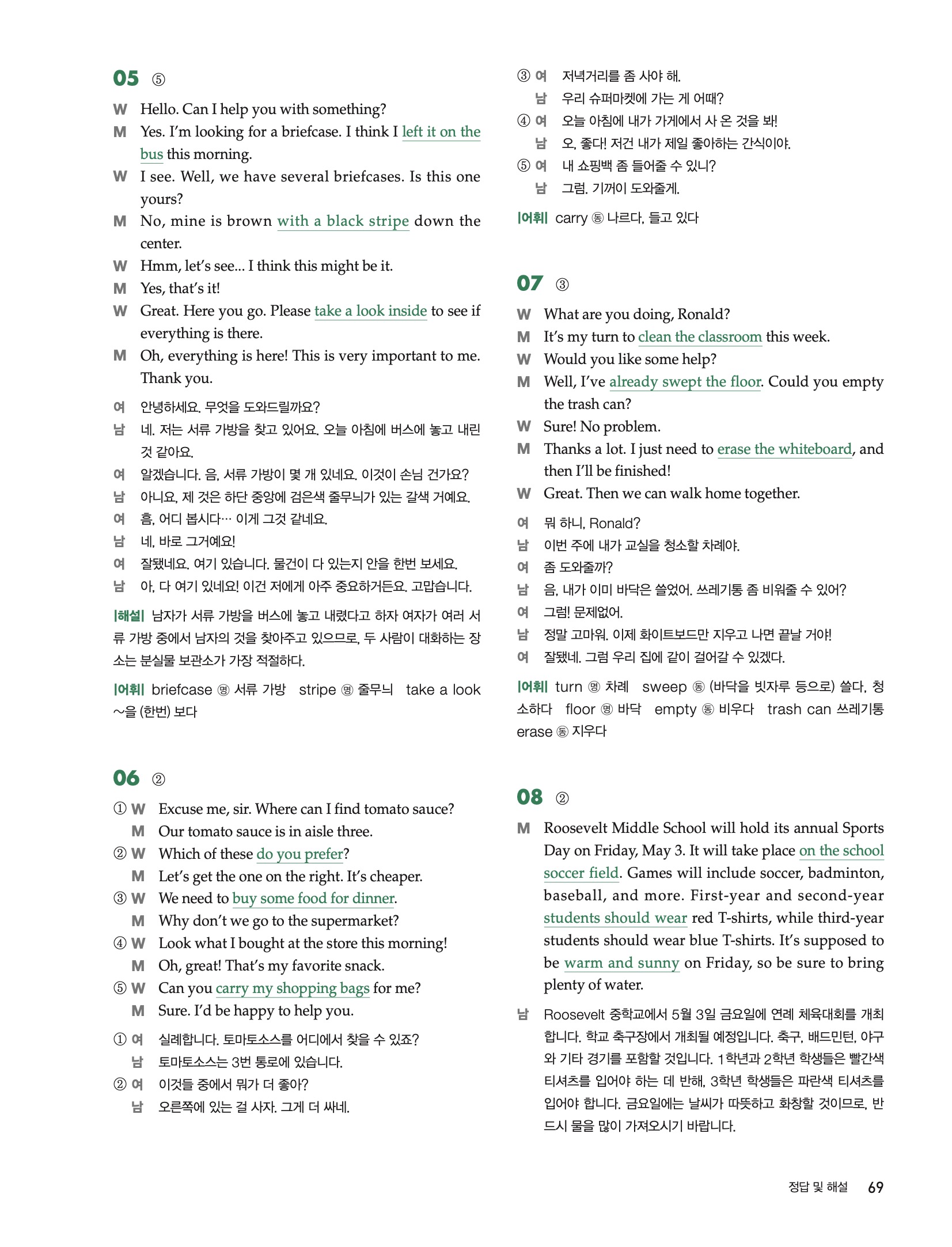 아래는 듣기 실력 향상과 영어 학습에 도움이 되는 다른 교재의 답지와 해설을 제공하는 포스팅입니다.