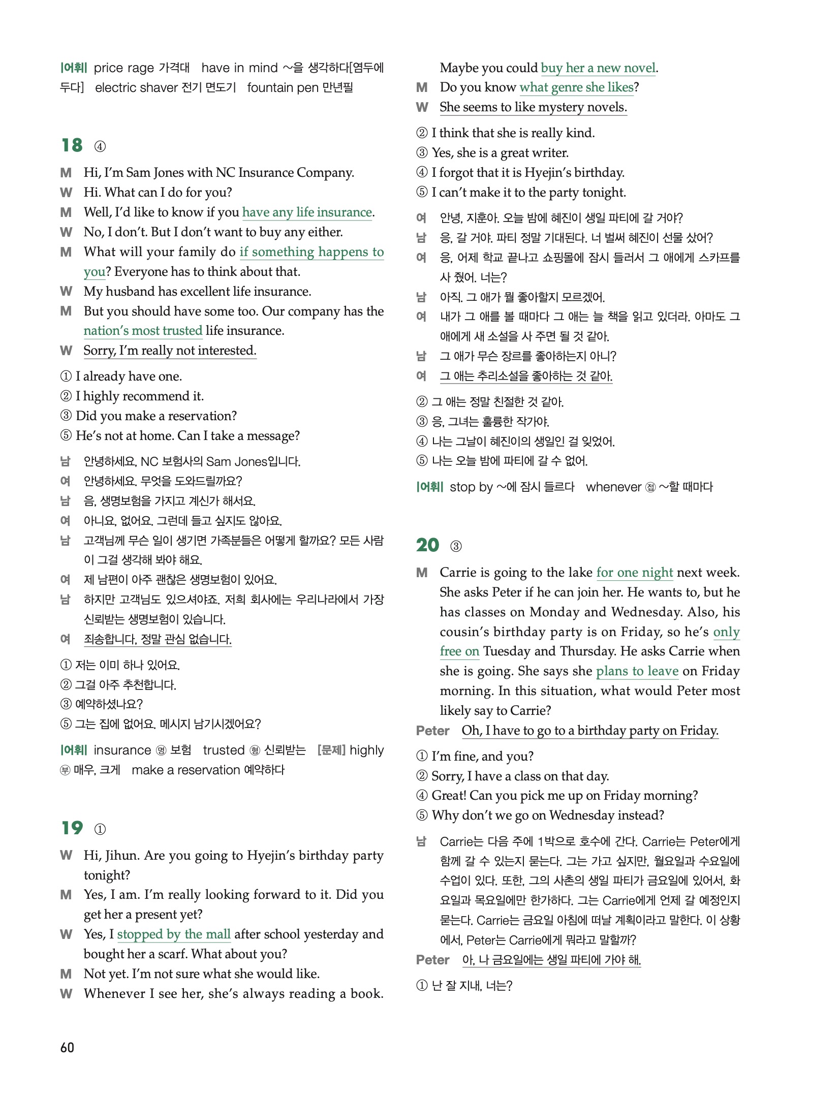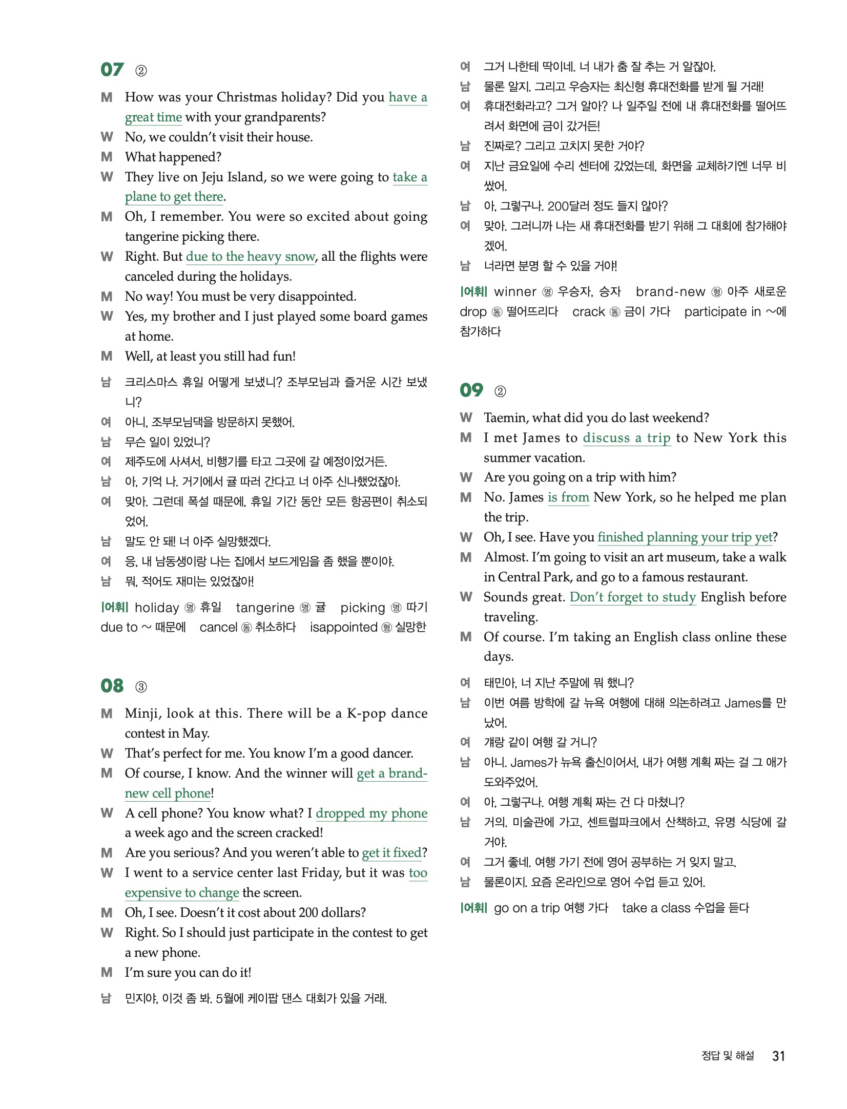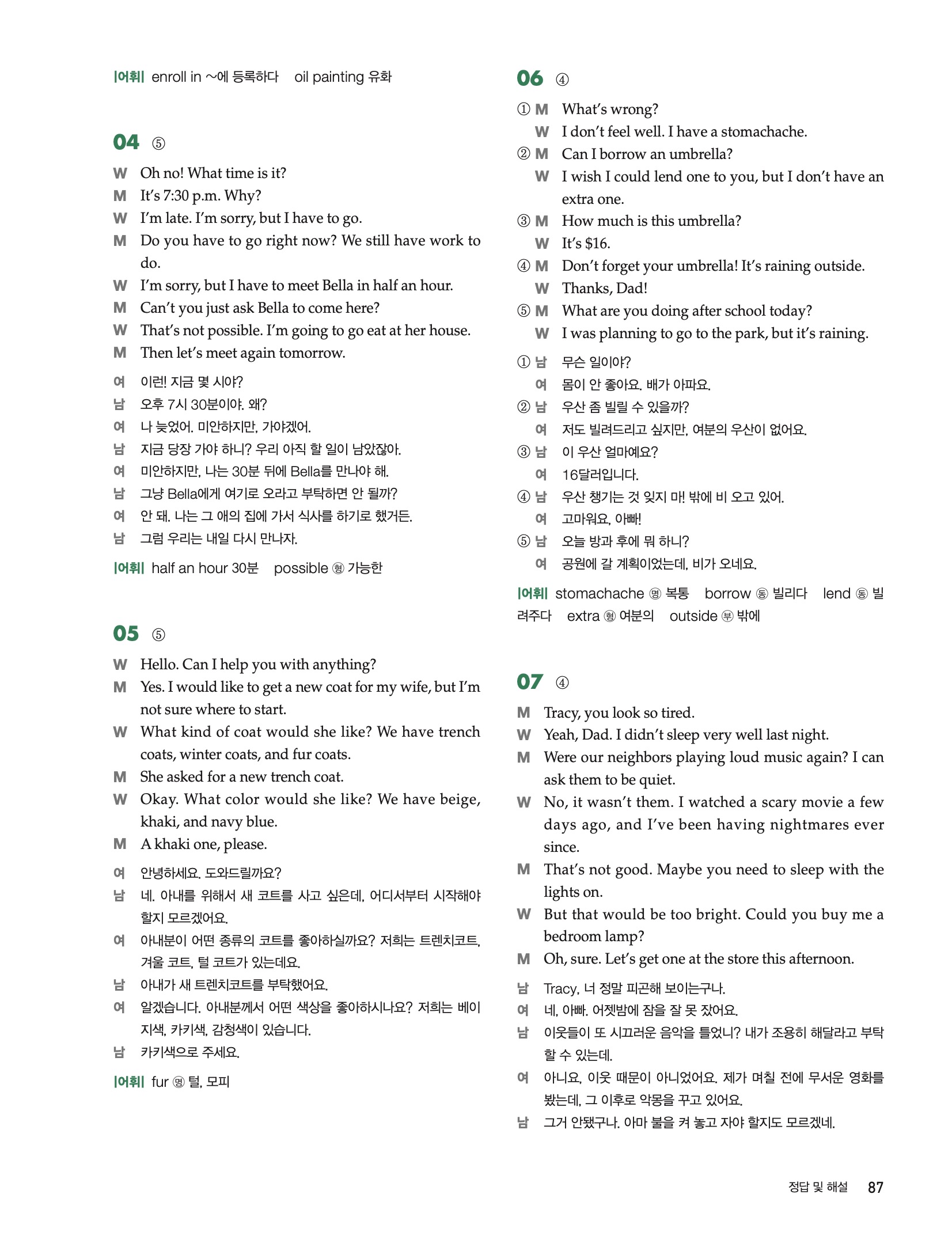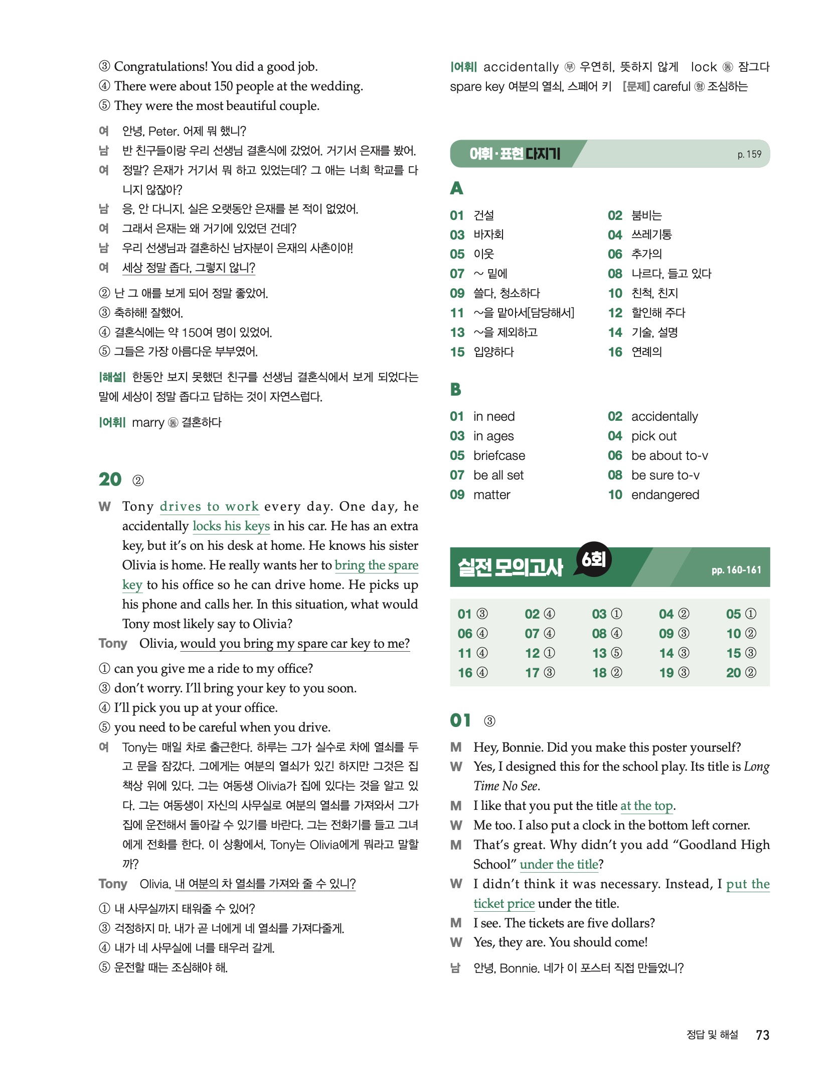아래는 듣기 실력 향상과 영어 학습에 도움이 되는 다른 교재의 답지와 해설을 제공하는 포스팅입니다.