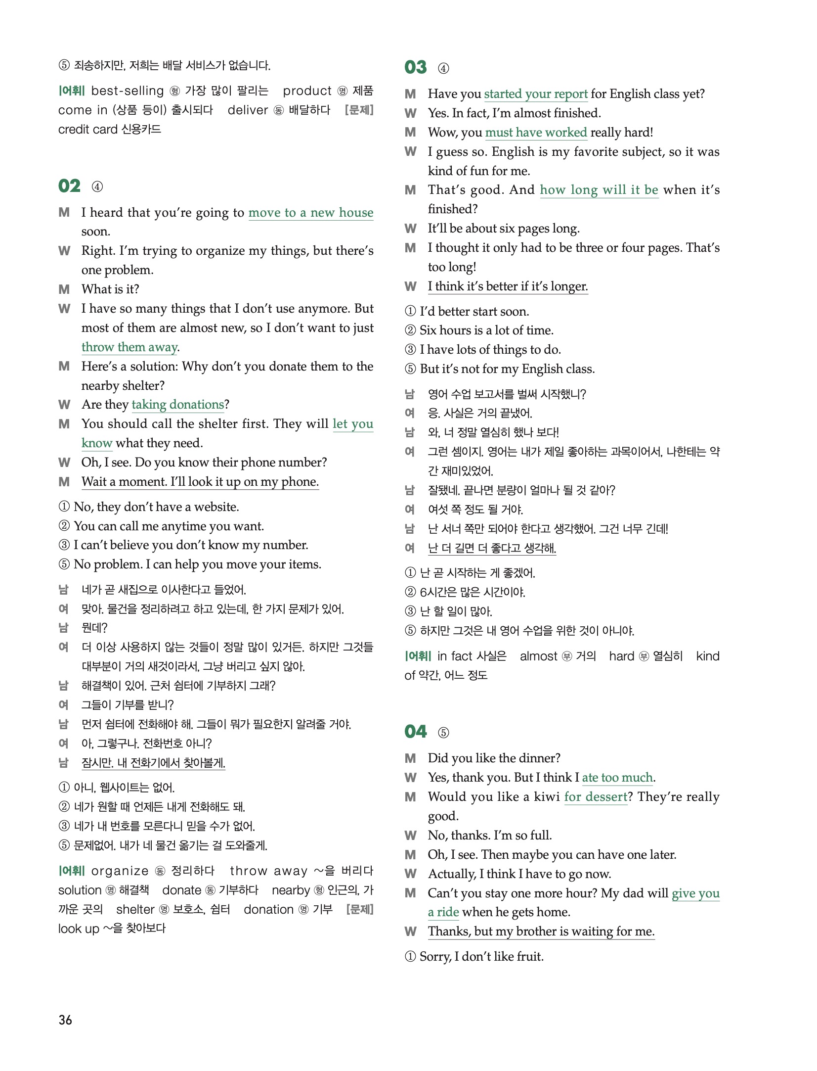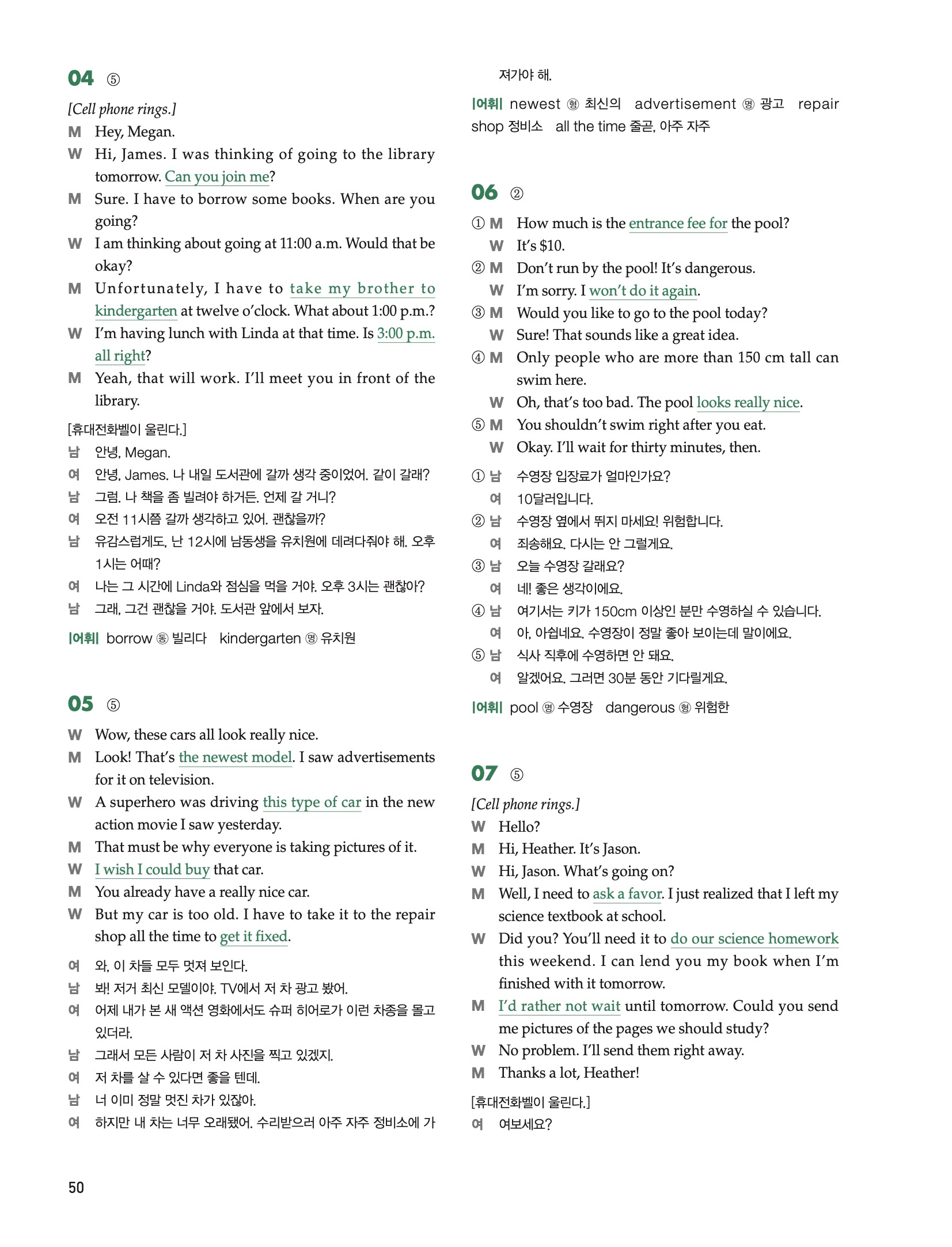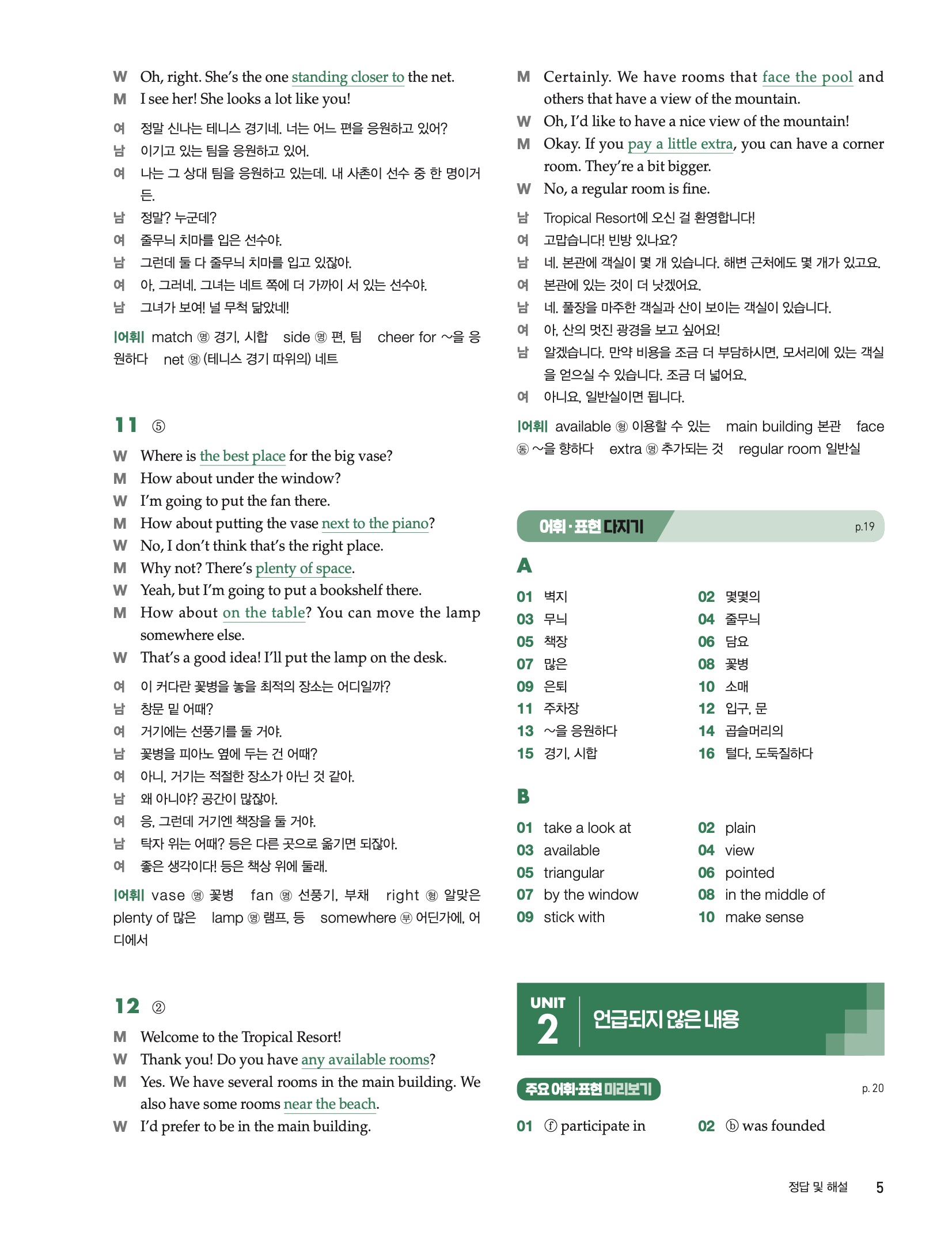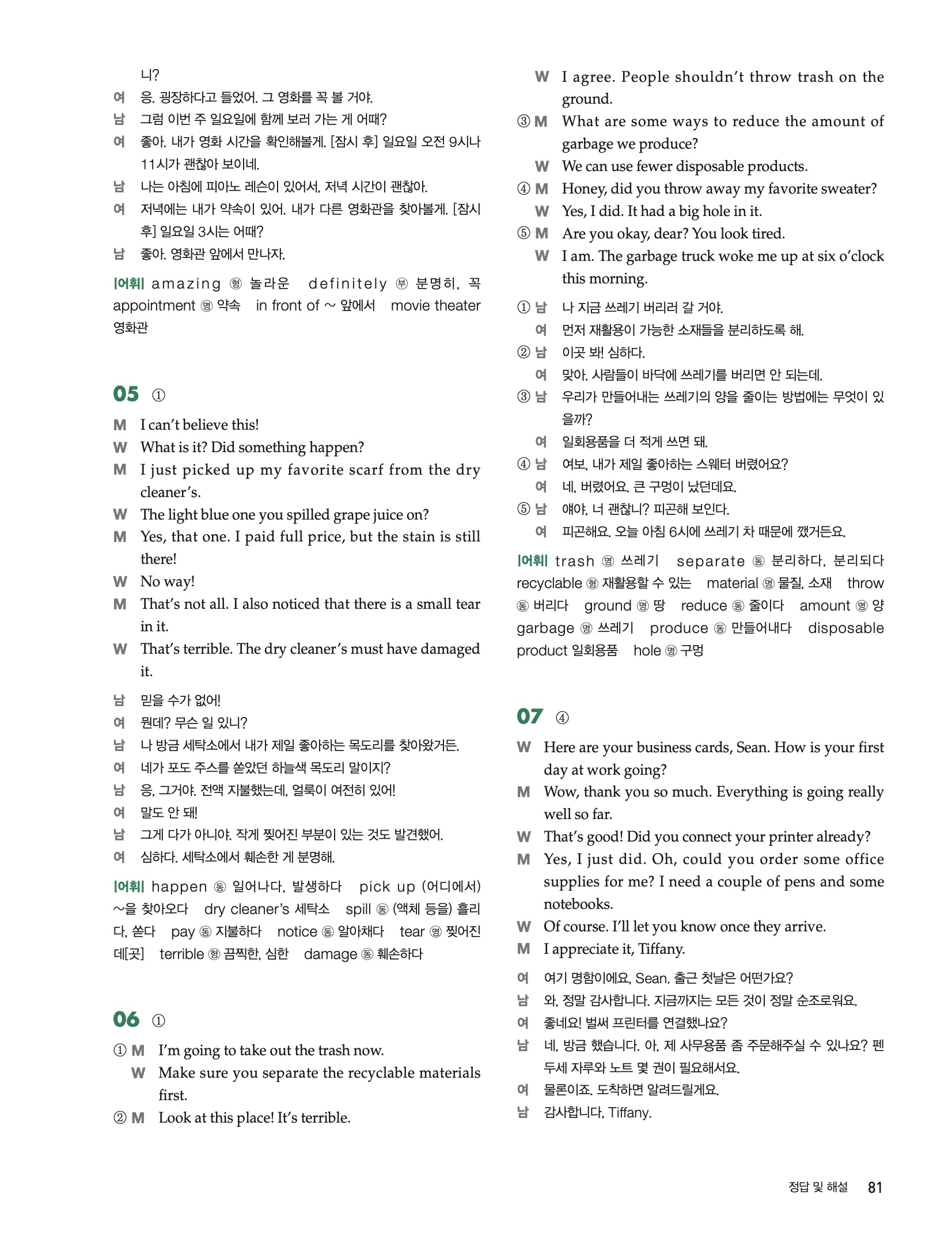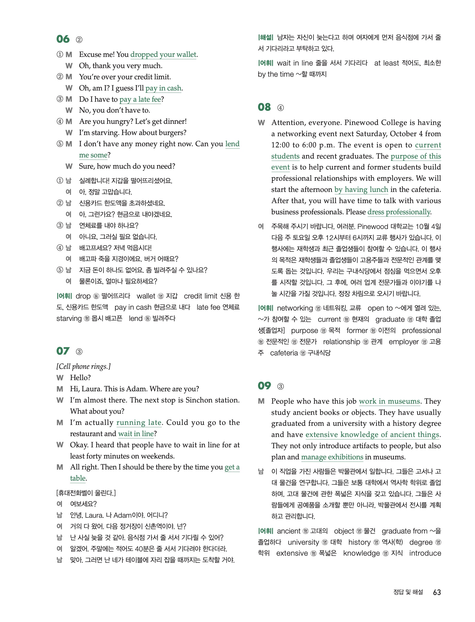 아래는 듣기 실력 향상과 영어 학습에 도움이 되는 다른 교재의 답지와 해설을 제공하는 포스팅입니다.